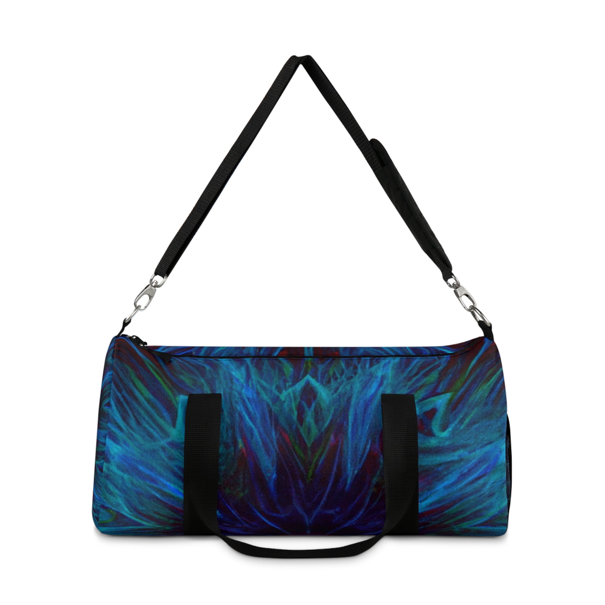 This unique and eye-catching duffle bag is an explosion of bold, vibrant colours and dynamic digital art, featuring trippy stars, kaleidoscope, abstract designs and 3D lines. Perfect for a night out, a trip away or just a cool day bag - make sure you stand out from the crowd! #Dufflebag #Vibrant #Kaleidoscope #Digitalart #Trippystars #Abstract #3Dlines #Unique #Artistic #Colourful #UniqueDesign #Modern #Dynamic #3DPrinting #Style #Striking #Iconic #Fashion #Trendy #Contemporary #Expressive #Statement #Functional #3DDesign #TravelBag #Stylish #FunctionalArt #Fashionable