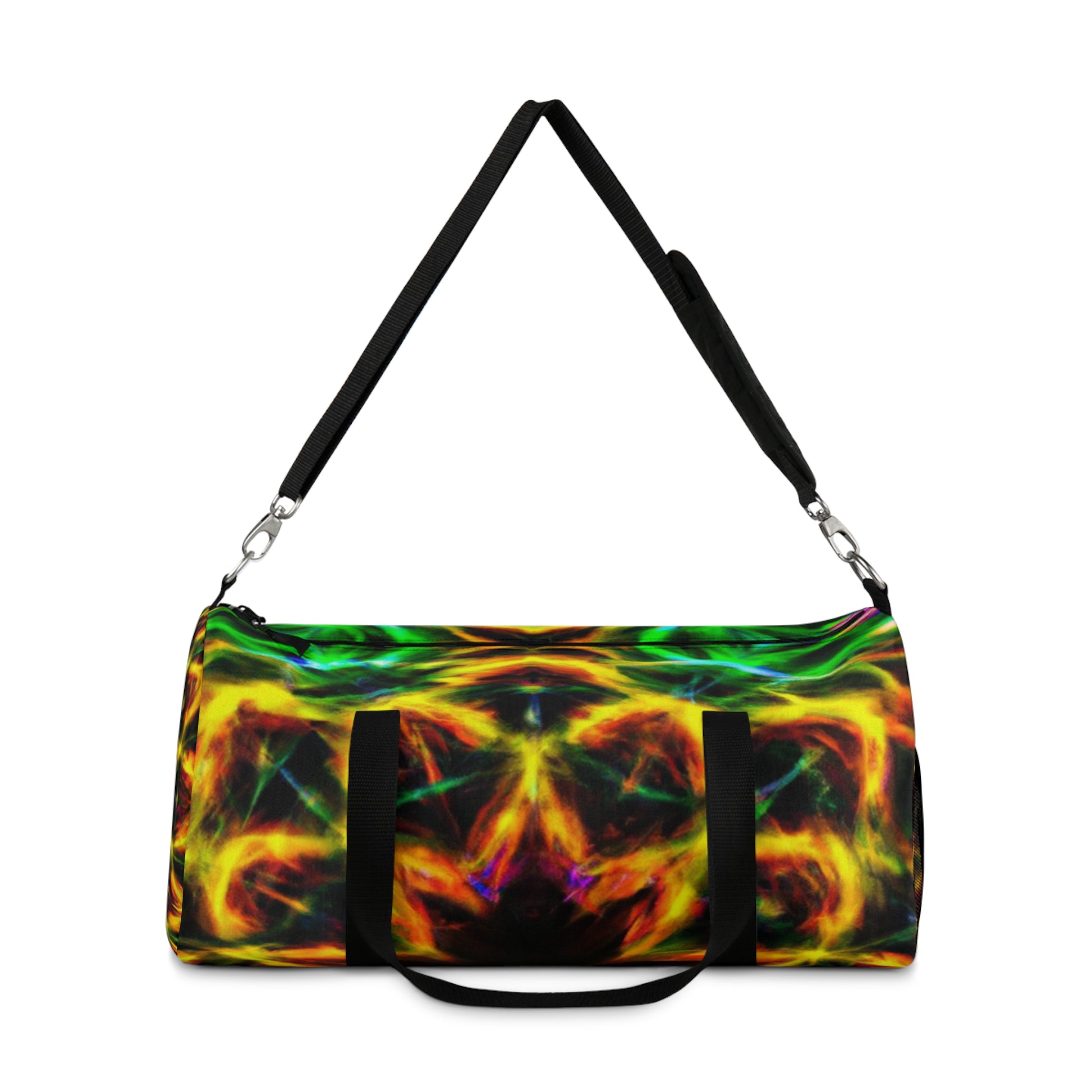 This eye-popping, fully-lined duffle bag features crisp, HD abstract art with trippy pineapple, kaleidoscope and neon color designs. Get noticed and make a statement with this unique standout piece. #neoncolors #dufflebag #visualart #pineapple #kaleidoscope #HD #statementpiece #standout #digitalart #pickyourstyle #trippy #vibrantcolors #abstract #neonprint #400charactersorless #unique #makeastatement #artsybag #carryyourstyle #dressupyourduffle #luggageaccessories #andmanymore