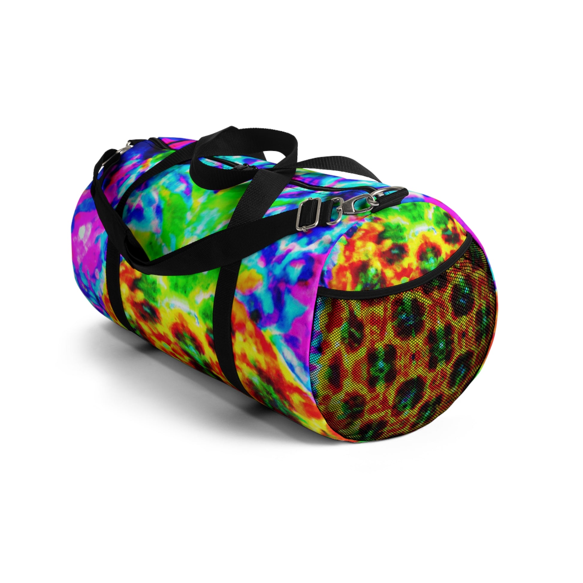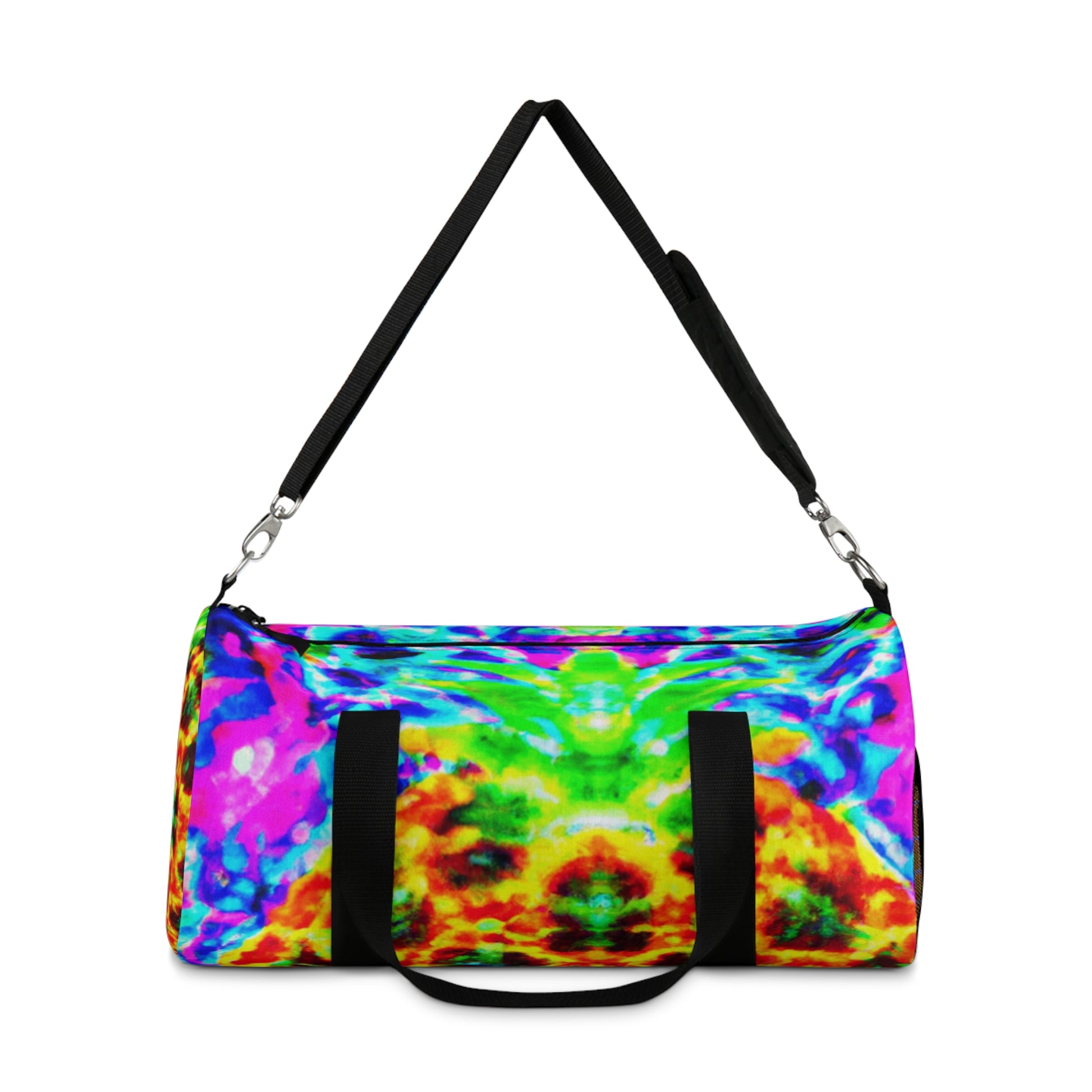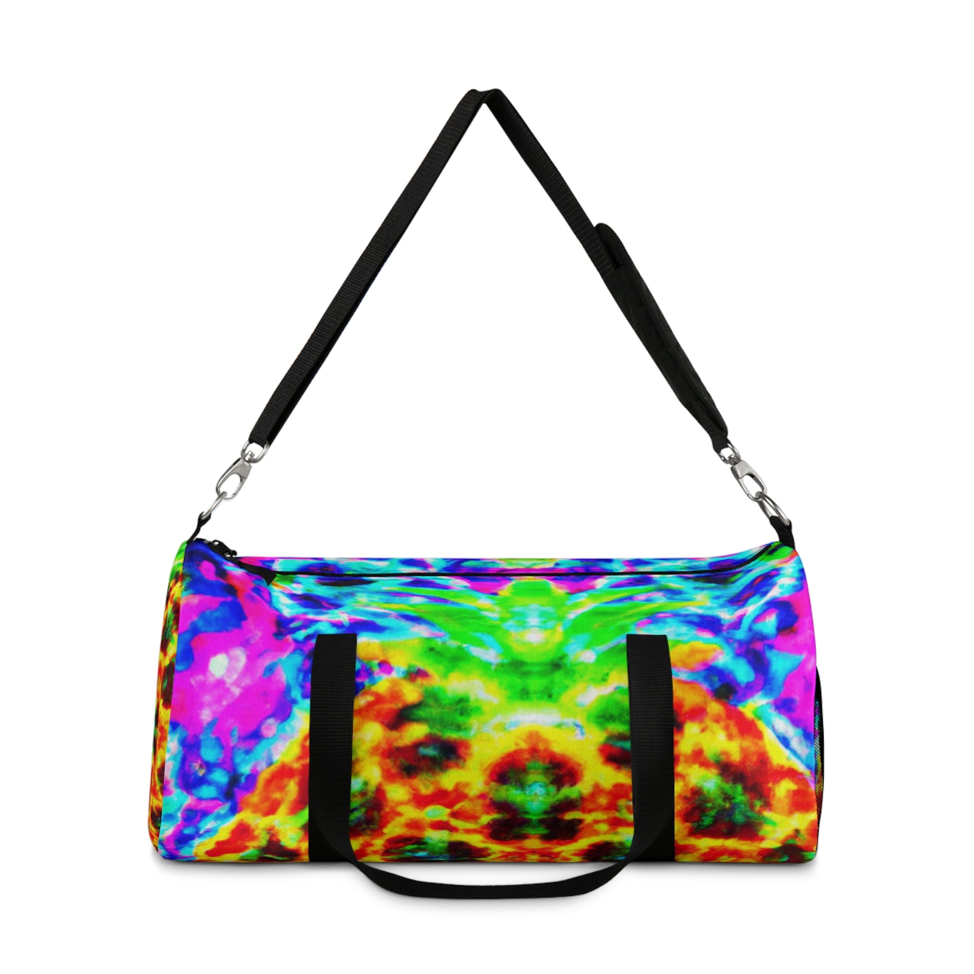 This fun, eye-catching dufflebag is sure to turn heads! It features a vibrant mix of trippy pineapple, kaleidoscope, abstract and digital art, all in brilliant neon colours. Printed in HD, these designs are sure to make a statement. Get ready to be the centre of attention--this is THE bag you want to carry around in style! #dufflebag #pineapple #kaleidoscope #abstractart #digitalart #neoncolors #HD #statementpiece #style #fashionaccessory #unique #trendy #trippy #coloursplash #vibrant #bold #eye-catching #standout #stunner #hypebag #shopperbag #bagsize #bagtrends #carryaround #stylerevamp #neonbag #baglove #baglover