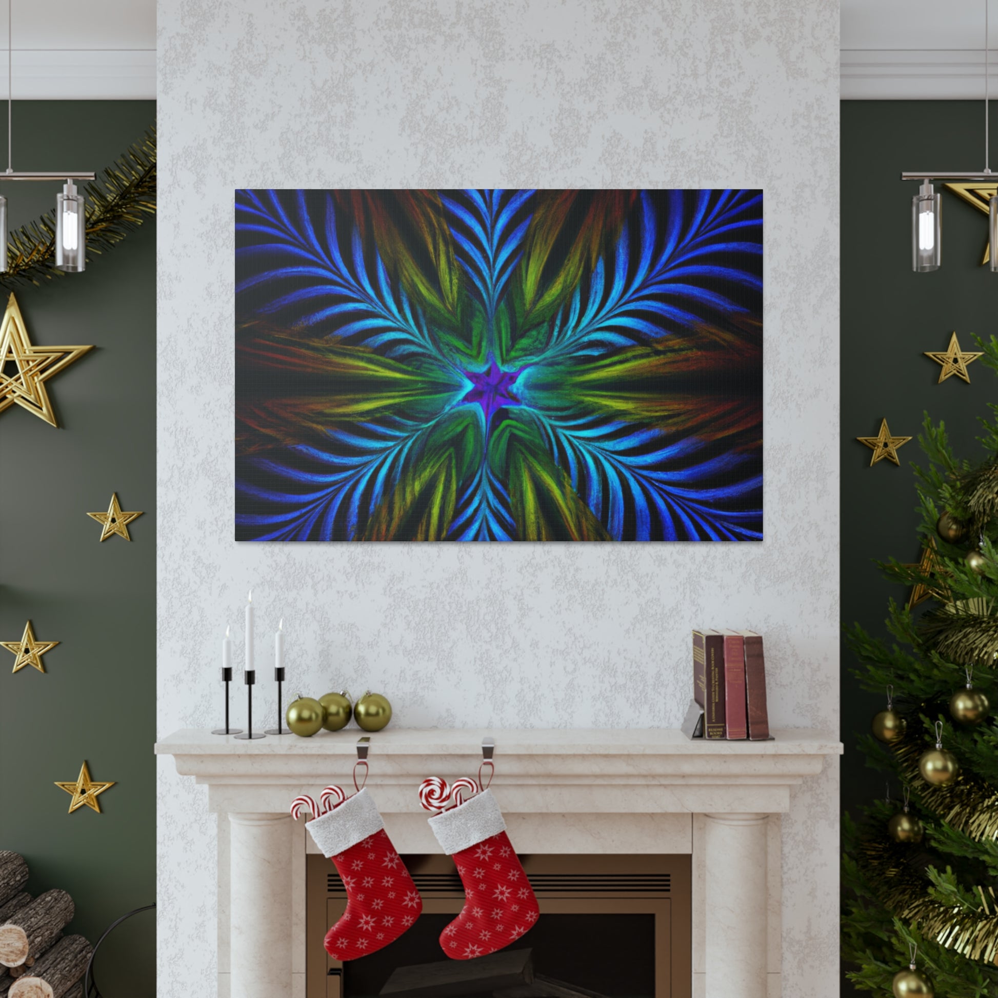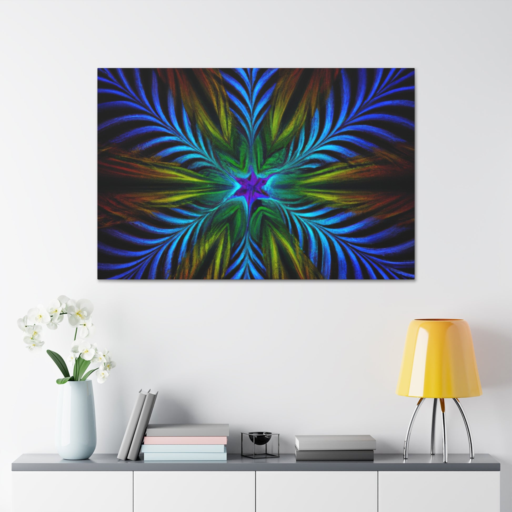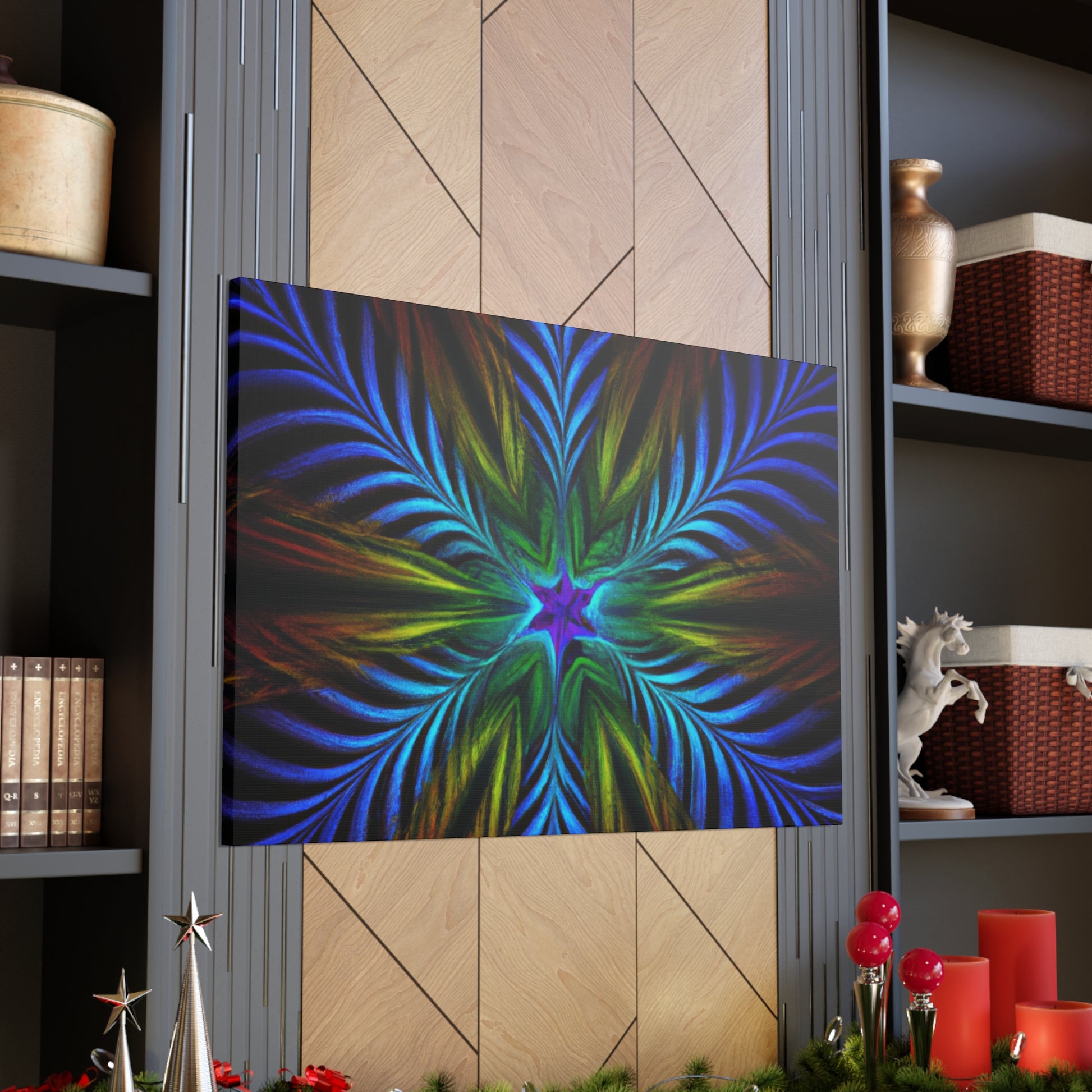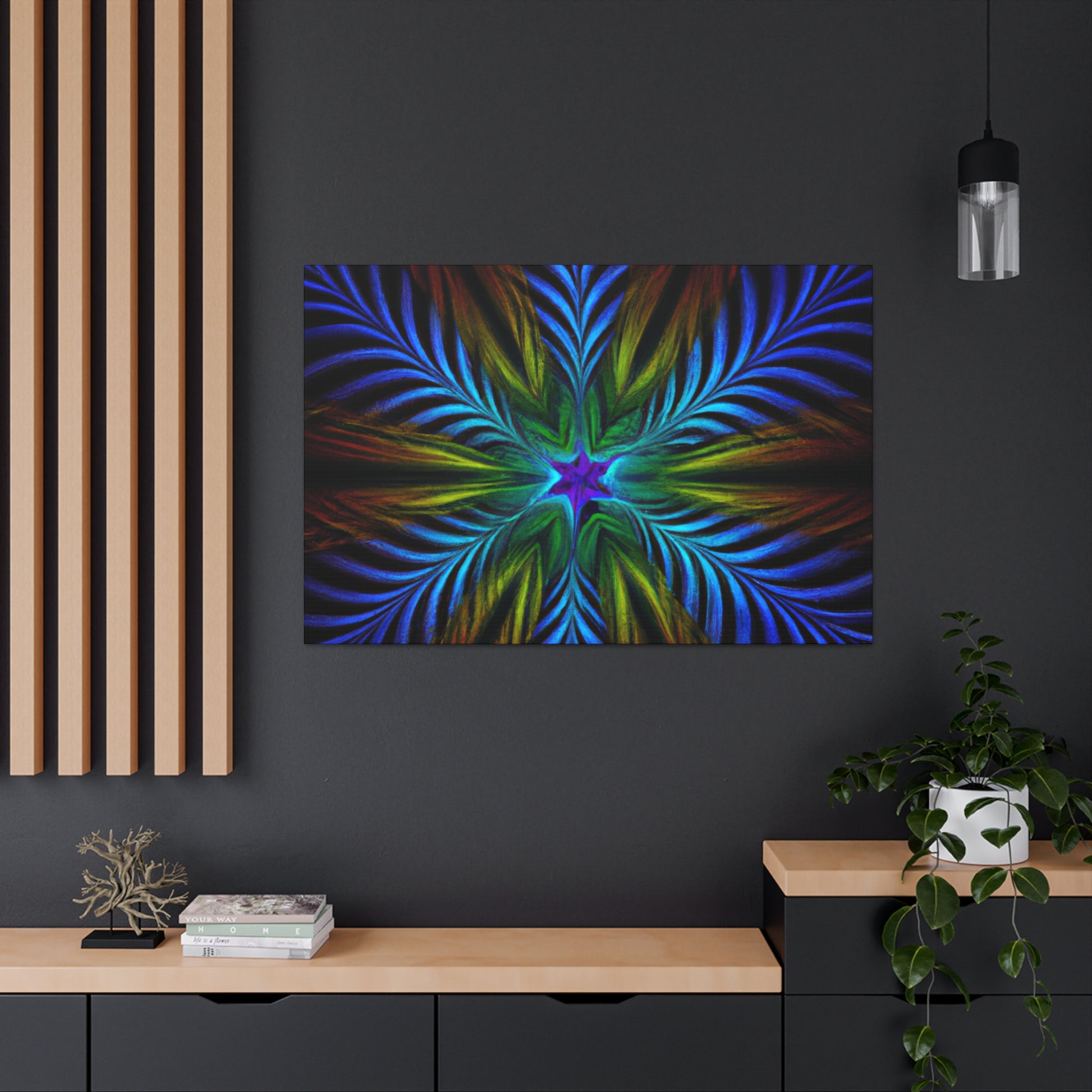 This bold and vibrant canvas features Trippy Geometric Palm Leaves, Kaleidoscope, Abstract, Digital Art, and 3D Lines. The Fractal and Vibrant Colors give this piece a unique depth and its 3D lines add texture to the canvas. This artwork is the perfect accent piece for any wall or office space. #abstractart #digitalart #art #canvas #vibrant #fractal #3dlines #kaleidoscope #geometric #palmleaves #trippy