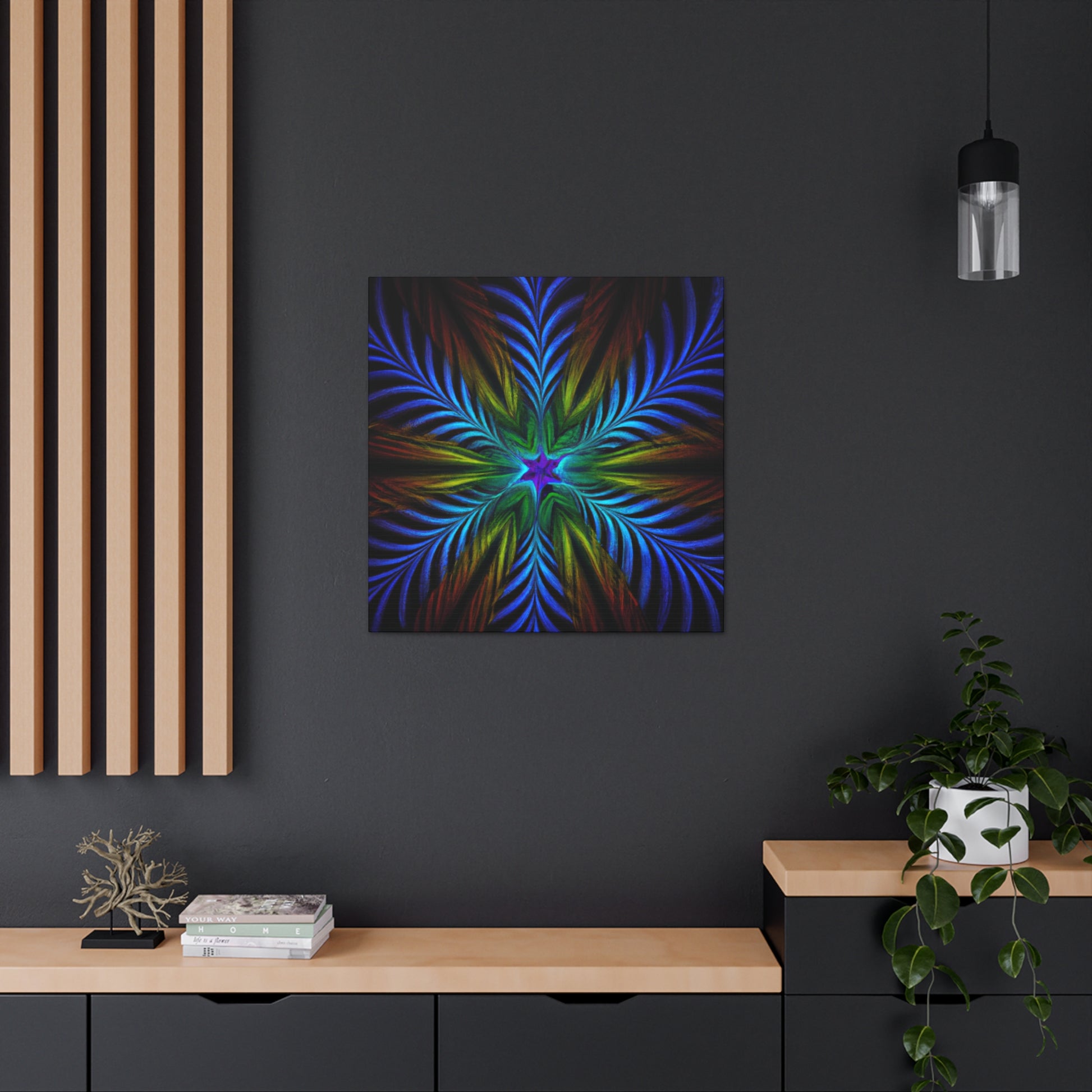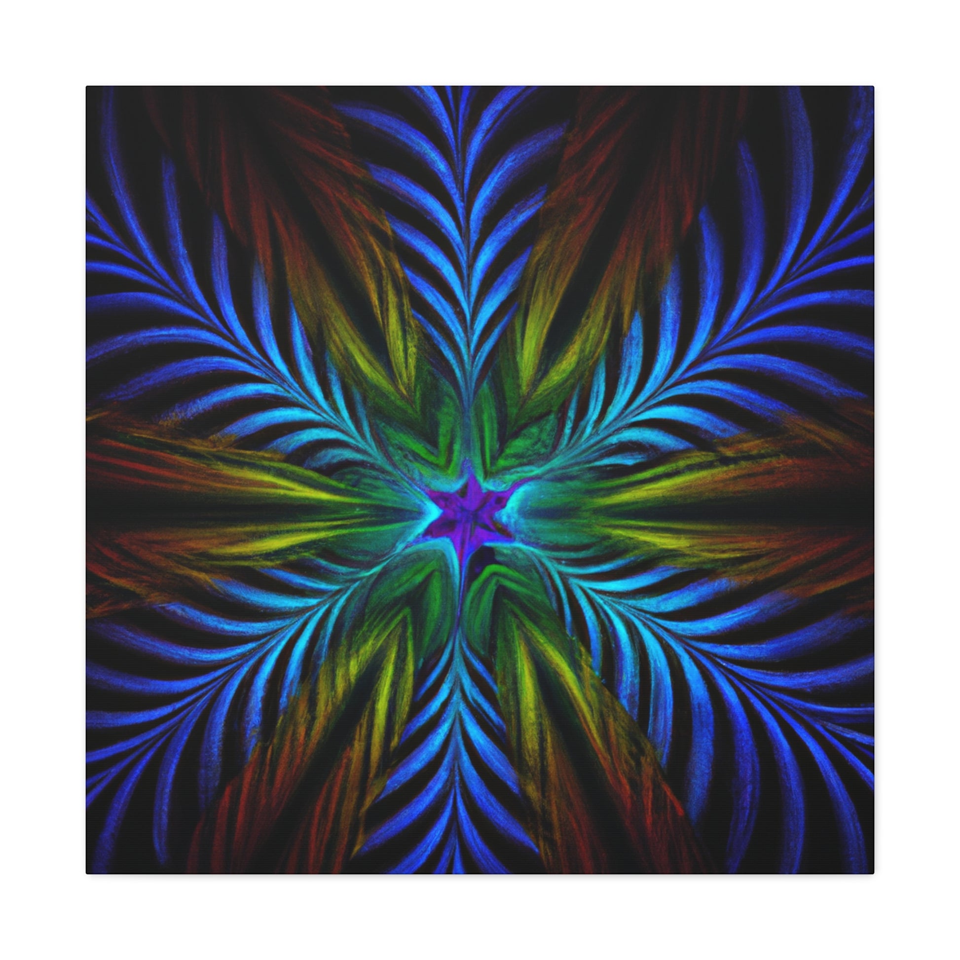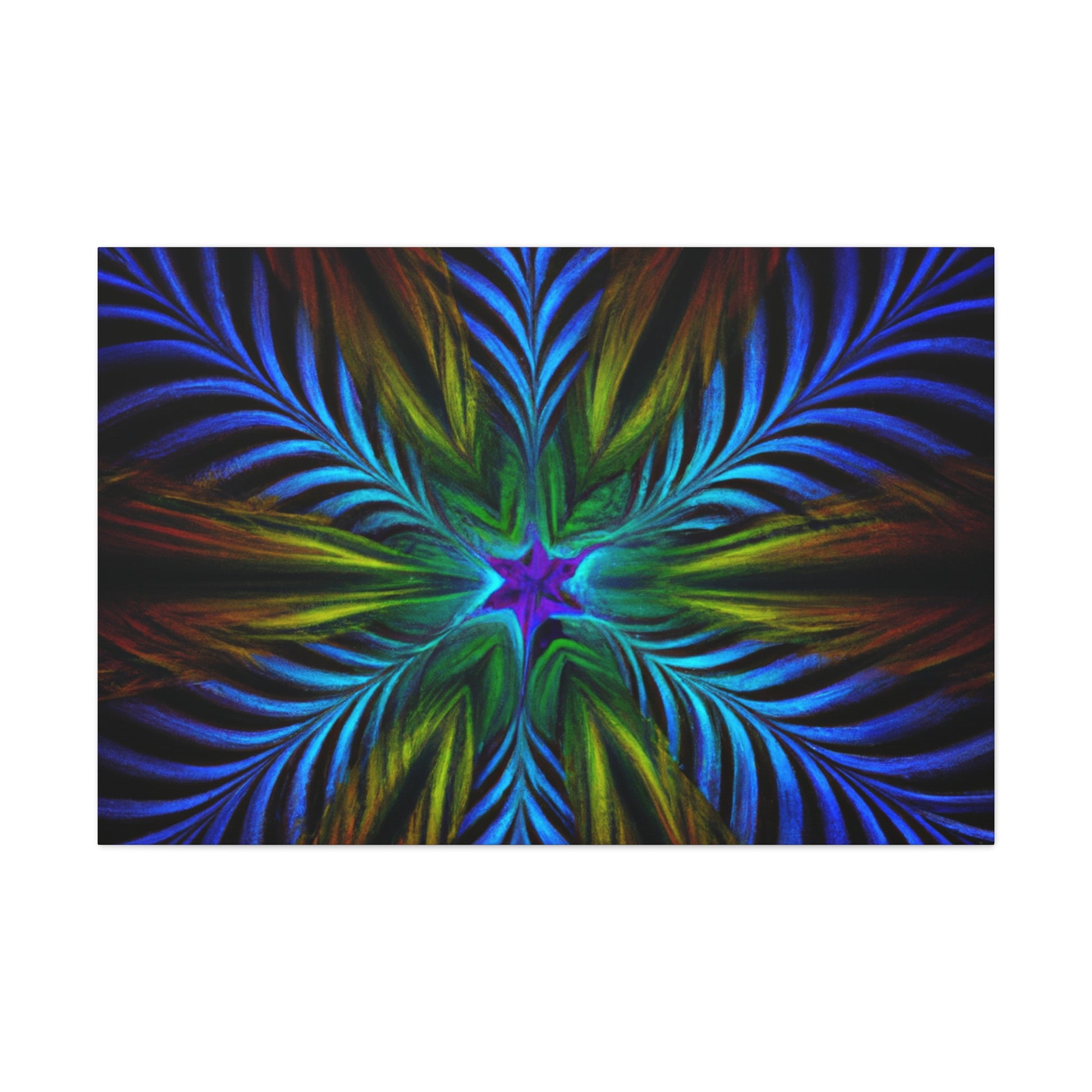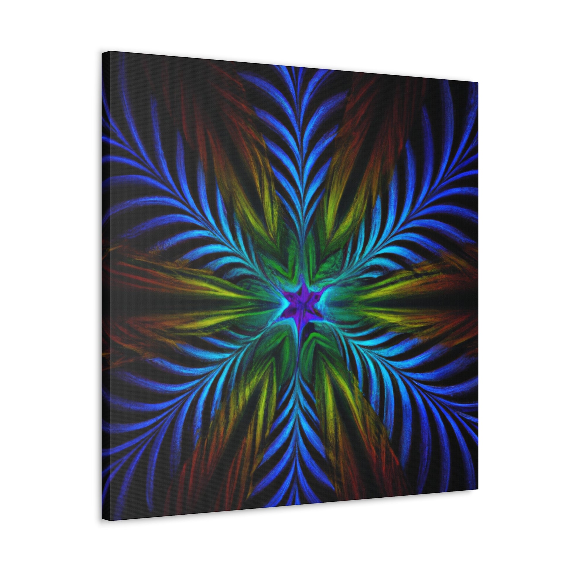 This bold and vibrant canvas features Trippy Geometric Palm Leaves, Kaleidoscope, Abstract, Digital Art, and 3D Lines. The Fractal and Vibrant Colors give this piece a unique depth and its 3D lines add texture to the canvas. This artwork is the perfect accent piece for any wall or office space. #abstractart #digitalart #art #canvas #vibrant #fractal #3dlines #kaleidoscope #geometric #palmleaves #trippy