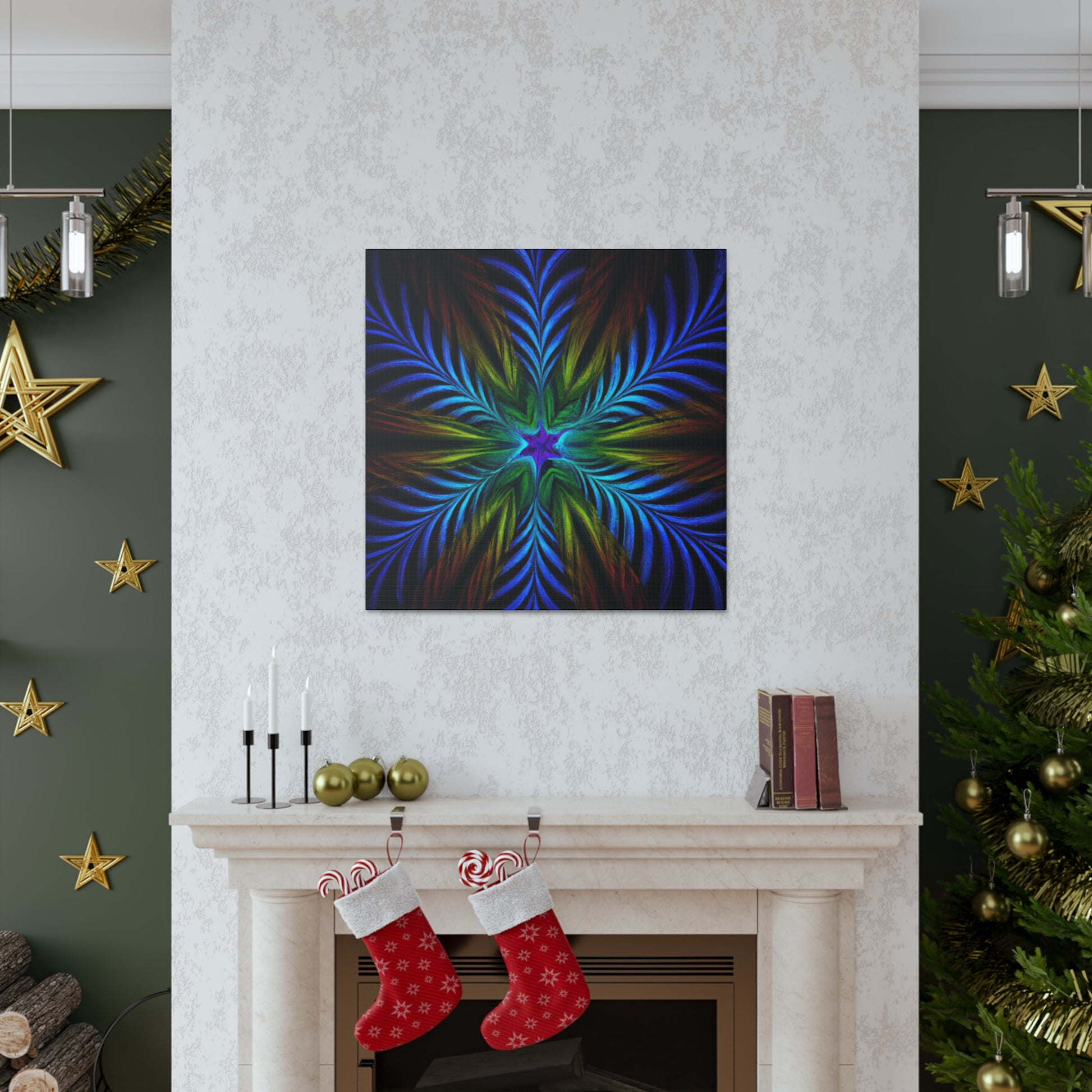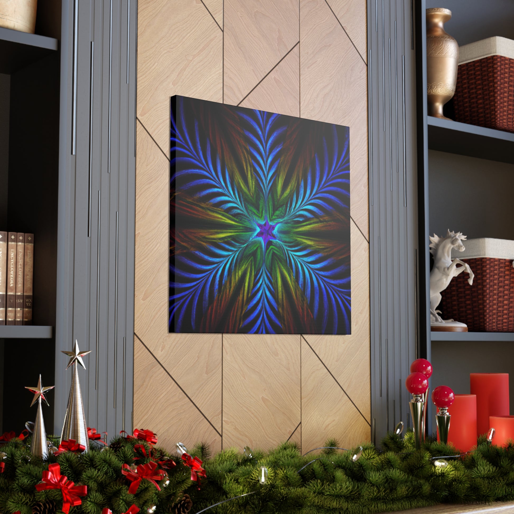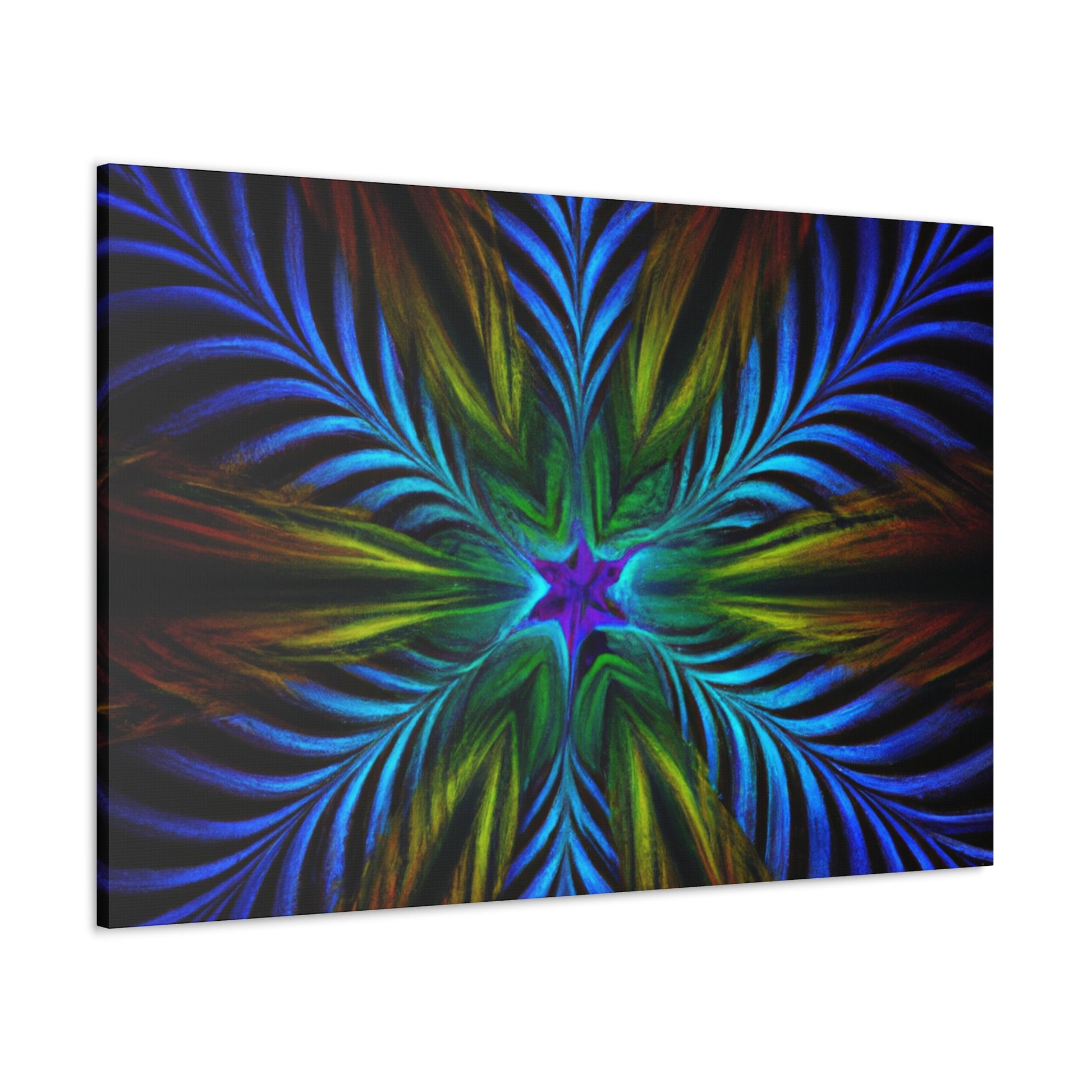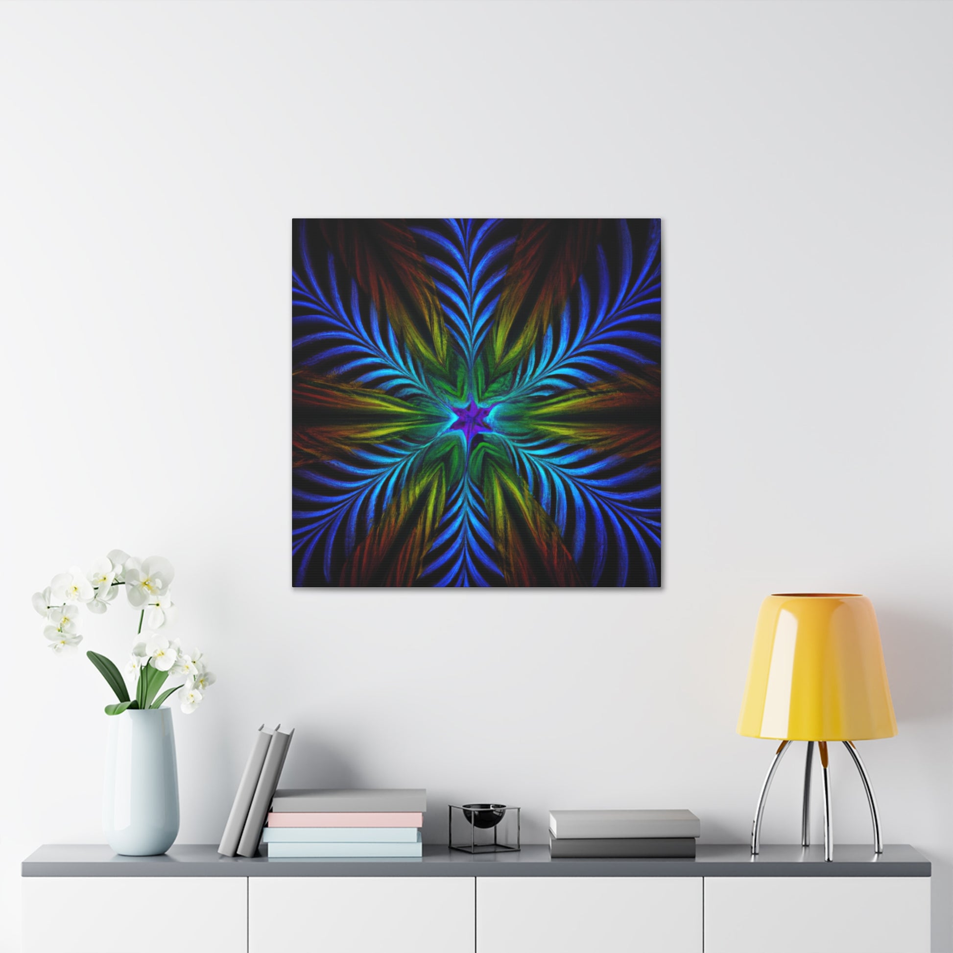 This bold and vibrant canvas features Trippy Geometric Palm Leaves, Kaleidoscope, Abstract, Digital Art, and 3D Lines. The Fractal and Vibrant Colors give this piece a unique depth and its 3D lines add texture to the canvas. This artwork is the perfect accent piece for any wall or office space. #abstractart #digitalart #art #canvas #vibrant #fractal #3dlines #kaleidoscope #geometric #palmleaves #trippy