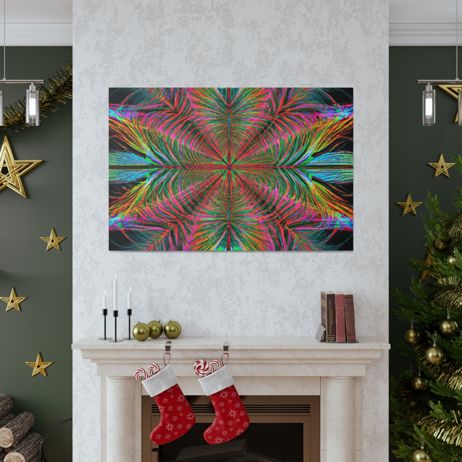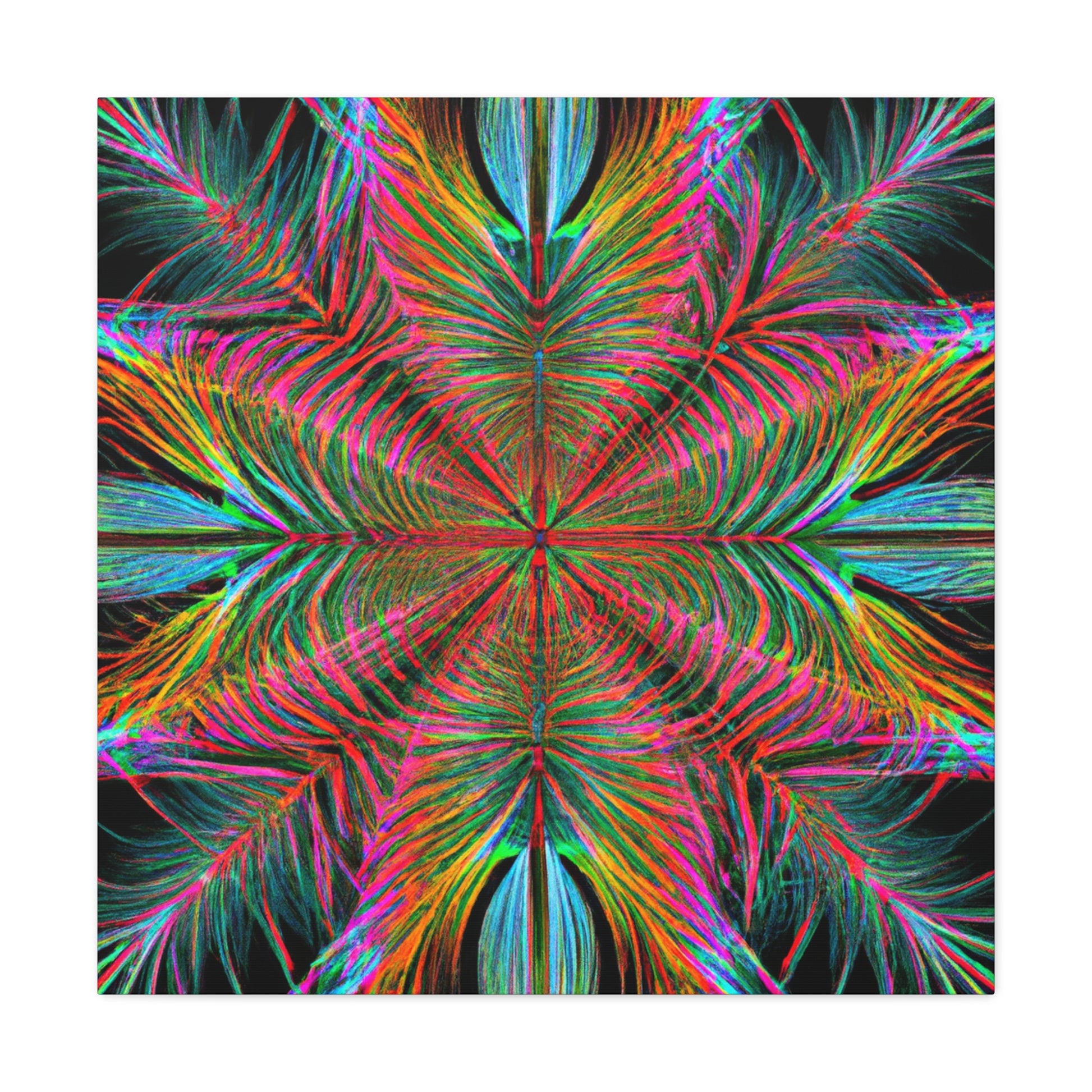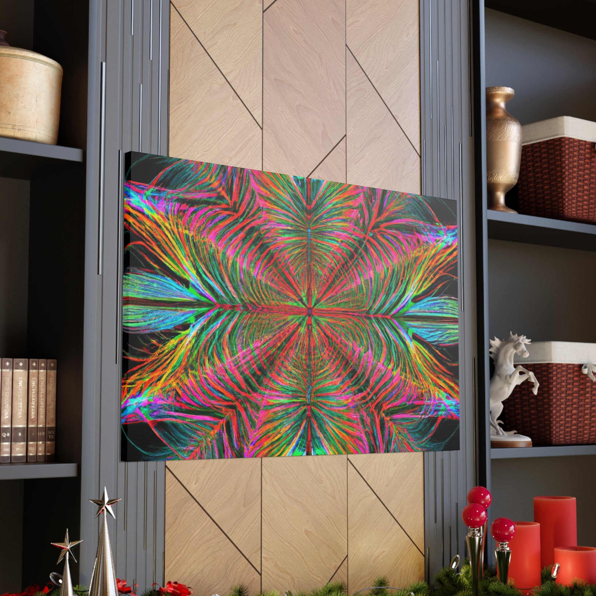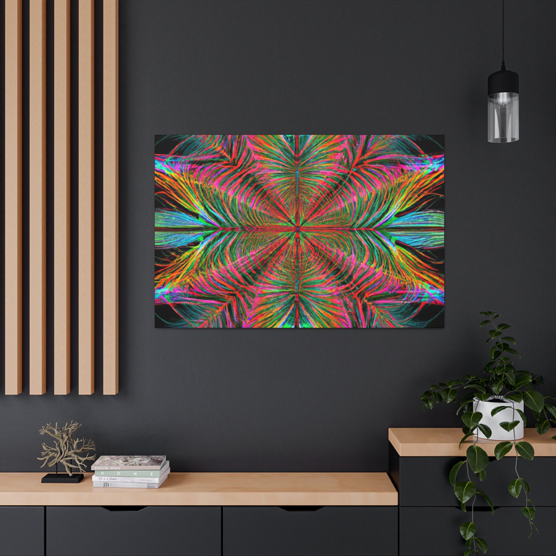Feel the colors and the energy in this Trippy Geometric Palm Leaves kaleidoscope artwork. Featuring 3D lines, vibrant colors, abstract digital art, and fractal designs, this piece will bring your walls to life. The modern colors and designs will be sure to transform any space into something unique and extraordinary. Bring home this stunning canvas and liven up your walls! #trippyart #abstractart #digitalart #canvasart #geometricart #fractaldesigns #kaleidoscope #modernart #vibrantcolors #3dlines #palmleaves