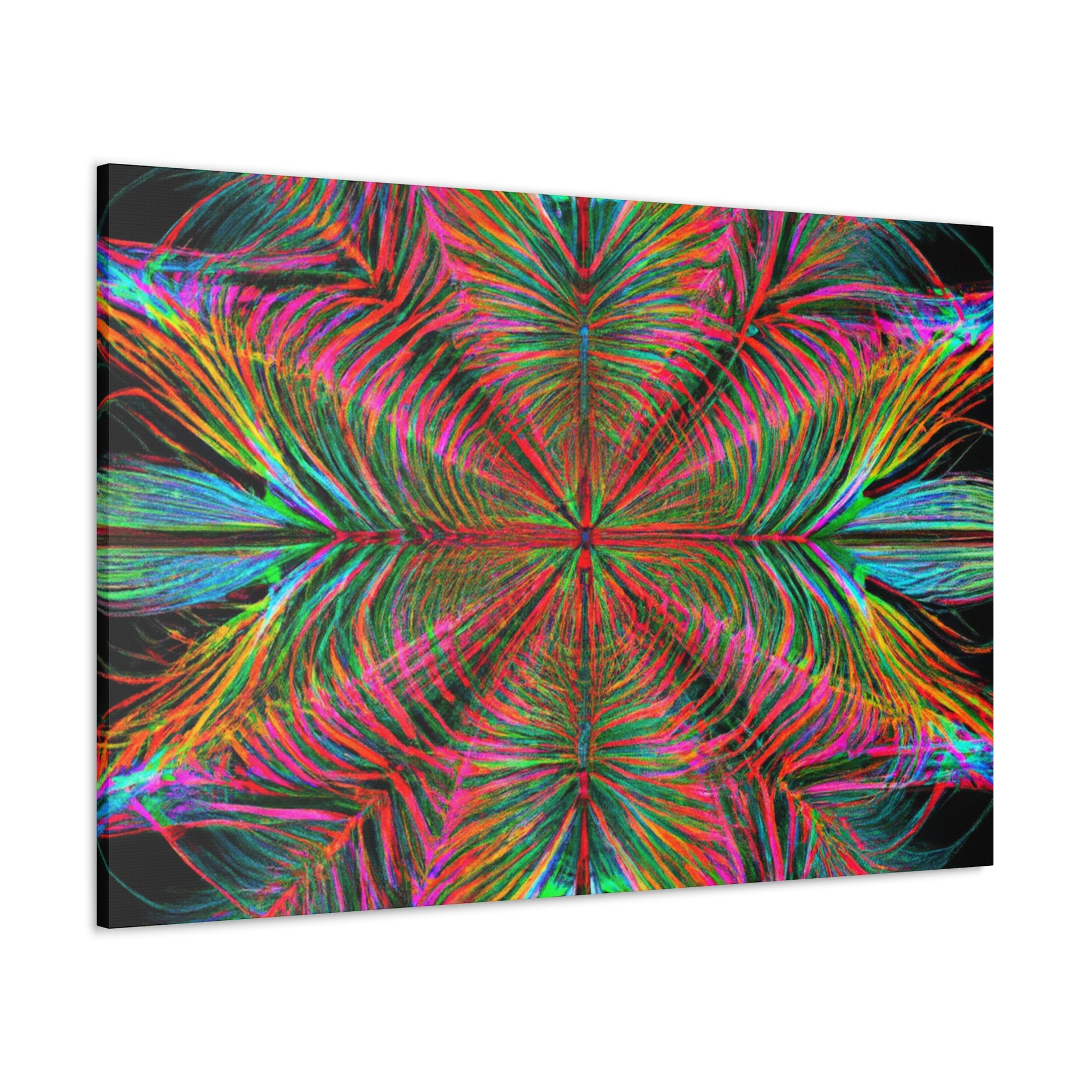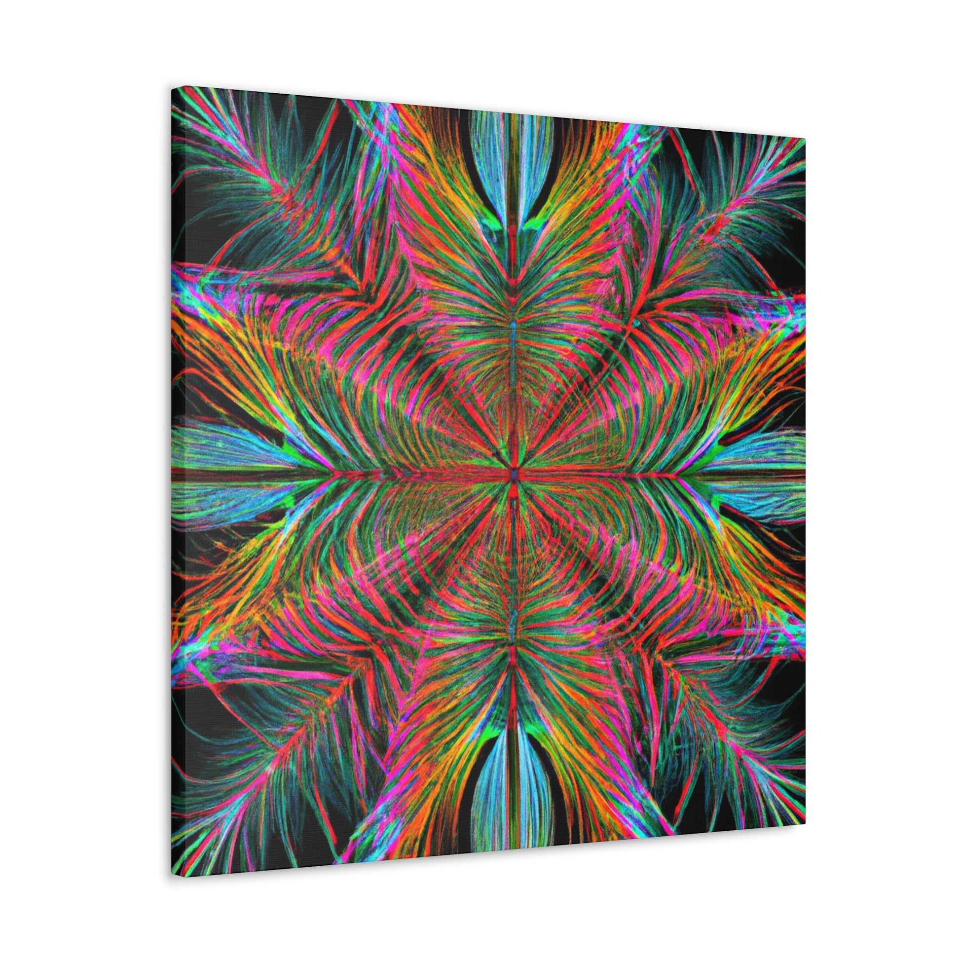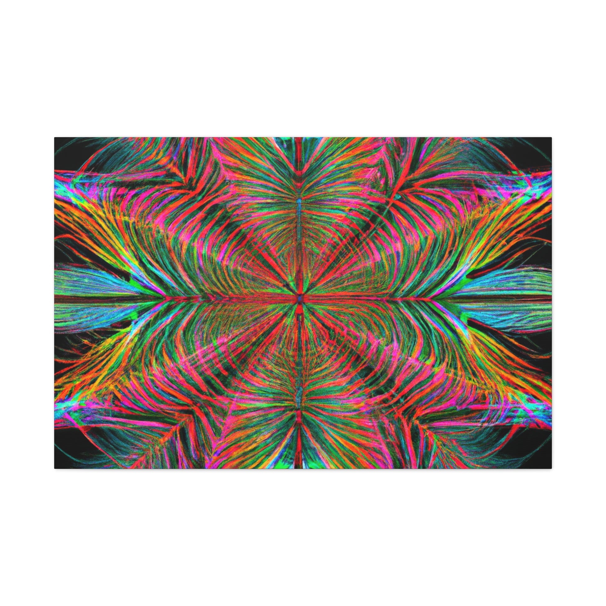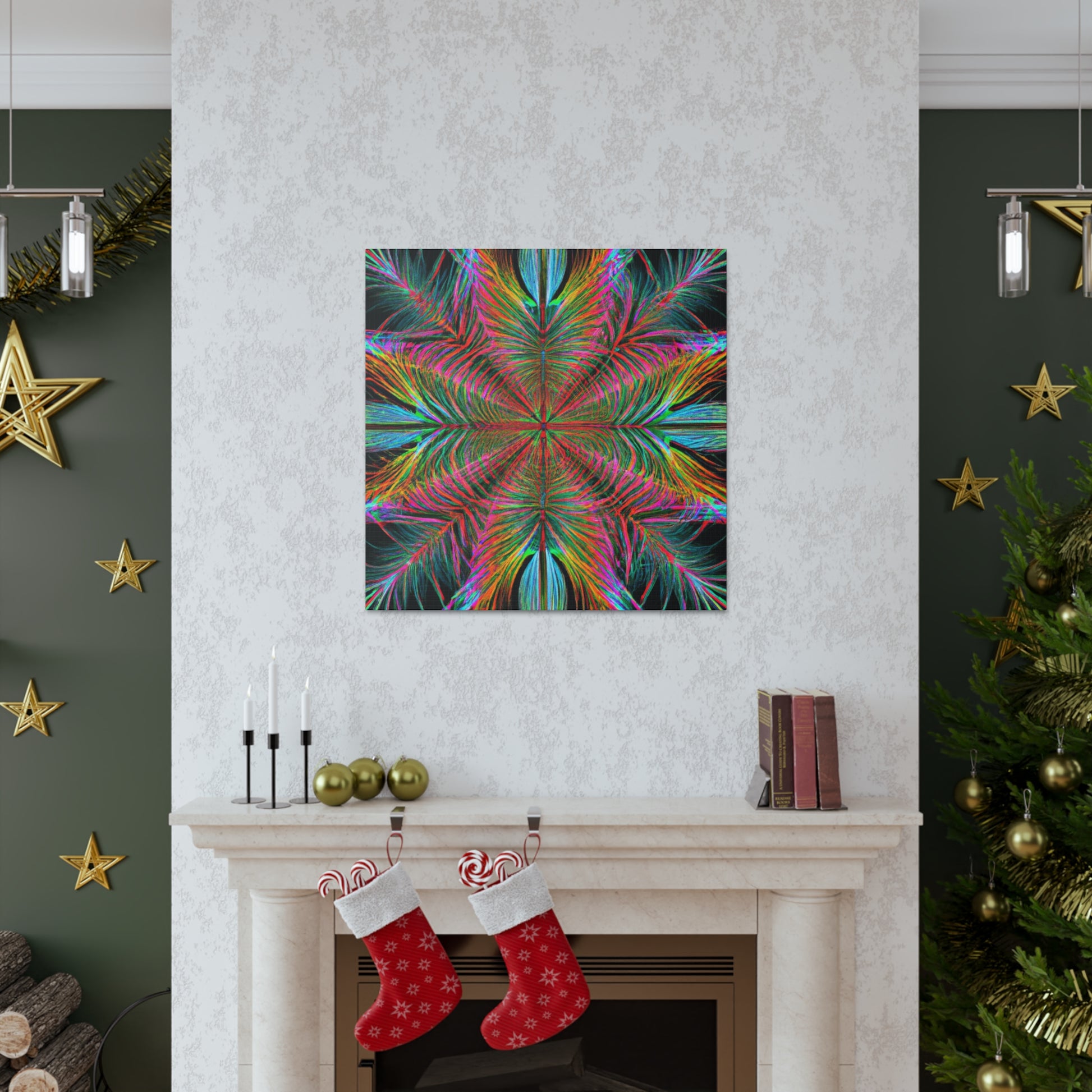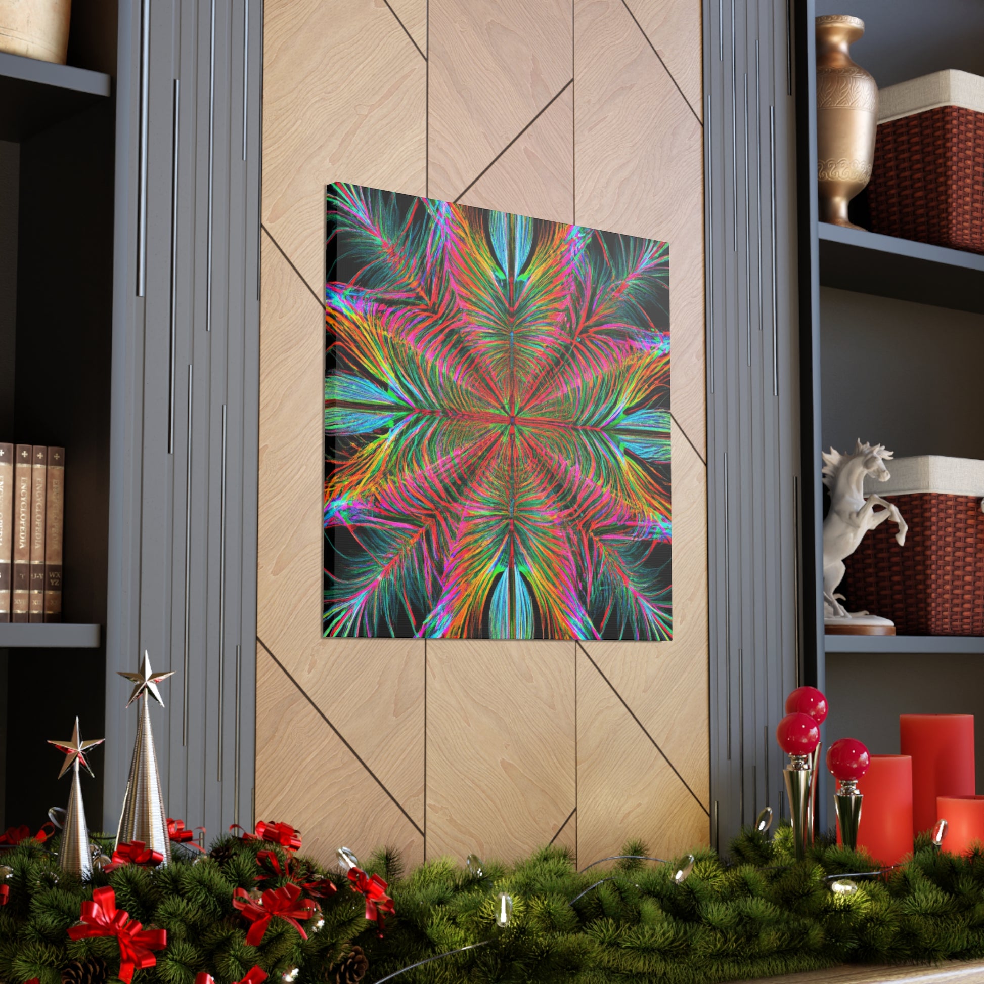 Feel the colors and the energy in this Trippy Geometric Palm Leaves kaleidoscope artwork. Featuring 3D lines, vibrant colors, abstract digital art, and fractal designs, this piece will bring your walls to life. The modern colors and designs will be sure to transform any space into something unique and extraordinary. Bring home this stunning canvas and liven up your walls! #trippyart #abstractart #digitalart #canvasart #geometricart #fractaldesigns #kaleidoscope #modernart #vibrantcolors #3dlines #palmleaves