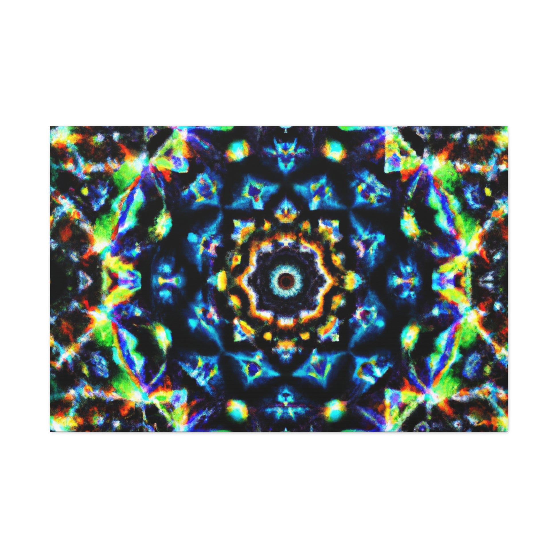This bold and colorful canvas is sure to make a statement in any room. Digital art featuring trippy stars, kaleidoscope patterns, abstract shapes, and vibrant colors will bring your home to life. Printed in HD to ensure sharp detailing and symmetric accuracy, this canvas is sure to draw attention. #BrightColors #Kaleidoscope #TrippyStars #AbstractArt #Vibrant #Symmetrical #HD #HomeDecor #DigitalArt #CanvasPrint #CanvasWallArt