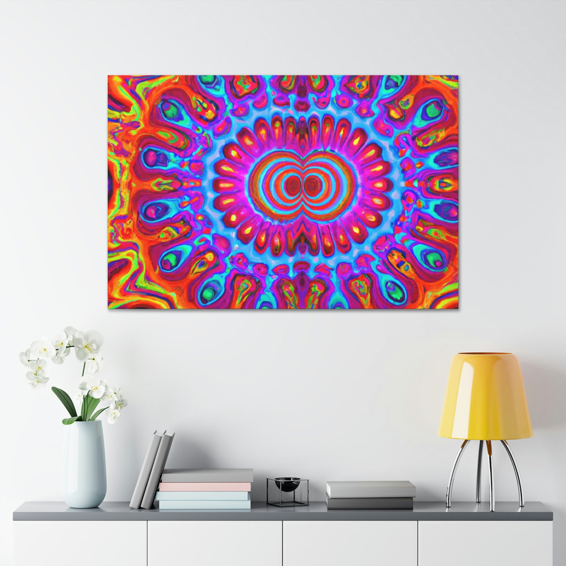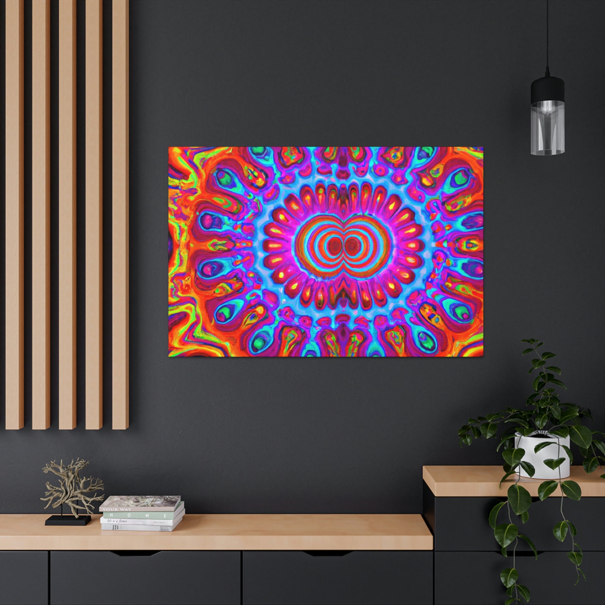 This vibrant and digital trippy canvas art is perfect for bringing color into any interior. Featuring a kaleidoscope of mushrooms, abstract shapes, and vivid 3D lines, this piece is sure to add character to any room. Let your imagination fly and bring fun and flavor to any space with this unique canvas art! #trippy #mushrooms #kaleidoscope #abstract #digitalart #vibrantcolors #3dlines #canvasart #homedecor #artdecor #interiordesign