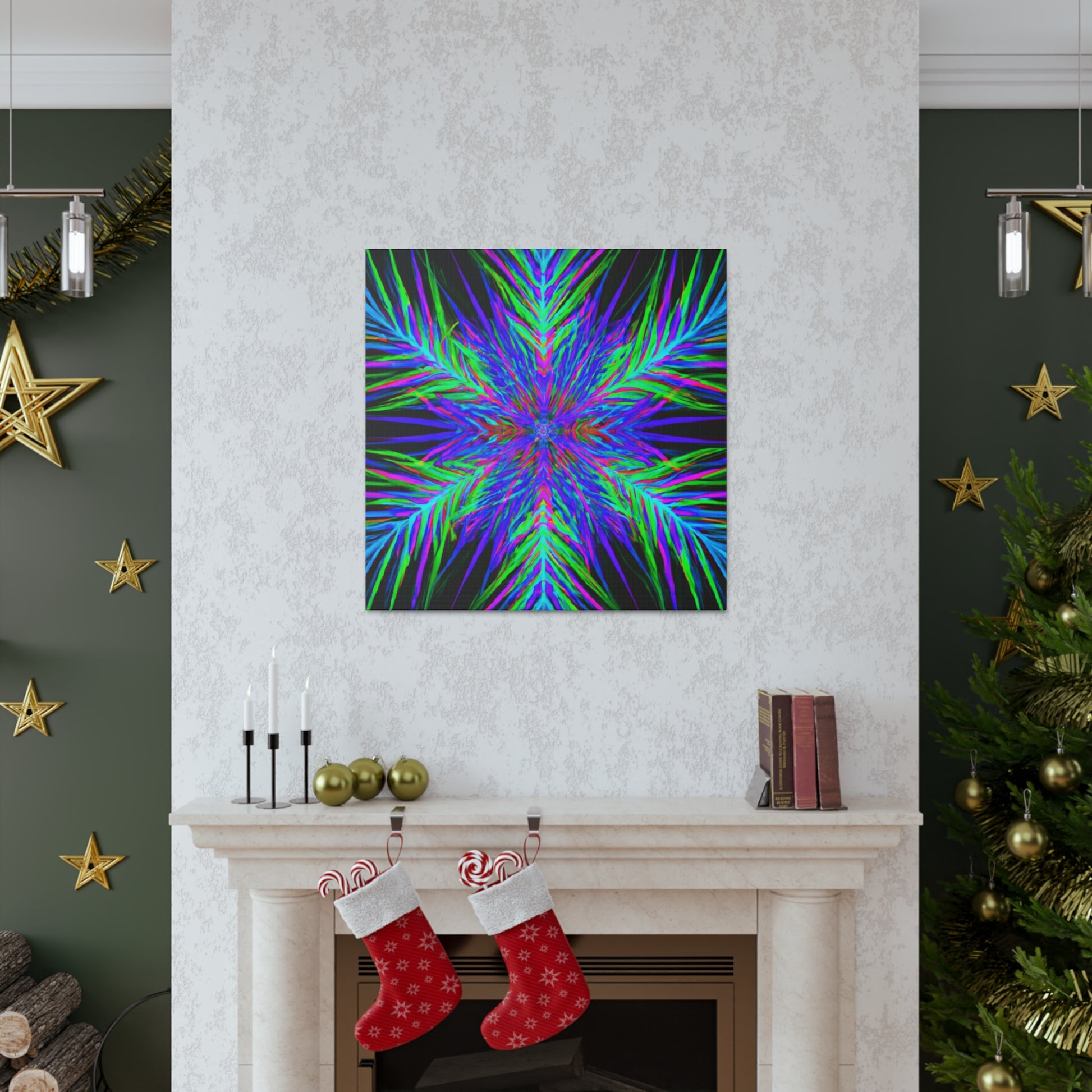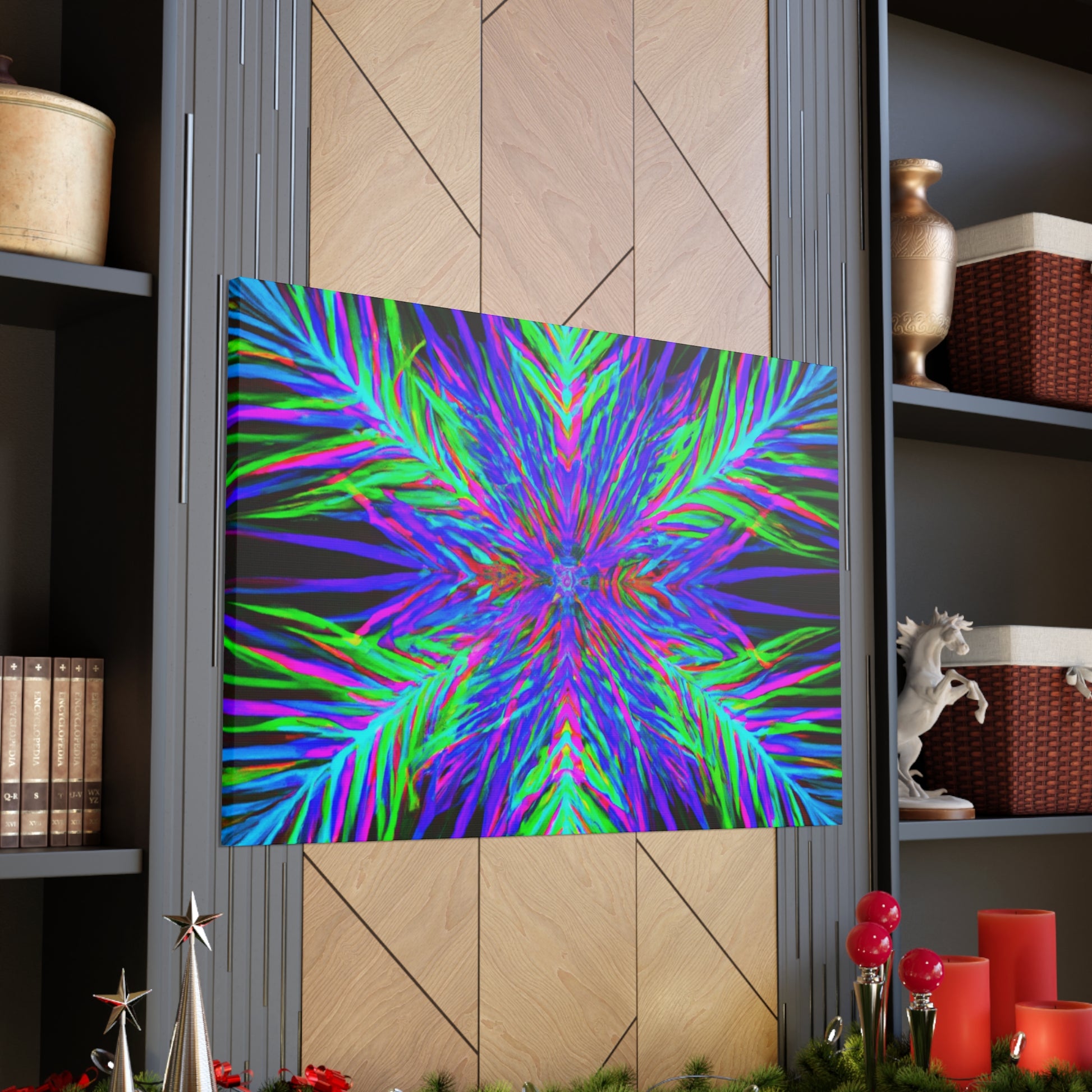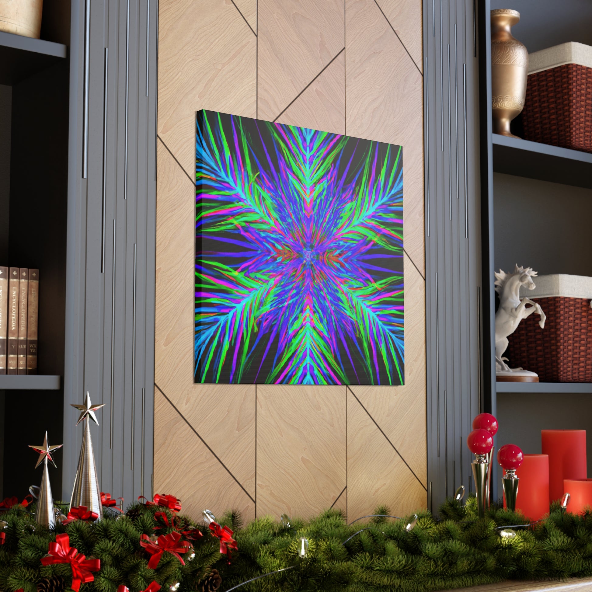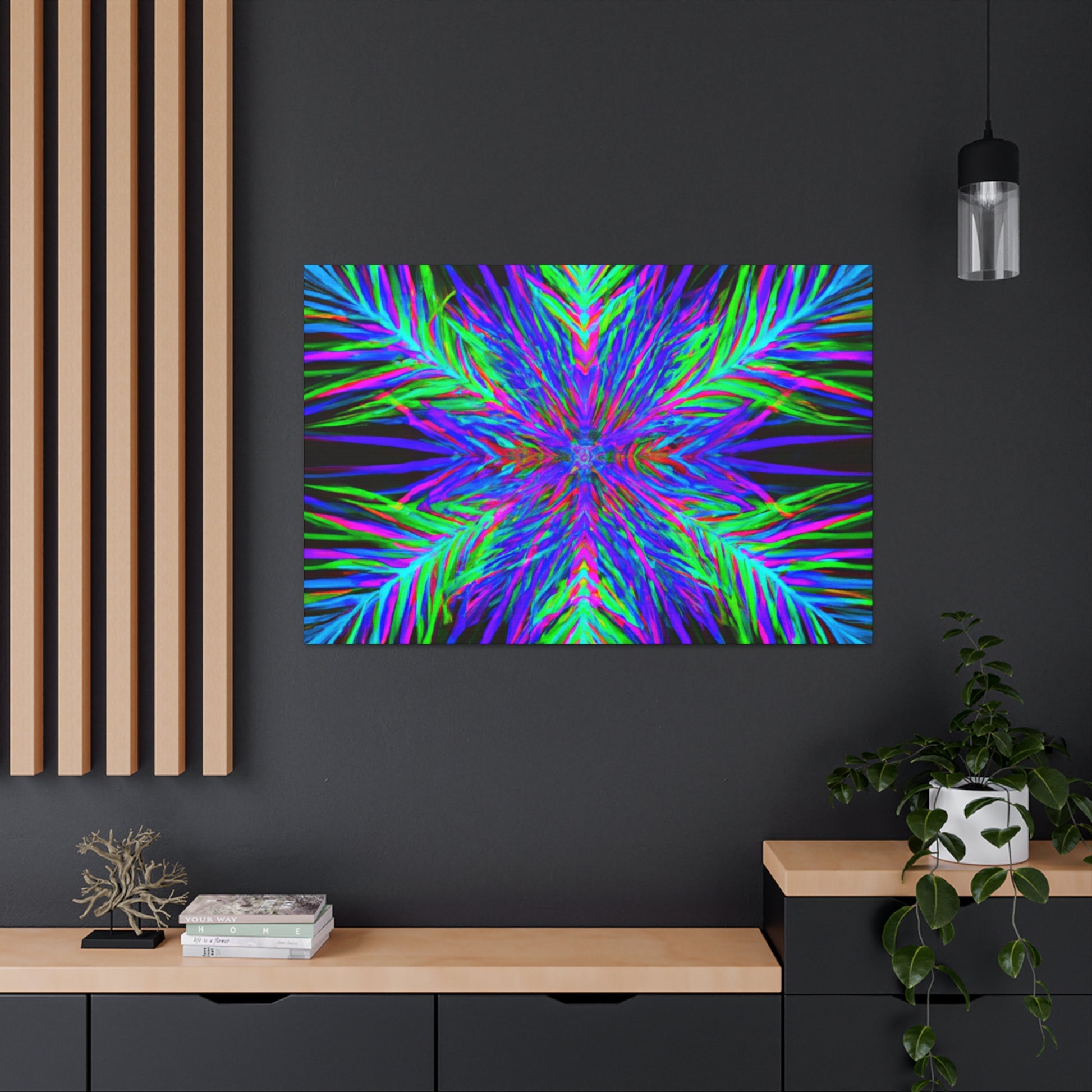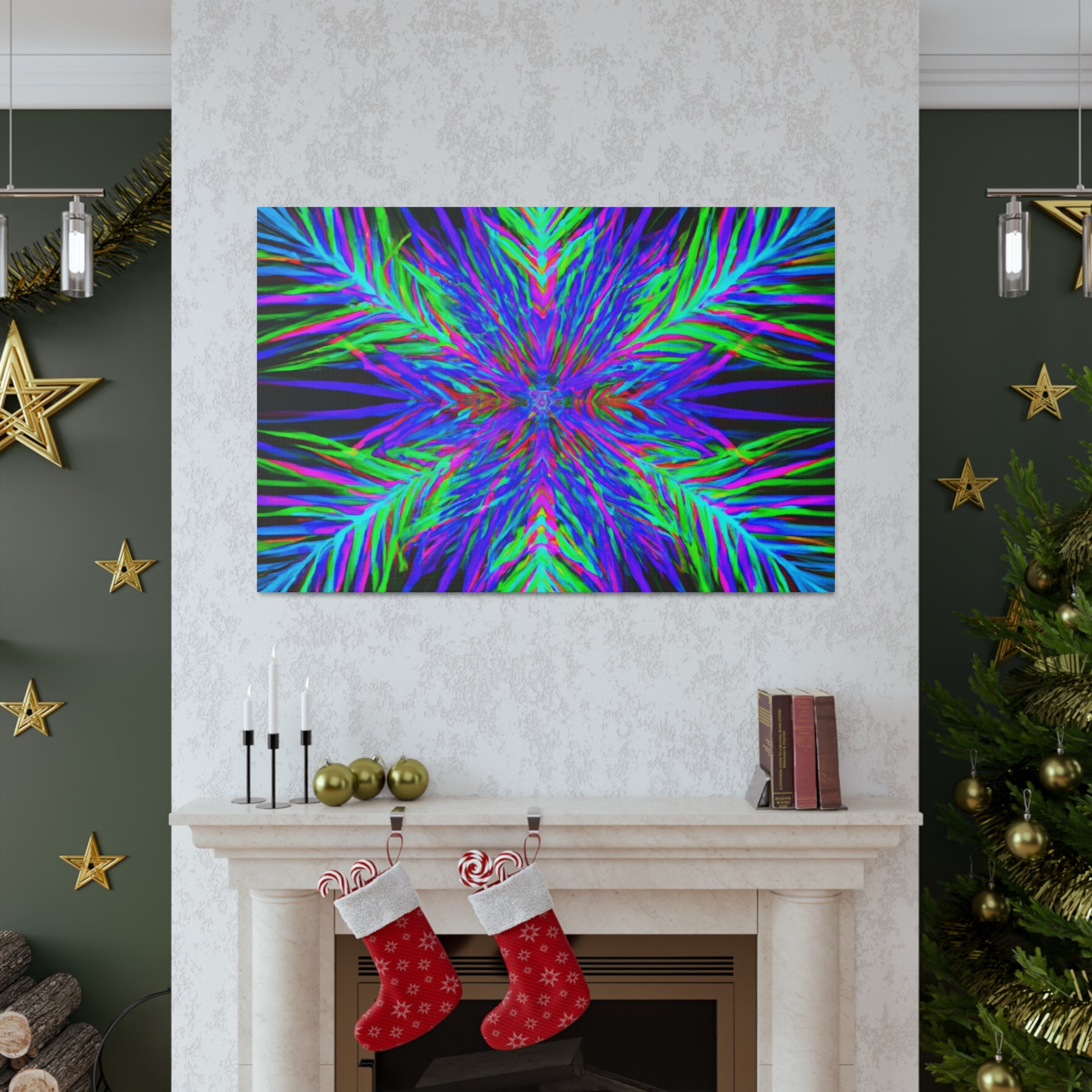 This mesmerizing canvas art piece features trippy geometric palm leaves, abstract shapes, and stunning digital art in vibrant colors and 3D lines. Its kaleidoscope pattern and lively fractal design will be the ideal conversation starter and a beautiful addition to any wall. #WallArt #DigitalArt #CanvasArt #Abstract #AbstractPainting #Fractal #Kaleidoscope #GeometricArt #VibrantColors #3DLines #PalmLeaves