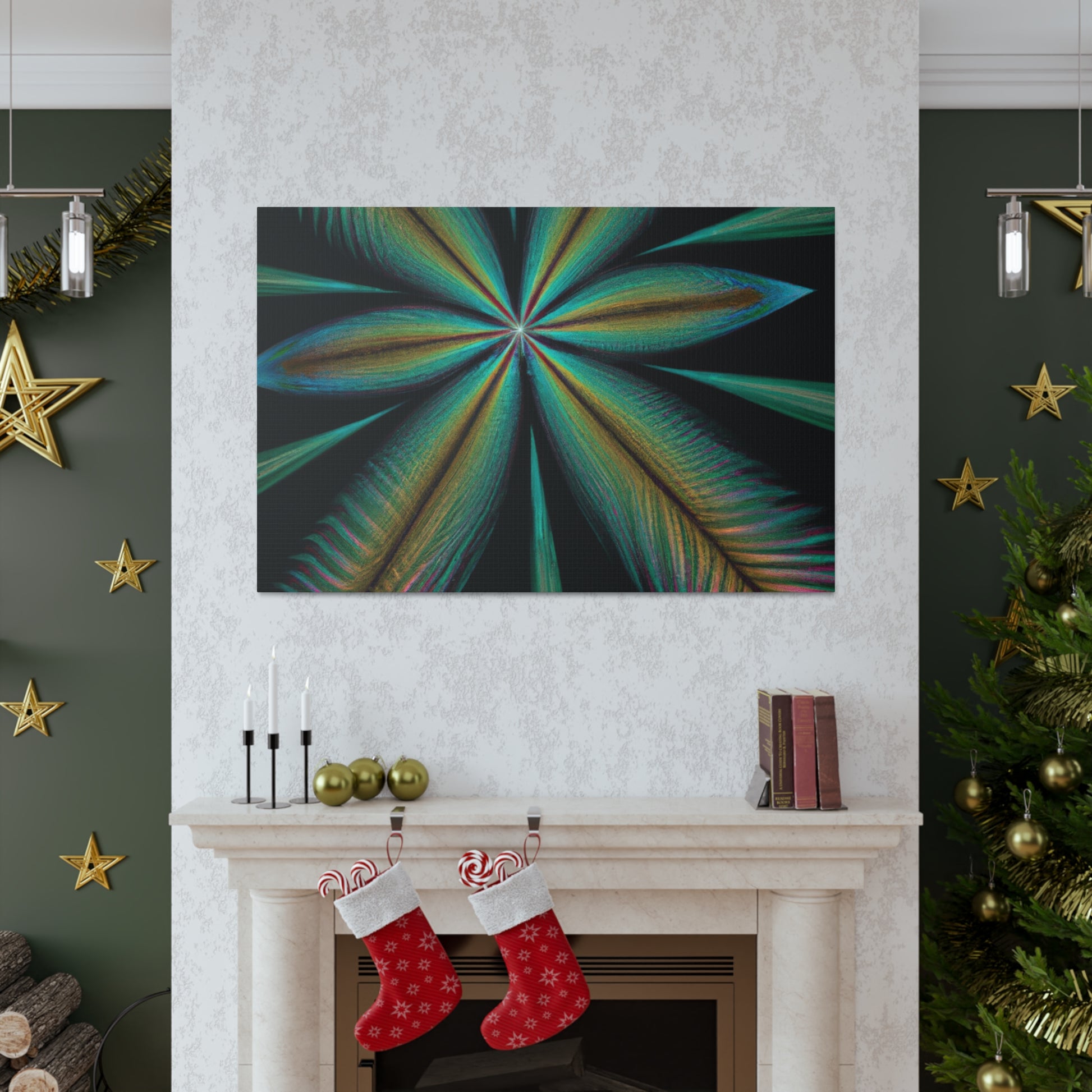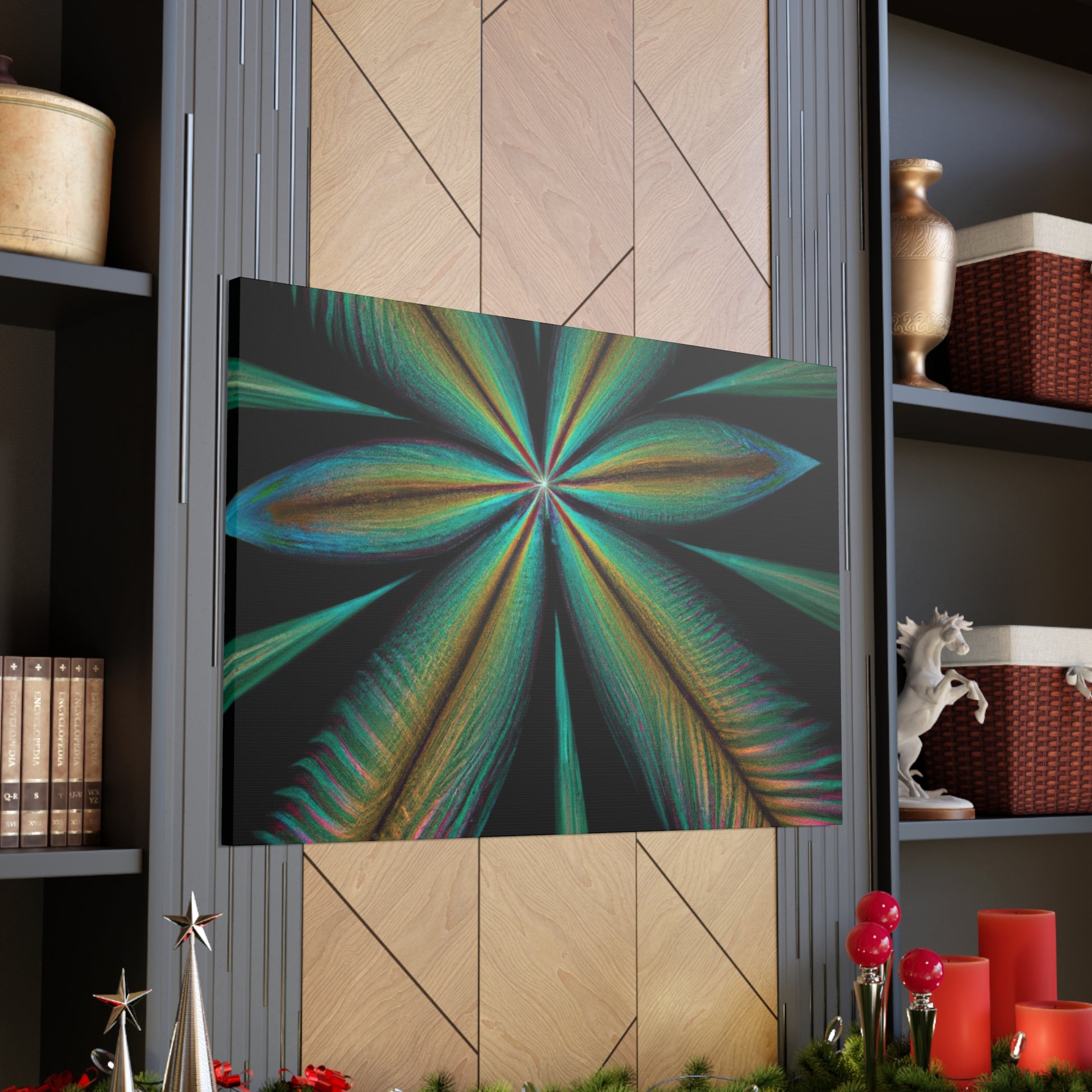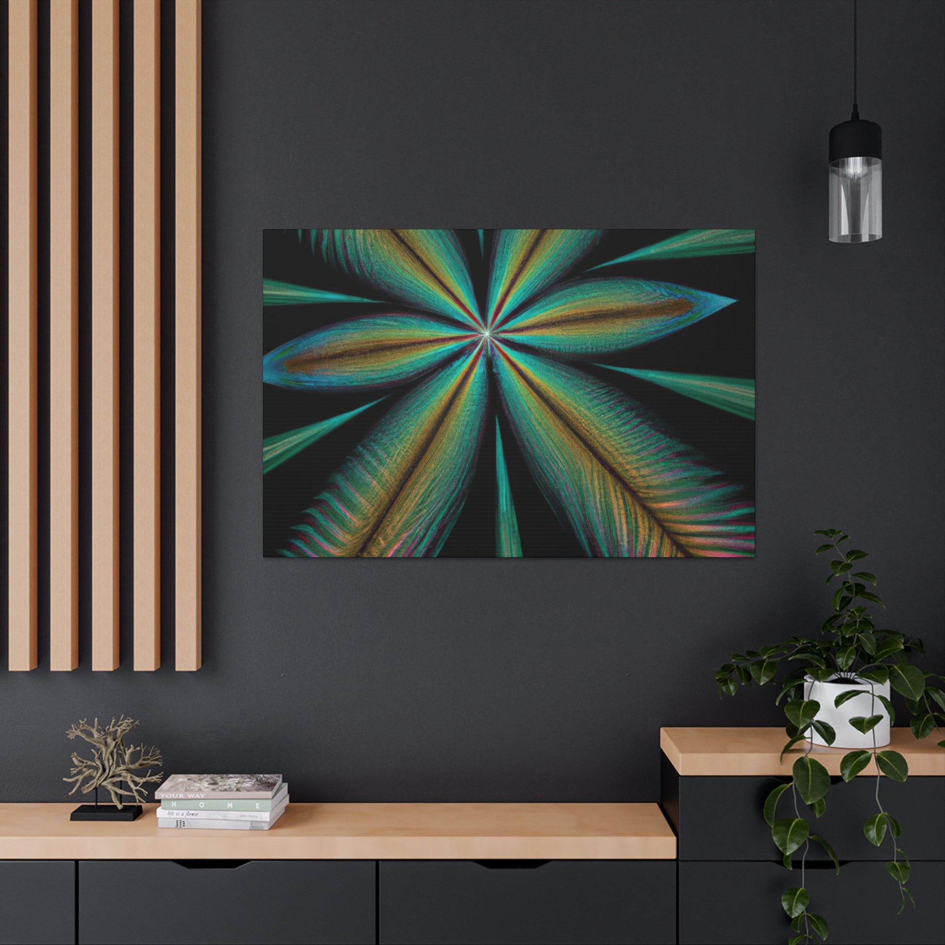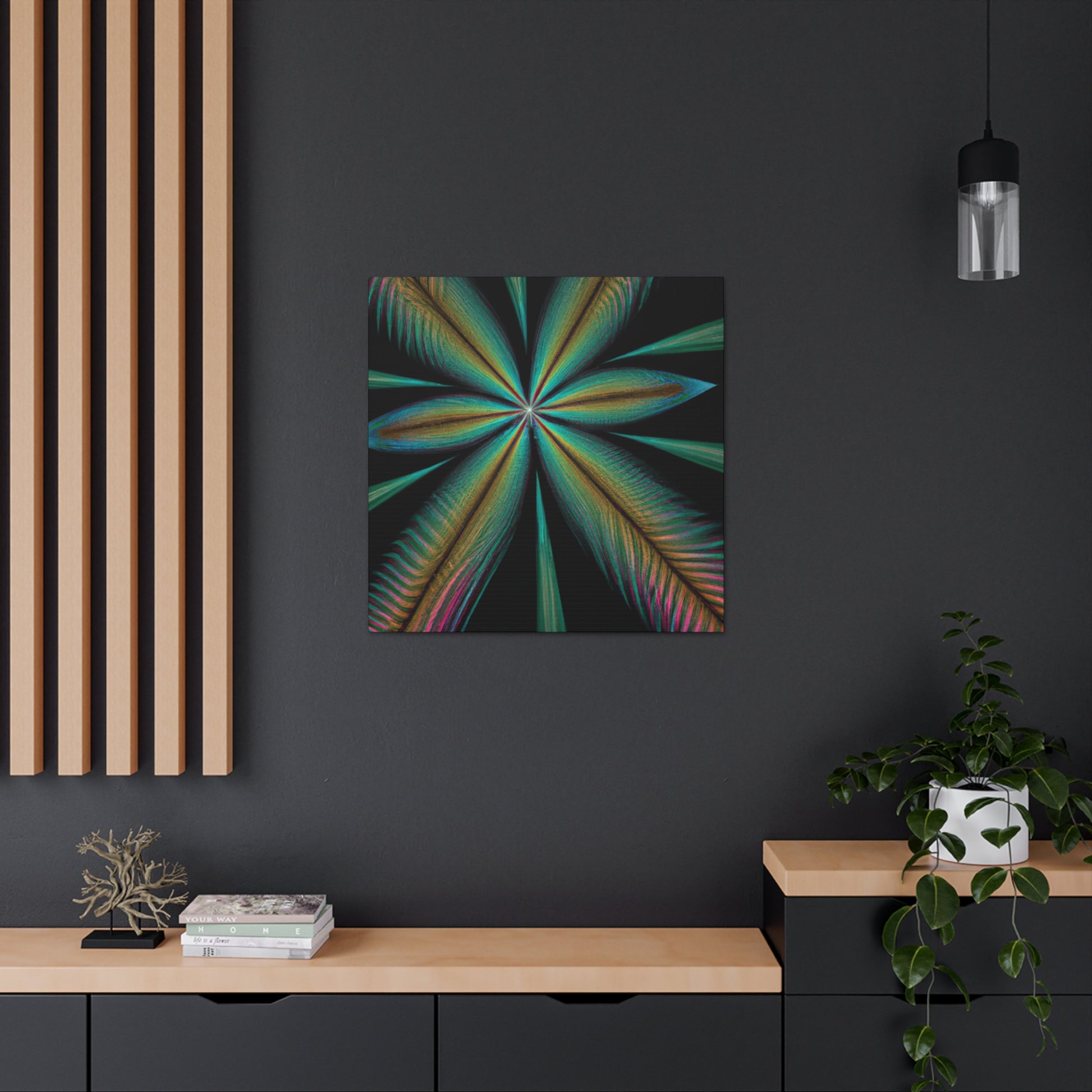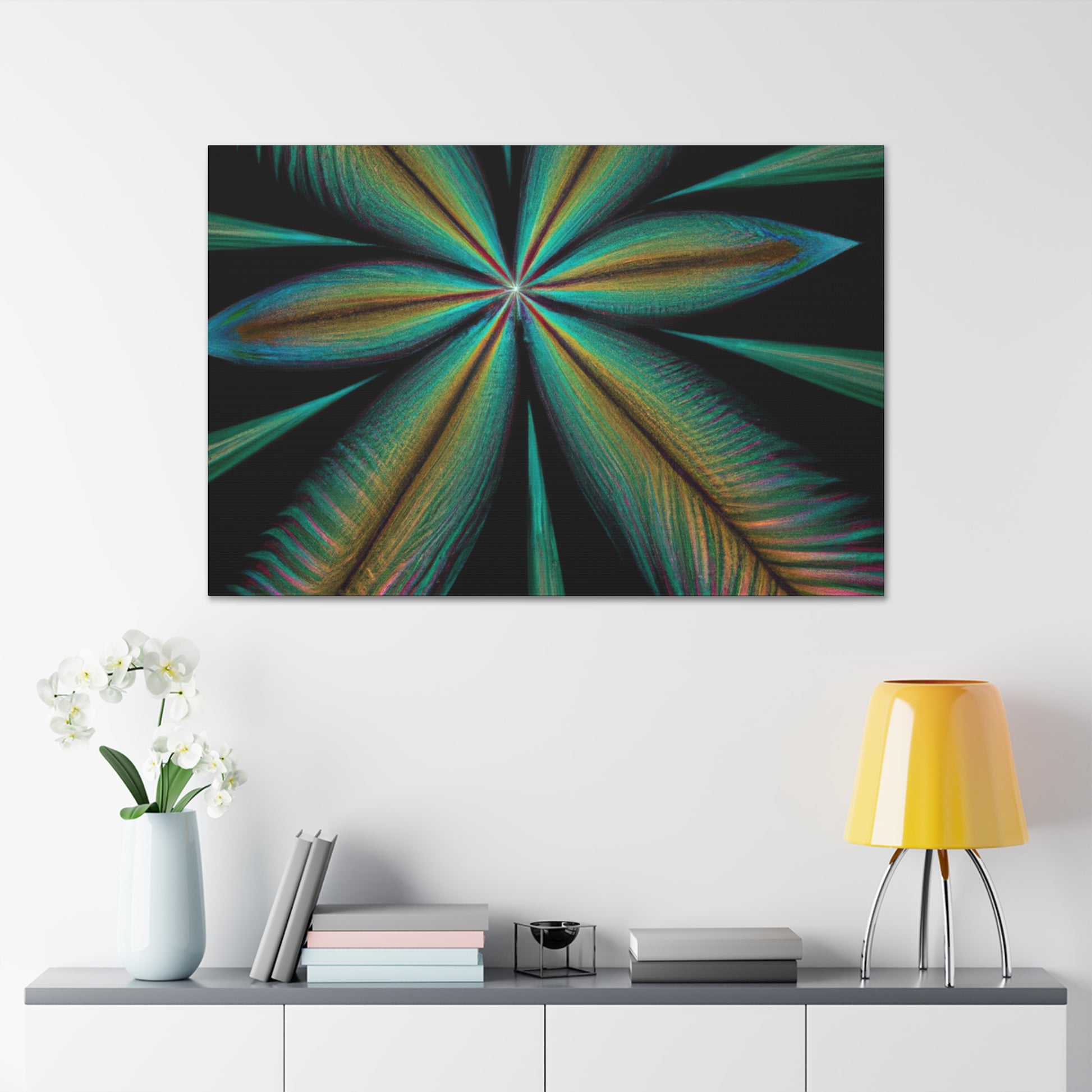 This vibrant abstract digital art canvas will bring life to any home or office! A colorful mixture of Trippy Geometric Palm Leaves, kaleidoscope, 3D lines and fractal make this piece unforgettable. Enjoy the fusion of bright colors and contemporary art and let your walls shine with this striking design. #abstract #digitalart #kaleidoscope #palmleaves #trippy #vibrantcolors #3dlines #fractal #geometric #art #contemporaryart