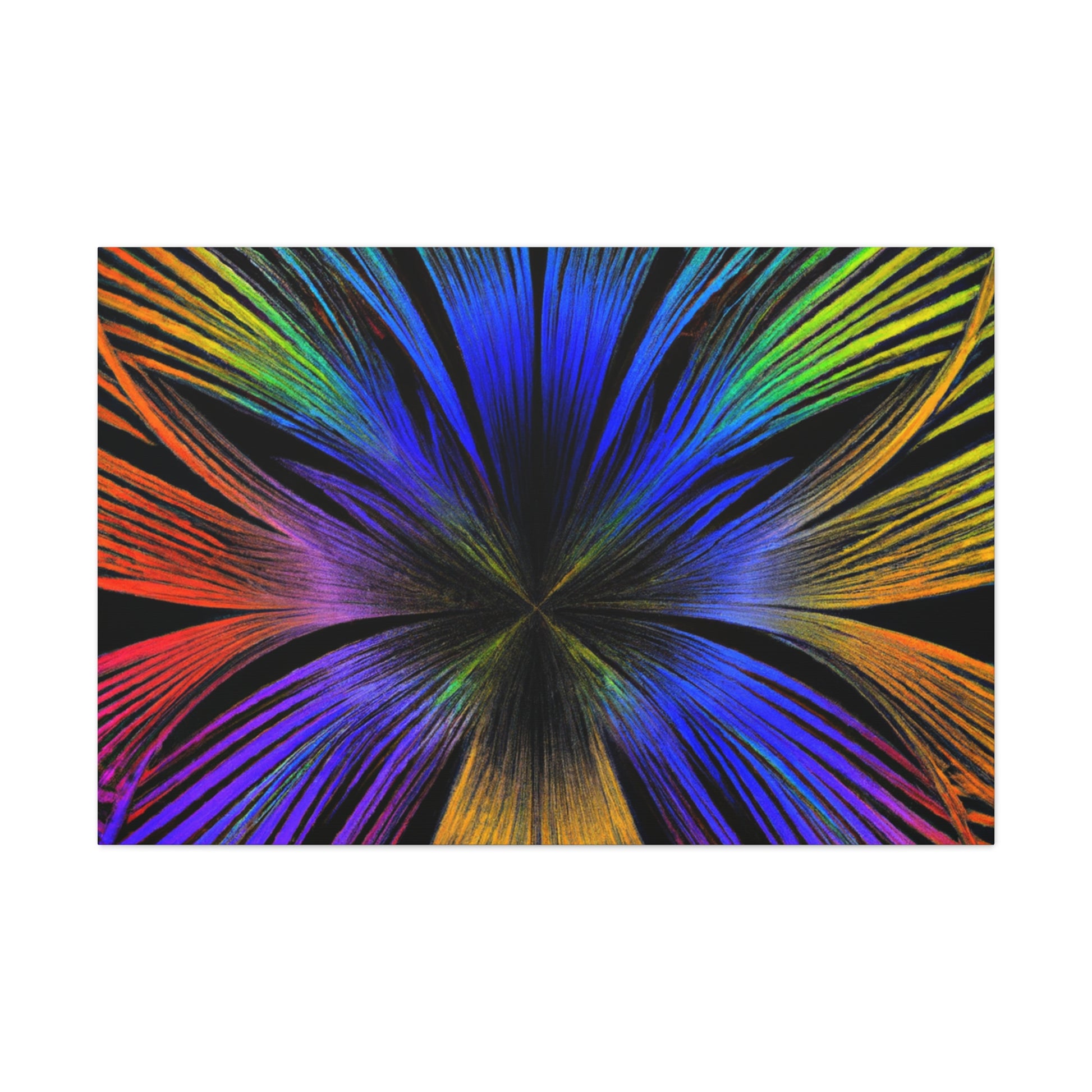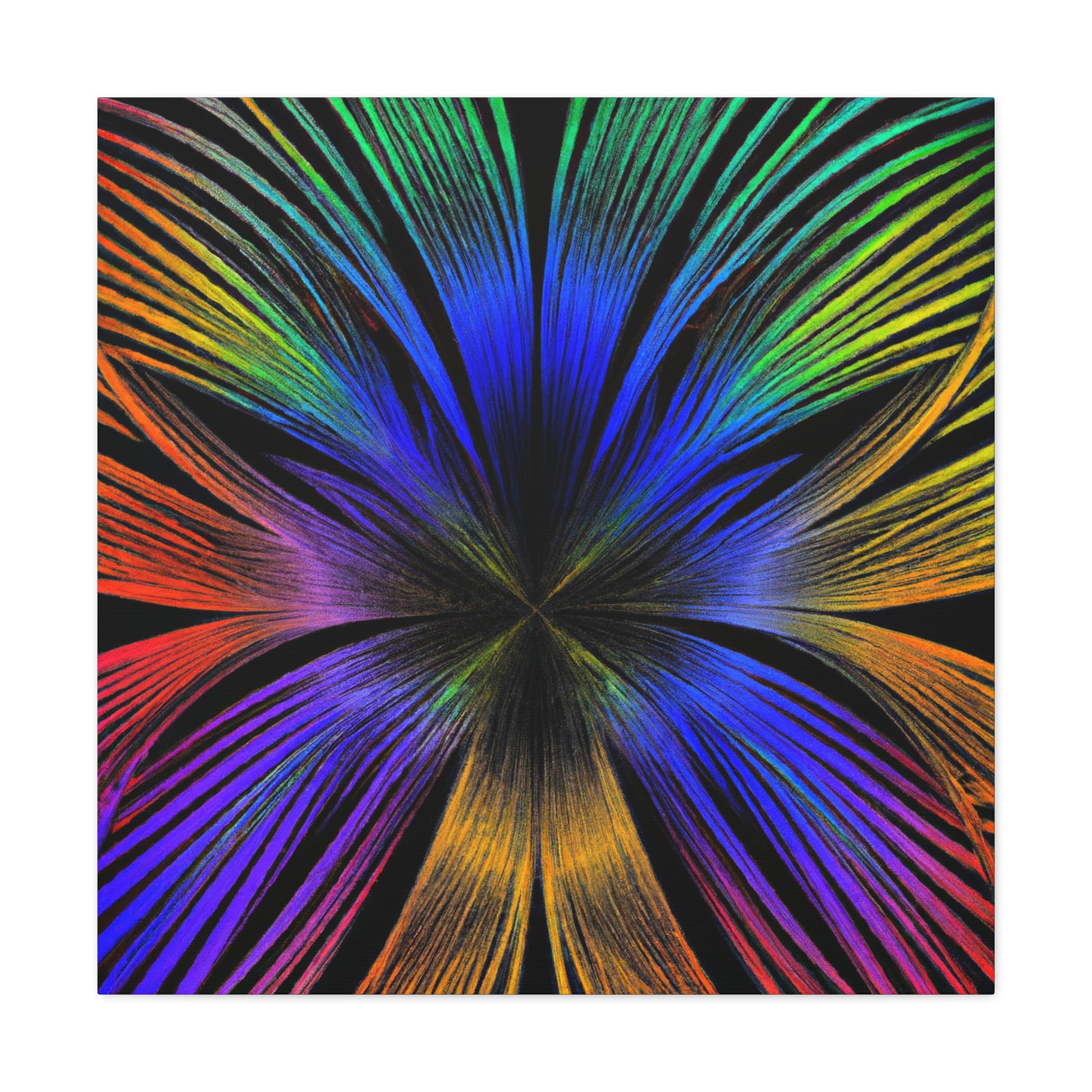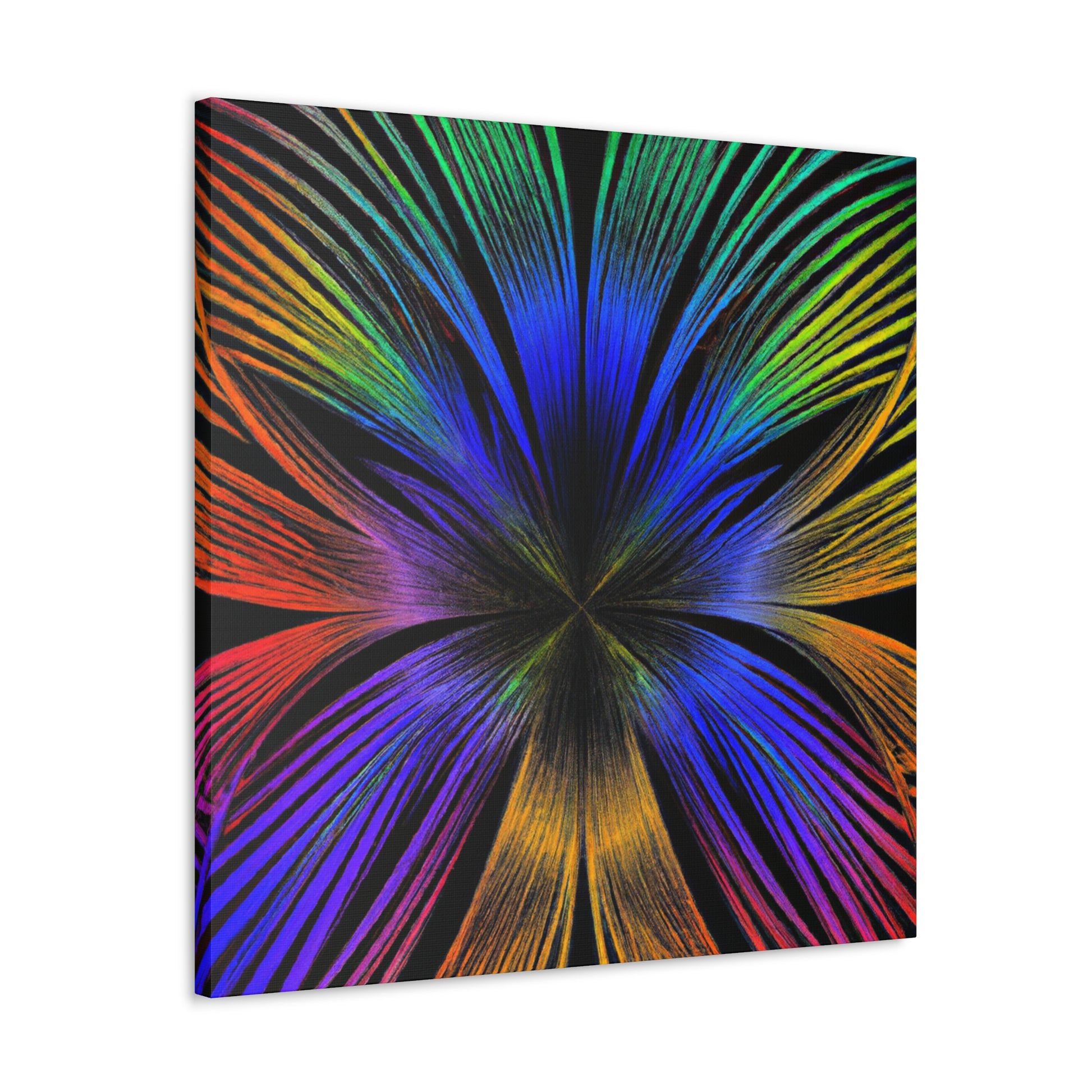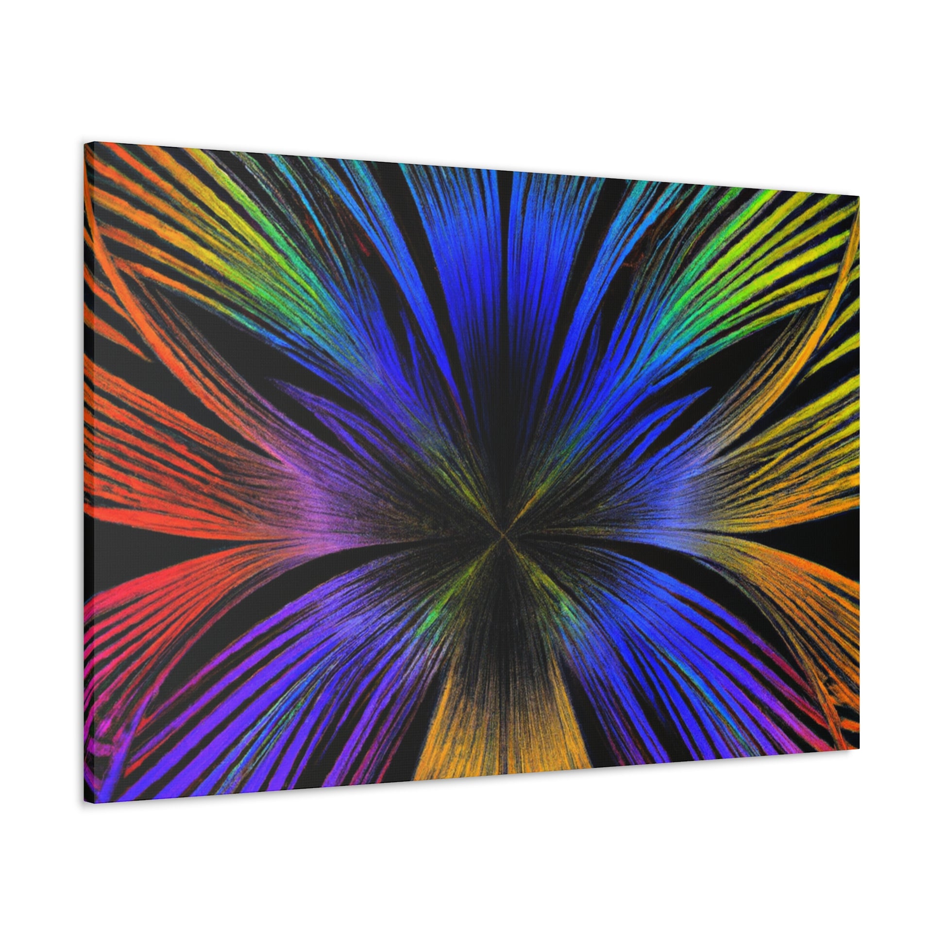 A canvas of Trippy Geometric Palm Leaves, Kaleidoscope, Abstract, Digital Art, and Vibrant Colors is the perfect accent for your wall. The 3D lines, fractal design, and bright colors create an inspiring and unique piece of art for your home. Let this piece bring a bit of color and creativity to your life. #Kaleidoscope #Abstract #DigitalArt #VibrantColors #3dLines #Fractal #Canvas #Creative #Inspiring #Artistic #HomeDecor