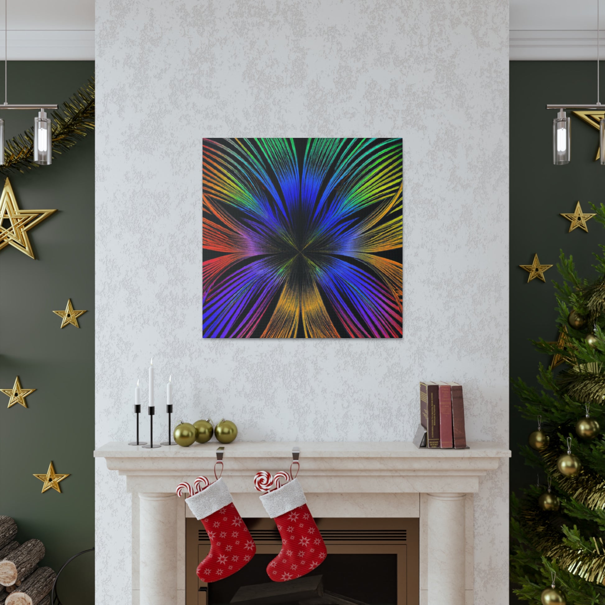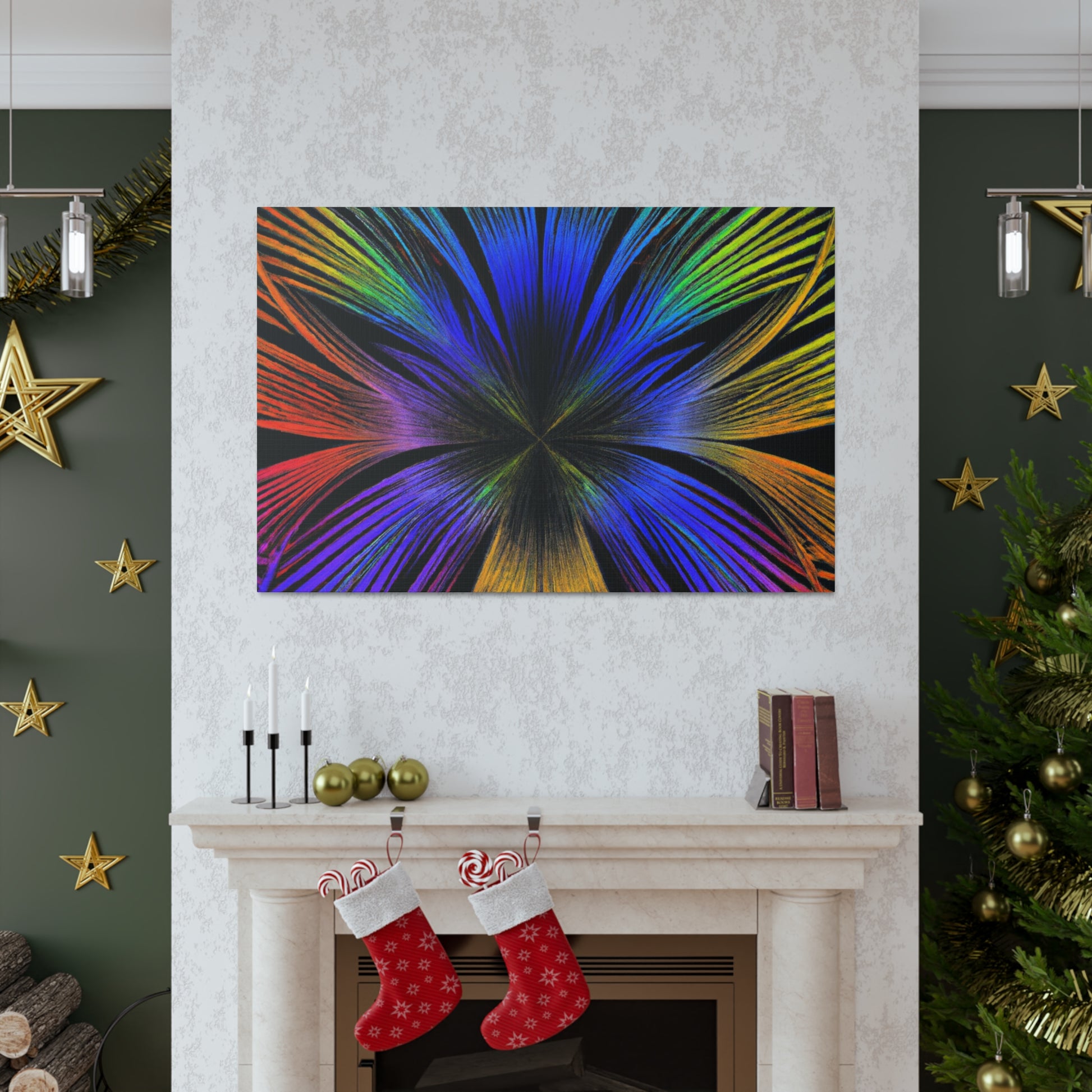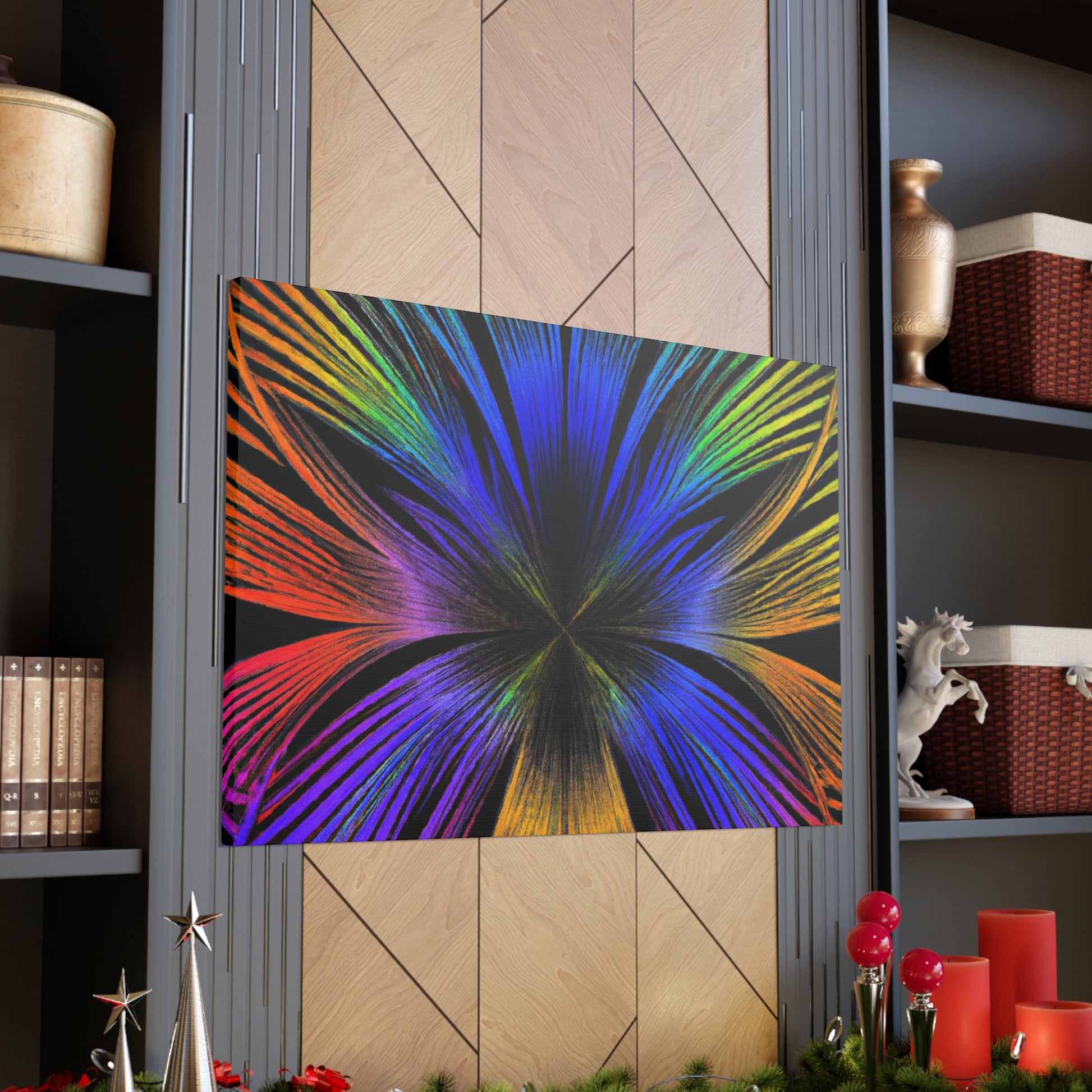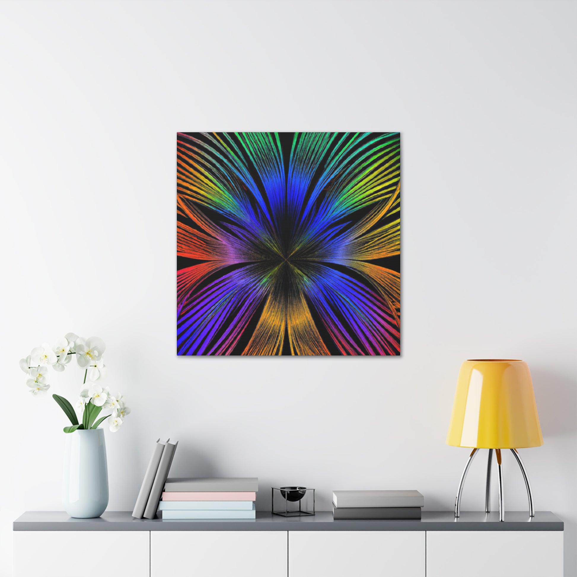 A canvas of Trippy Geometric Palm Leaves, Kaleidoscope, Abstract, Digital Art, and Vibrant Colors is the perfect accent for your wall. The 3D lines, fractal design, and bright colors create an inspiring and unique piece of art for your home. Let this piece bring a bit of color and creativity to your life. #Kaleidoscope #Abstract #DigitalArt #VibrantColors #3dLines #Fractal #Canvas #Creative #Inspiring #Artistic #HomeDecor
