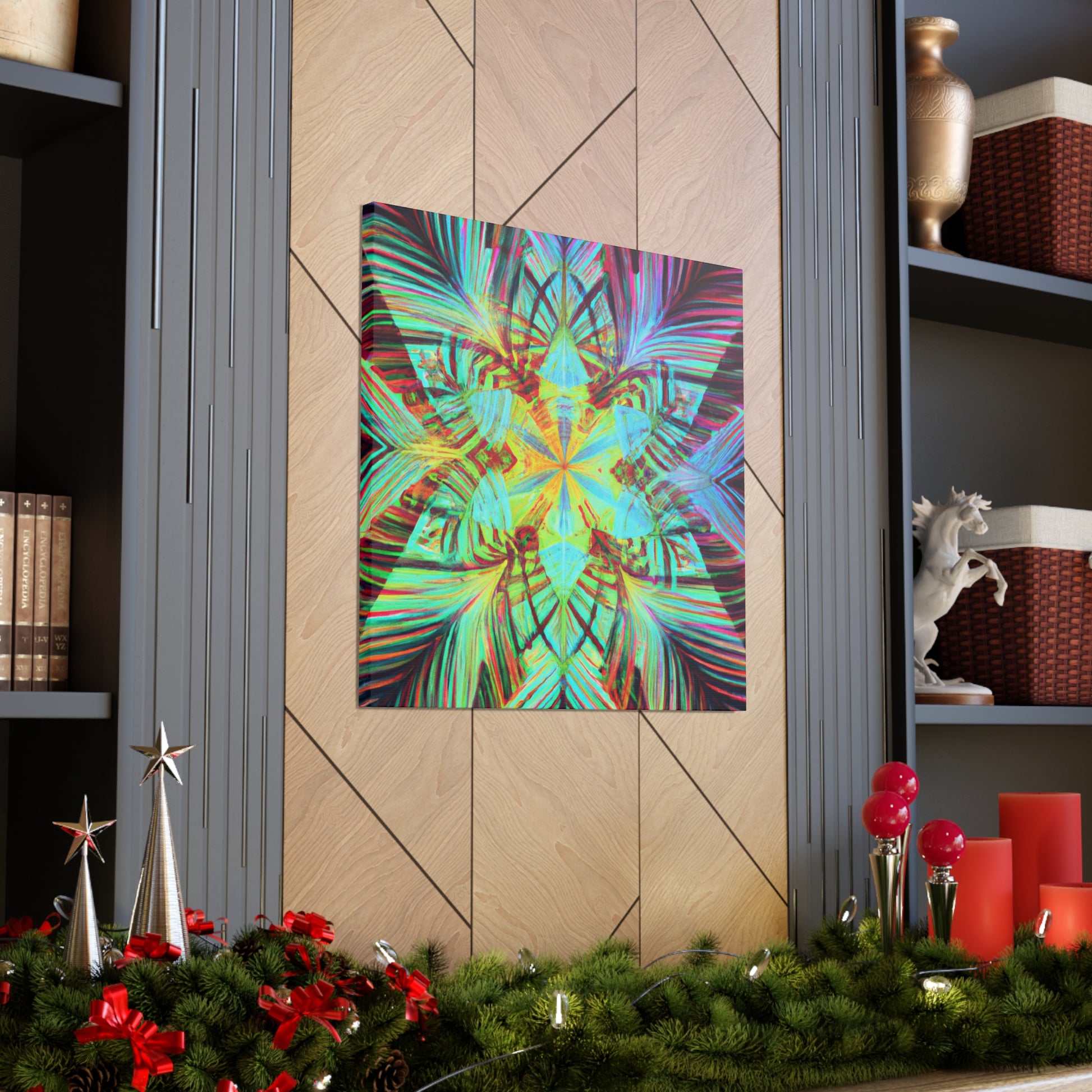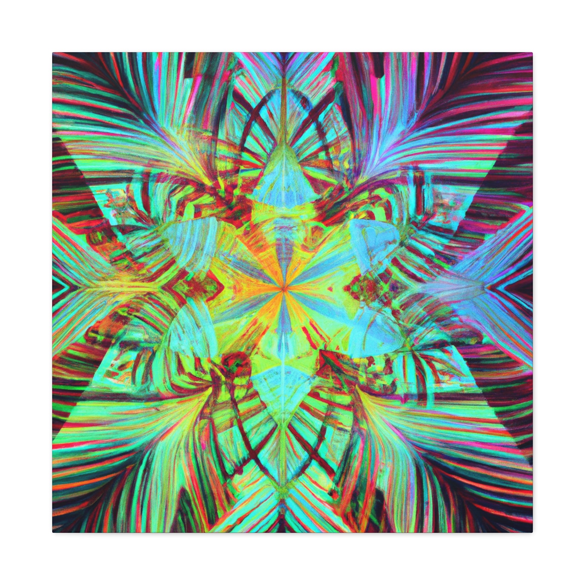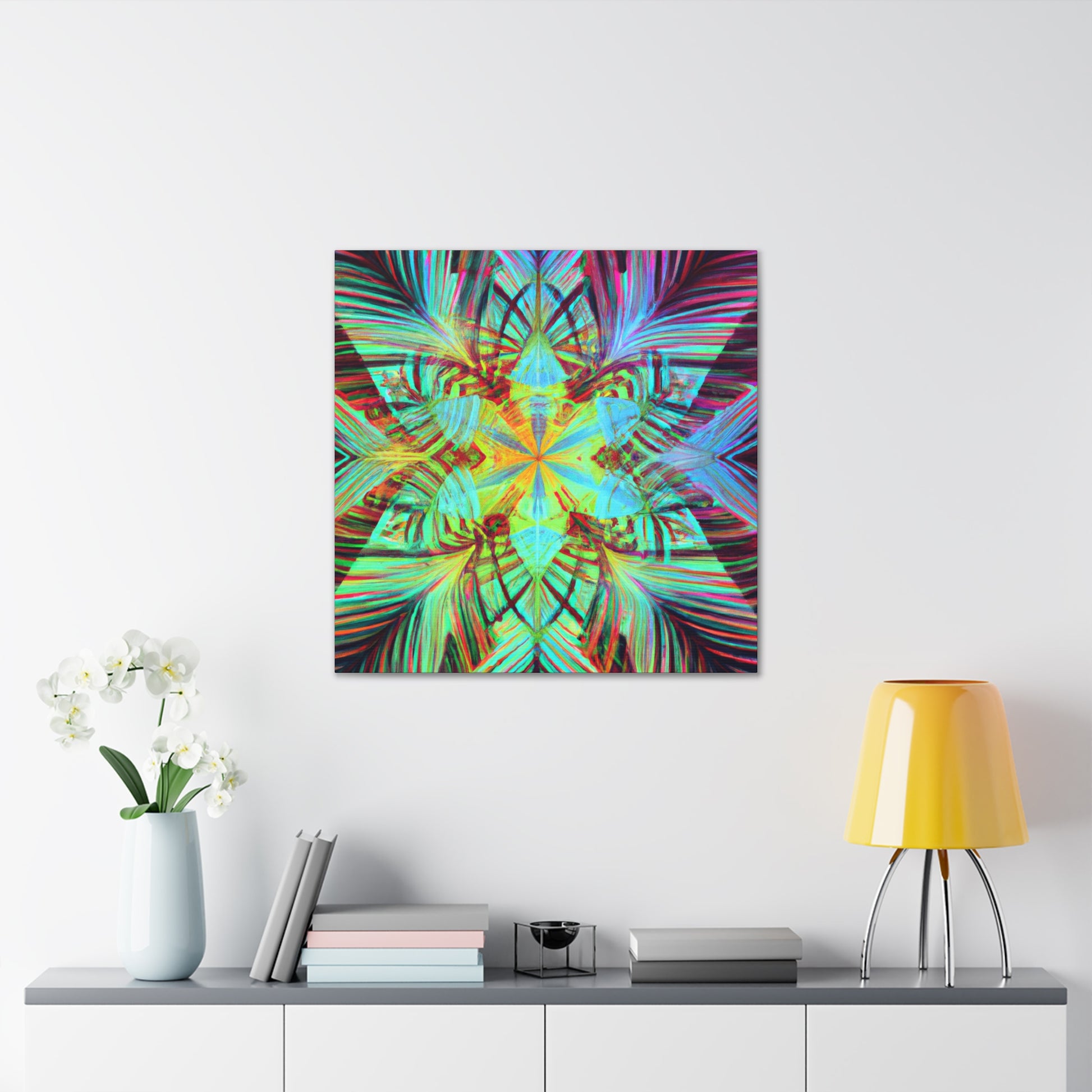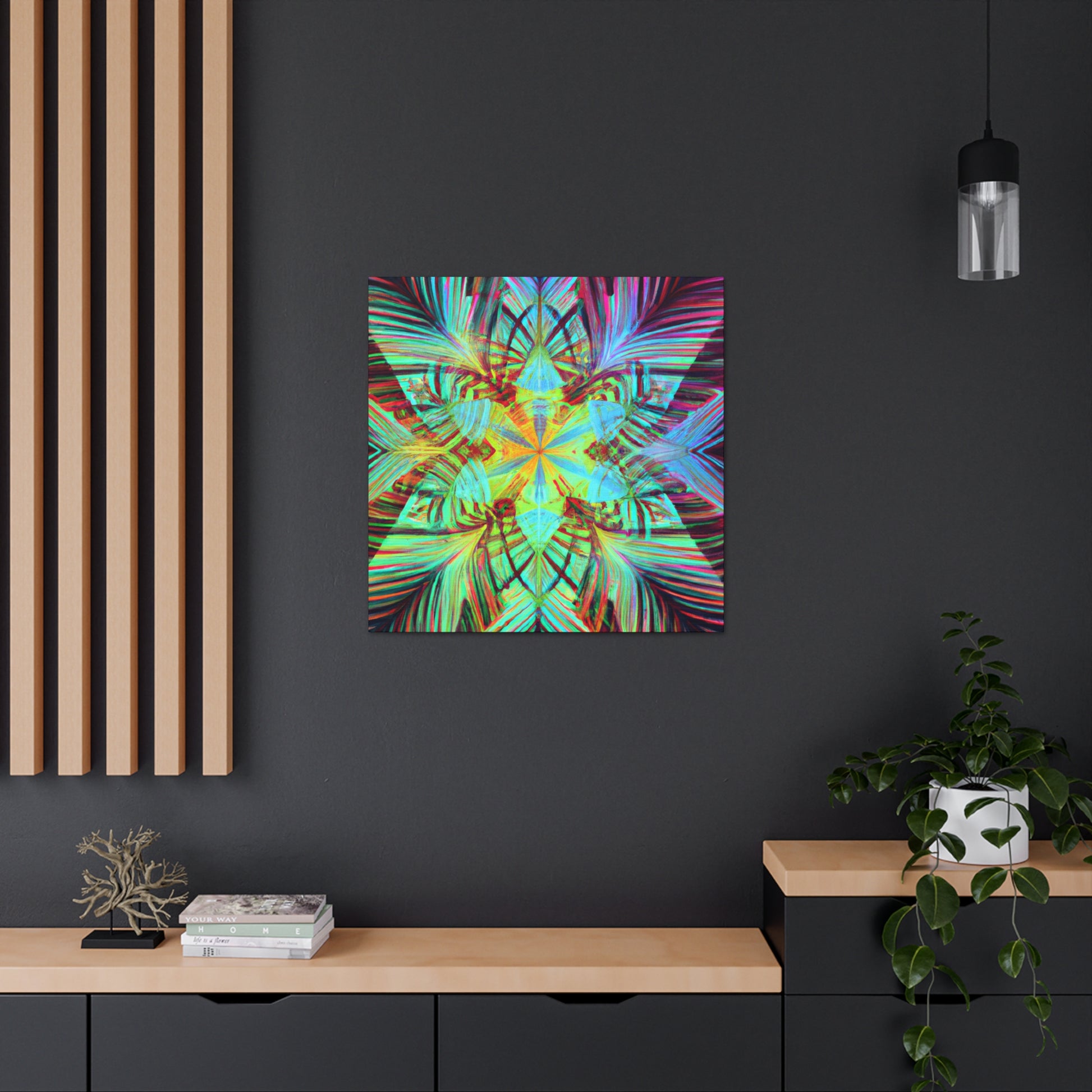 This Trippy Geometric Palm Leaves Canvas will add a dazzling effect to any room. This abstract digital art with vibrant colors and 3D lines will take you into a kaleidoscopic world of mesmerizing fractal shapes. It's the perfect way to bring a unique modern twist to any wall and will have you in a trance looking at the breathtaking scene. #trippyart, #geometricart, #palmleaves, #kaleidoscope, #abstractart, #digitalart, #vibrantcolors, #3Dlines, #fractal, #wallart, #uniqueart