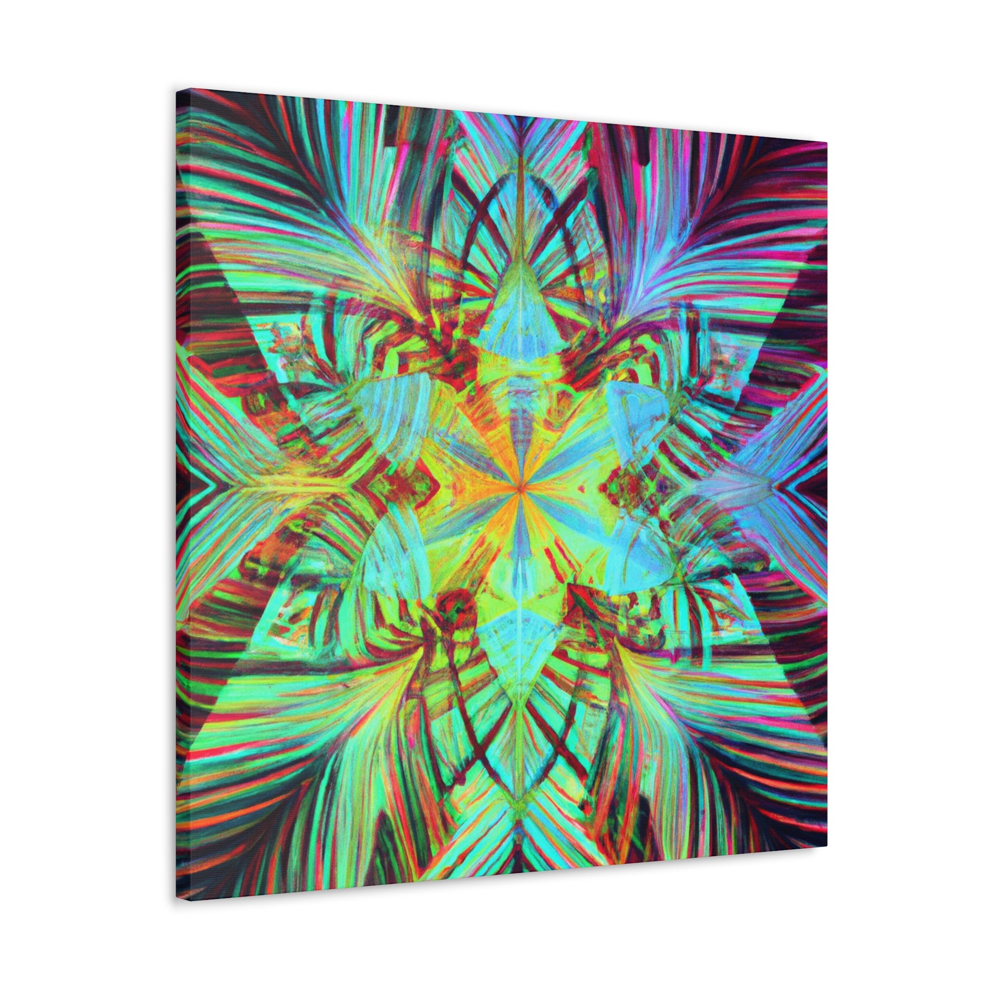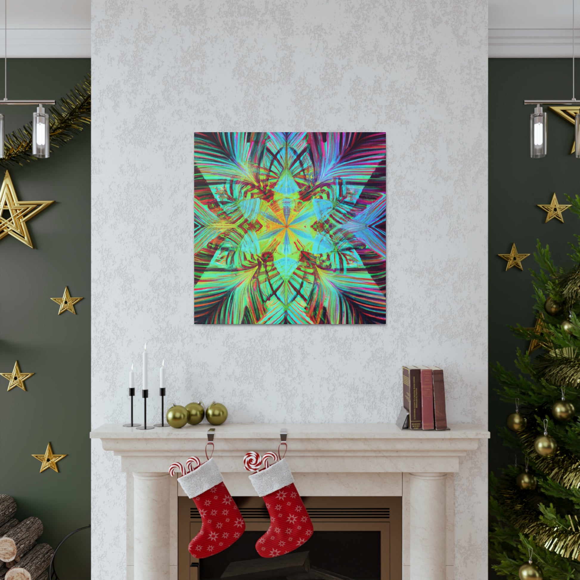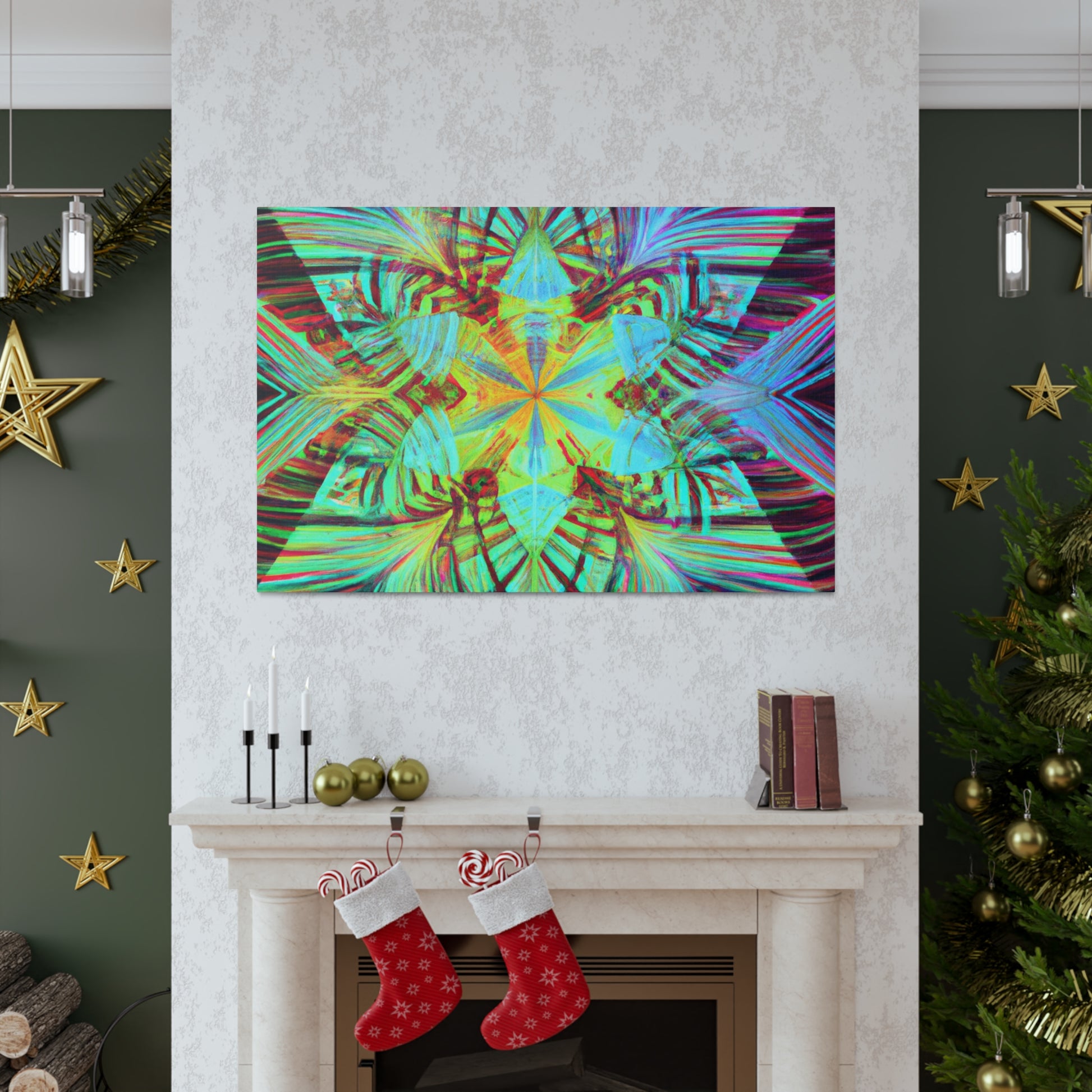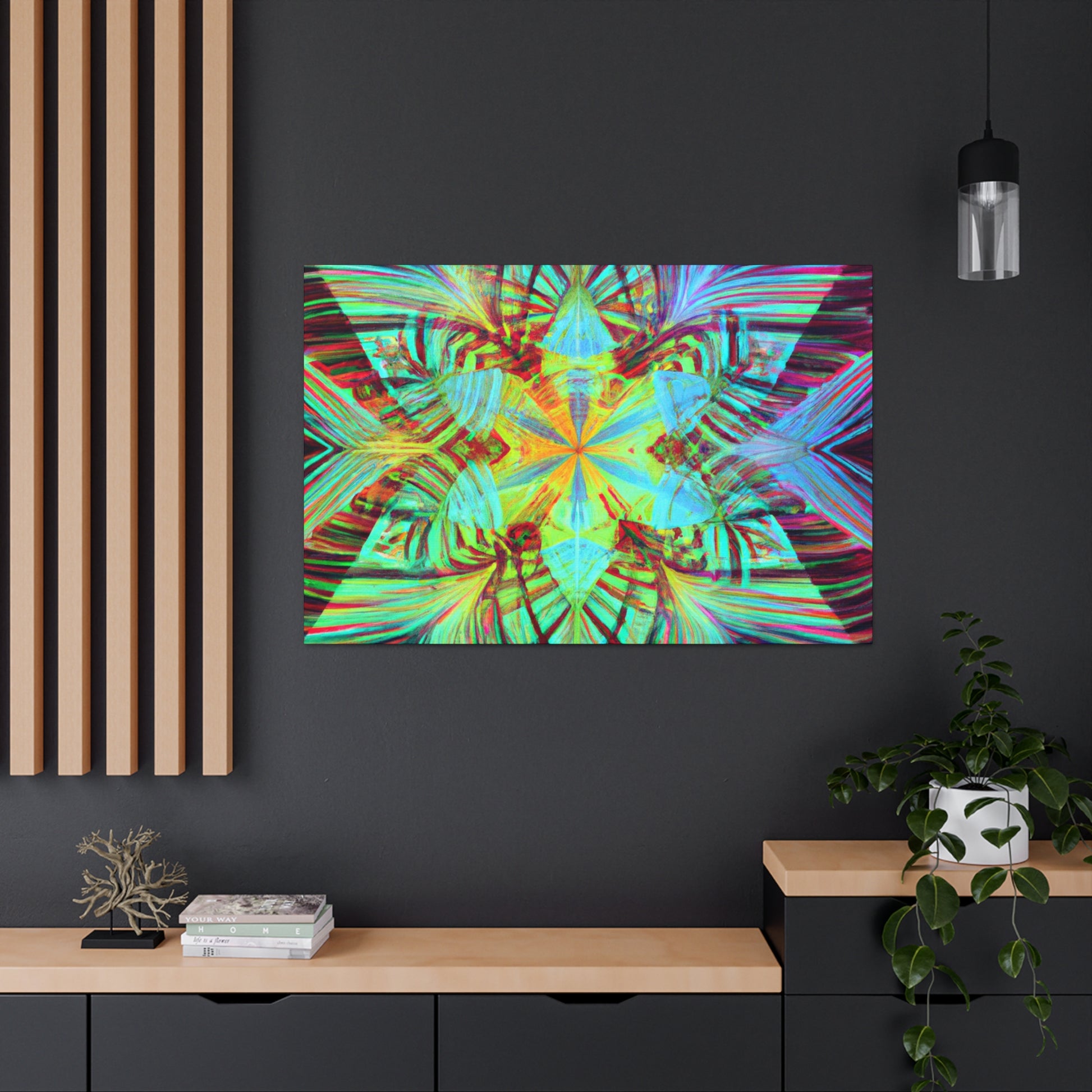 This Trippy Geometric Palm Leaves Canvas will add a dazzling effect to any room. This abstract digital art with vibrant colors and 3D lines will take you into a kaleidoscopic world of mesmerizing fractal shapes. It's the perfect way to bring a unique modern twist to any wall and will have you in a trance looking at the breathtaking scene. #trippyart, #geometricart, #palmleaves, #kaleidoscope, #abstractart, #digitalart, #vibrantcolors, #3Dlines, #fractal, #wallart, #uniqueart