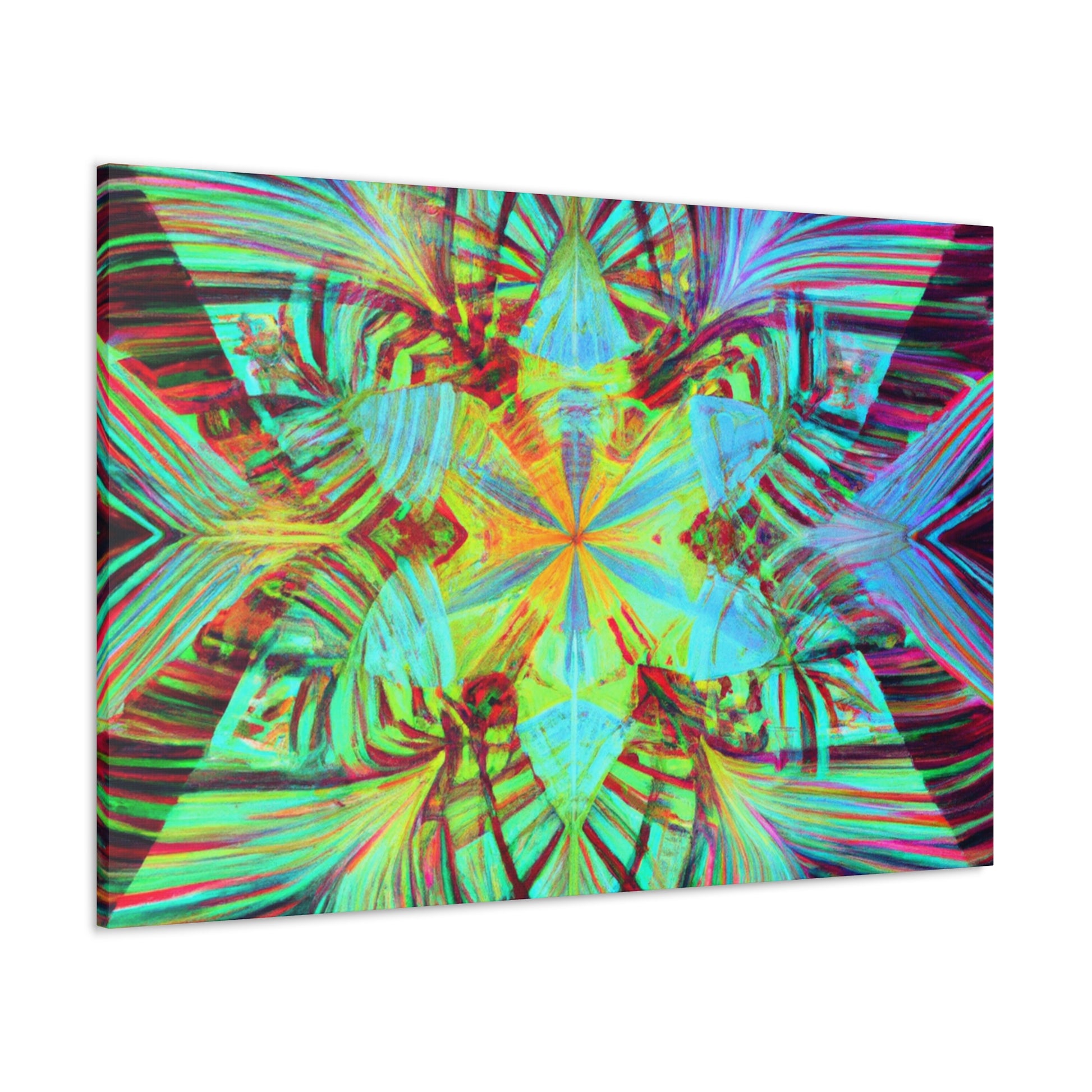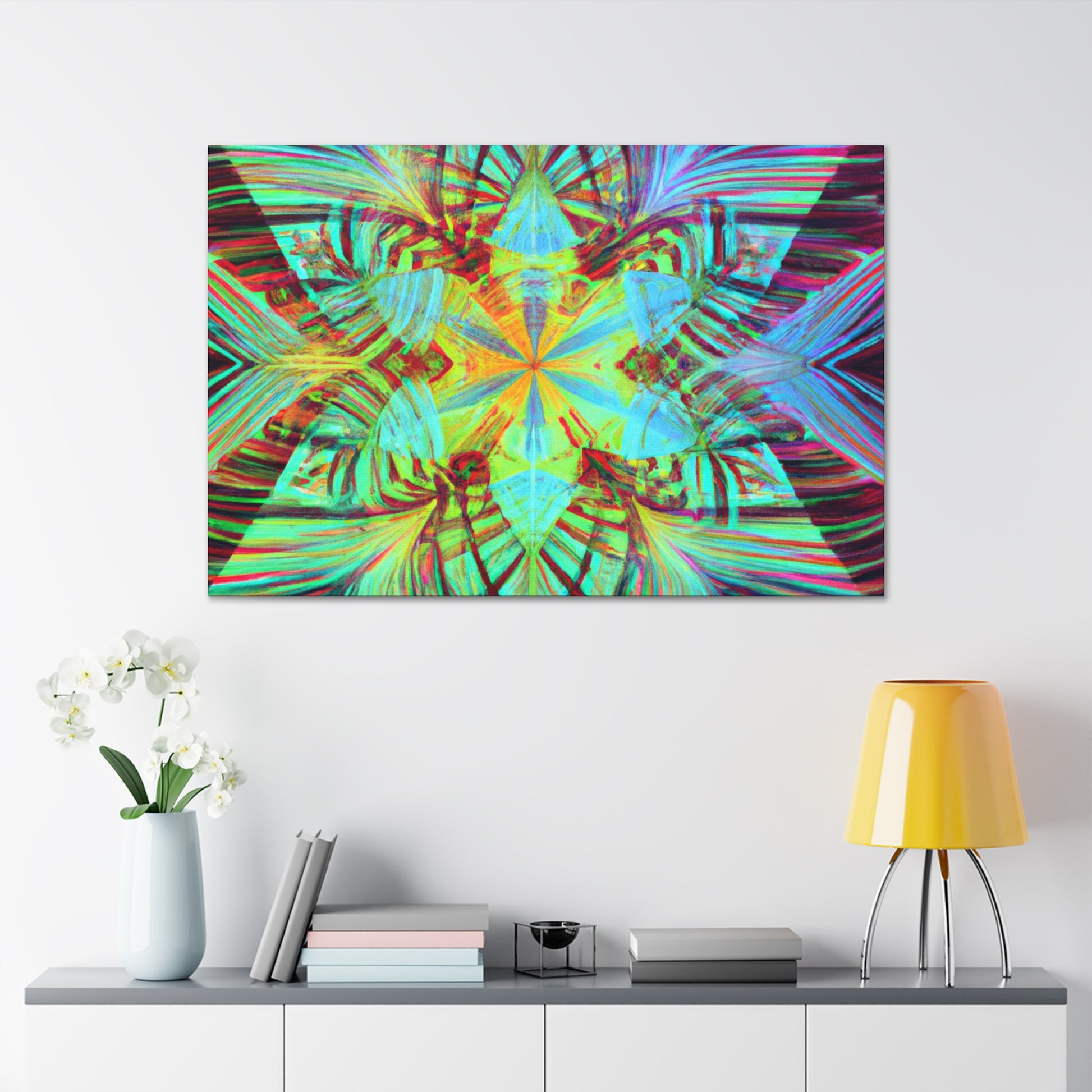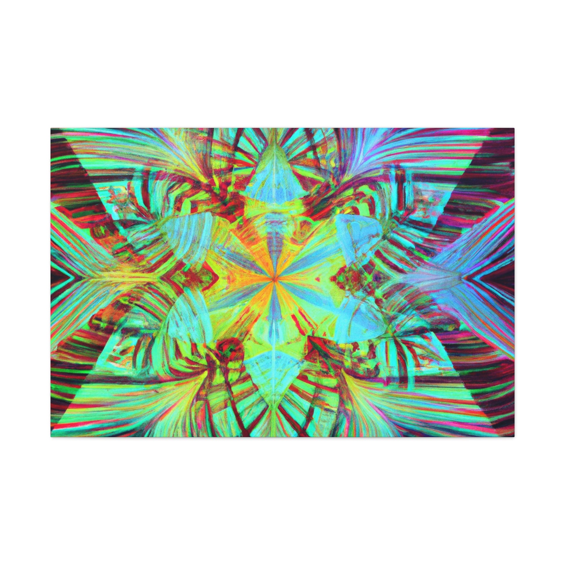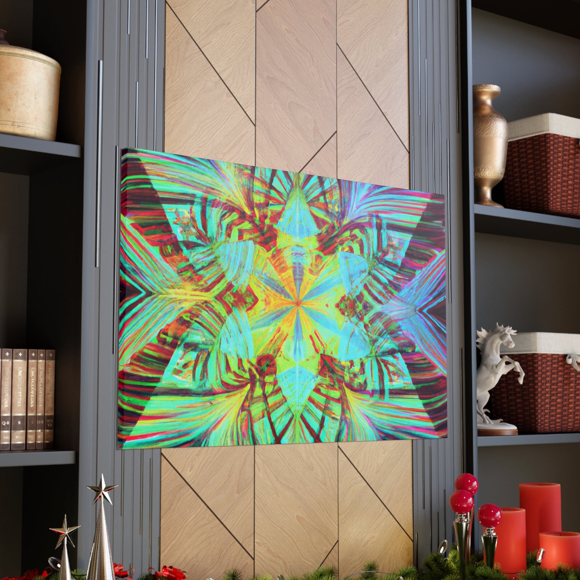 This Trippy Geometric Palm Leaves Canvas will add a dazzling effect to any room. This abstract digital art with vibrant colors and 3D lines will take you into a kaleidoscopic world of mesmerizing fractal shapes. It's the perfect way to bring a unique modern twist to any wall and will have you in a trance looking at the breathtaking scene. #trippyart, #geometricart, #palmleaves, #kaleidoscope, #abstractart, #digitalart, #vibrantcolors, #3Dlines, #fractal, #wallart, #uniqueart