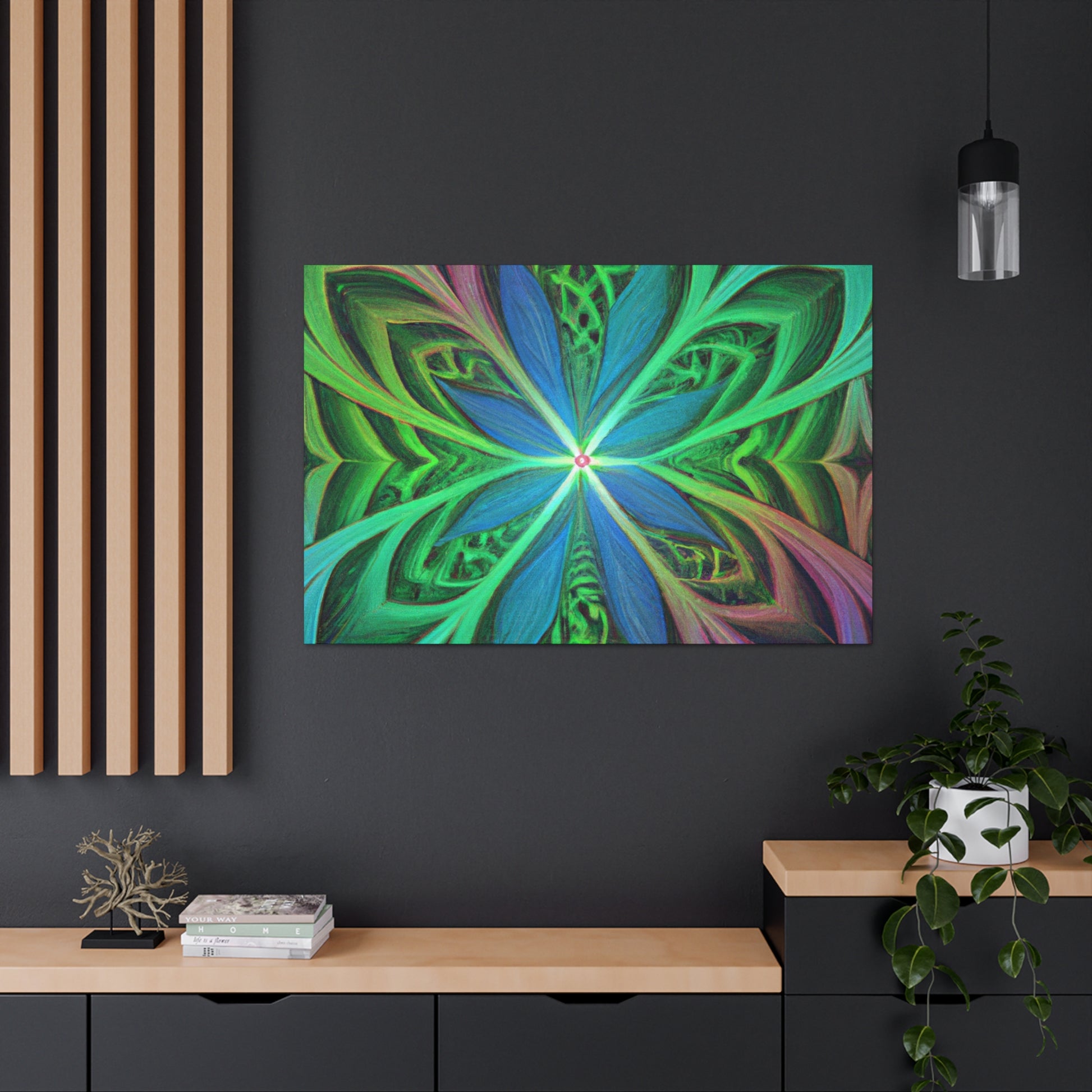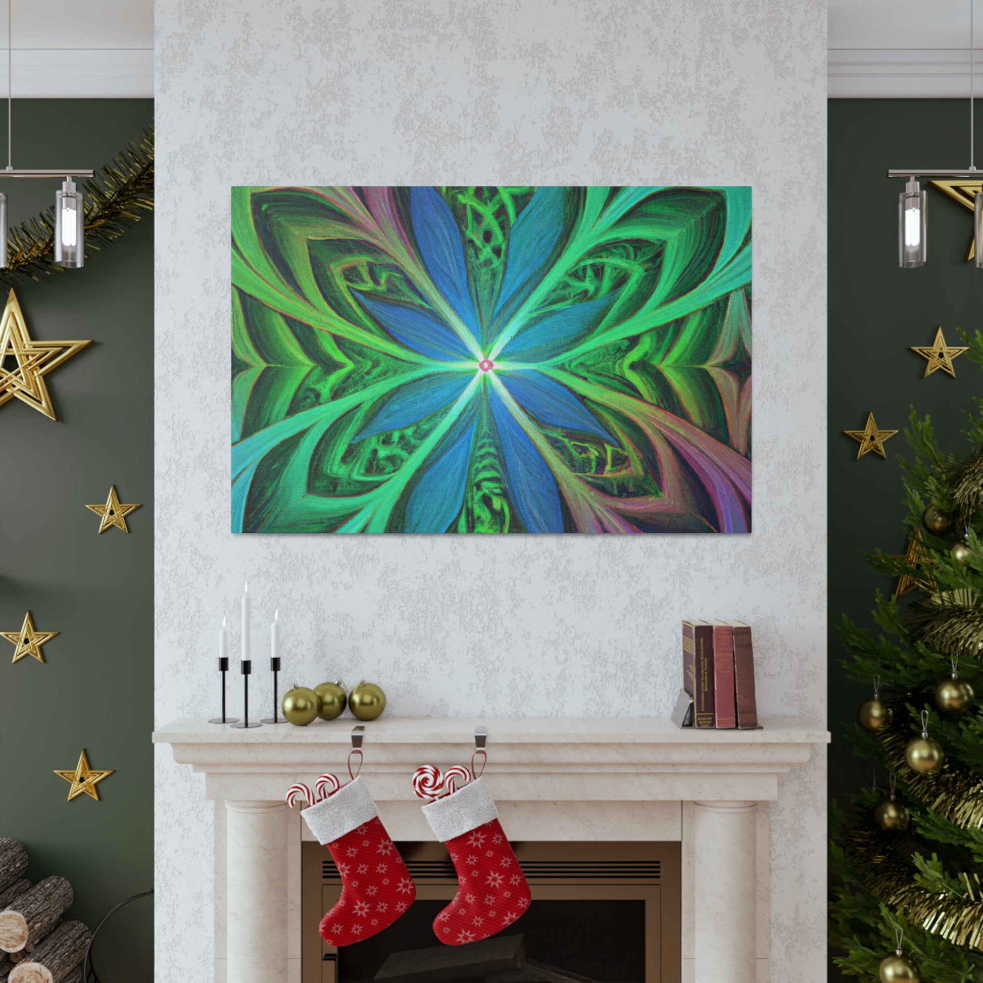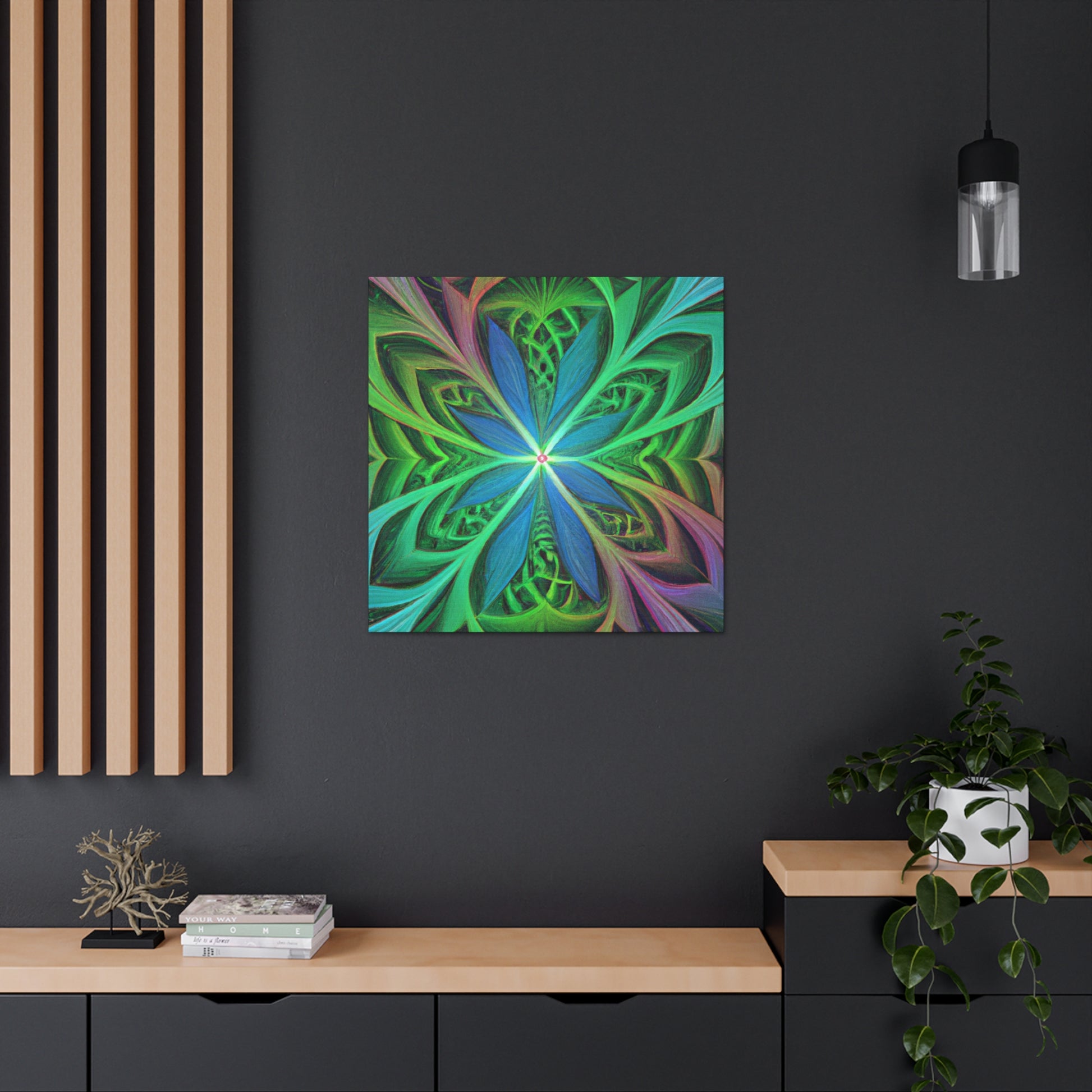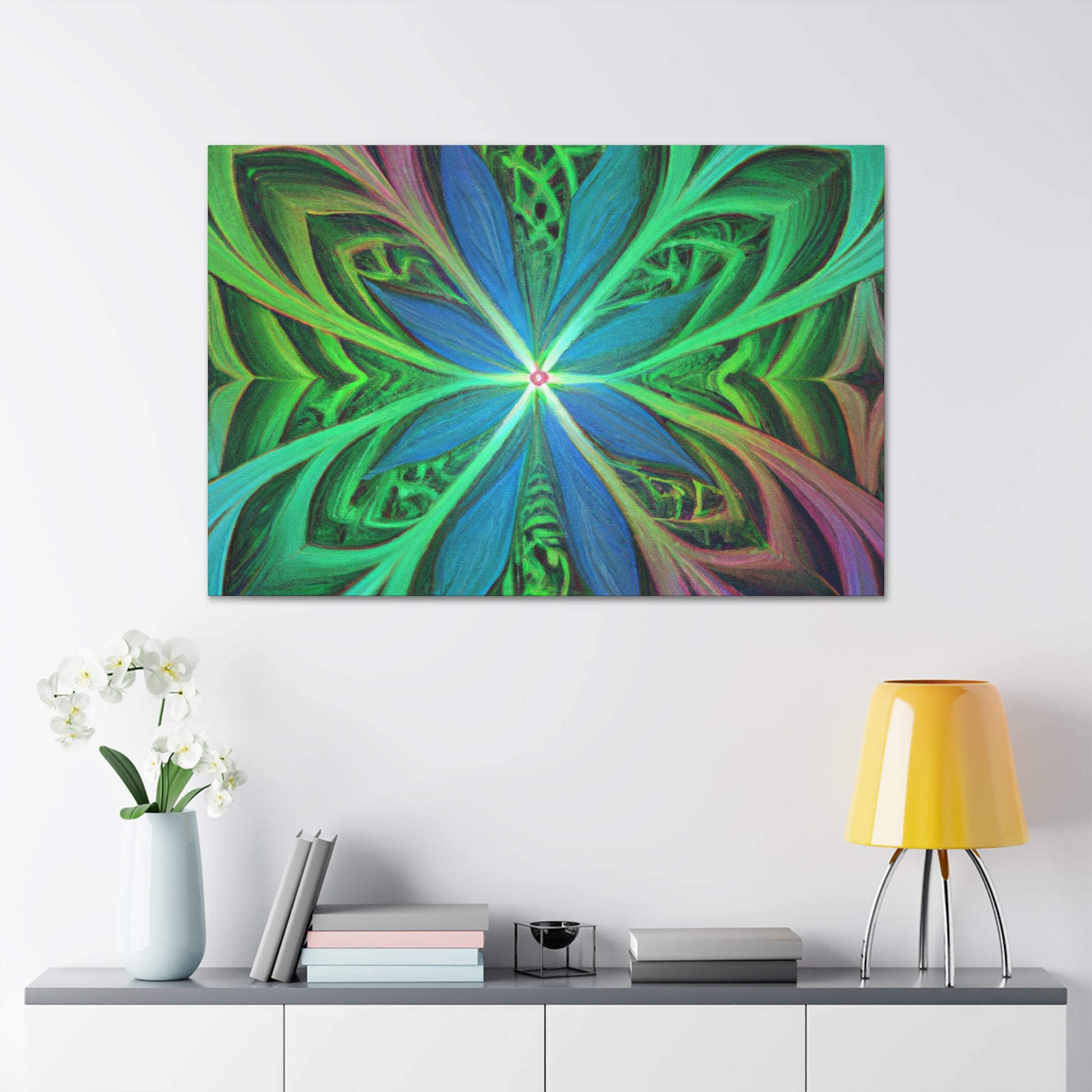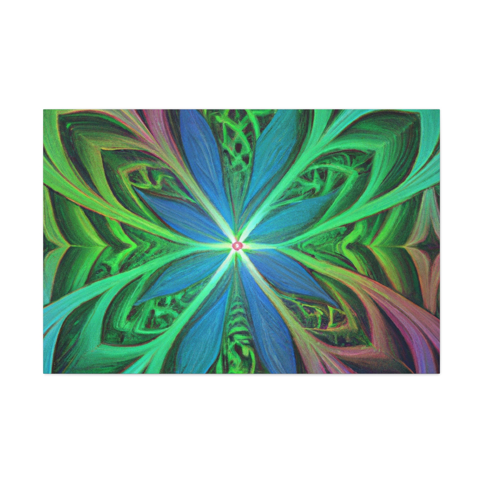 This beautiful canvas of trippy geometric palm leaves, kaleidoscope, abstract, digital art, vibrant colors, 3D lines, and fractal is sure to make a stunning addition to any space. The eye-catching and unique design will add a touch of modern style to any room. Each canvas is lovingly handcrafted with vivid and radiant colors to bring the artwork to life. Bring home this dynamic piece of artwork today and give your home a stylish upgrade! #abstractart #digitalart #vibrantcolors #3dlines #fractal #kaleidoscope #geometricart #palmleaves #vibrantdecor #trippyart