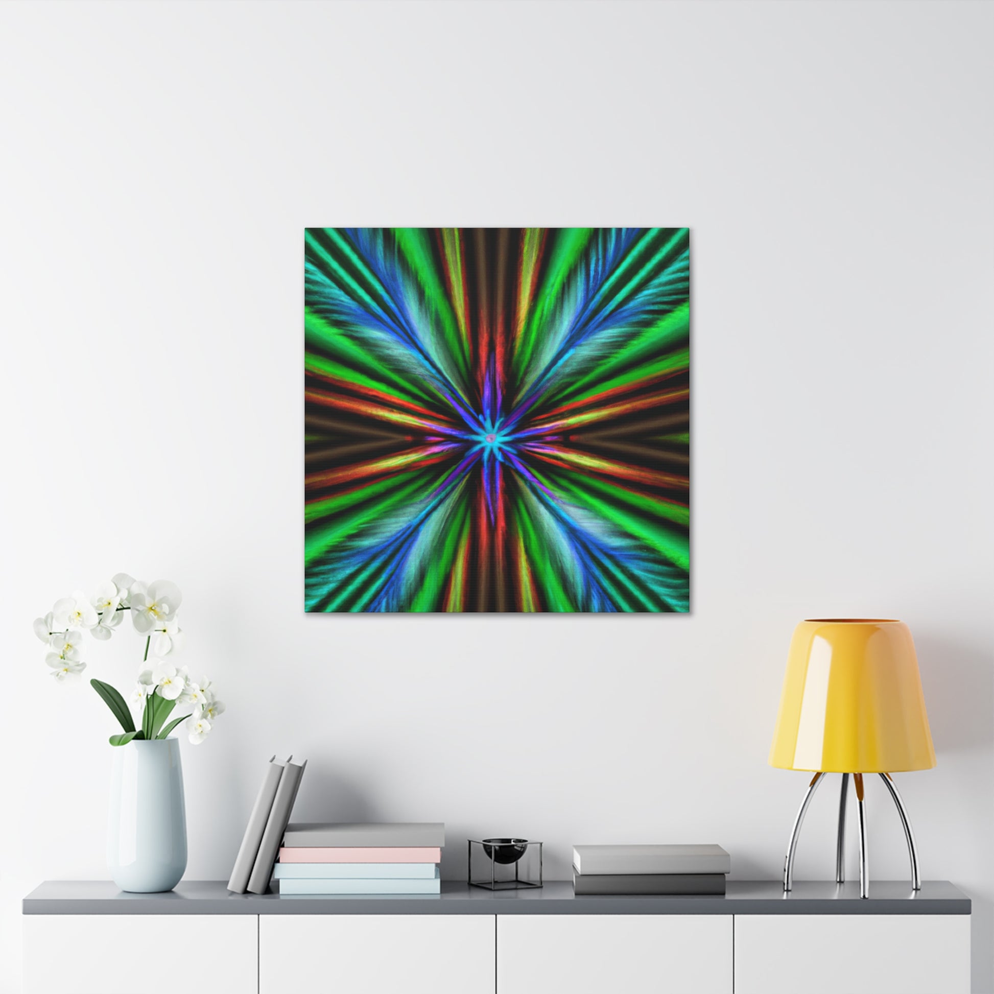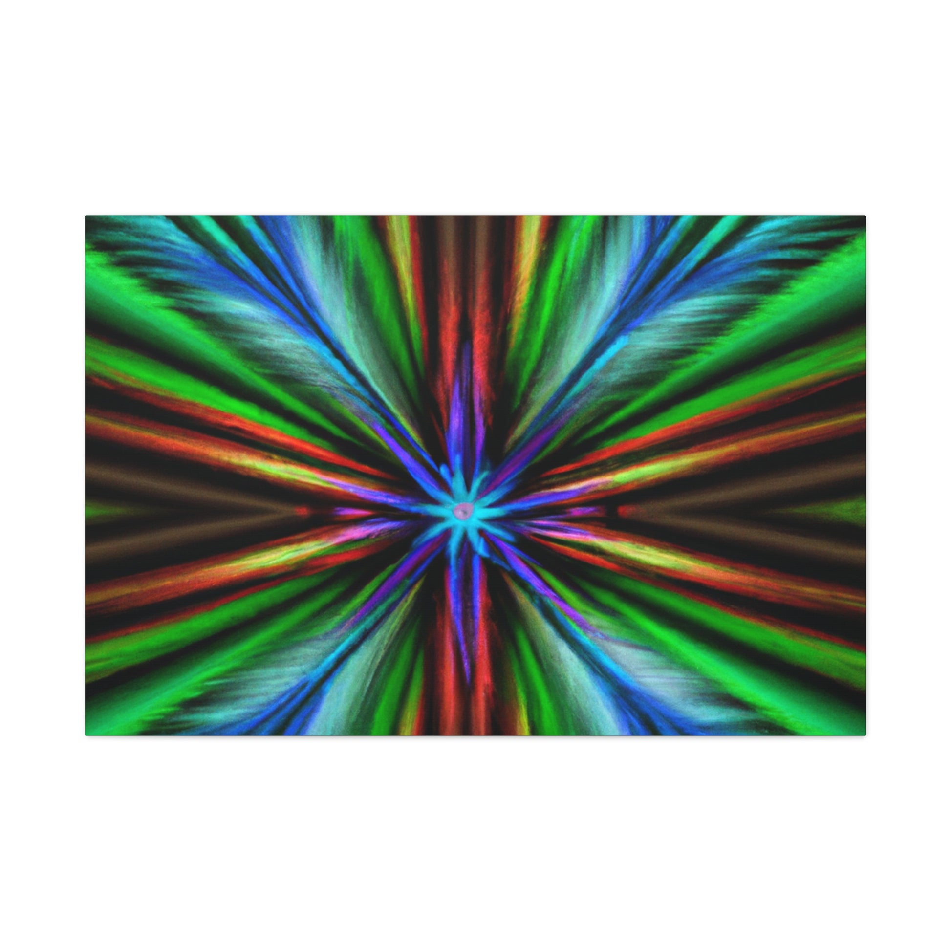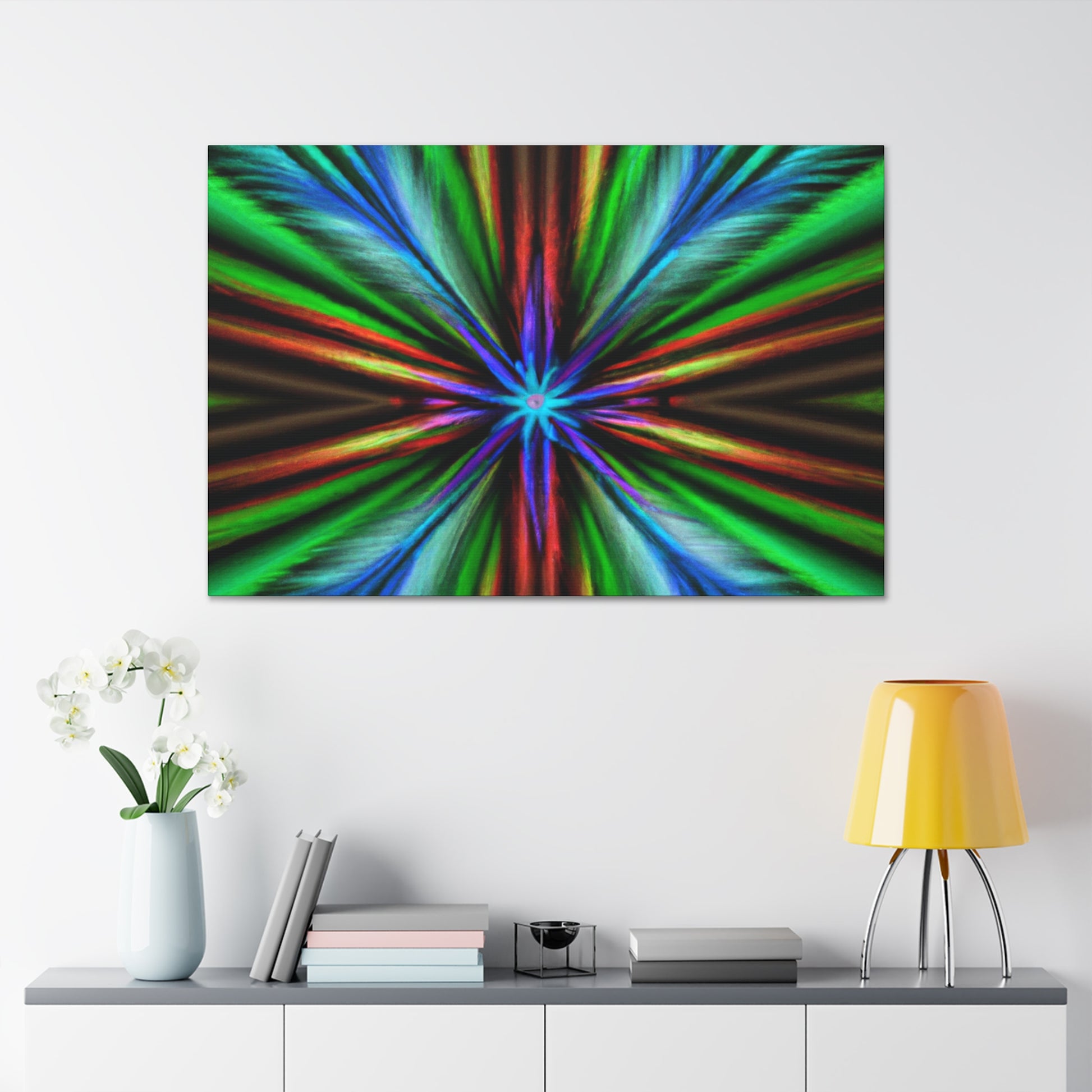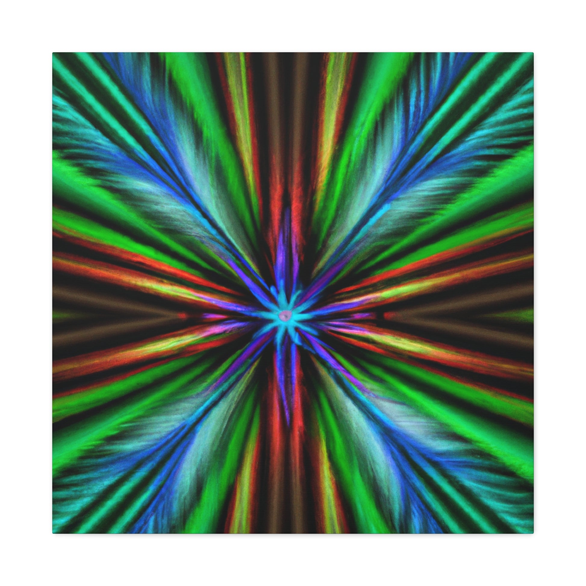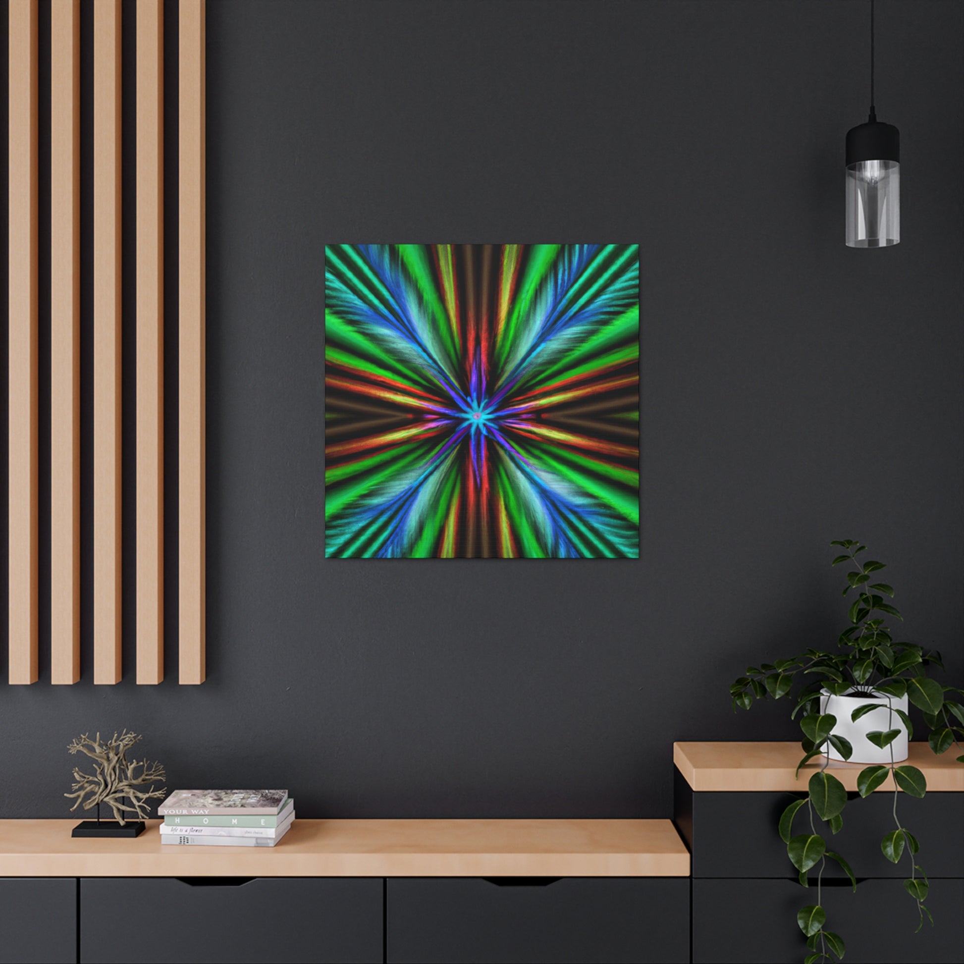 This modern, vibrant digital art print on canvas is sure to bring life to any room in your home! With watercolor-style geometric palm leaves, a kaleidoscope of colors, bold 3D lines, and a hint of fractal - this piece of art provides endless visual stimulation in one abstract masterpiece! #trippy #kaleidoscope #abstract #digitalart #fractal #palmleaves #geometric #3Dlines #vibrantcolors #watercolorscheme #modernart