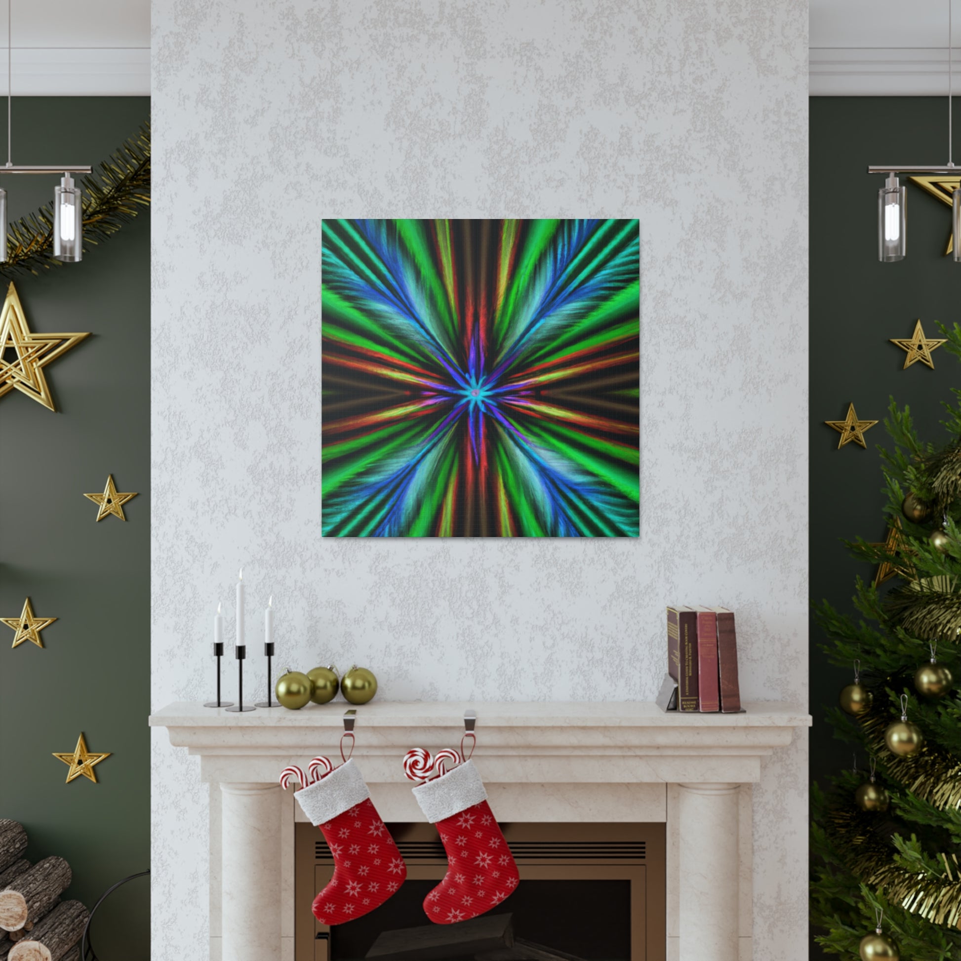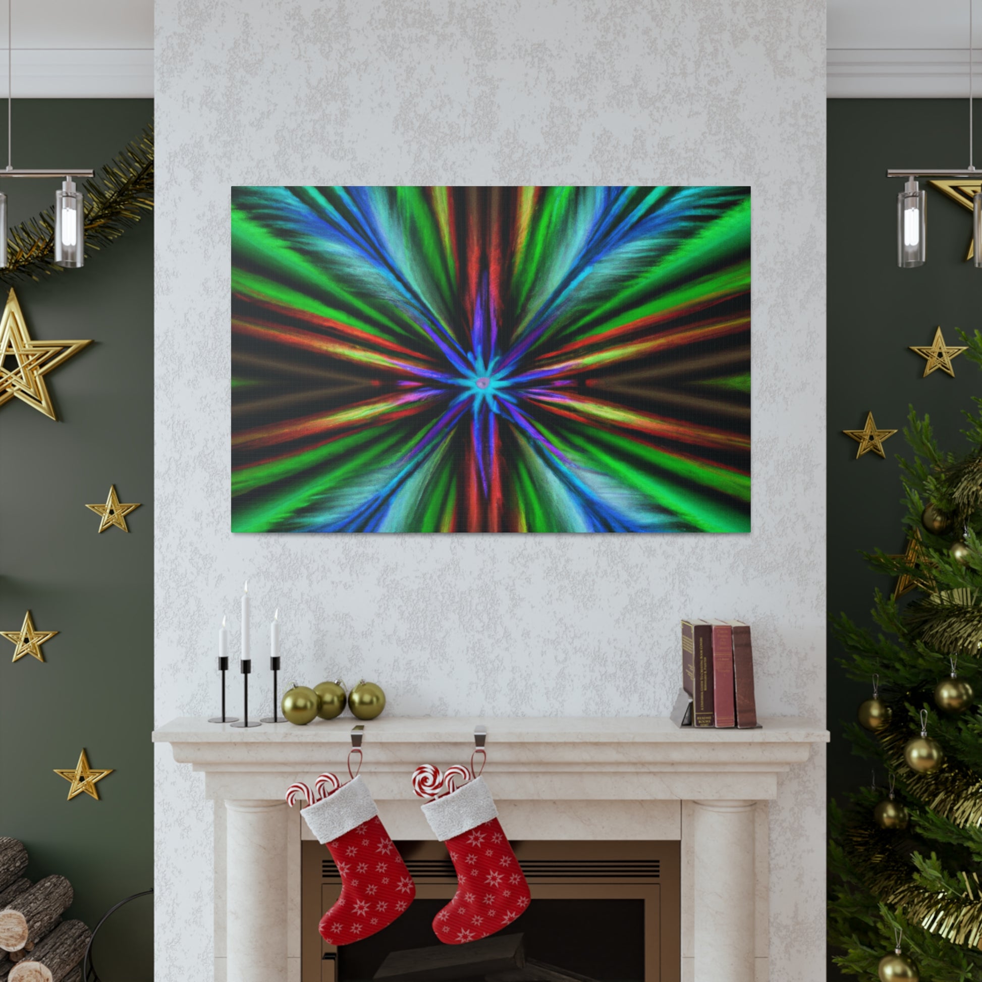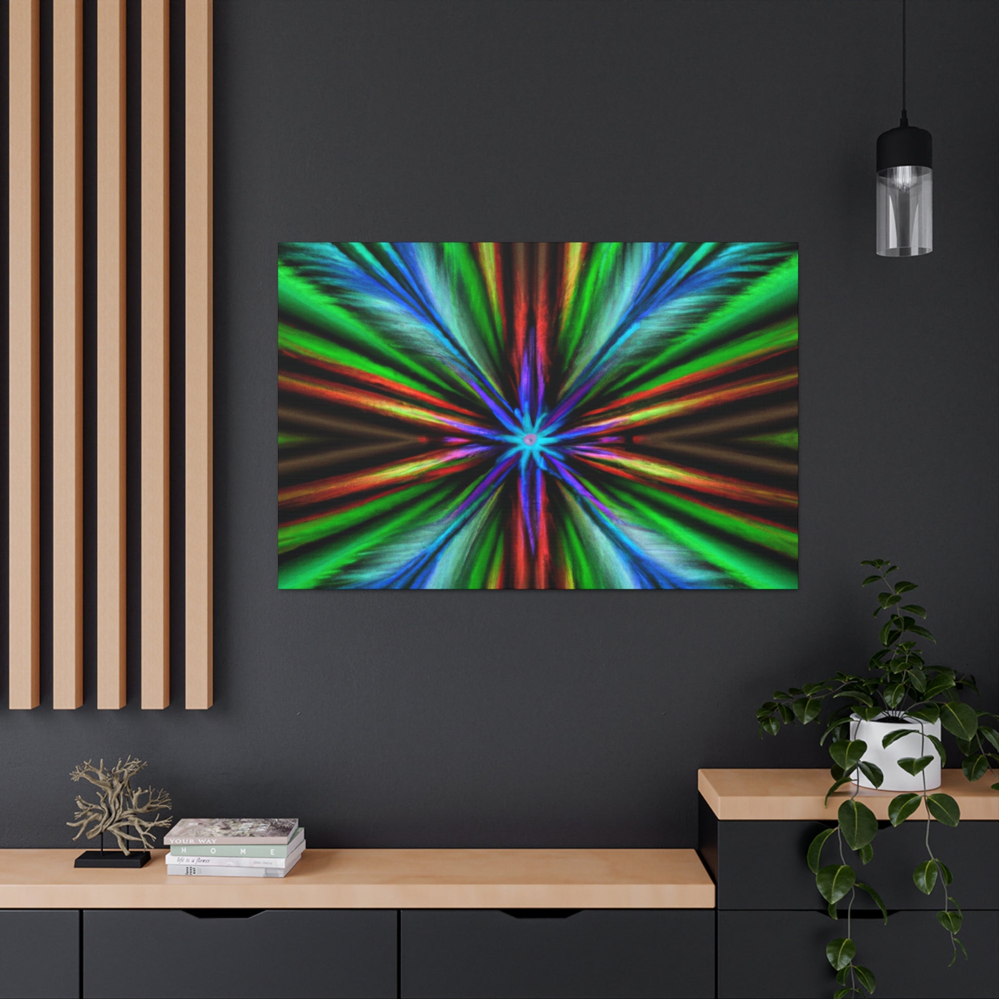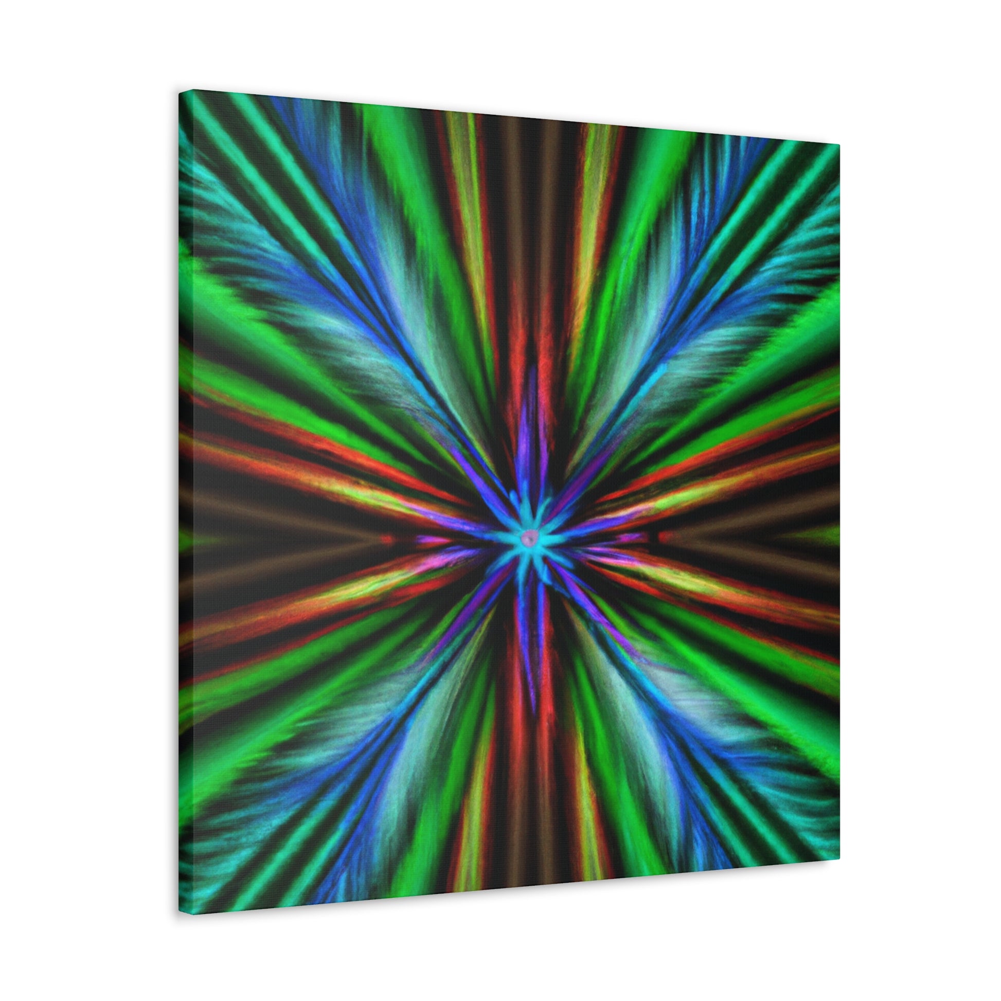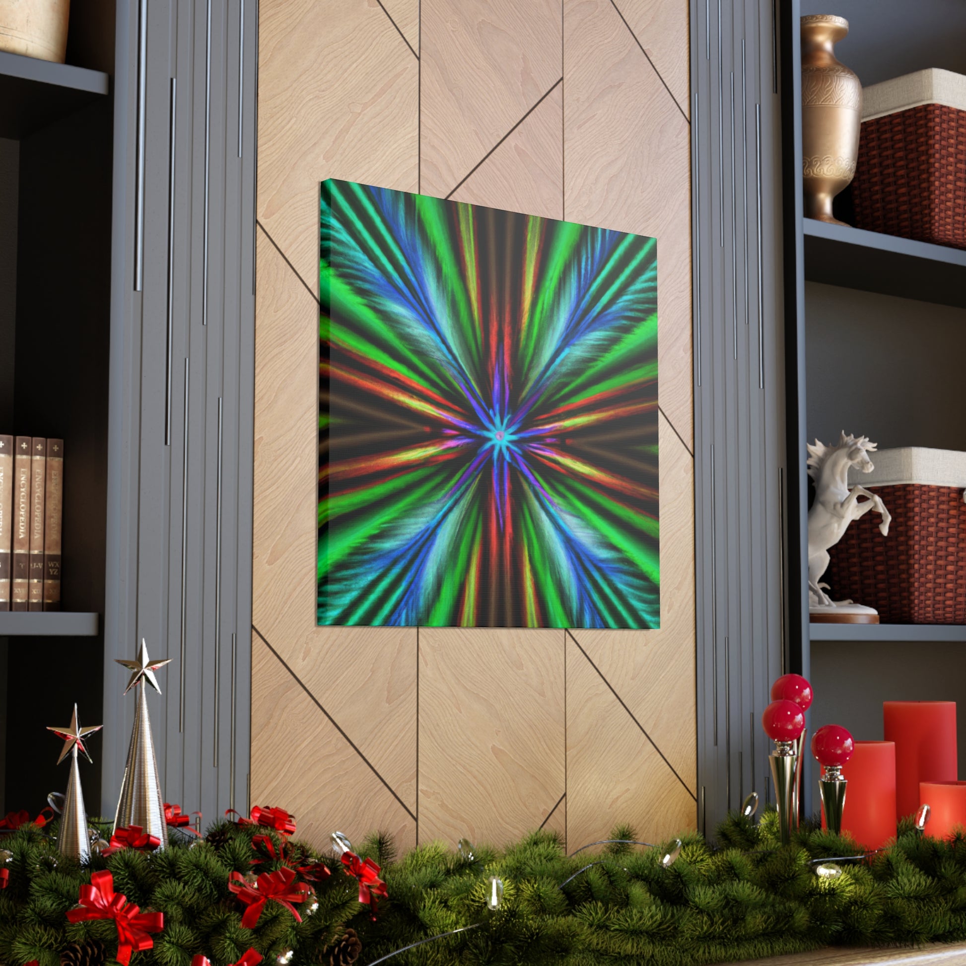 This modern, vibrant digital art print on canvas is sure to bring life to any room in your home! With watercolor-style geometric palm leaves, a kaleidoscope of colors, bold 3D lines, and a hint of fractal - this piece of art provides endless visual stimulation in one abstract masterpiece! #trippy #kaleidoscope #abstract #digitalart #fractal #palmleaves #geometric #3Dlines #vibrantcolors #watercolorscheme #modernart