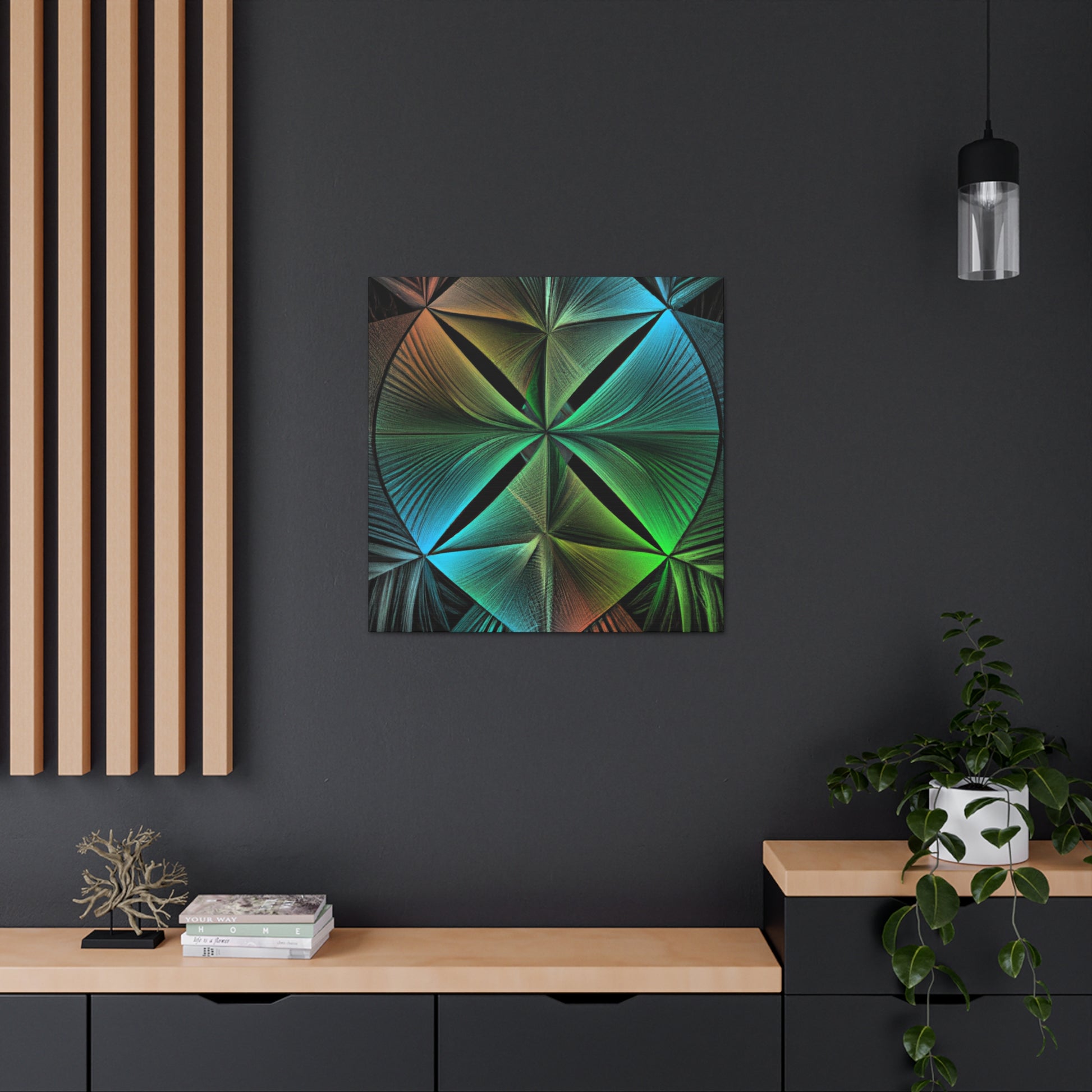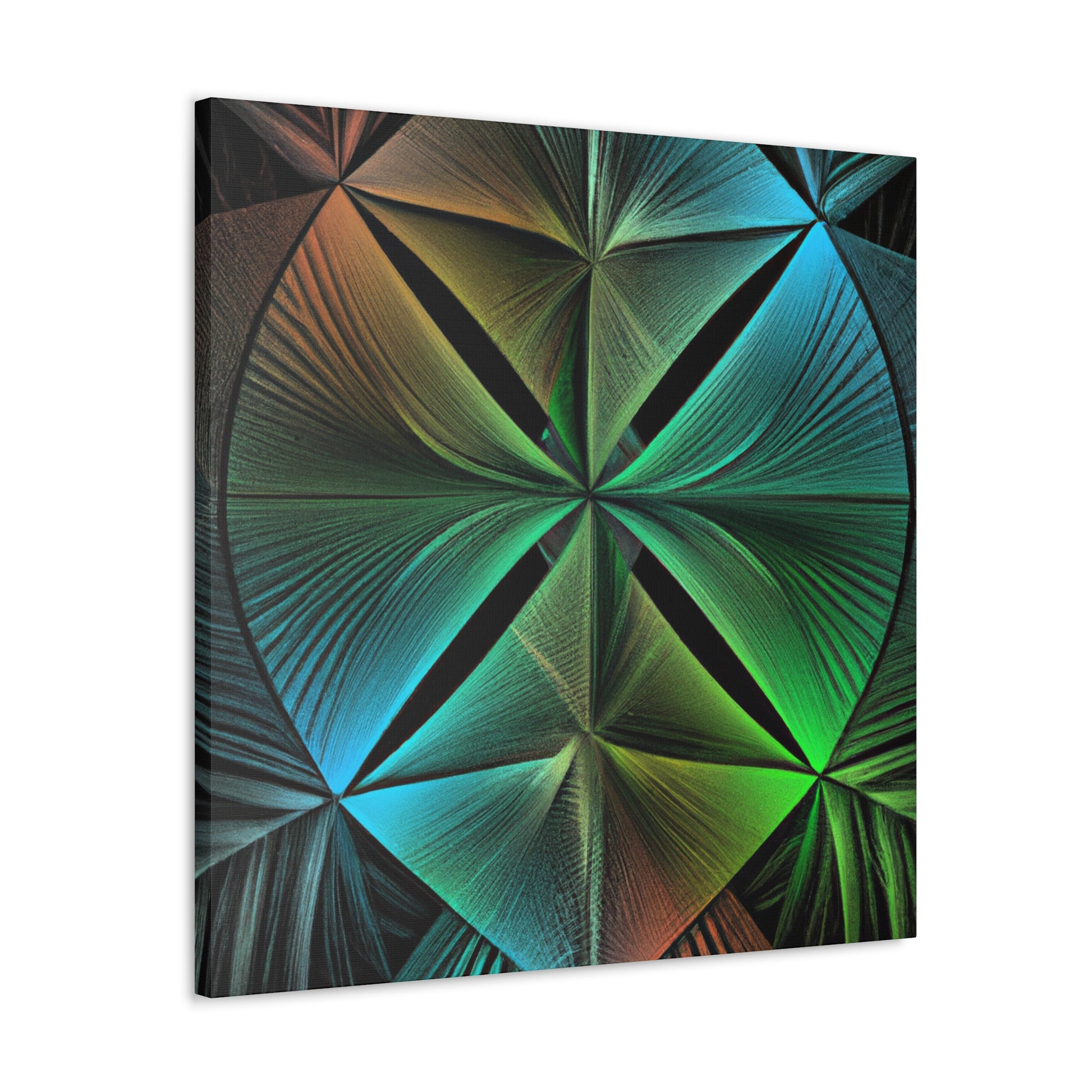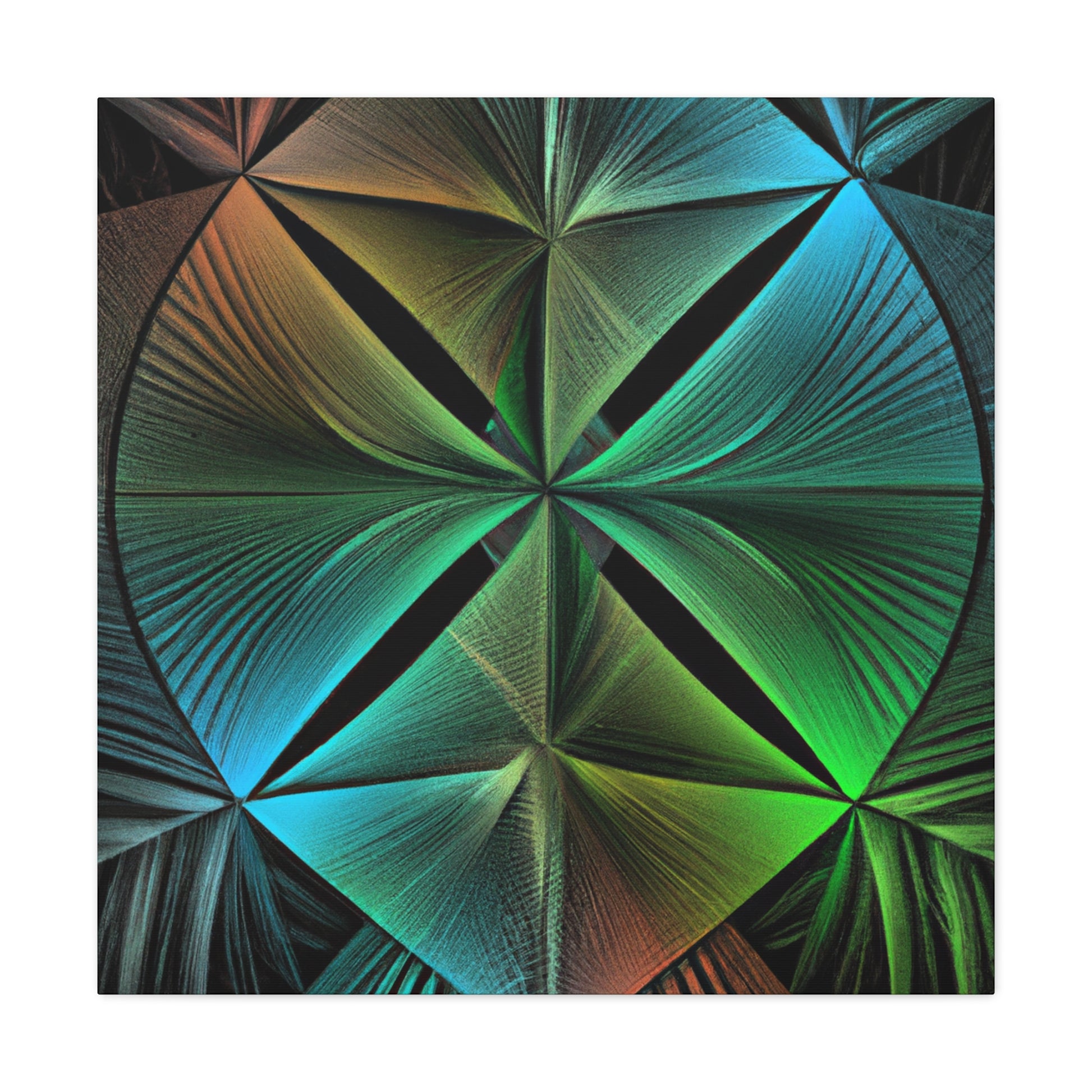 Bring bold vibrancy to any wall in your home with this Trippy Geometric Palm Leaves canvas. Kaleidoscope, abstract, digital art, and 3D lines creates an eye-catching, modern look. Bright, vibrant colors, and intricate fractal patterns come together to form a mesmerizing work of art. Refresh your walls with this one-of-a-kind piece and add in a touch of unique beauty. #art #canvas #geometric #home #kaleidoscope #abstract #digitalart #vibrantcolors #3dlines #fractal #trippy