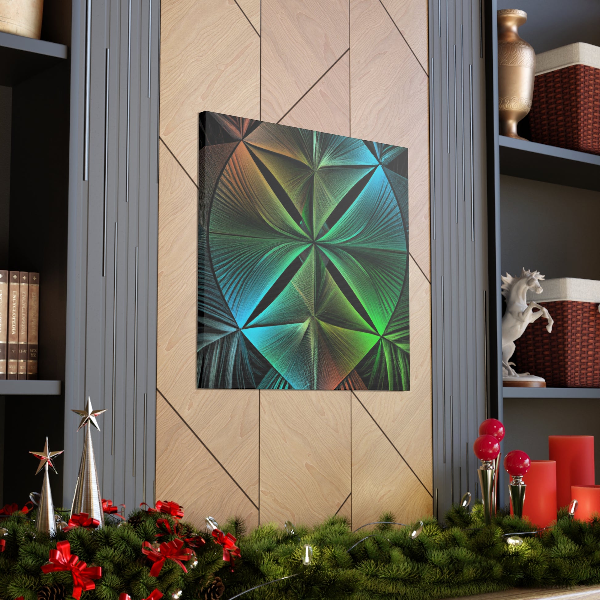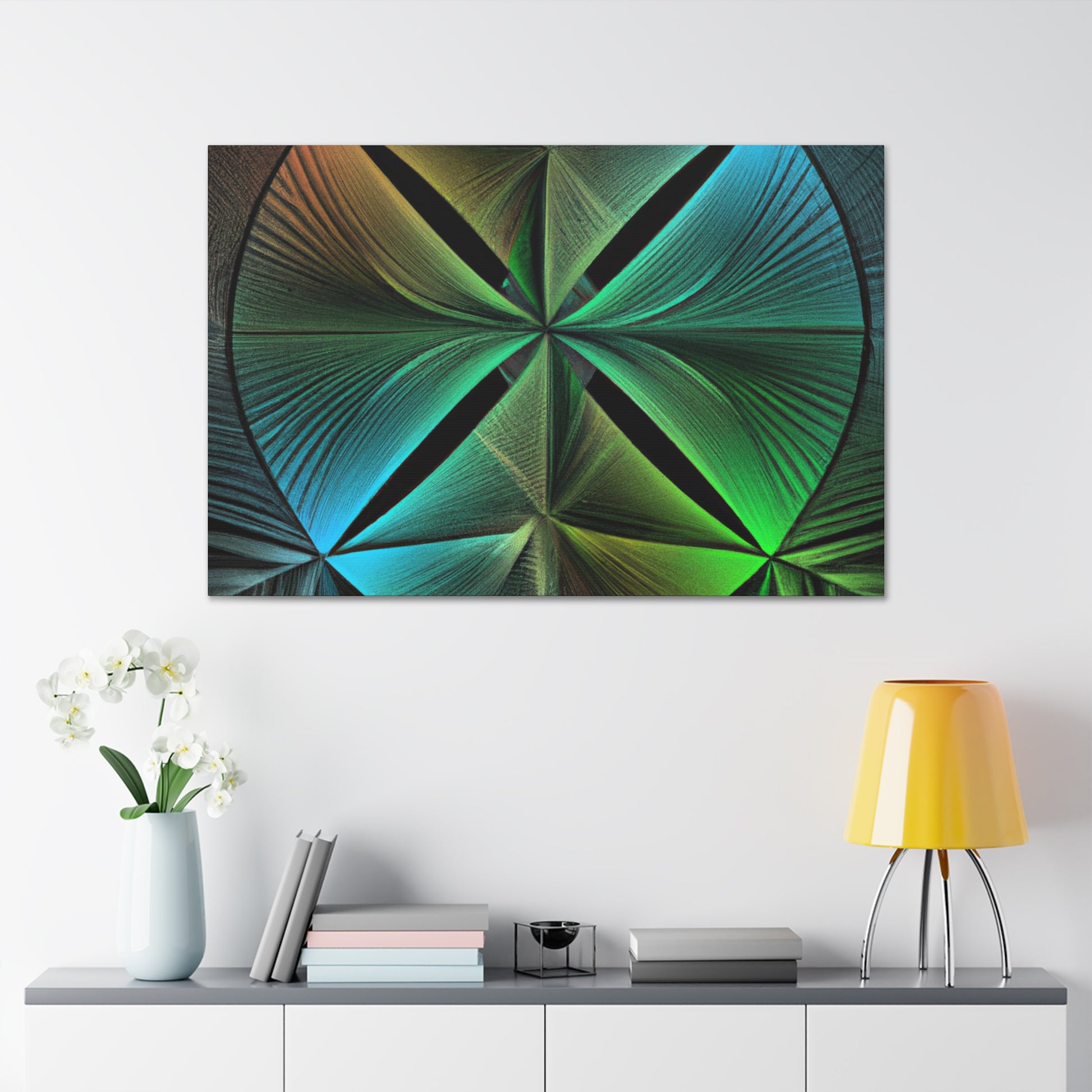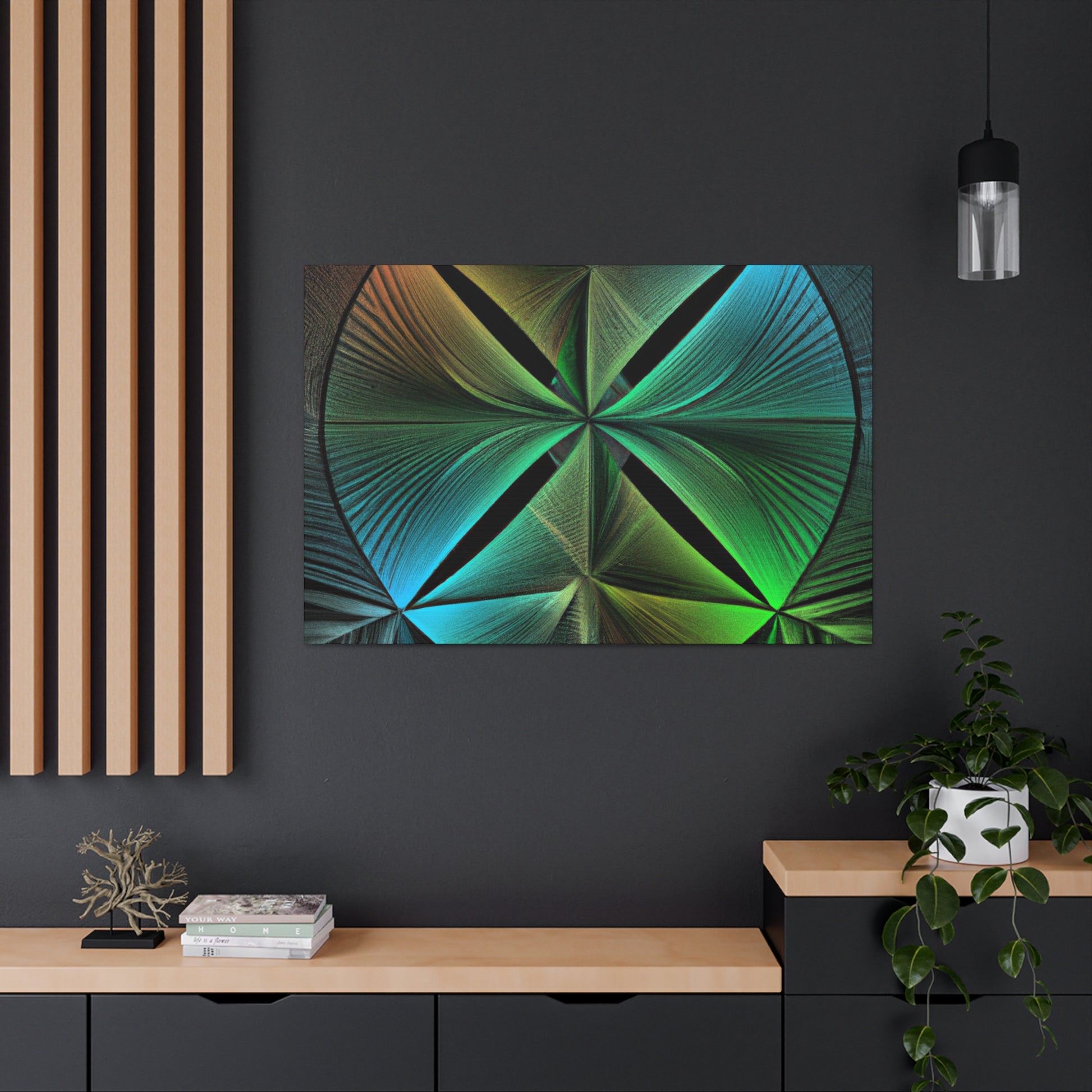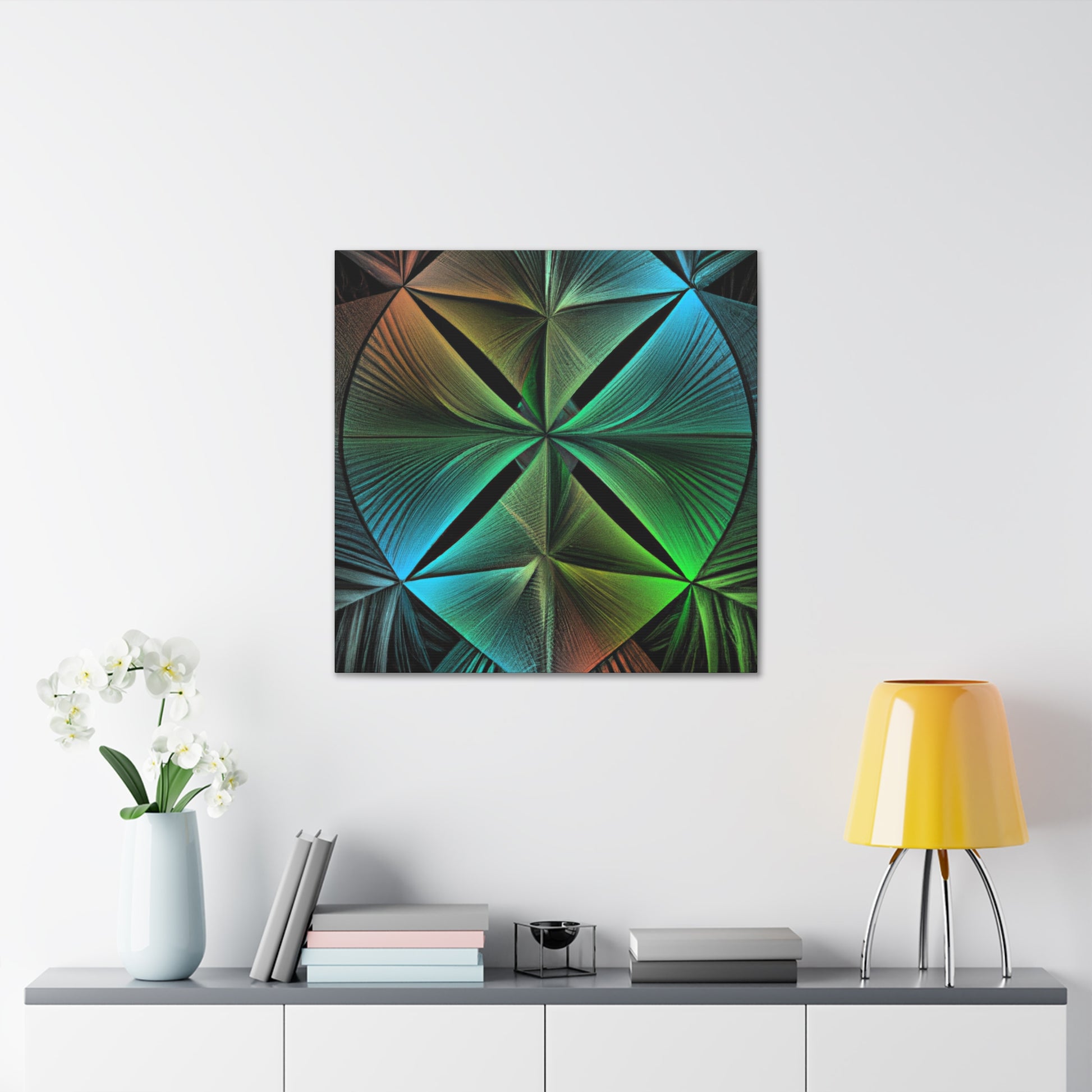 Bring bold vibrancy to any wall in your home with this Trippy Geometric Palm Leaves canvas. Kaleidoscope, abstract, digital art, and 3D lines creates an eye-catching, modern look. Bright, vibrant colors, and intricate fractal patterns come together to form a mesmerizing work of art. Refresh your walls with this one-of-a-kind piece and add in a touch of unique beauty. #art #canvas #geometric #home #kaleidoscope #abstract #digitalart #vibrantcolors #3dlines #fractal #trippy