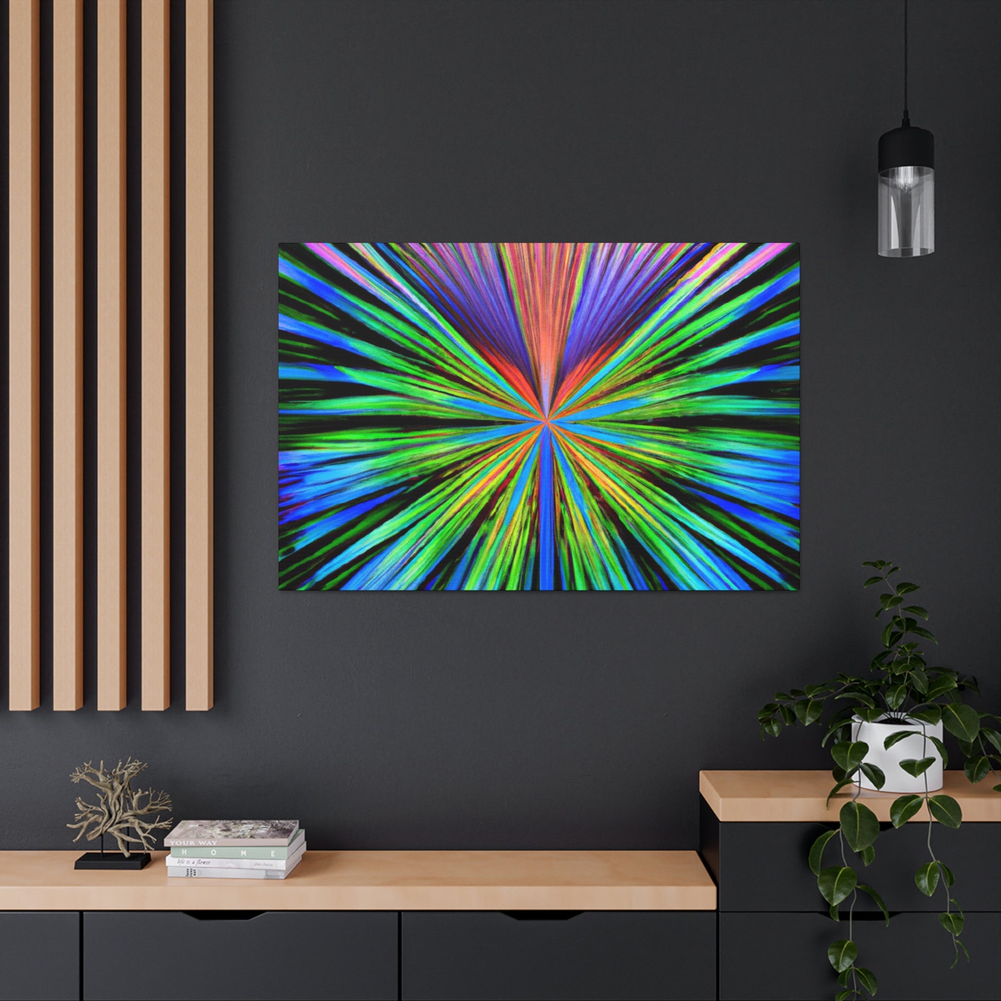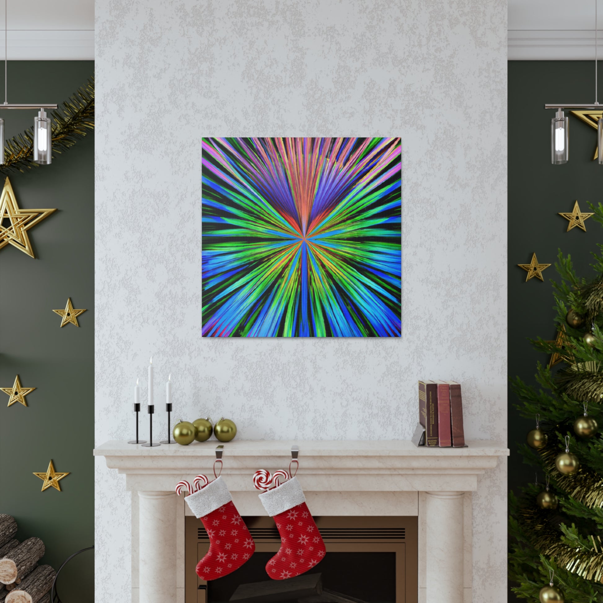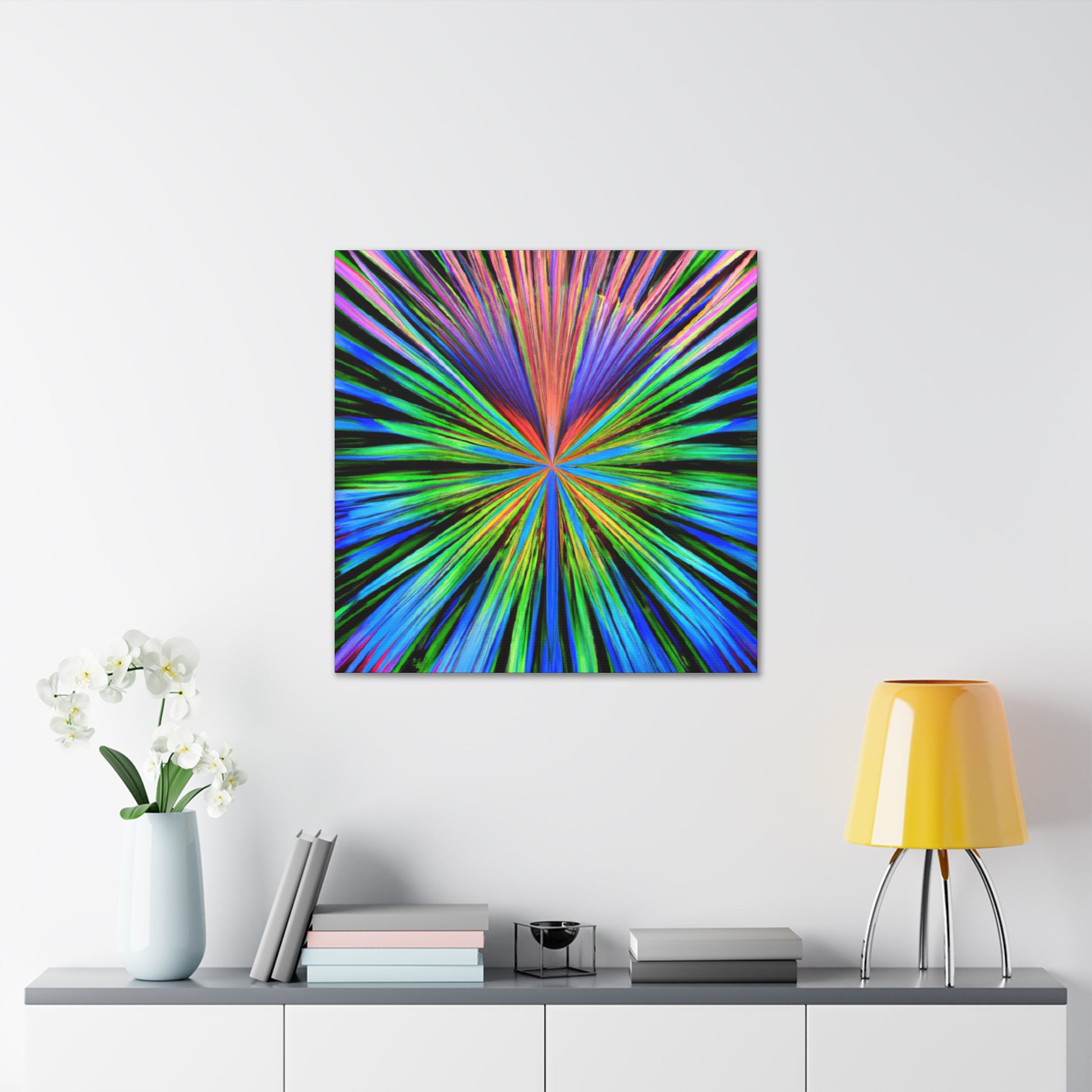 This eye-catching canvas of digital art features trippy geometric palm leaves, kaleidoscope patterns, abstract shapes, and vibrant colors with 3D lines and fractals. A modern, unique work of art that will bring a pop of energy and style to any wall. It's perfect for making an artistic statement in any living space! #abstractart #vibrantart #digitalcanvas #geometricart #fractalart #trippyart #3Dlines #kaleidoscopeart #palmleavesart #canvasart #abstractcanvas