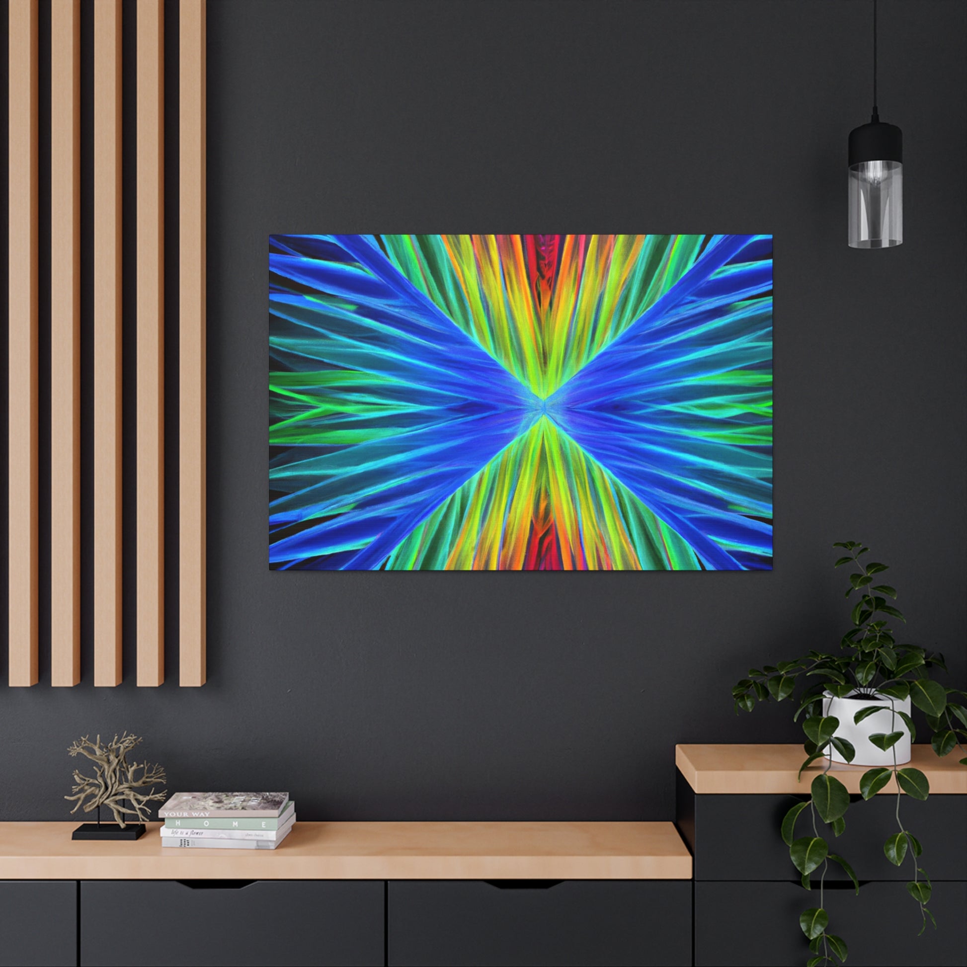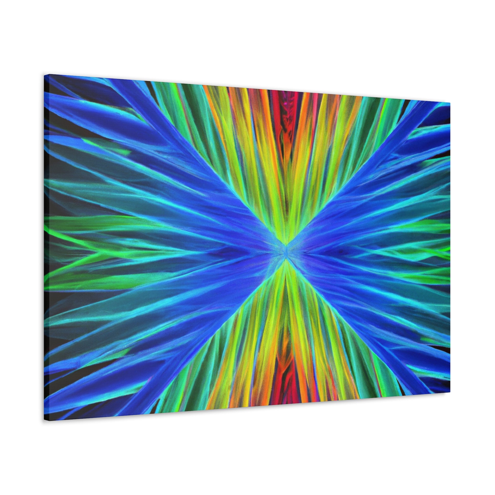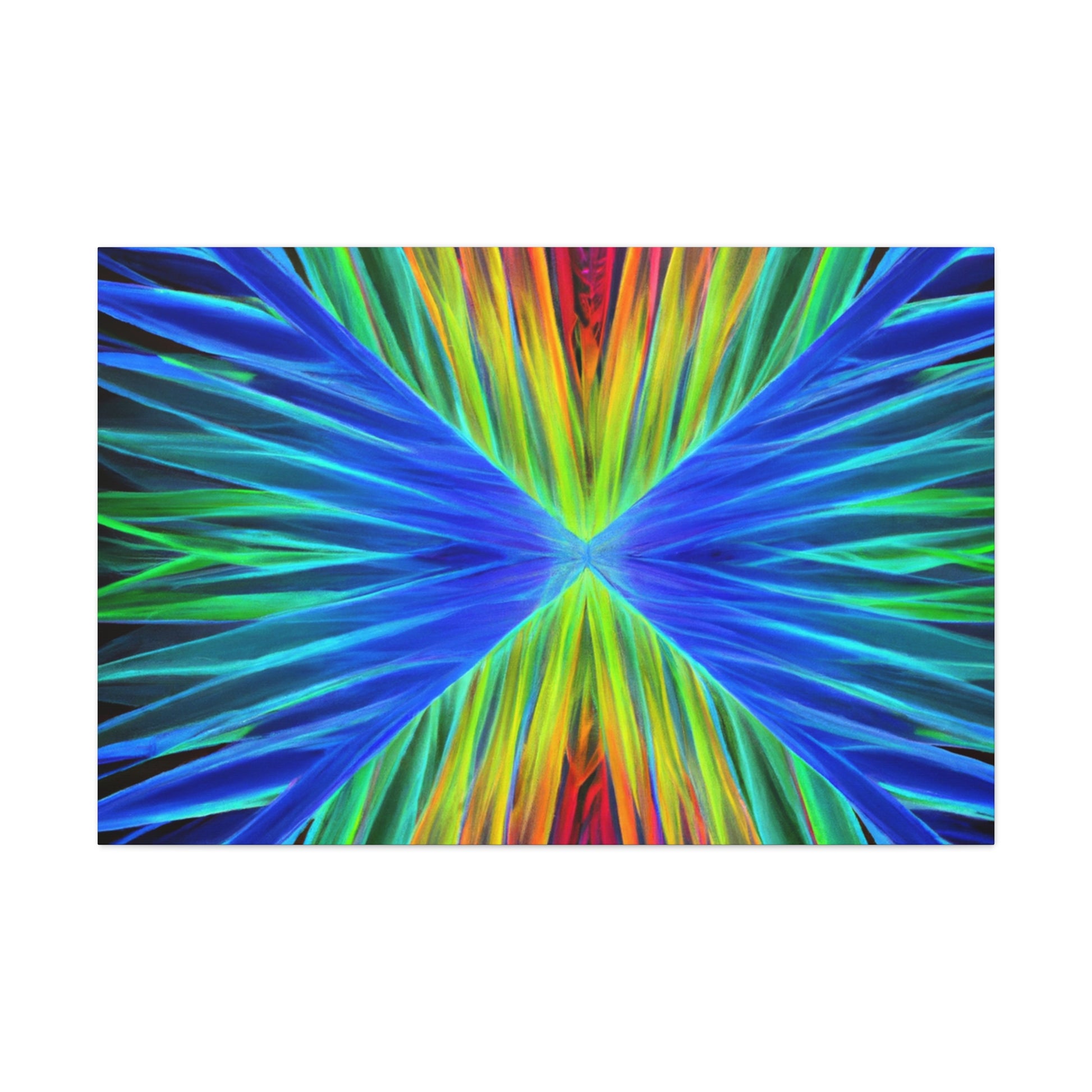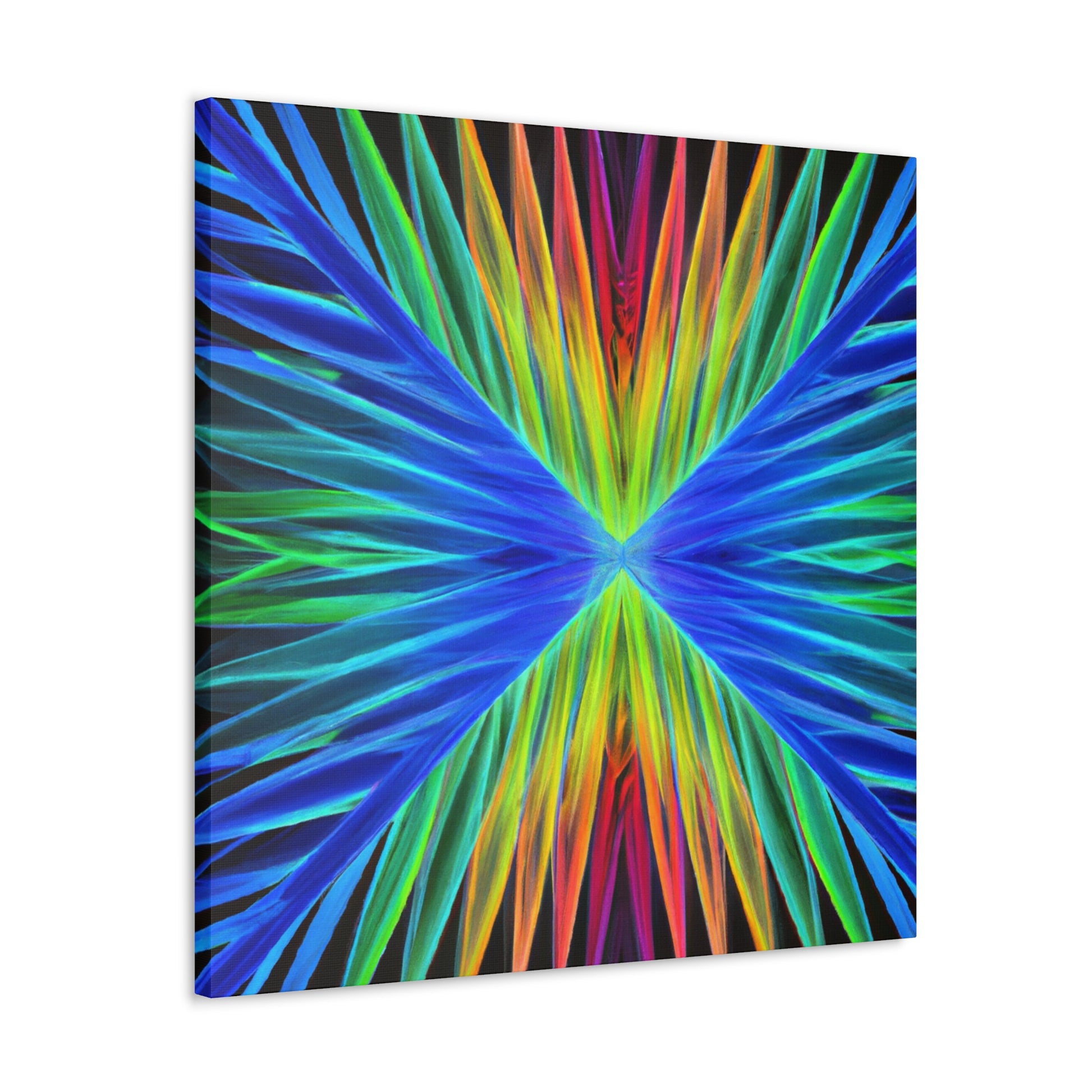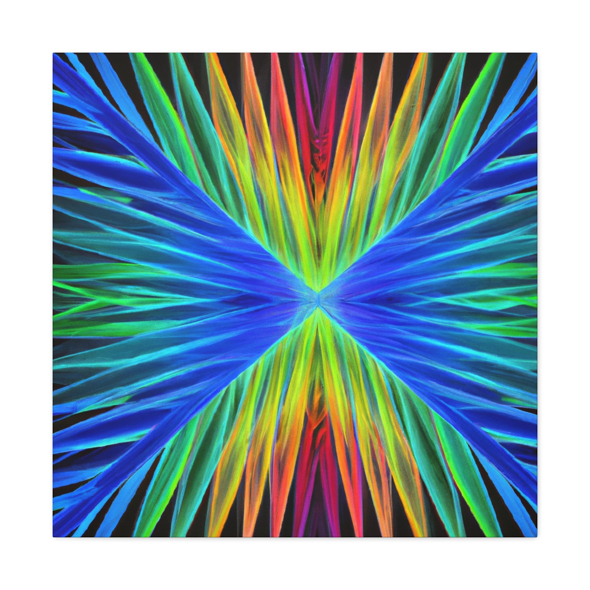 This stunning, captivating canvas print paints a unique visual experience like no other. Artistically combining vivid hues of blues, purples, and greens, this digital work of art depicts a visual that stands out. Trippy geometric palm leaves, kaleidoscope, abstract, and fractal imagery come together to create a mesmerizing 3D composition. Hang this vibrant canvas in any space for a dramatic and fun addition to your home. #trippyart #geometricart #palmleaves #kaleidoscope #abstractart #digitalart #vibrantcolors #3Dlines #fractal #canvaspaintings #homeart