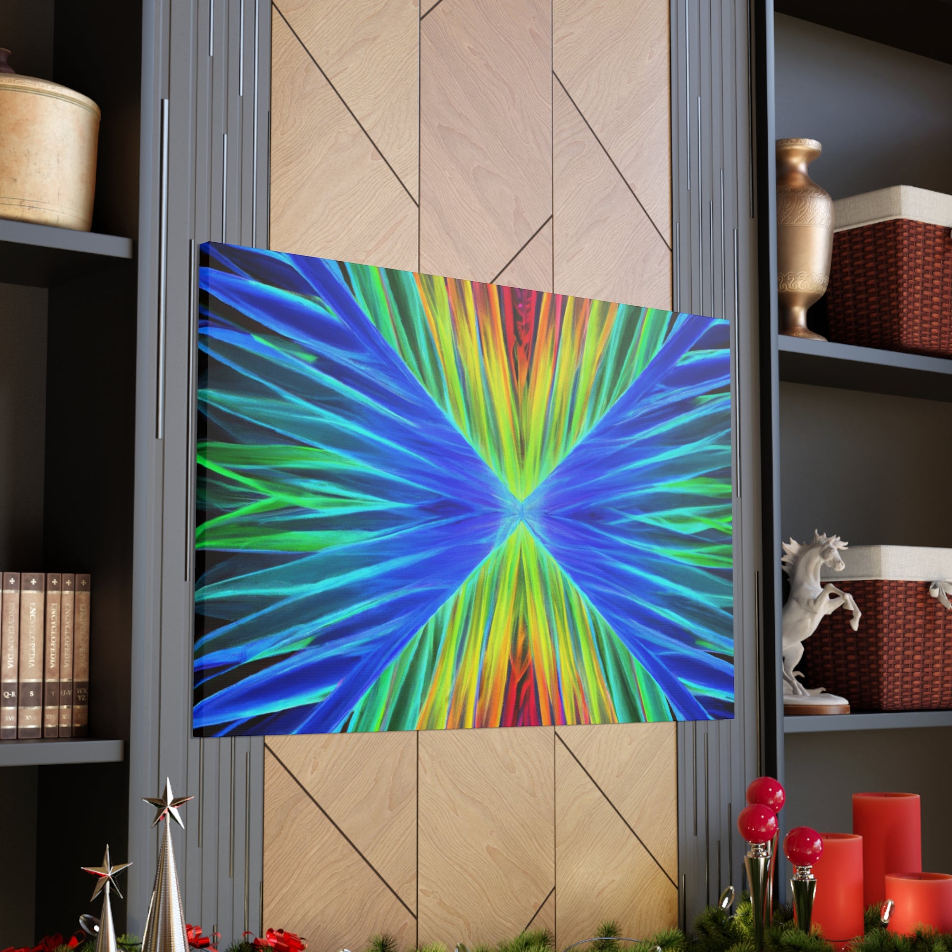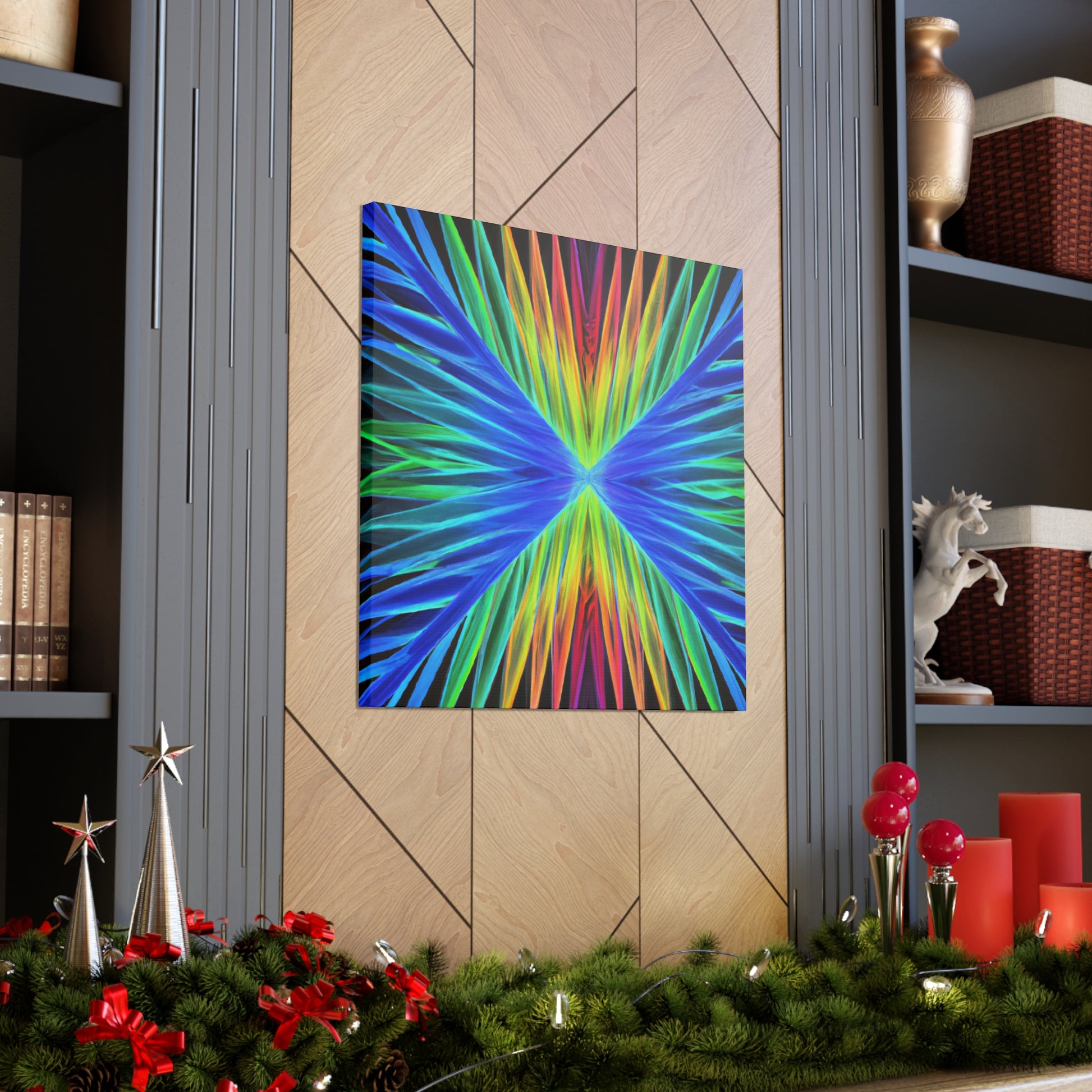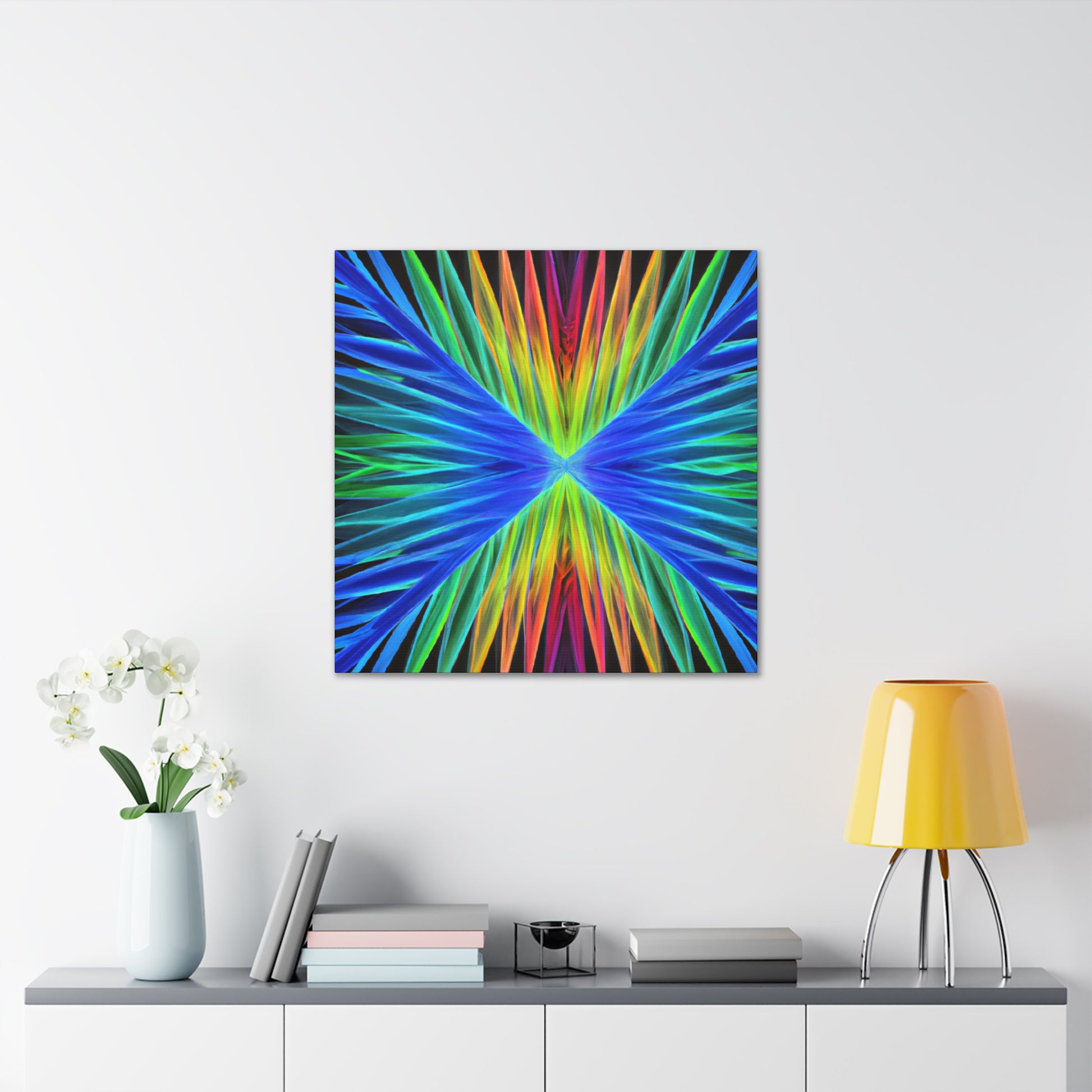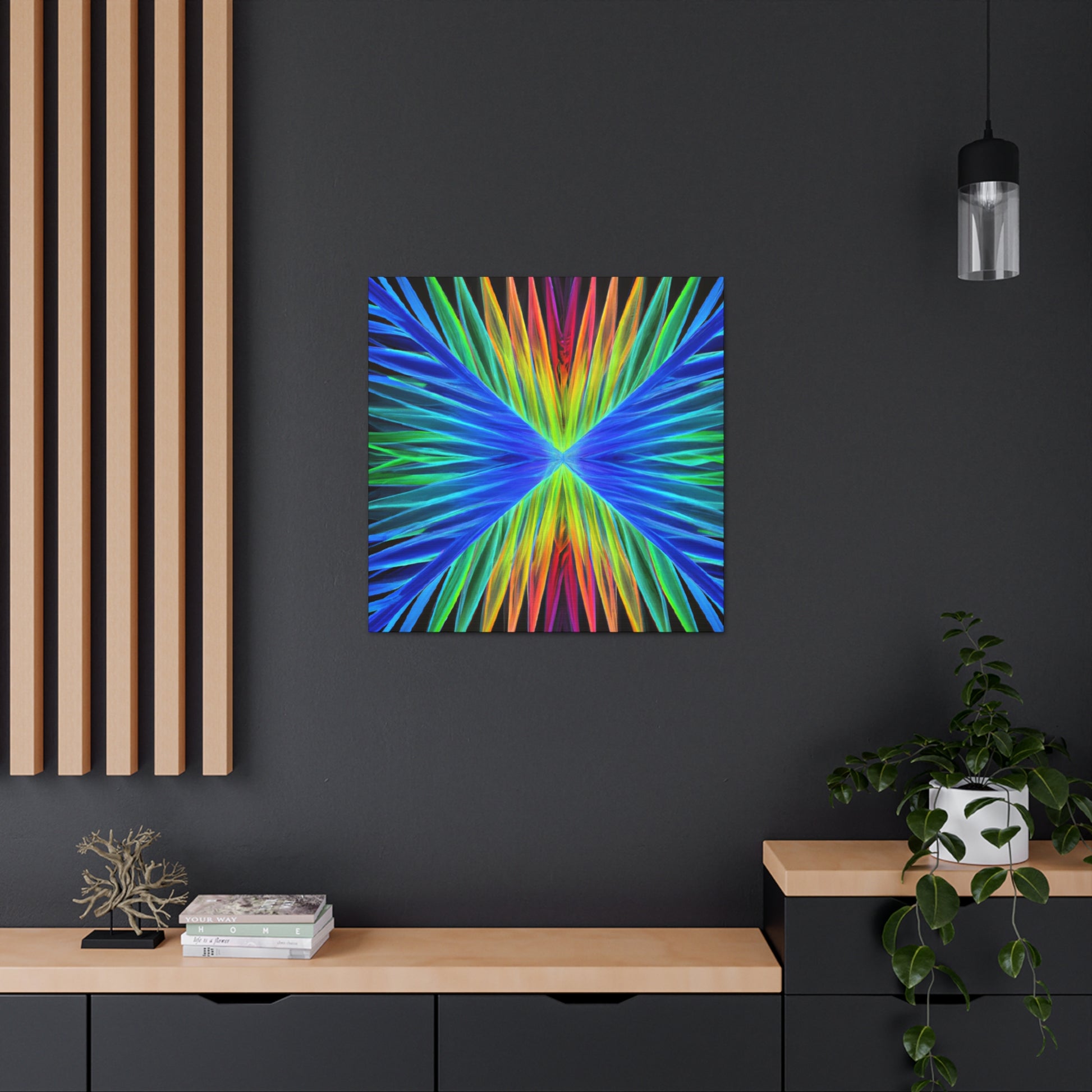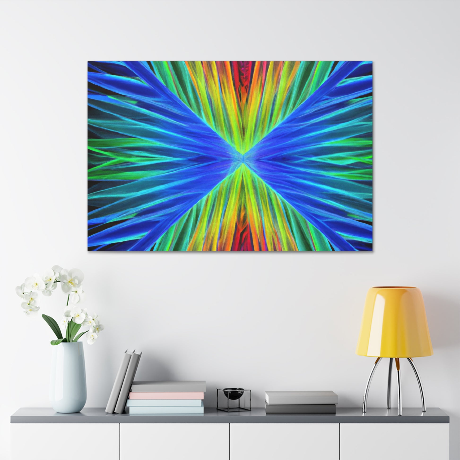 This stunning, captivating canvas print paints a unique visual experience like no other. Artistically combining vivid hues of blues, purples, and greens, this digital work of art depicts a visual that stands out. Trippy geometric palm leaves, kaleidoscope, abstract, and fractal imagery come together to create a mesmerizing 3D composition. Hang this vibrant canvas in any space for a dramatic and fun addition to your home. #trippyart #geometricart #palmleaves #kaleidoscope #abstractart #digitalart #vibrantcolors #3Dlines #fractal #canvaspaintings #homeart