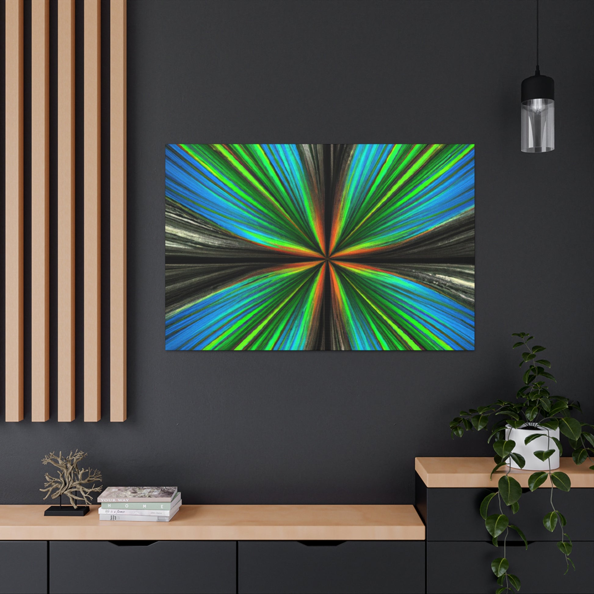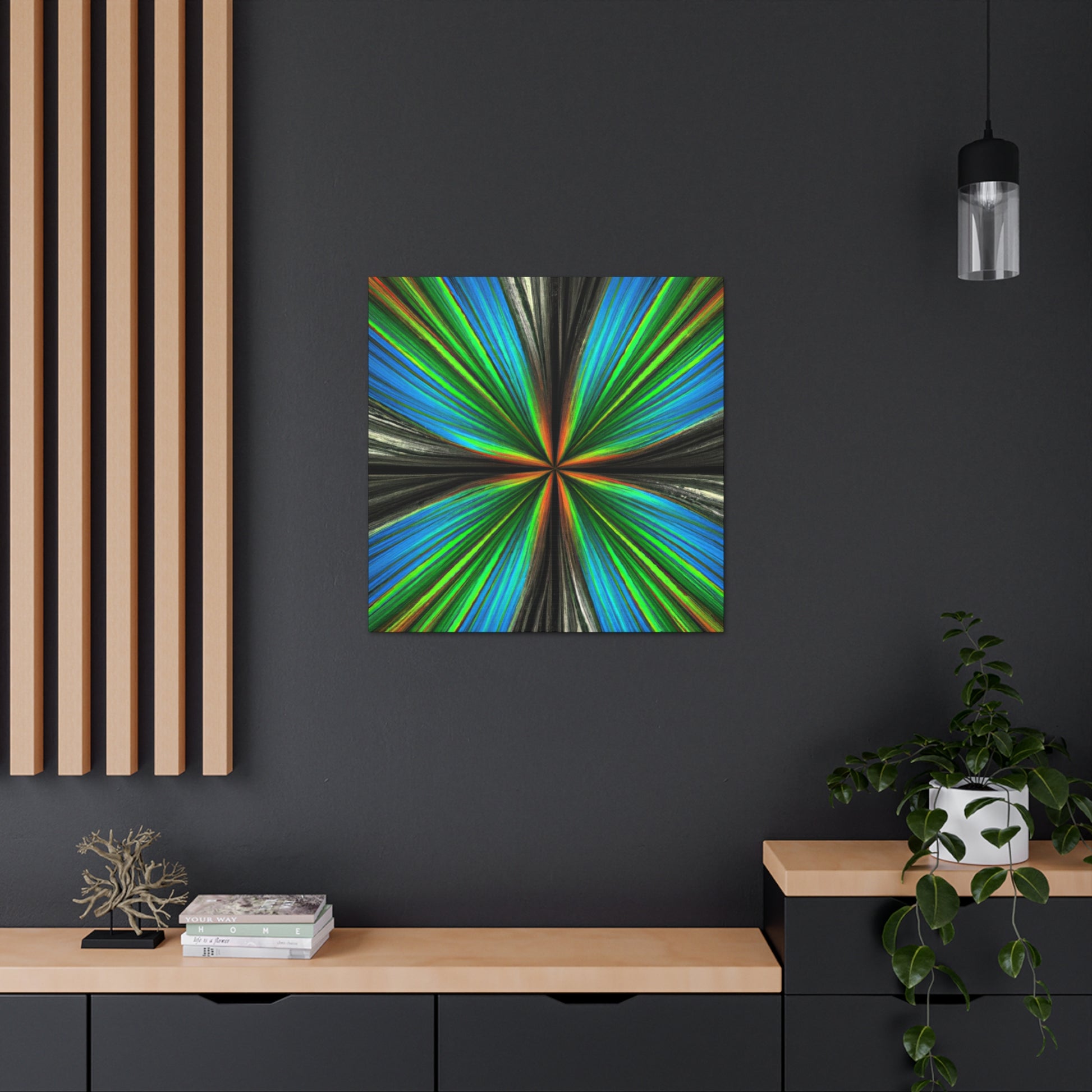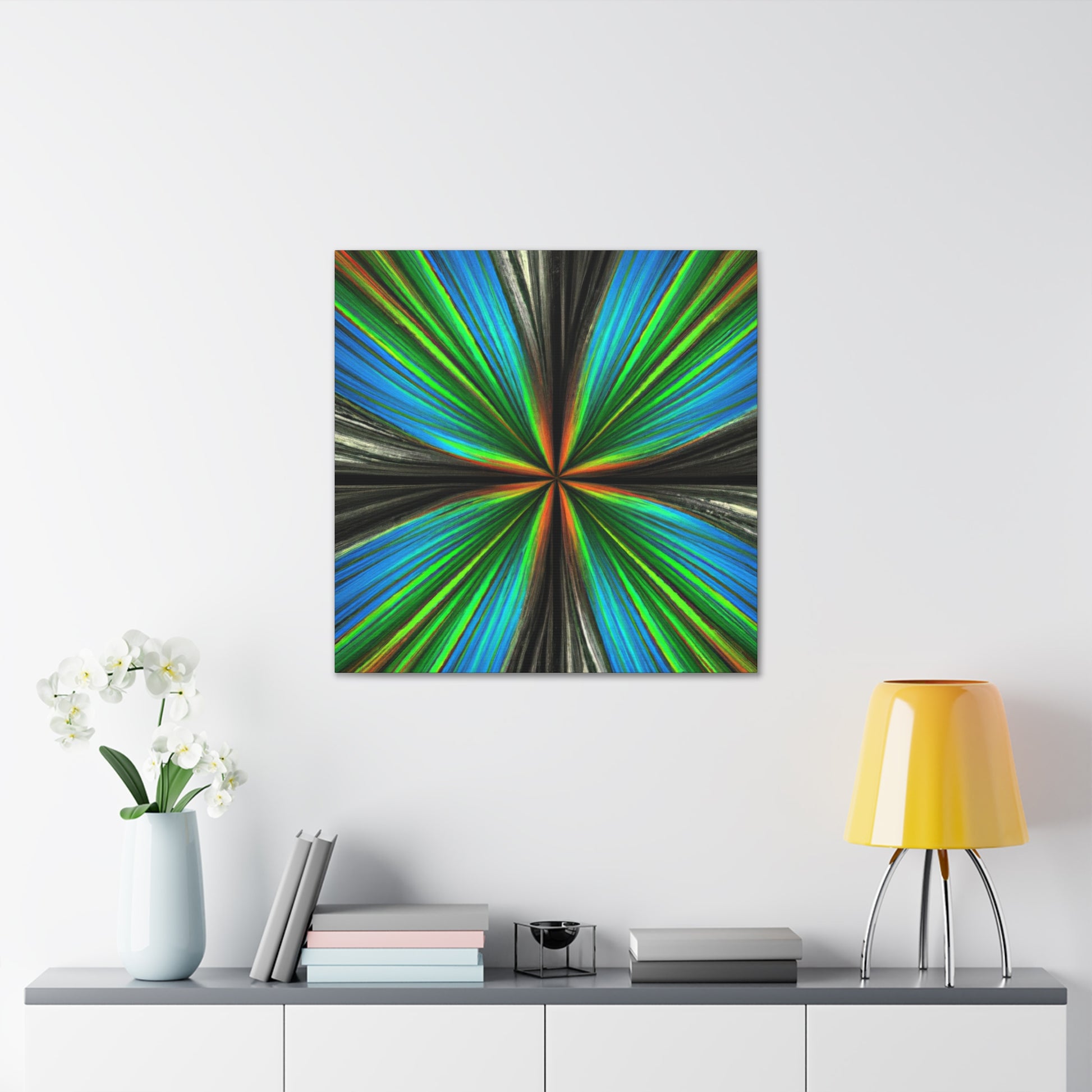 This canvas is a vibrant, digital creation that blends abstract, geometric elements with kaleidoscopic, 3D lines and fractal designs! The colors are bold and the stylistic design is eye-catching and bold. The design brings life to any wall or room! #trippy #geometric #palmleaves #kaleidoscope #abstract #digitalart #vibrantcolors #3Dlines #fractal #wallart #homedecor
