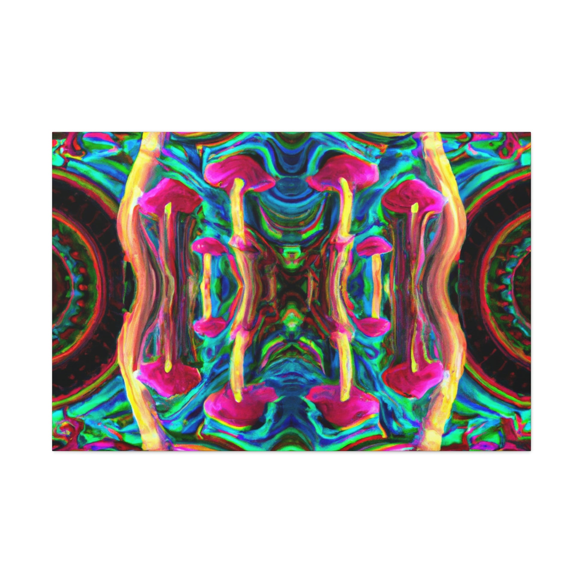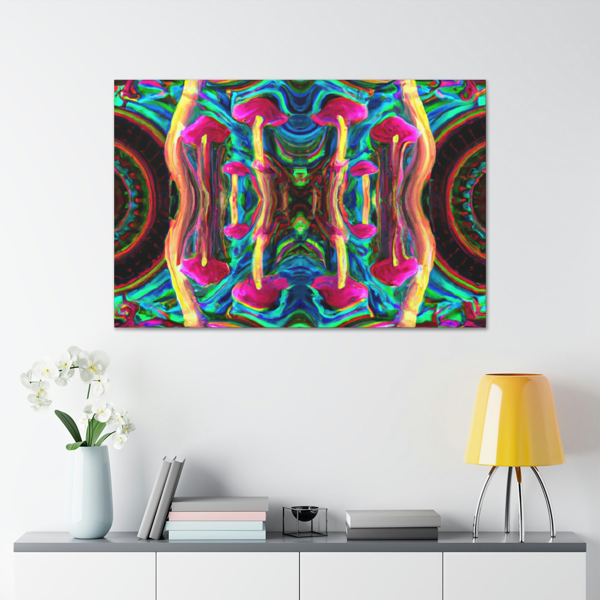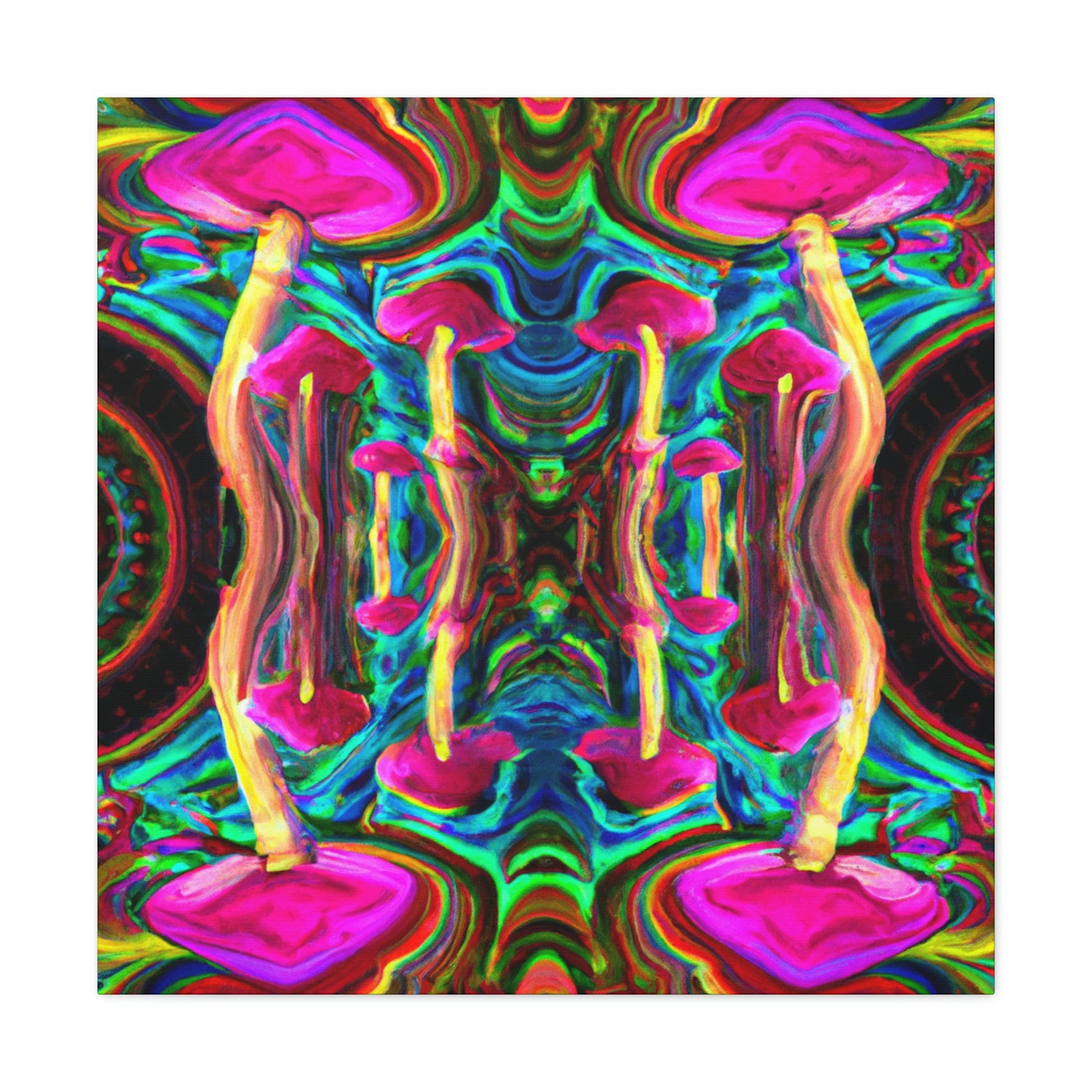 This canvas is a digital art masterpiece! The mix of kaleidoscopic shapes, trippy mushrooms in vibrant colors, and abstract 3D lines come together to create a truly unique piece that you won't find anywhere else. This one-of-a-kind canvas will be the perfect addition to your home and will stand out among the rest! #trippy #mushrooms #kaleidoscope #abstract #digitalart #3dlines #vibrantcolors #unique #canvasart #masterpiece #statementpiece