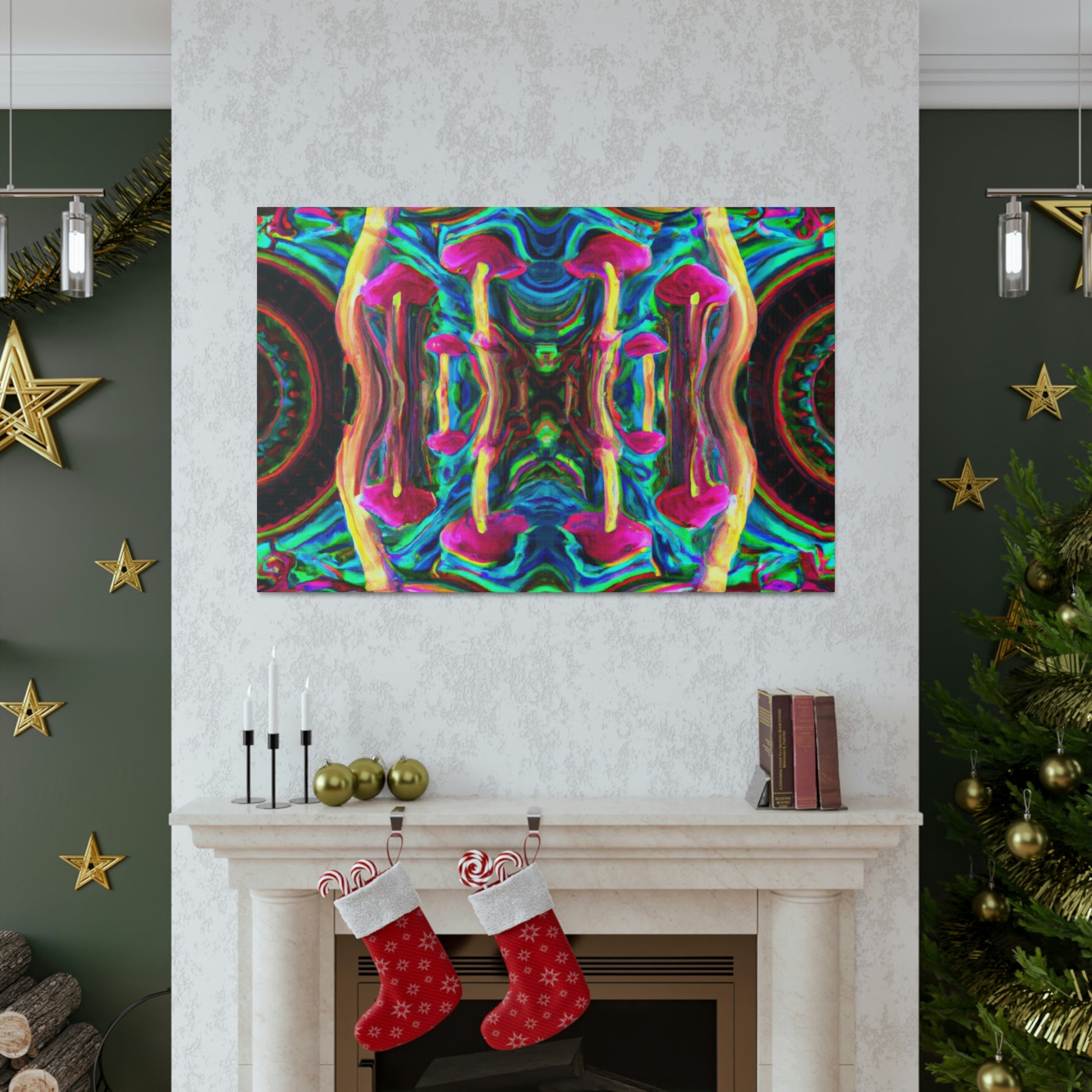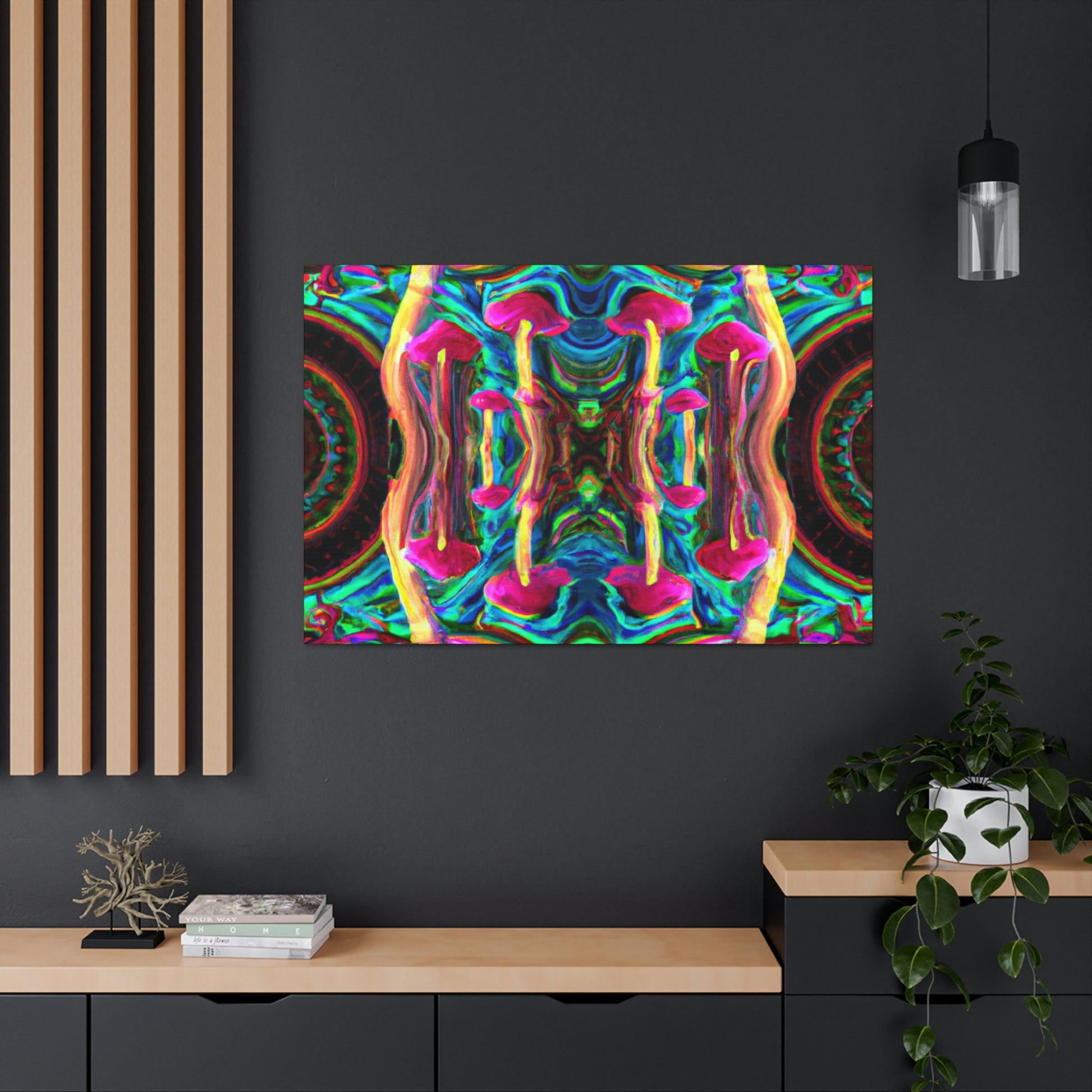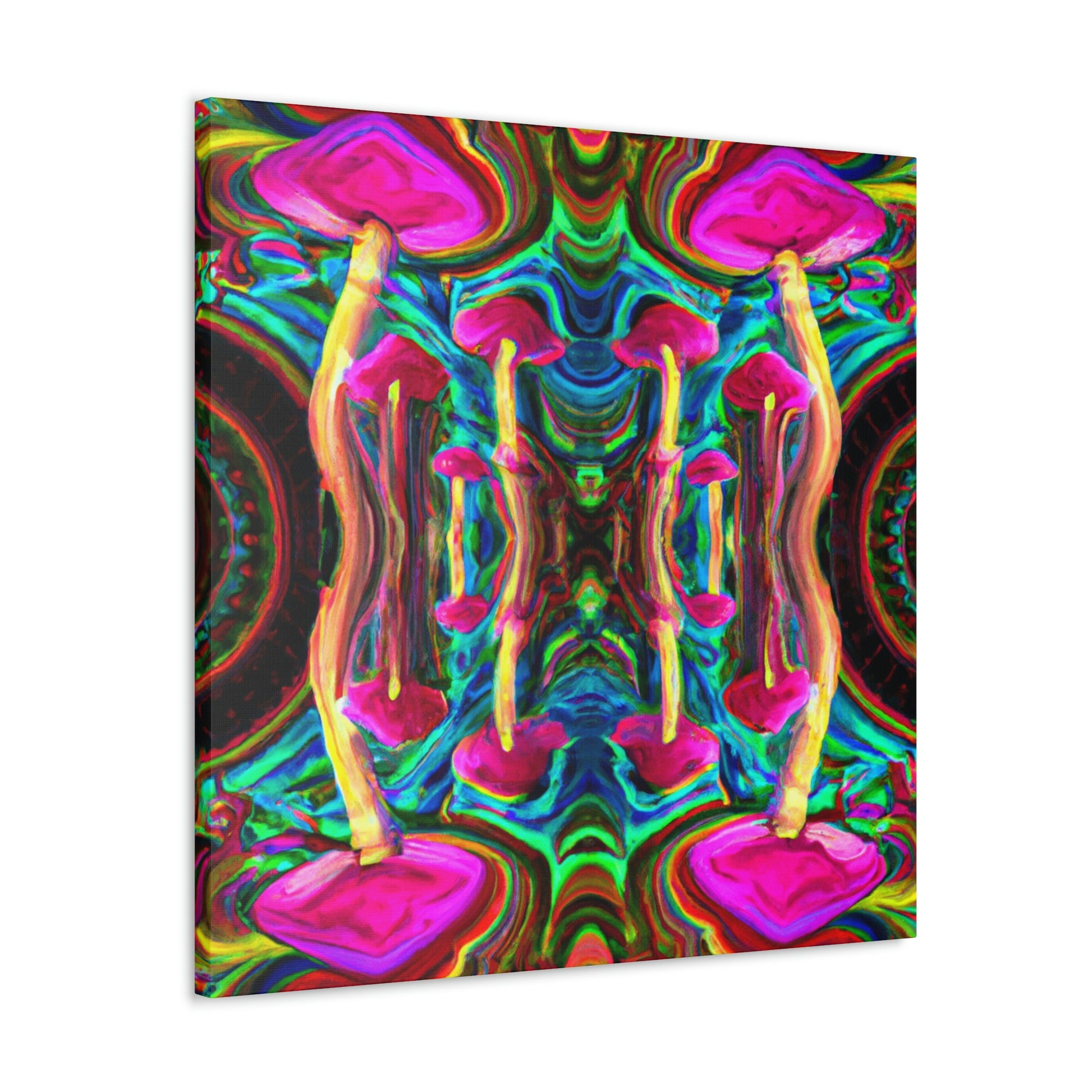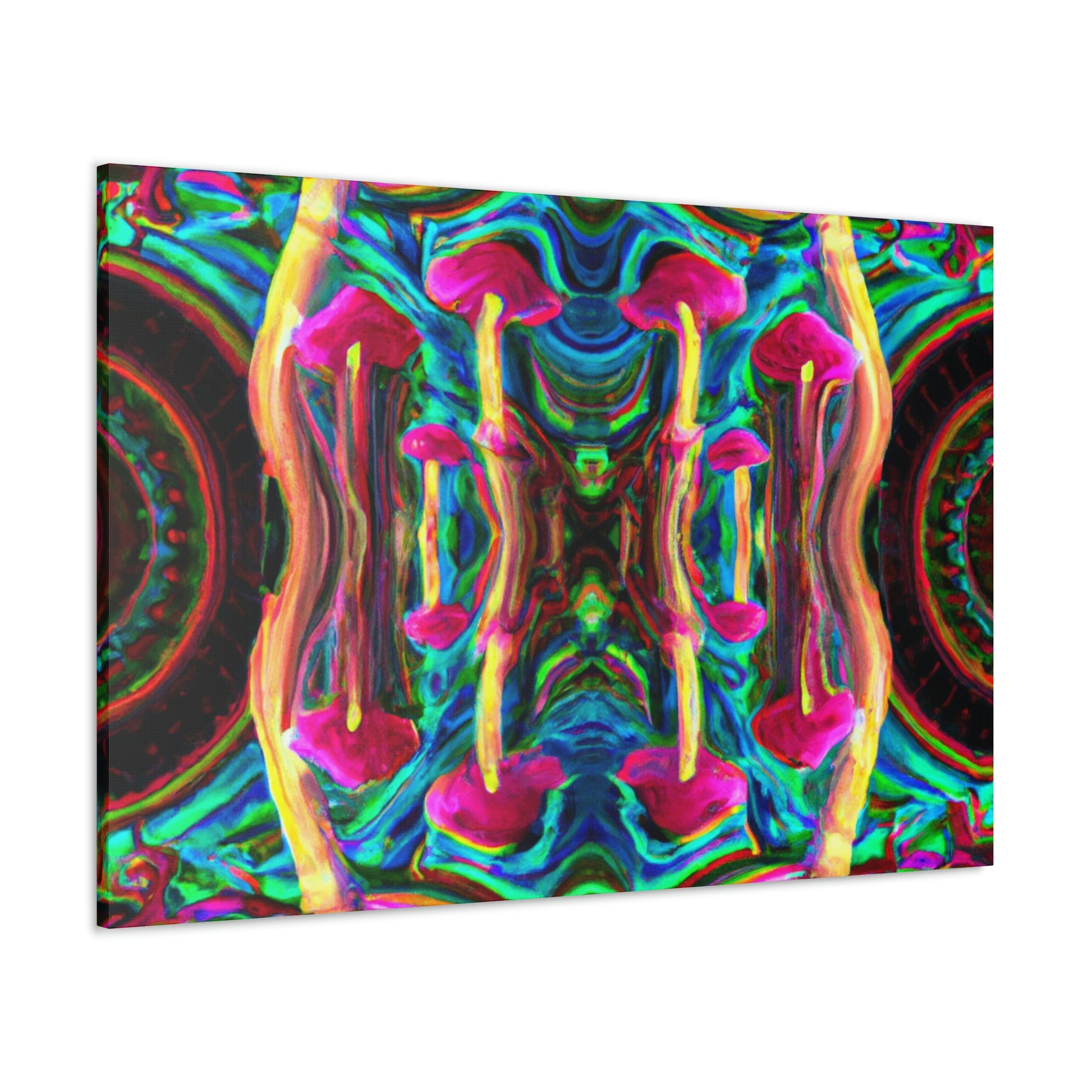 This canvas is a digital art masterpiece! The mix of kaleidoscopic shapes, trippy mushrooms in vibrant colors, and abstract 3D lines come together to create a truly unique piece that you won't find anywhere else. This one-of-a-kind canvas will be the perfect addition to your home and will stand out among the rest! #trippy #mushrooms #kaleidoscope #abstract #digitalart #3dlines #vibrantcolors #unique #canvasart #masterpiece #statementpiece