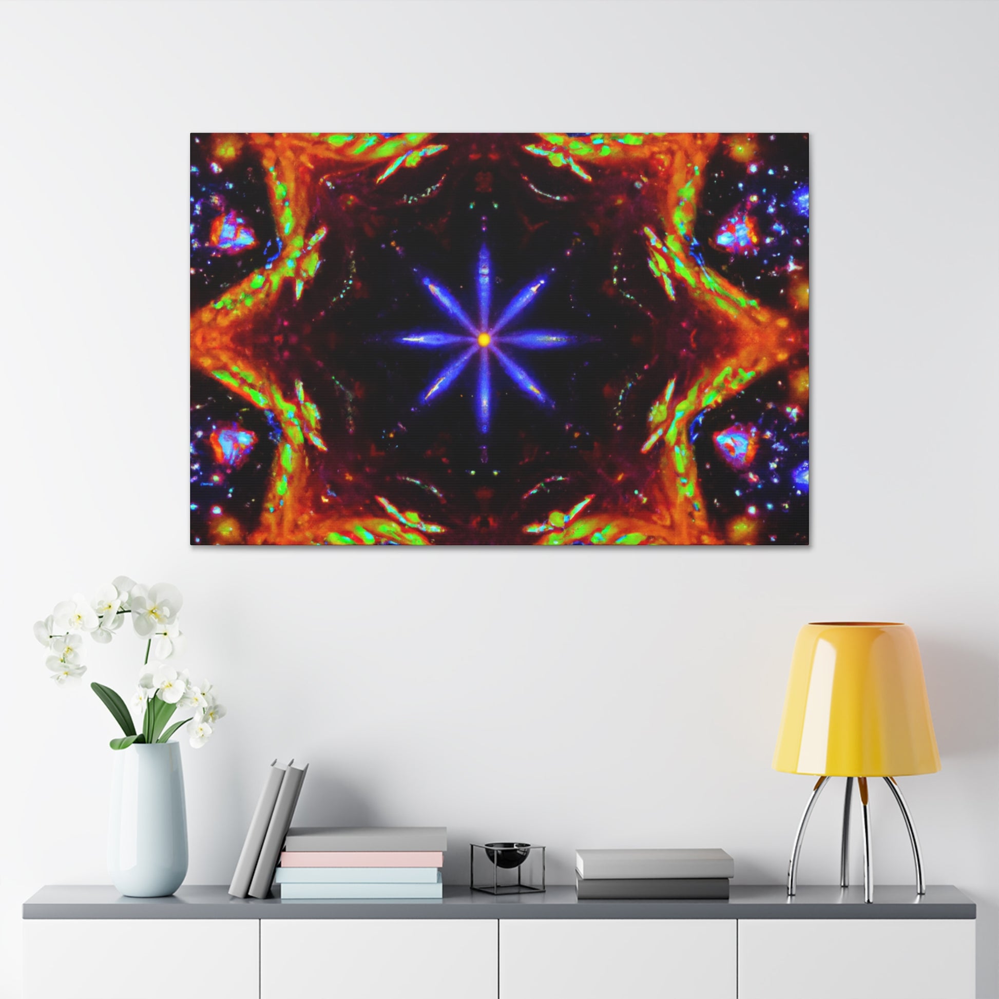 This captivating canvas brings the trippy vibes to your home. A must-have for abstract art fans! This piece of art is a digital masterpiece with eye-catching Kaleidoscope colors and symmetrical designs. Pro-grade HD printing ensures crystal-clear images and vibrant colors that look beautiful in any room. Plus, this piece of art is perfectly centered for your viewing pleasure. #trippystars #kaleidoscope #abstractart #digitalart #vibrantcolors #HD #centred #symmetrical #interiordesign #homeart #wallart