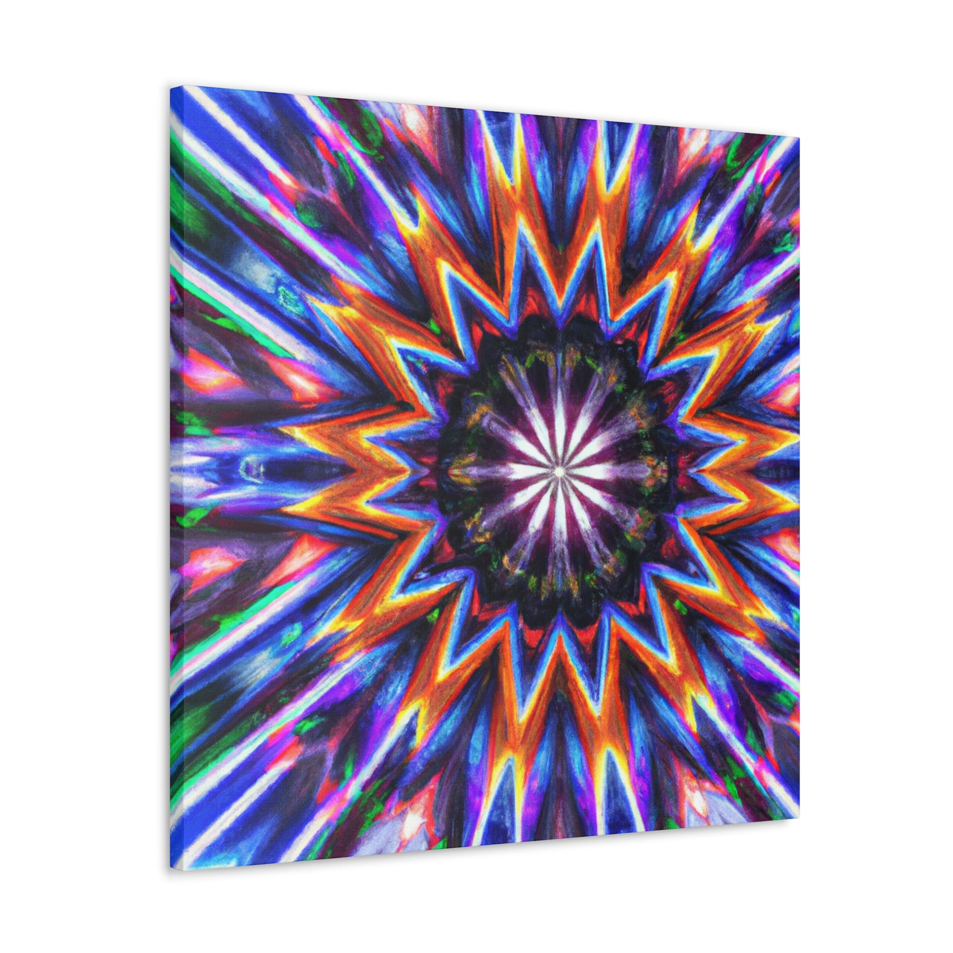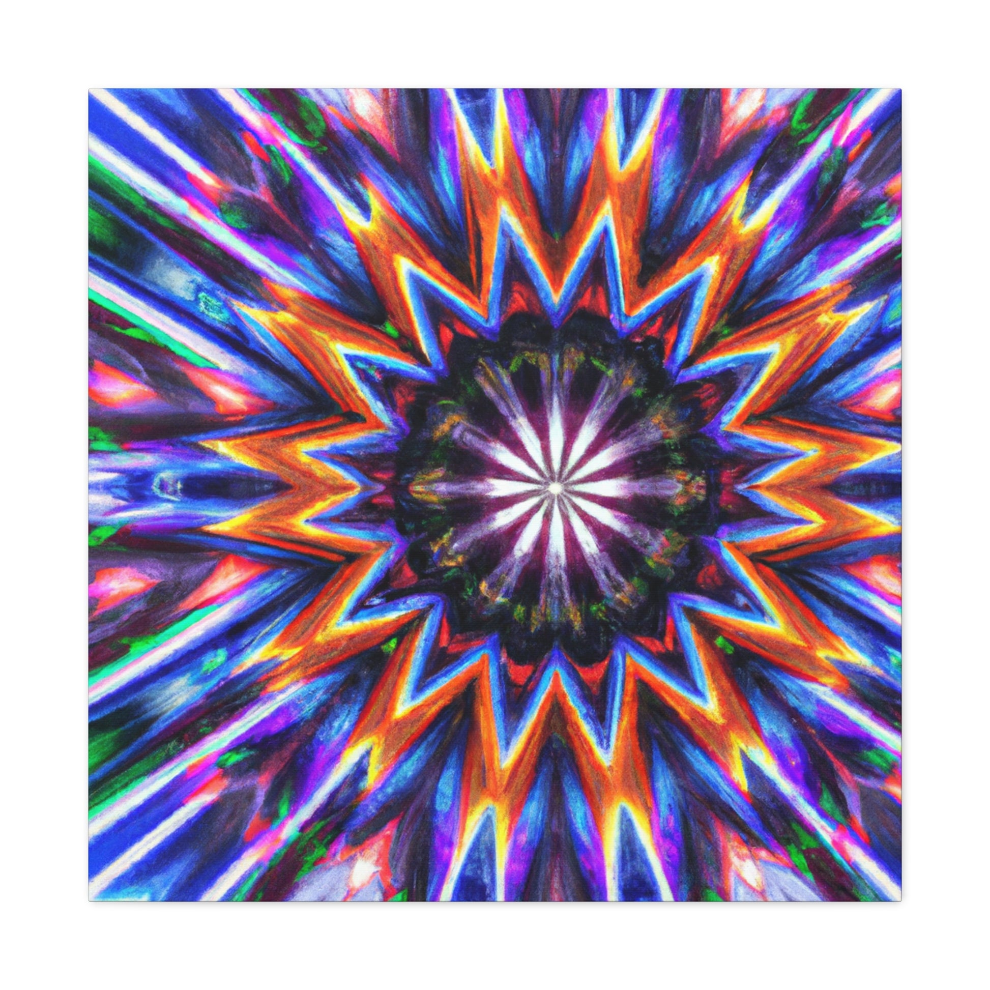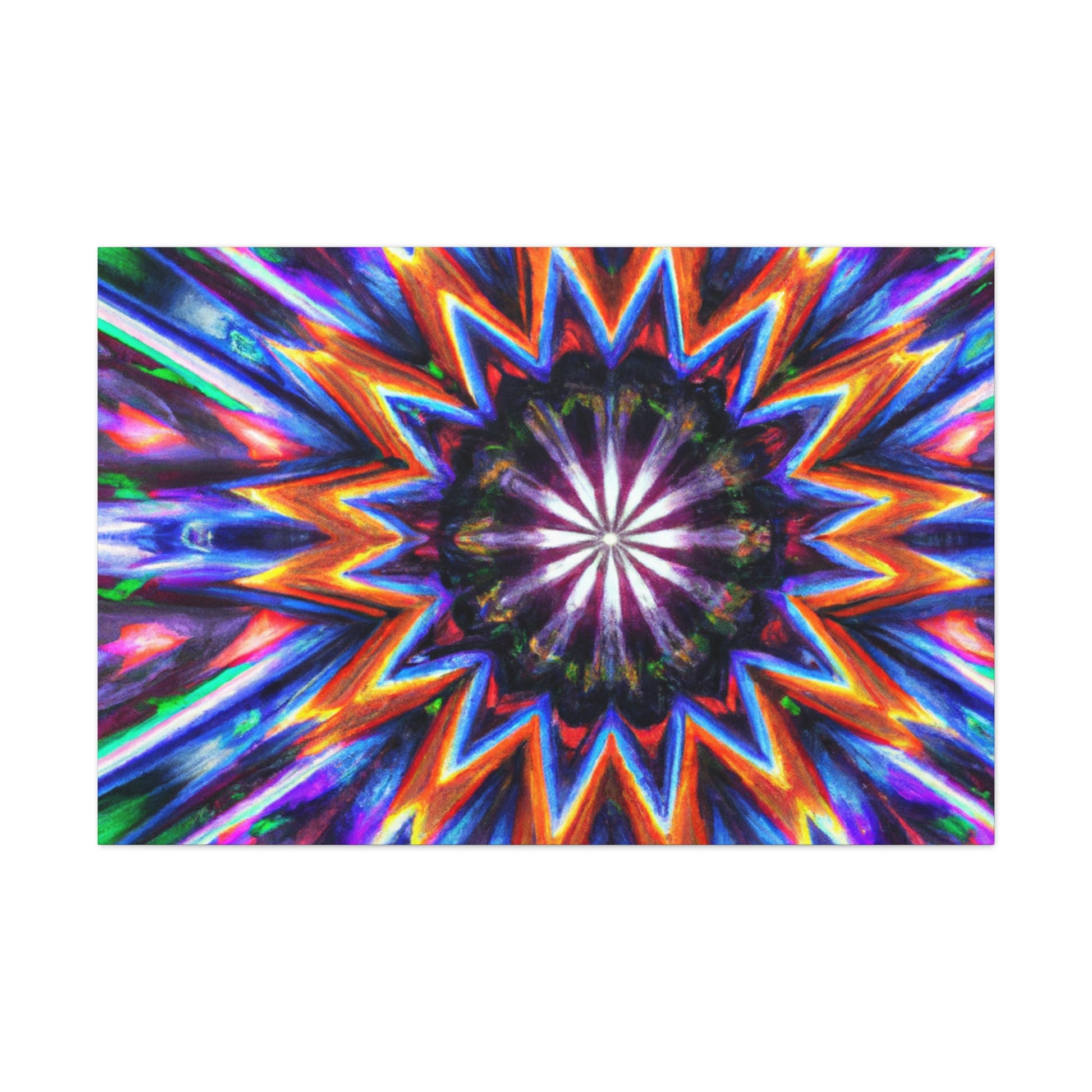 This vibrant, abstract canvas is perfect for making any room pop! Its Trippy stars, kaleidscope, and digital art design creates a symmetrical, HD effect in the room. Vibrant colors and symmetry will give your home a unique look. This canvas is sure to be a conversation piece and a favorite of all! #TrippyStars #Kaleidoscope #AbstractArt #DigitalArt #VibrantColors #HD #HomeDesign #InterierDecor #Centerpiece #LivingRoomDecor #UniqueDesign