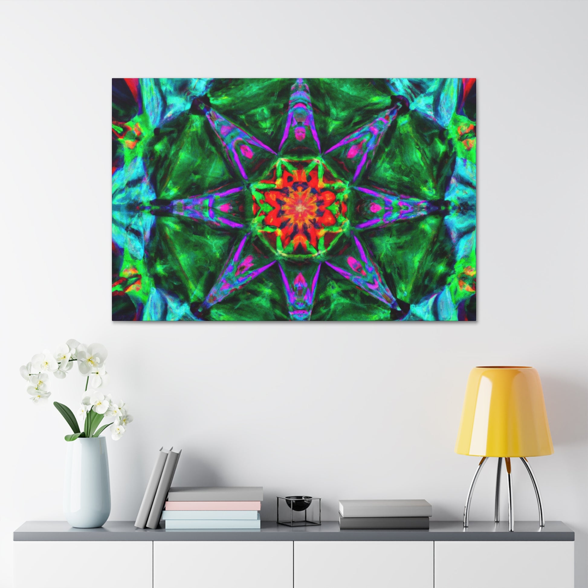 This HD canvas of psychedelic and abstract art captures all the vibrant colors and symmetry of a kaleidoscope. You can see the stars and a trippy landscape in the center, while the edges reflect an infinite pattern of shapes and colors. Enjoy the unique design and get ready to be mesmerized! #psychedelicart #abstractart #canvas #vibrantcolors #hdwallpaper #kaleidoscope #stars #digitalart #trippy #symmetrical #HD
