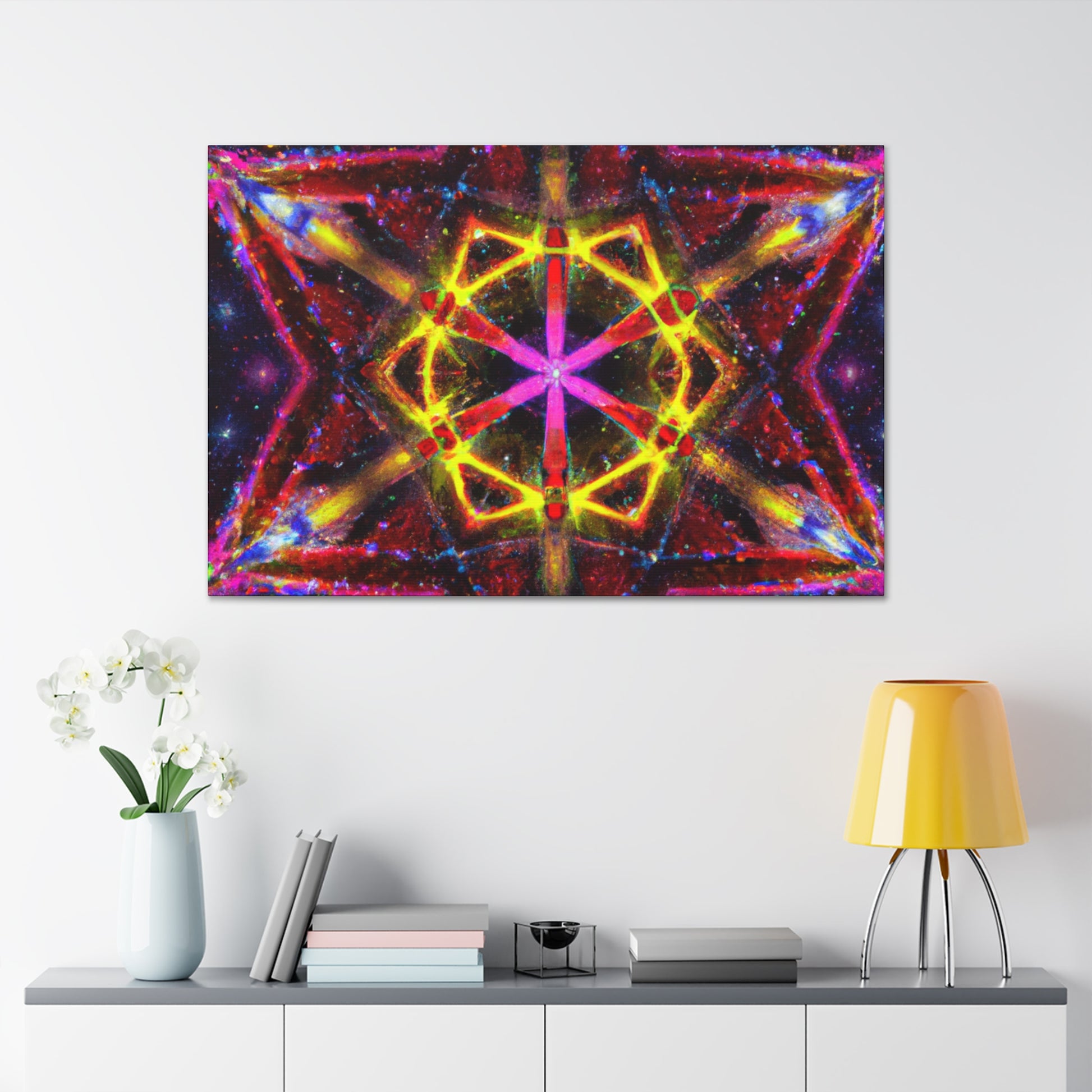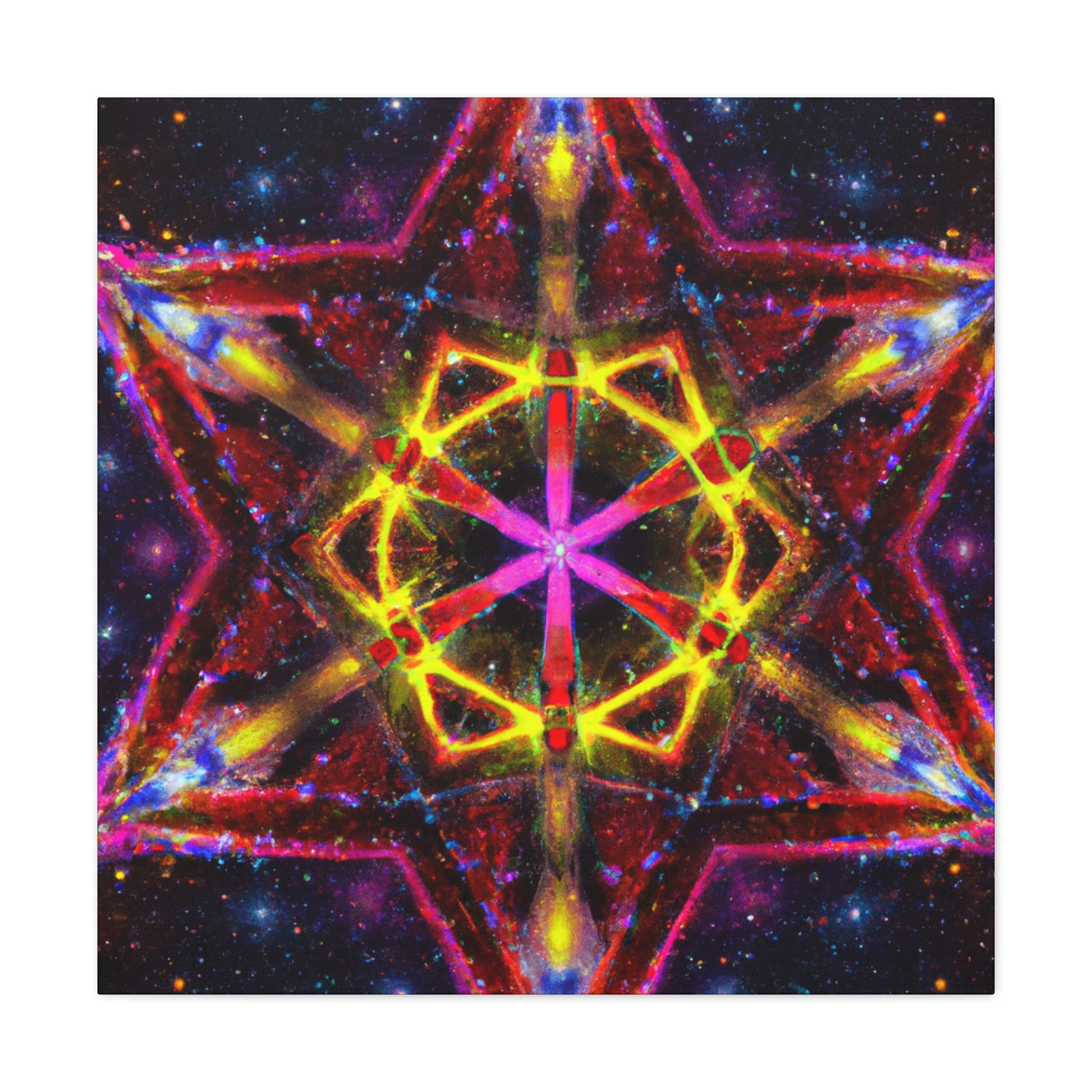 This canvas of trippy stars, kaleidoscope, abstract, and digital art, with its vibrant colors and HD image, creates a perfect, symmetrical centerpiece for any room. Allowing you to explore the outer limits of creativity, this mesmerizing artwork will bring vibrancy and uniqueness to your space. #canvasart #trippyart #kaleidoscopeart #abstractart #digitalart #vibrantcolors #HD #symmetrical #StarArt #centerpiece #mentaltravel