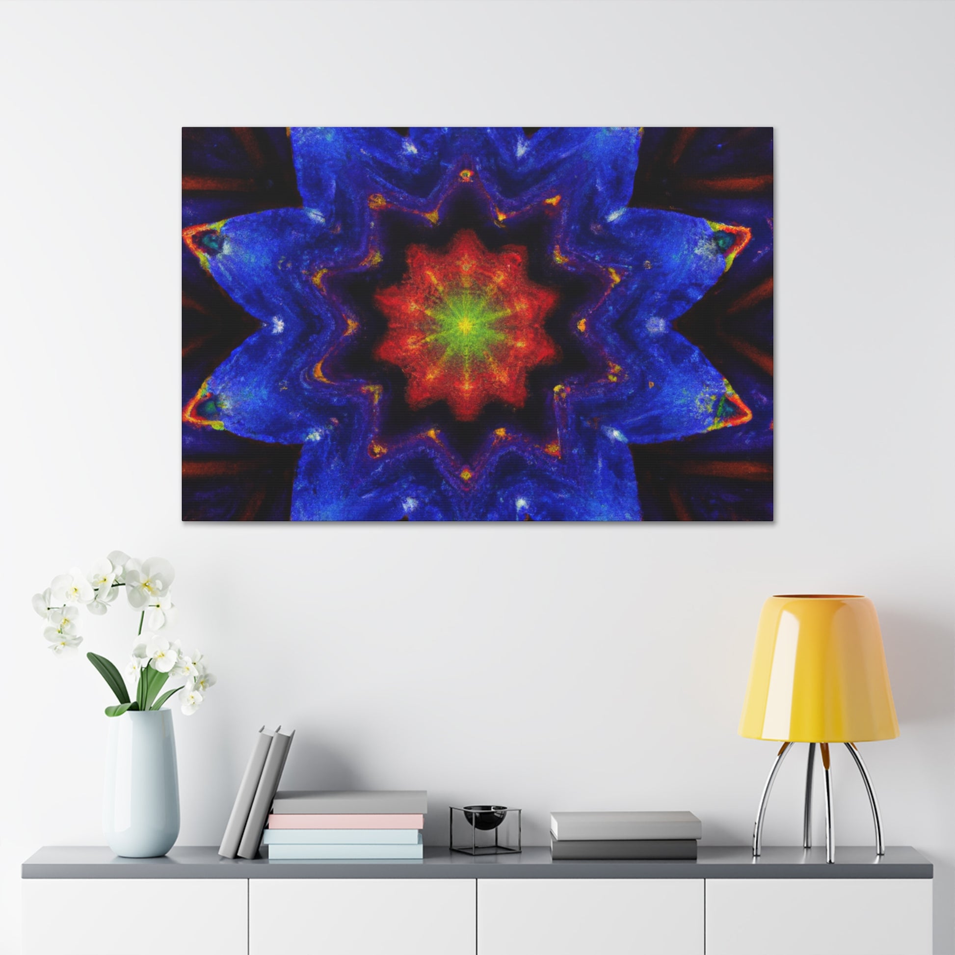 This HD digital abstract art canvas stands out with its colorful and vibrant design. It displays a symmetrical Tamara Laporte inspired trippy stars kaleidoscope with unique shapes and colors all around. Express your home decor and brighten up any decor with this modern and eye-catching piece of art. #abstractart #canvasdecor #kaleidoscope #tamaralaporte #digitialart #vibrantcolors #HD #symmetrical #trippystars #artdecor #homedecor