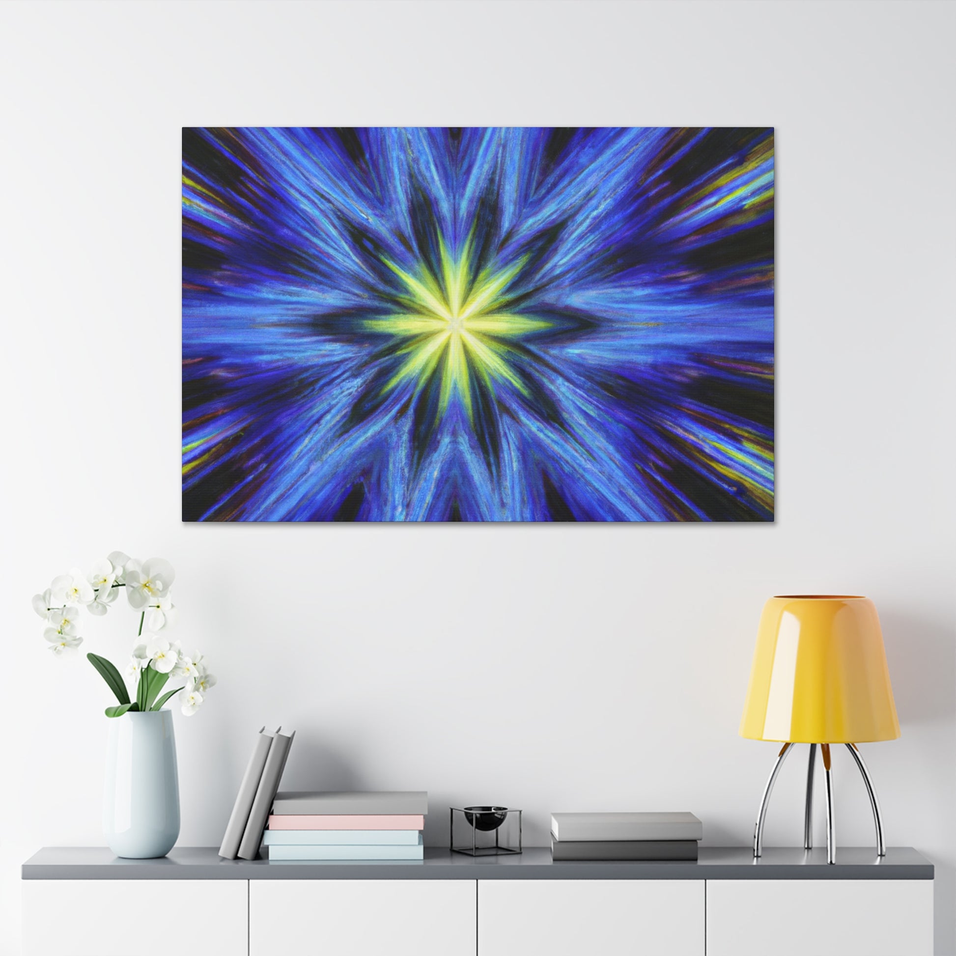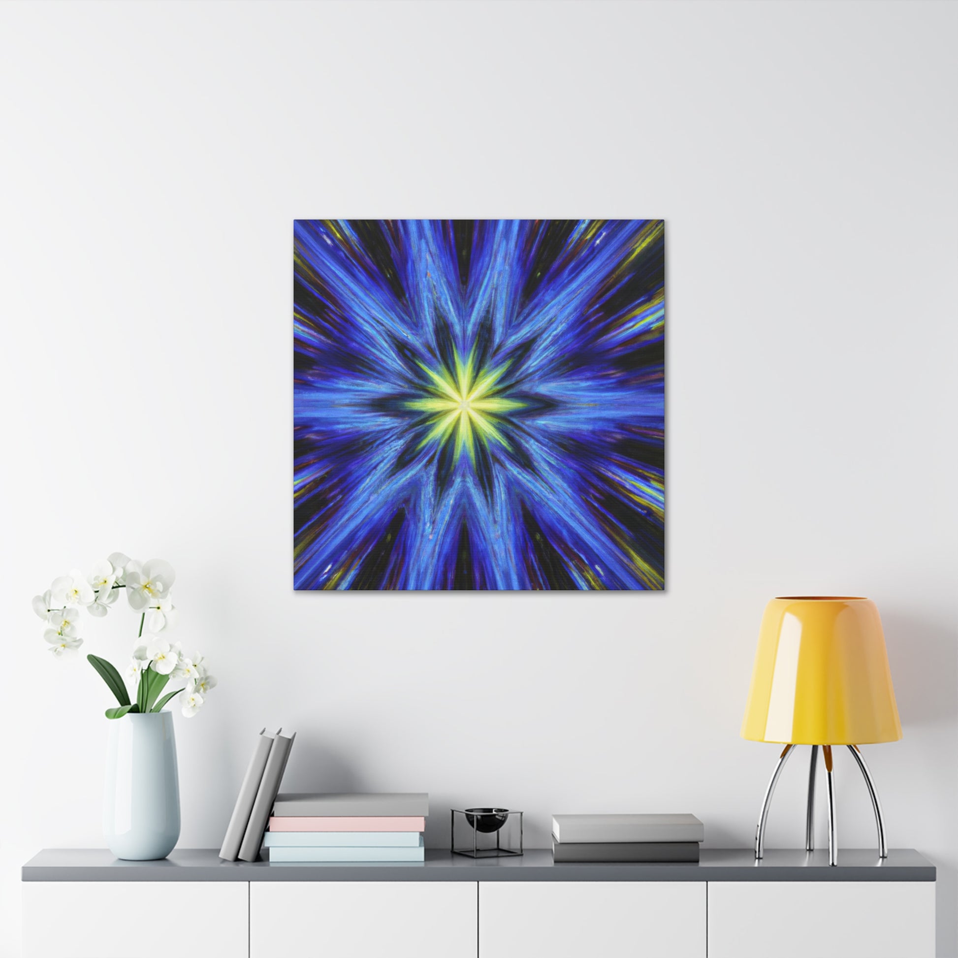 This canvas of Trippy Stars is perfect for personalizing any space with a burst of dazzling abstract art. The kaleidoscopic design features intense digital art with vibrant hues and HD clarity. Its symmetrical visuals come alive with mesmerizing color and will bring a room to life. Perfect for an office interior, living room, or bedroom decor, our canvas will be an awe inspiring focal point. #trippystars #kaleidoscope #abstract #digitalart #vibrantcolors #HD #center #symmetry #wallart #canvas #homedecor