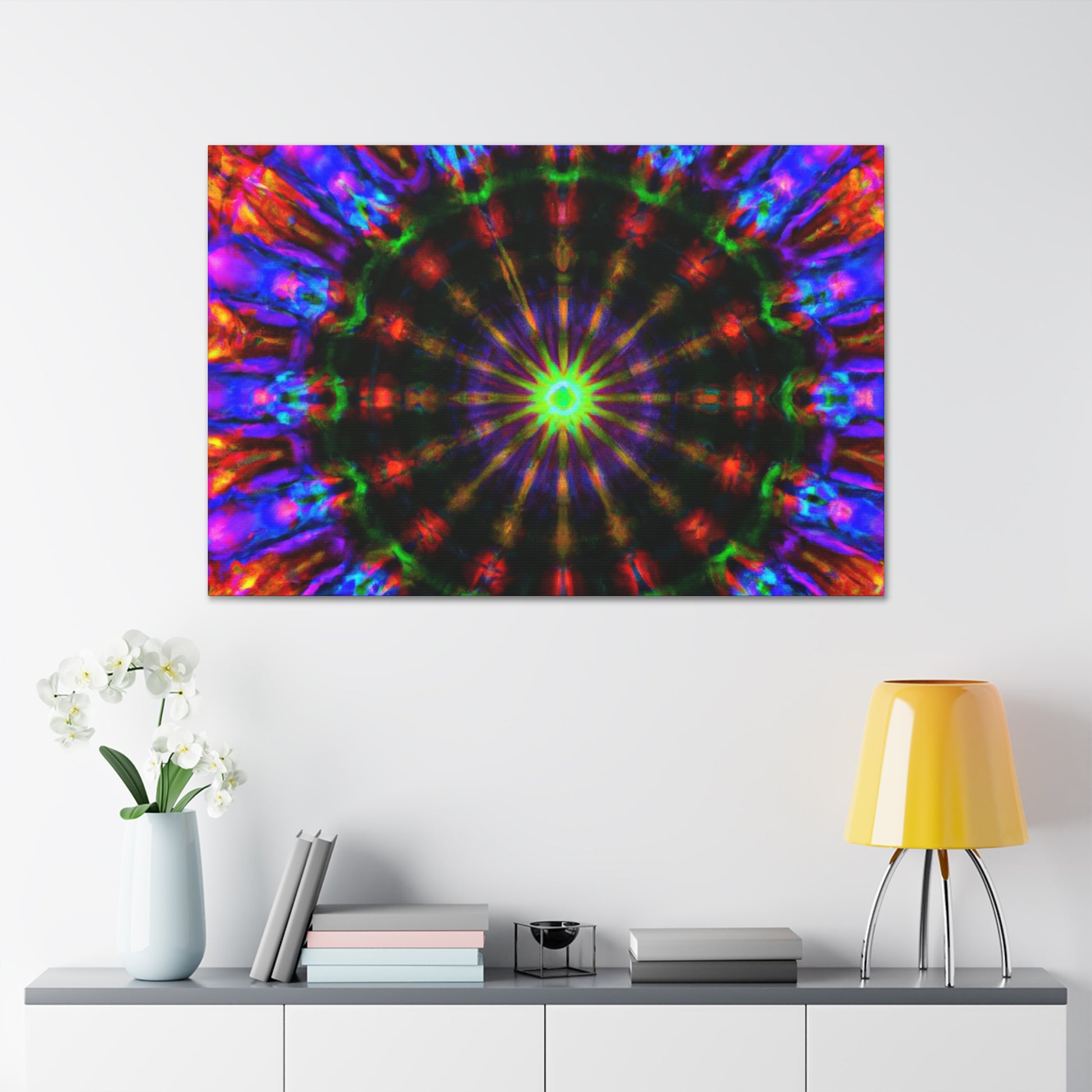This canvas of abstract, digital artwork explodes with vibrant colors and features a symmetrical, kaleidoscopic image of trippy stars. Printed in HD and sure to turn your walls into a colorful statement piece. #abstractart #digitalart #trippystars #kaleidoscope #symmetrical #vibrantcolors #HD #canvas #canvasart #wallart #statementpiece