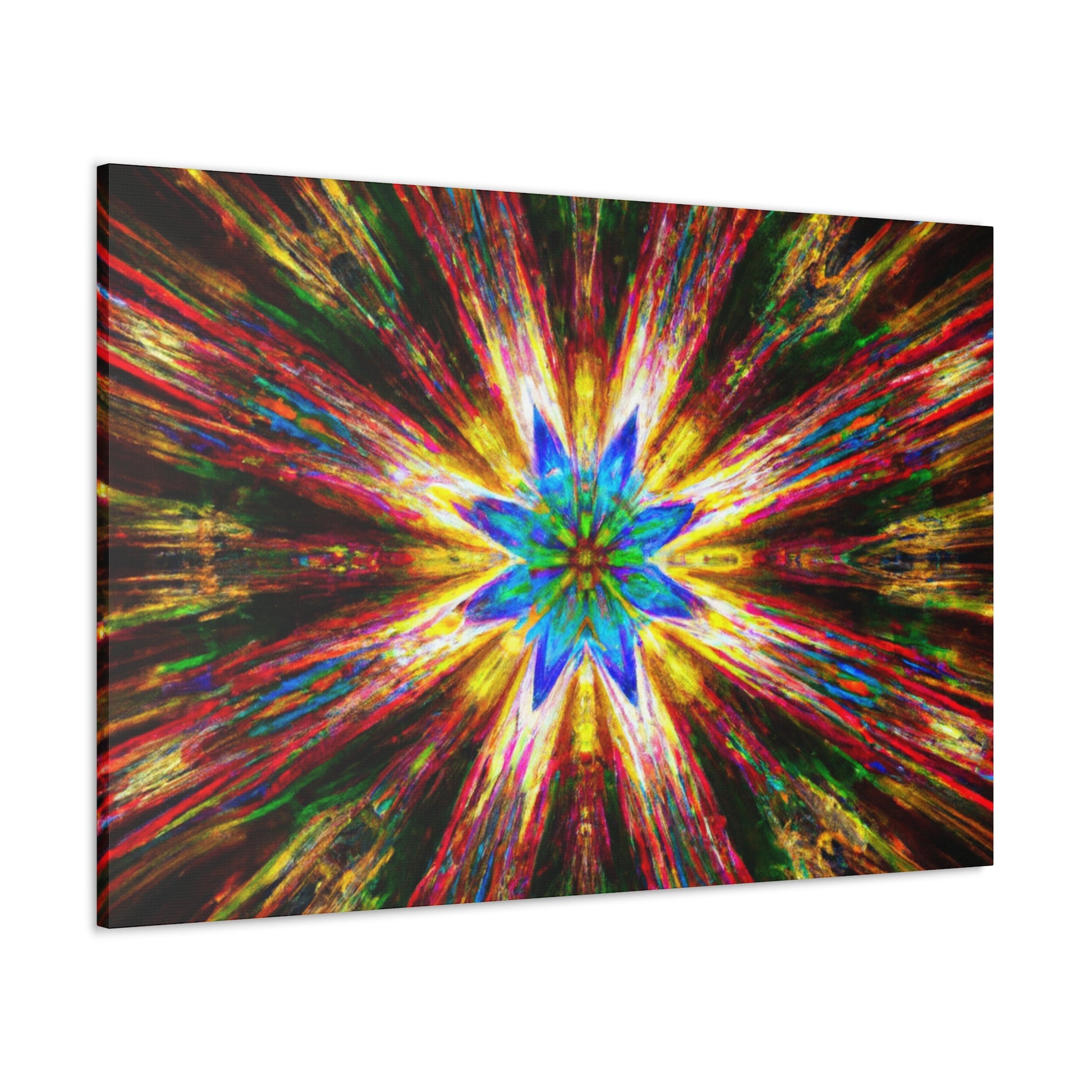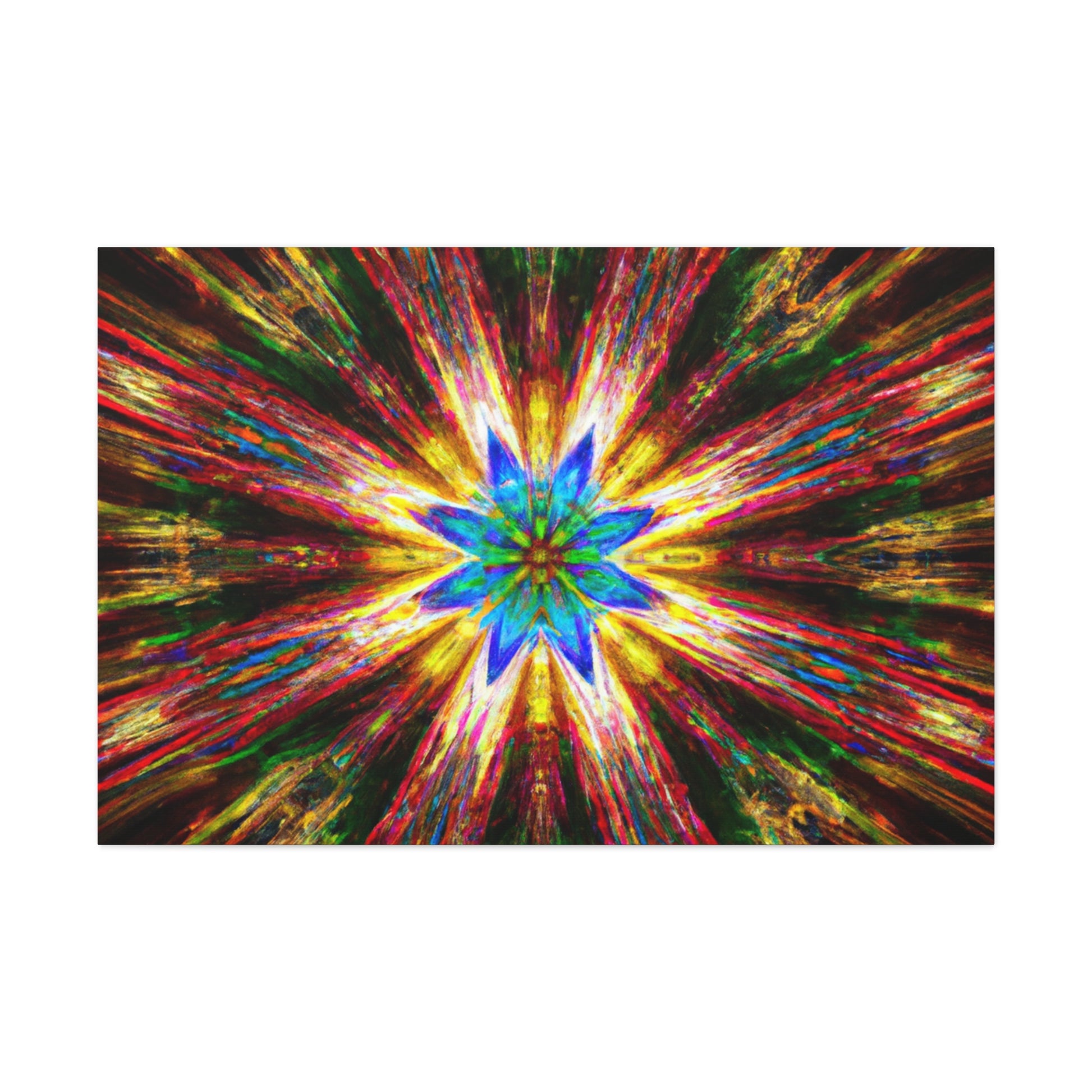 This radiant canvas is a beautiful digital art piece with captivating trippy stars, kaleidoscope, and abstract shapes. The vibrant colors fill the HD artwork creating a hypnotic effect. The center of the canvas is symmetrical and will bring a unique, stylish charm to any room. #trippyart #enterdecor #digtalart #kaleidoscope #stars #vibrantcolors #abstract #HD #symmetrical #canvasdecor #artdecor