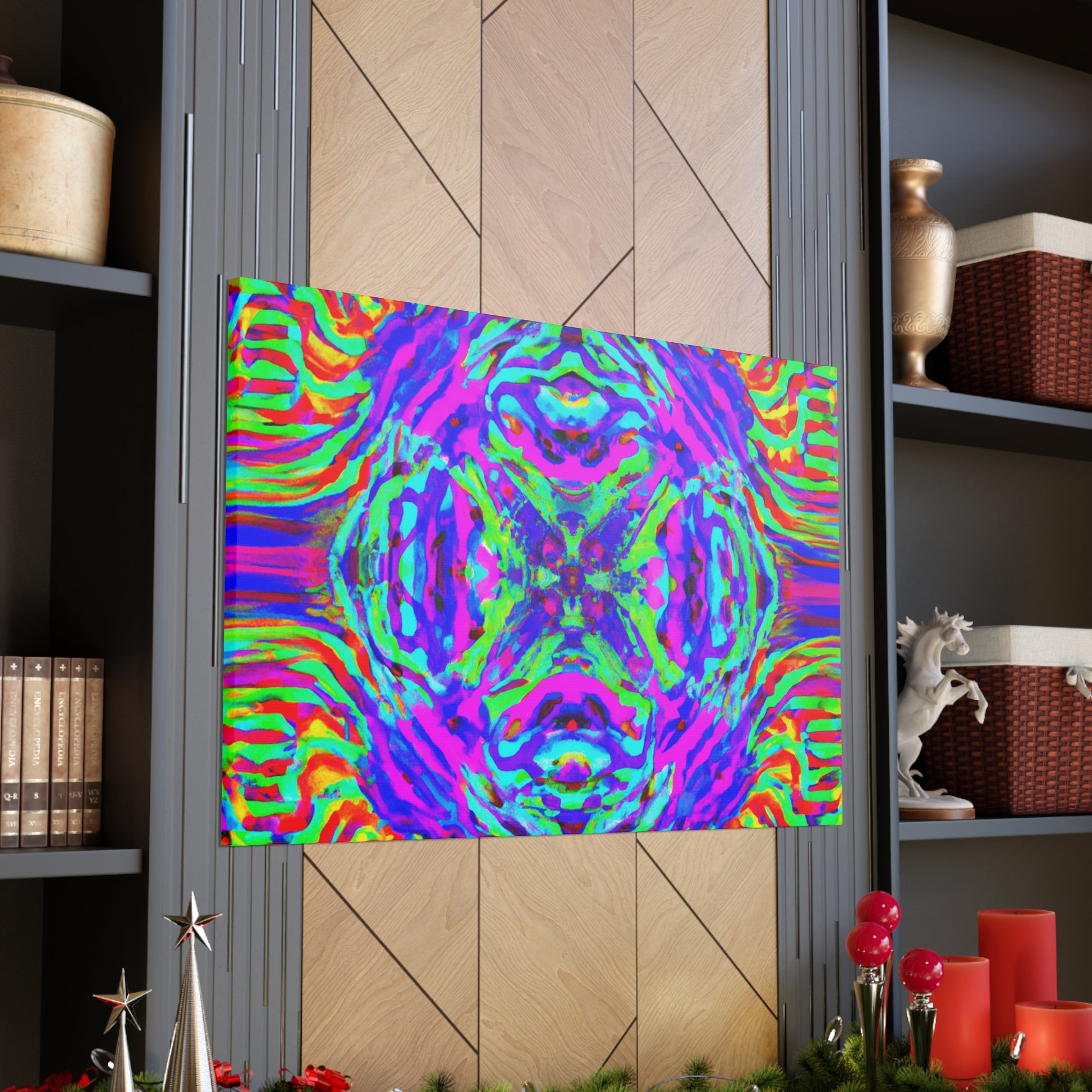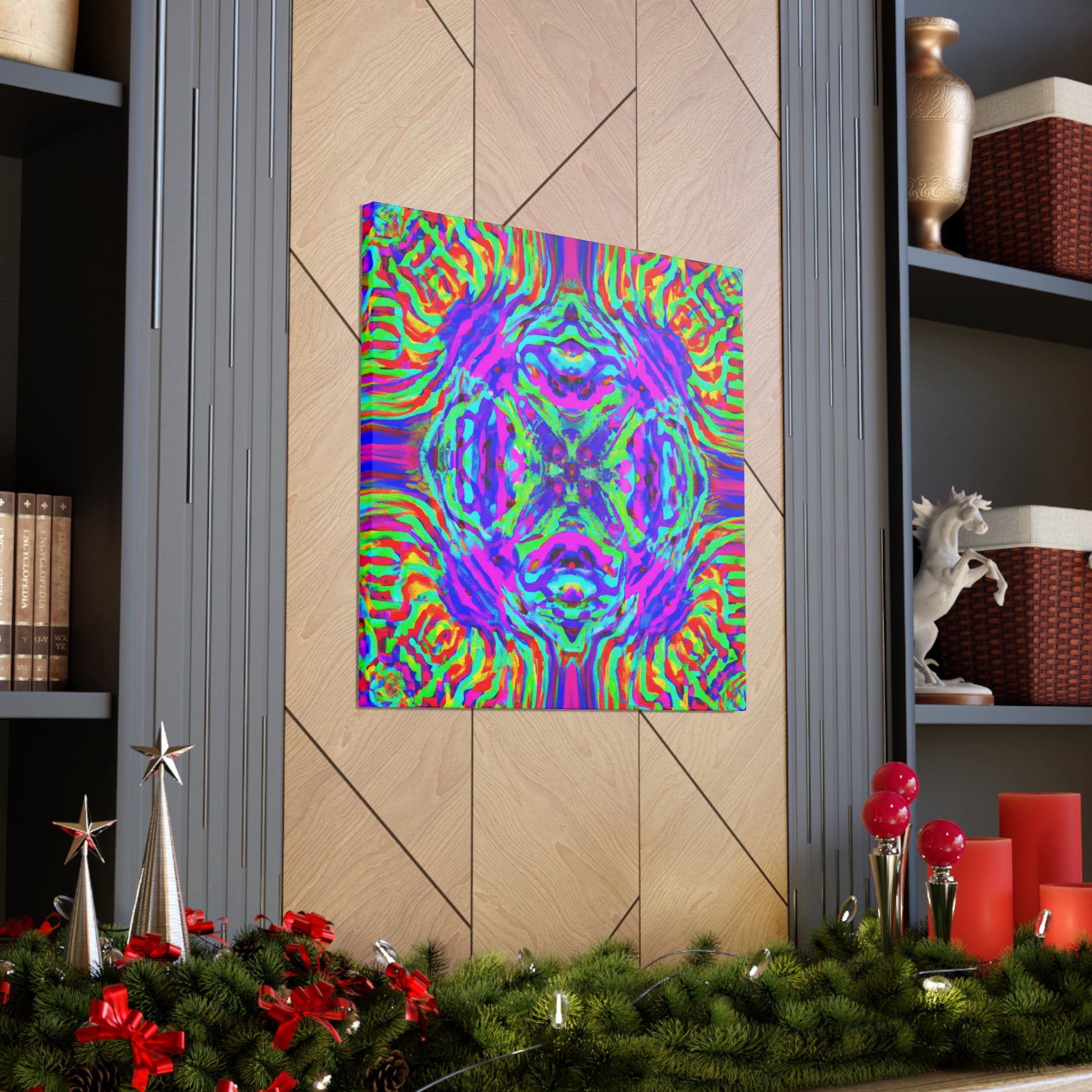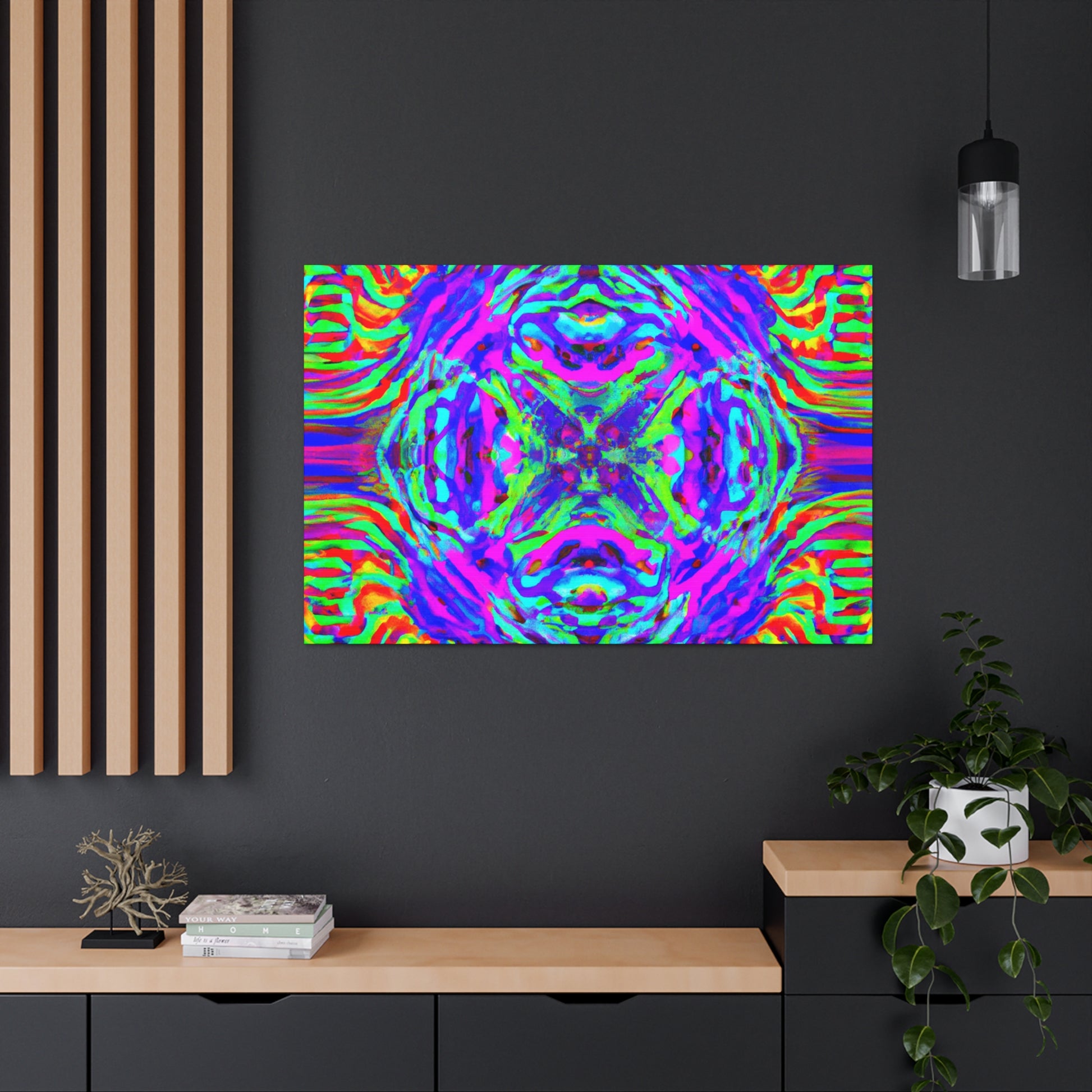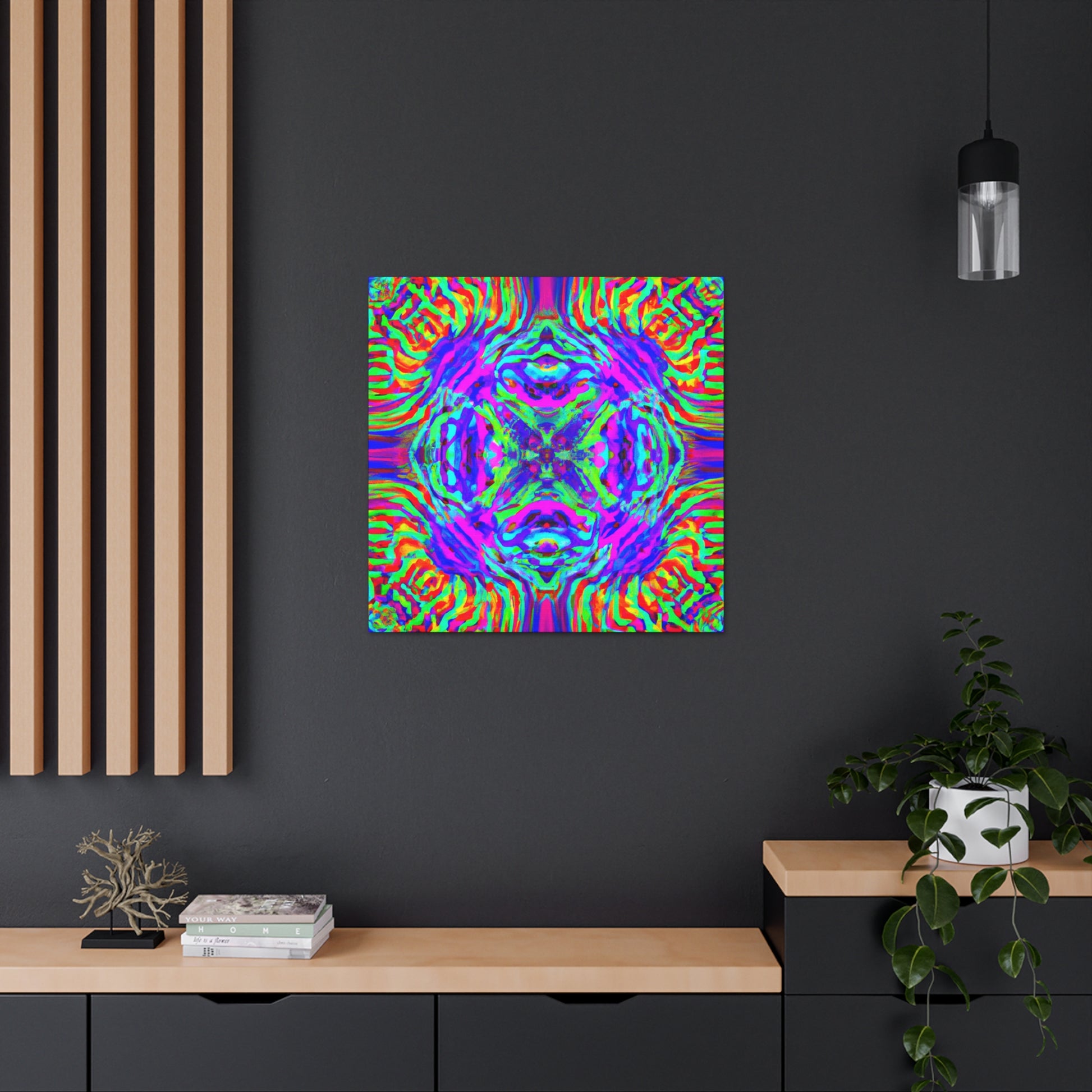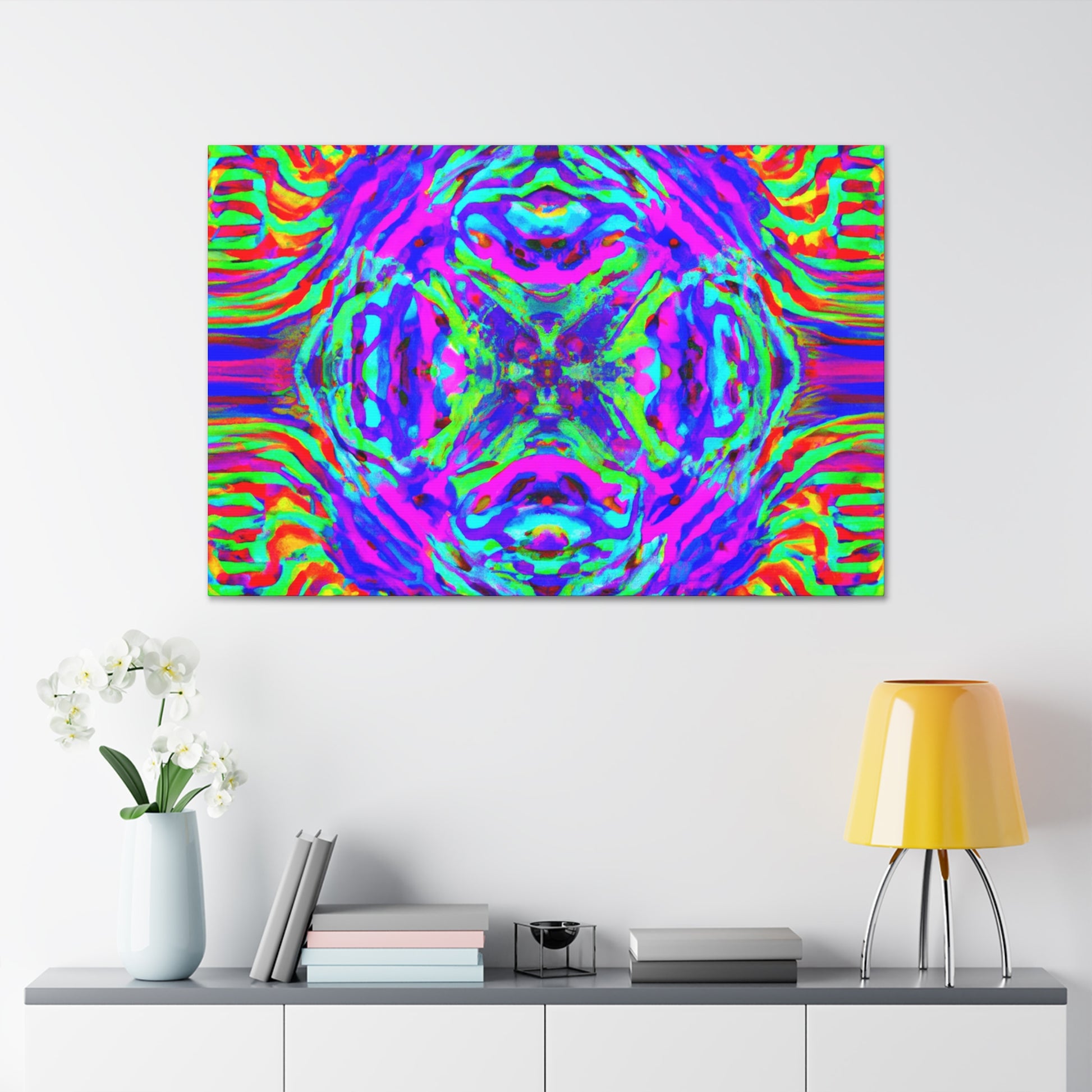 This canvas highlights a mesmerizing 3D design composed of kaleidoscopic mushrooms and abstract forms, creating a surreal landscape with vibrant hues and lively lines. Experience an eye-catching artwork that stands out in any room and add a swell of trippy vibes to your environment. #trippy #mushrooms #kaleidoscope #abstract #digitalart #vibrantcolors #3dlines #artdeco #canvas #homedecor #modernart