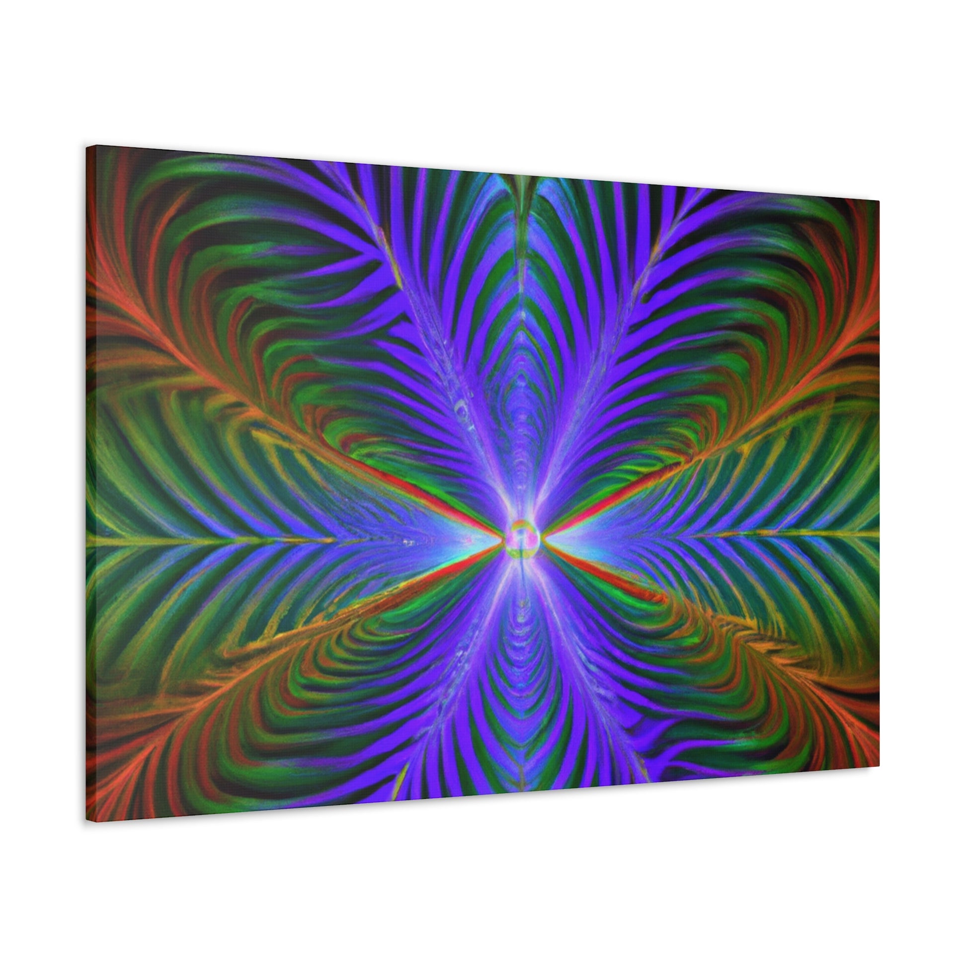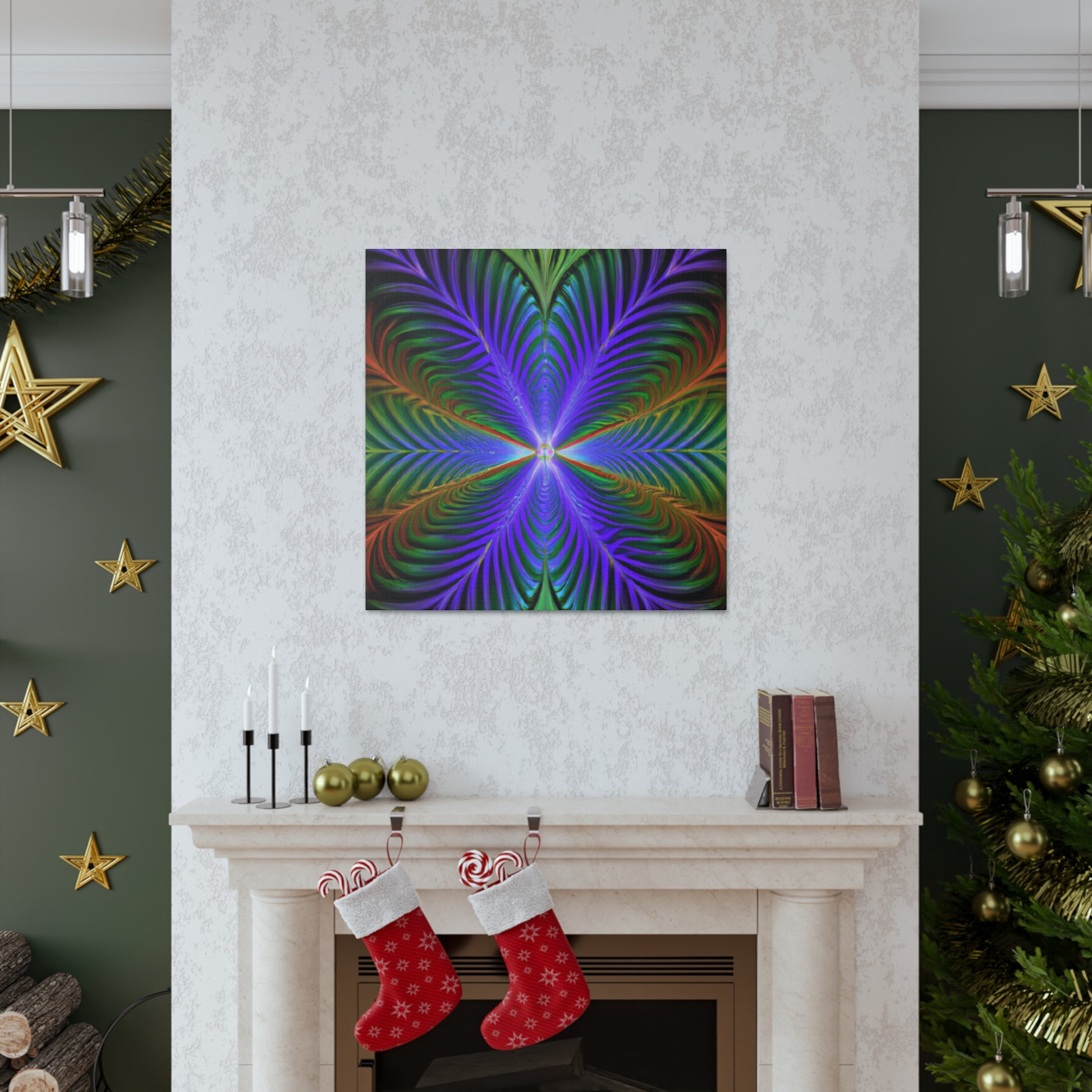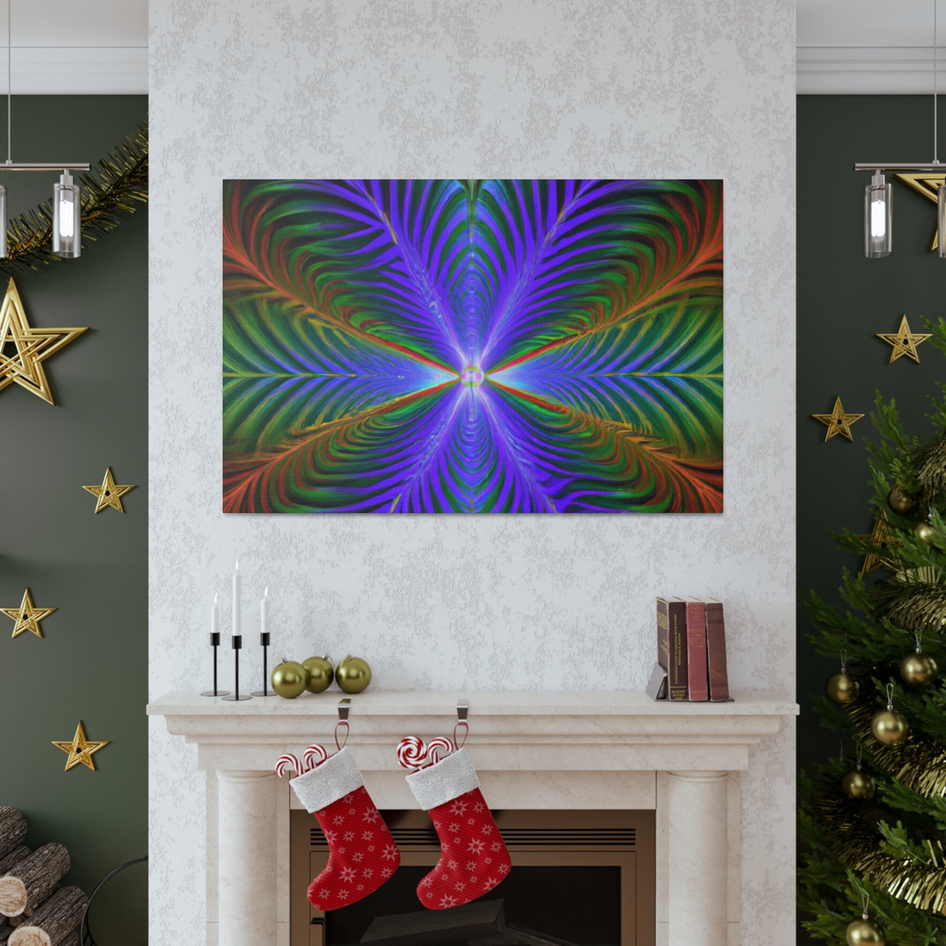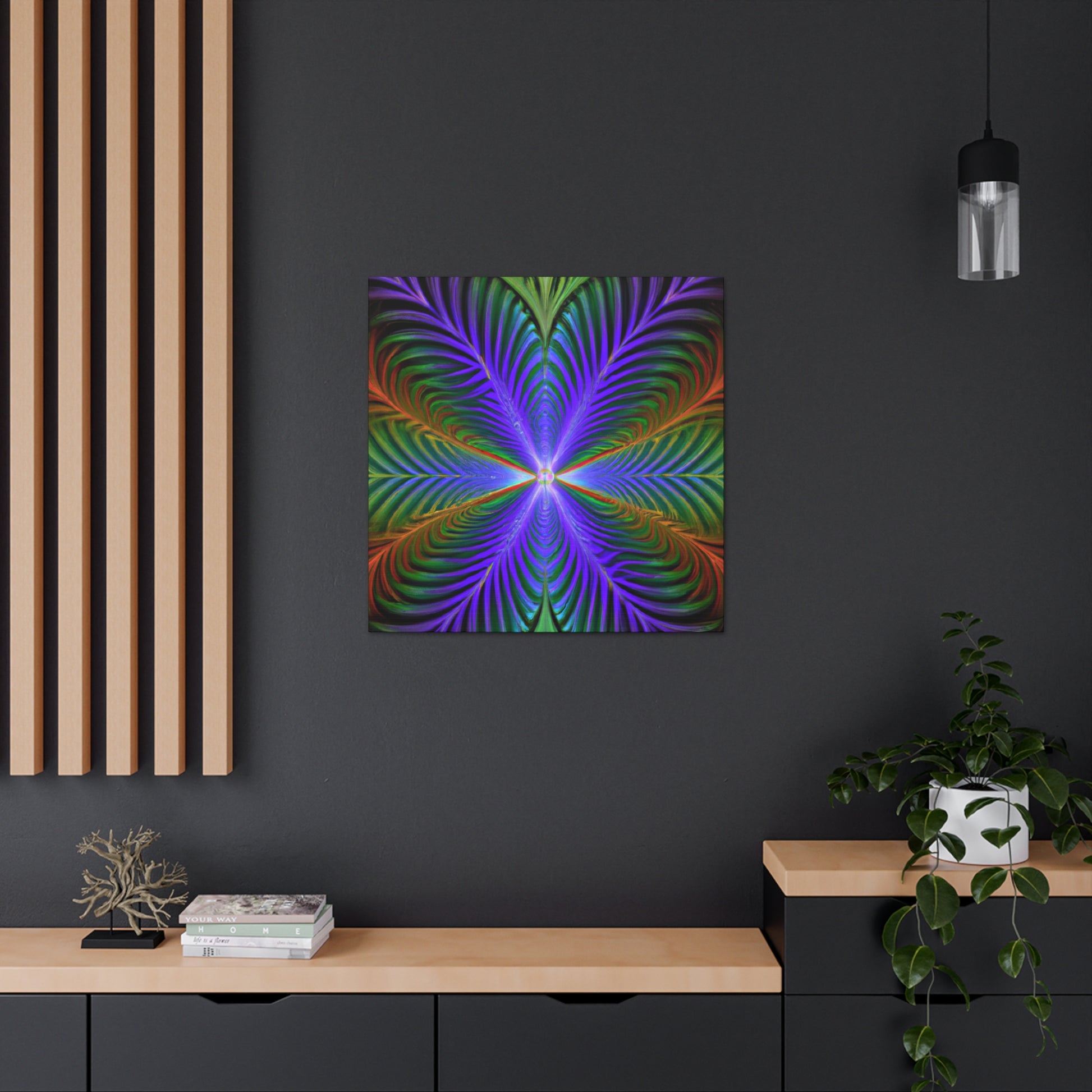 This mesmerizing canvas will mesmerize any observer with its eclectic mix of geometric palm leaves, kaleidoscope, and abstract 3D lines in vibrant and dynamic colors. Fuel your interior design with this unique fractal interpretation of a digital art piece. Lend a contemporary touch to any space and provide an opportunity to break away from traditional art frames! #art #digitalart #vibrantcolors #fractalart #kaleidoscope #palmleaves #trippy #3Dlines #abstractart #geometricart #dynamic