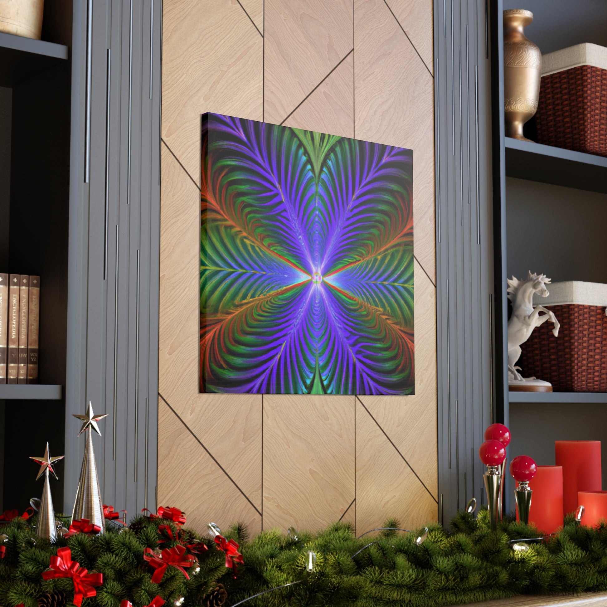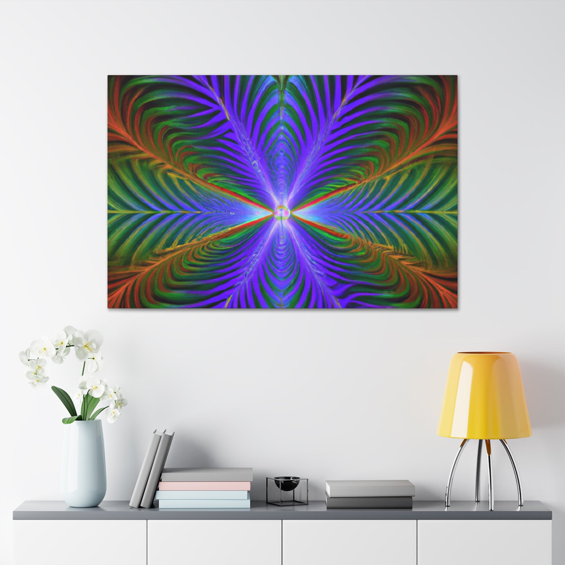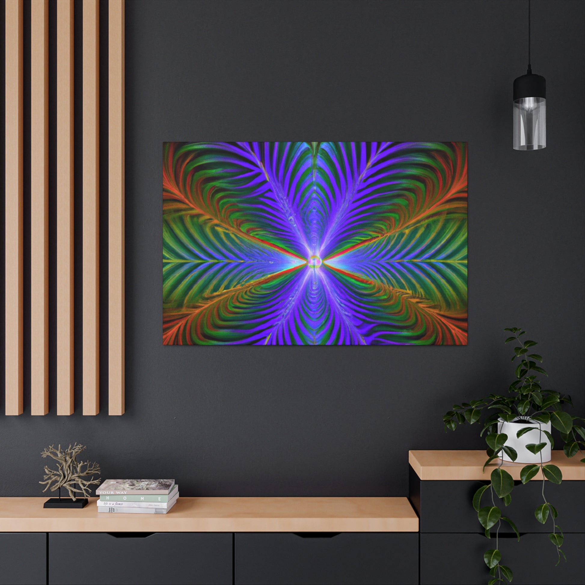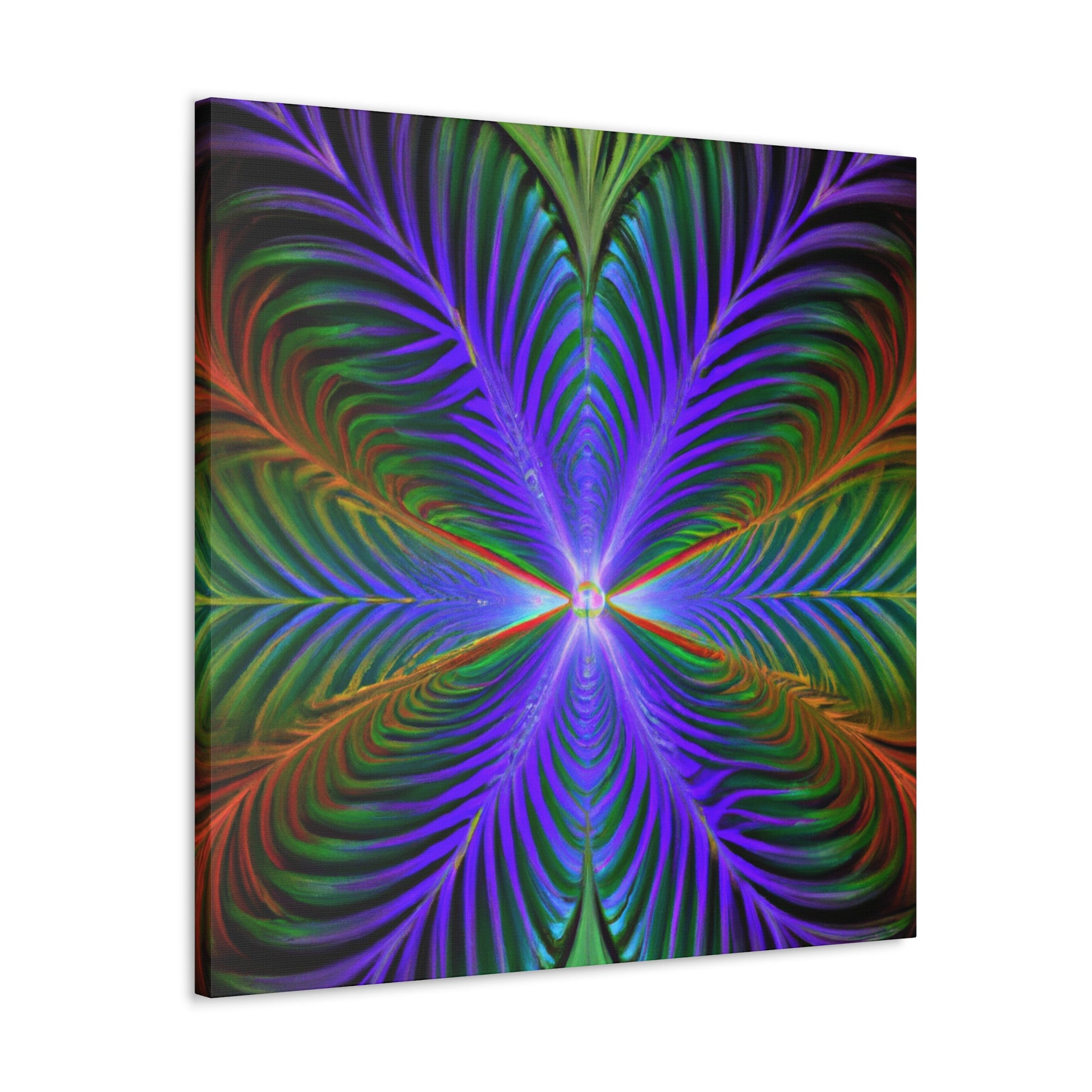 This mesmerizing canvas will mesmerize any observer with its eclectic mix of geometric palm leaves, kaleidoscope, and abstract 3D lines in vibrant and dynamic colors. Fuel your interior design with this unique fractal interpretation of a digital art piece. Lend a contemporary touch to any space and provide an opportunity to break away from traditional art frames! #art #digitalart #vibrantcolors #fractalart #kaleidoscope #palmleaves #trippy #3Dlines #abstractart #geometricart #dynamic