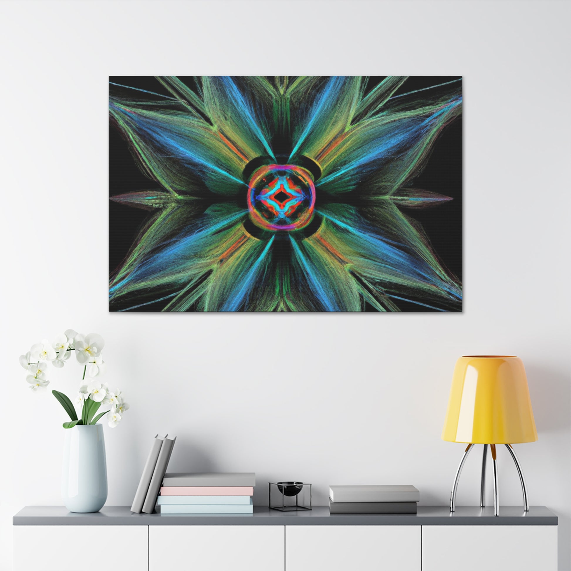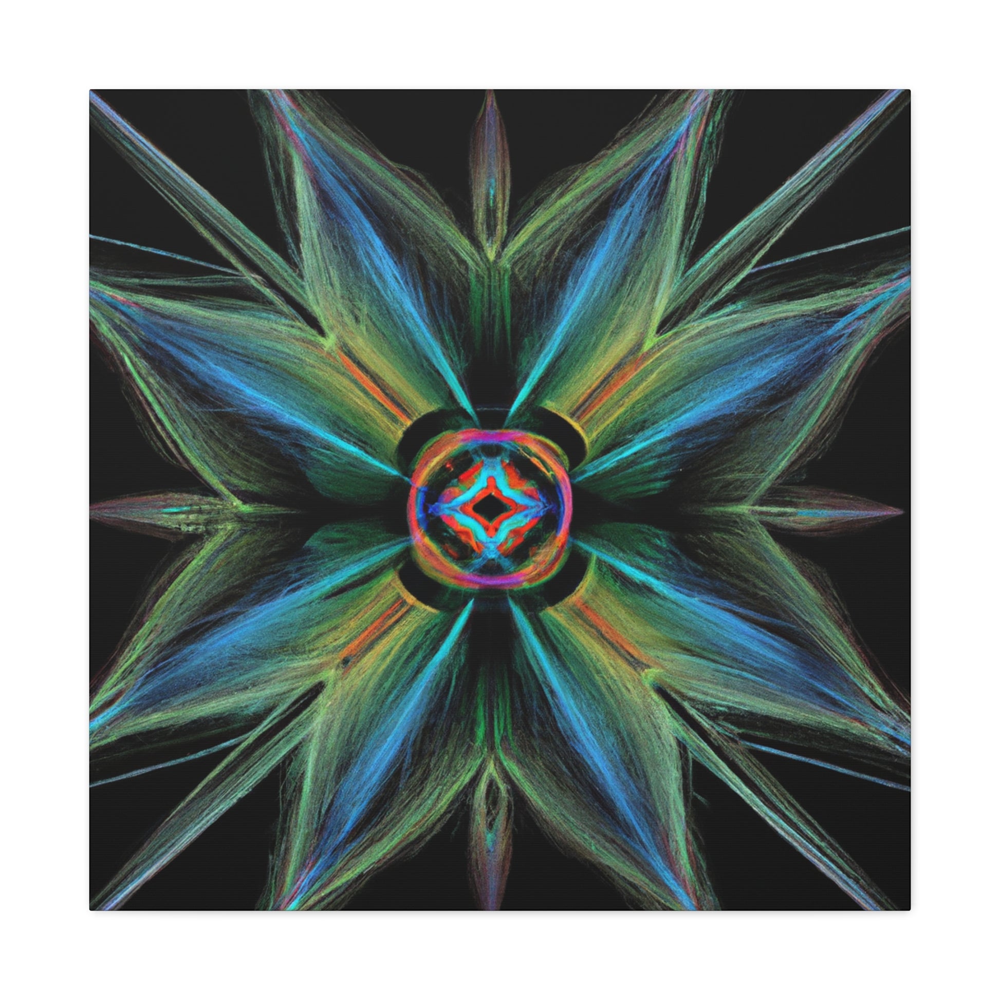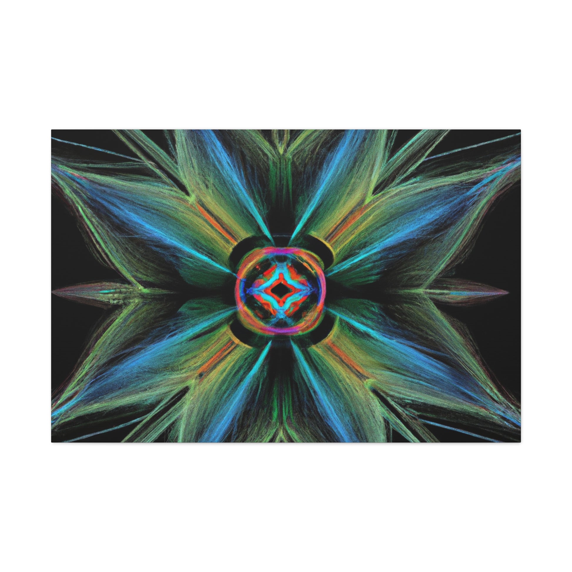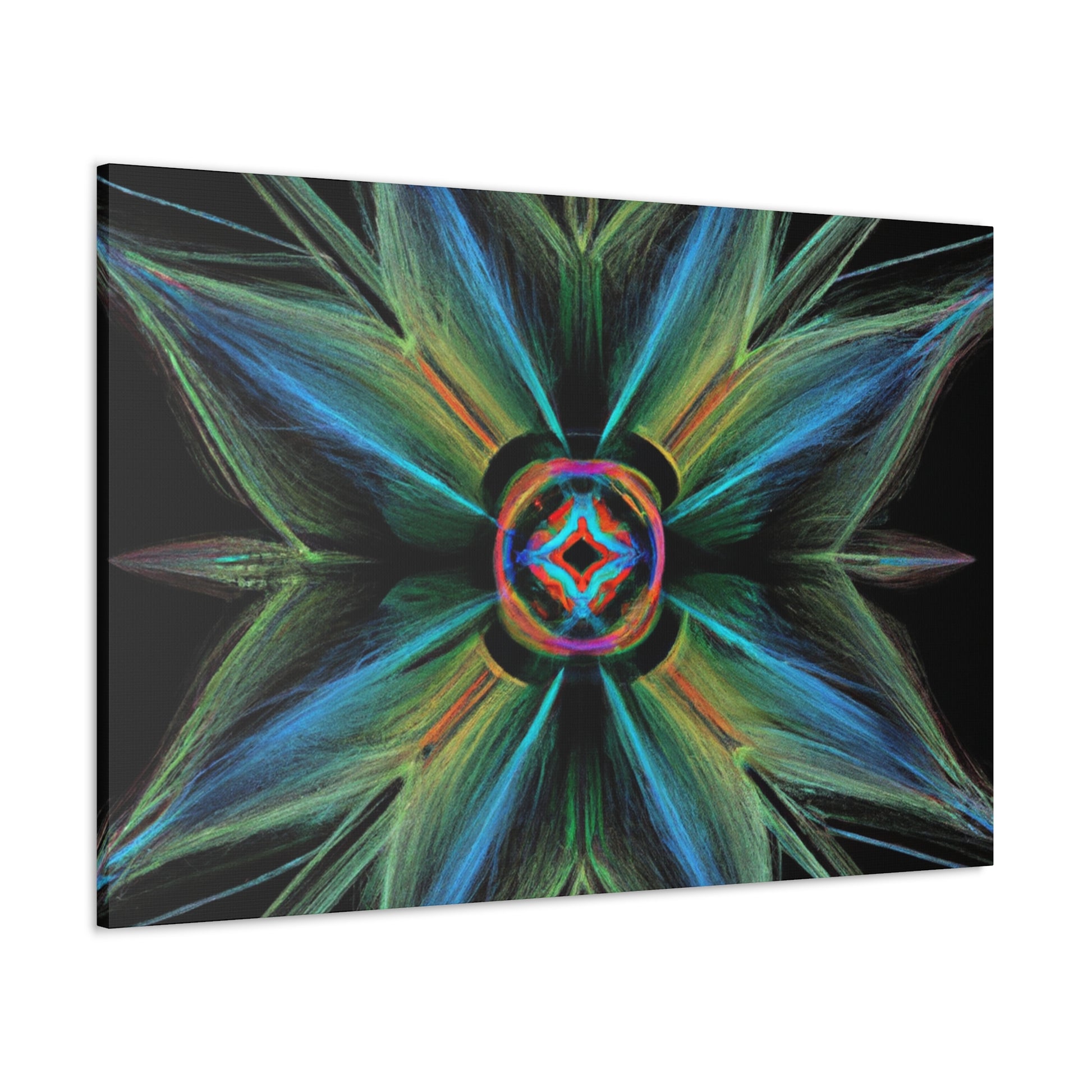 Be dazzled by this mesmerizing one of a kind canvas print! This abstract digital art design features bold, vibrant colors, 3D lines, and trippy geometric palm leaves. From kaleidoscope patterns to fractals, you'll be amazed by the detail and beauty of this piece. Transform your living space and make a statement with this unique canvas art! #digitalart #abstractart #palmleaves #kaleidoscope #vibrantcolors #3Dlines #fractal #canvasprint #statementpiece #uniquedesign #geometricdesign