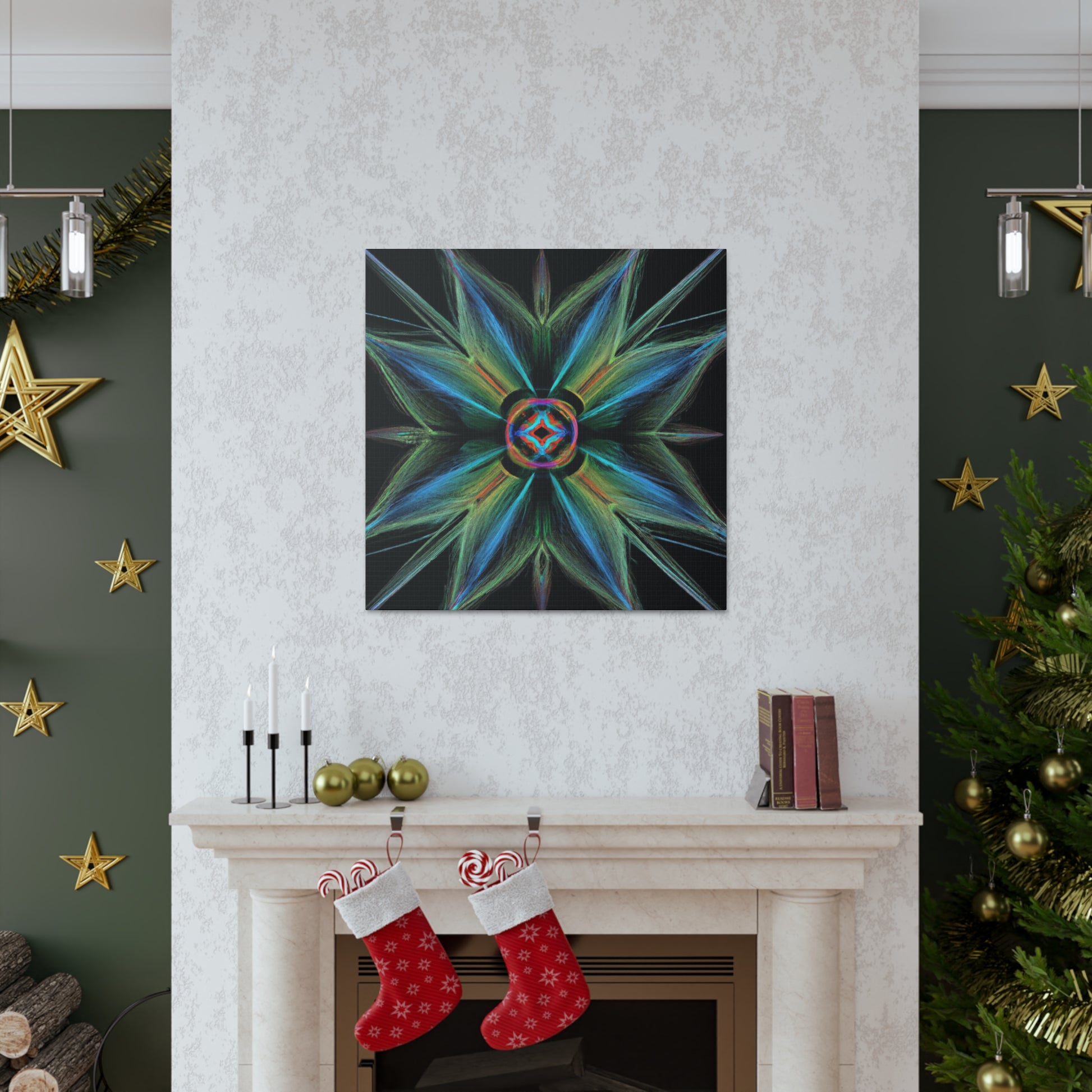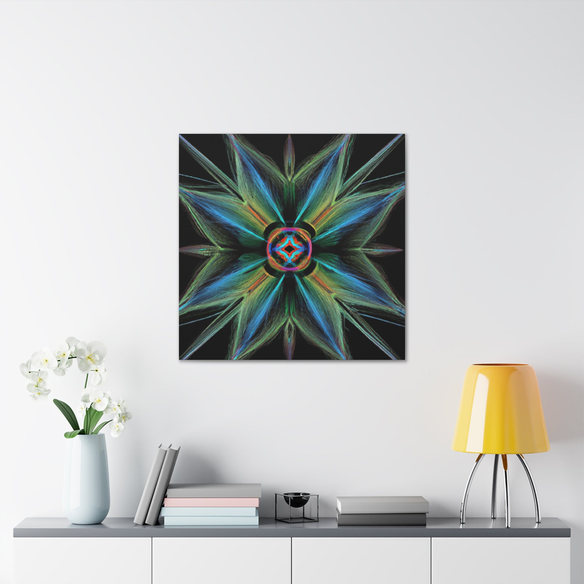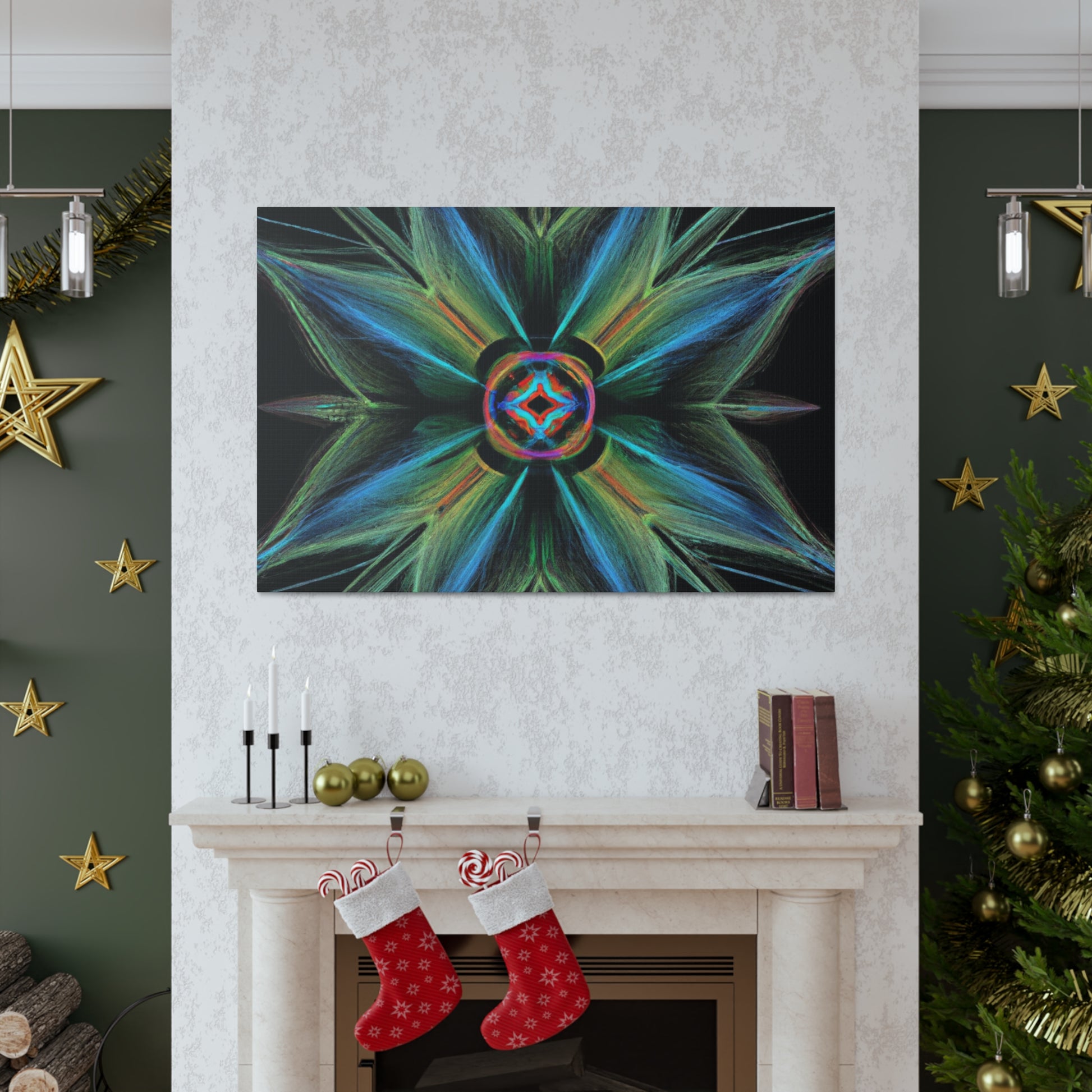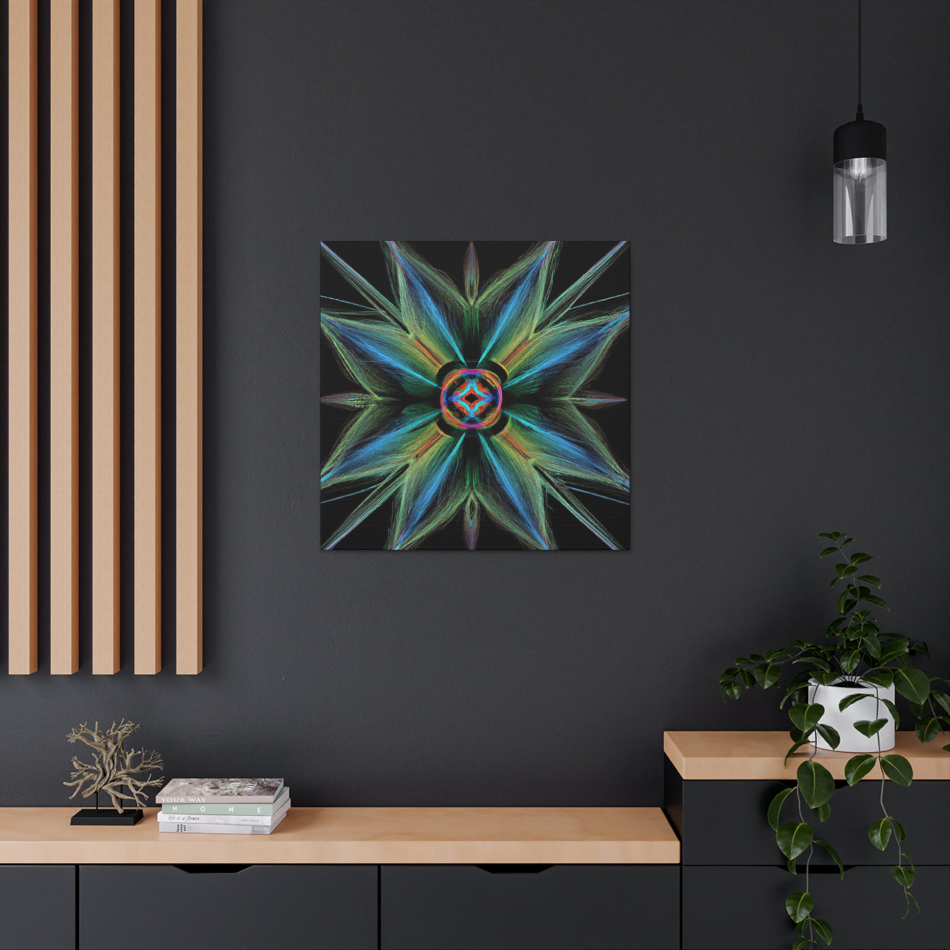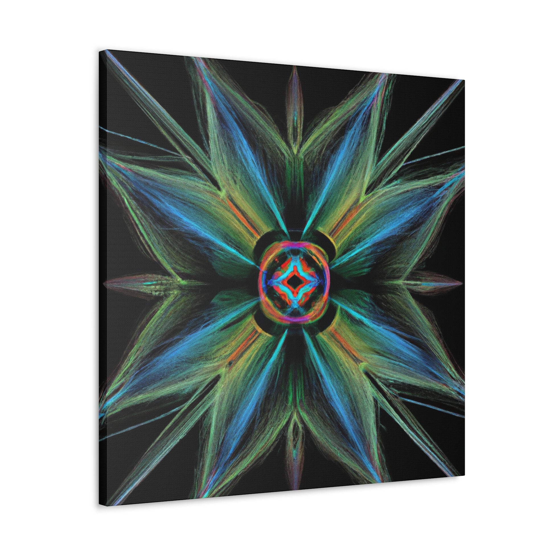 Be dazzled by this mesmerizing one of a kind canvas print! This abstract digital art design features bold, vibrant colors, 3D lines, and trippy geometric palm leaves. From kaleidoscope patterns to fractals, you'll be amazed by the detail and beauty of this piece. Transform your living space and make a statement with this unique canvas art! #digitalart #abstractart #palmleaves #kaleidoscope #vibrantcolors #3Dlines #fractal #canvasprint #statementpiece #uniquedesign #geometricdesign