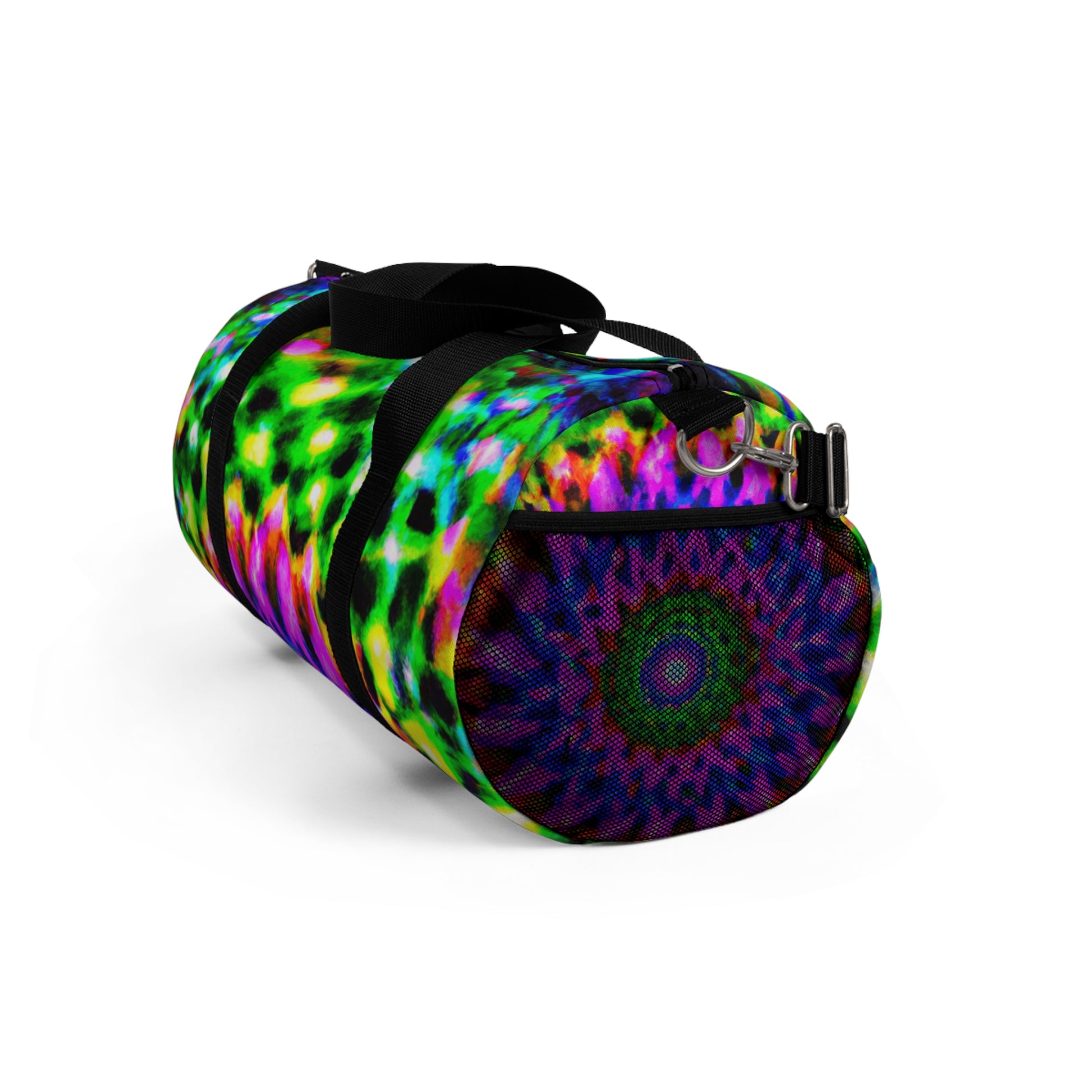 This duffle bag with a playful neon twist is sure to turn heads. It features trippy pineapple, kaleidoscope, abstract, digital art, and neon colors, with stunning HD-level designs. Perfect for adding a flashy touch to any outfit. #trippyart #dufflebag #pineapple #kaleidoscope #abstract #digitalart #neon #neoncolors #hd #hdlevel #designs #fashion #style #playful #fierce #standout #statementpiece #uniquefashion #empower #dazzle #stylish #trendy #picnicready #bagsofstyle #throwiton #bringit #bebold #daretobedifferent #tailorit #customizeit
