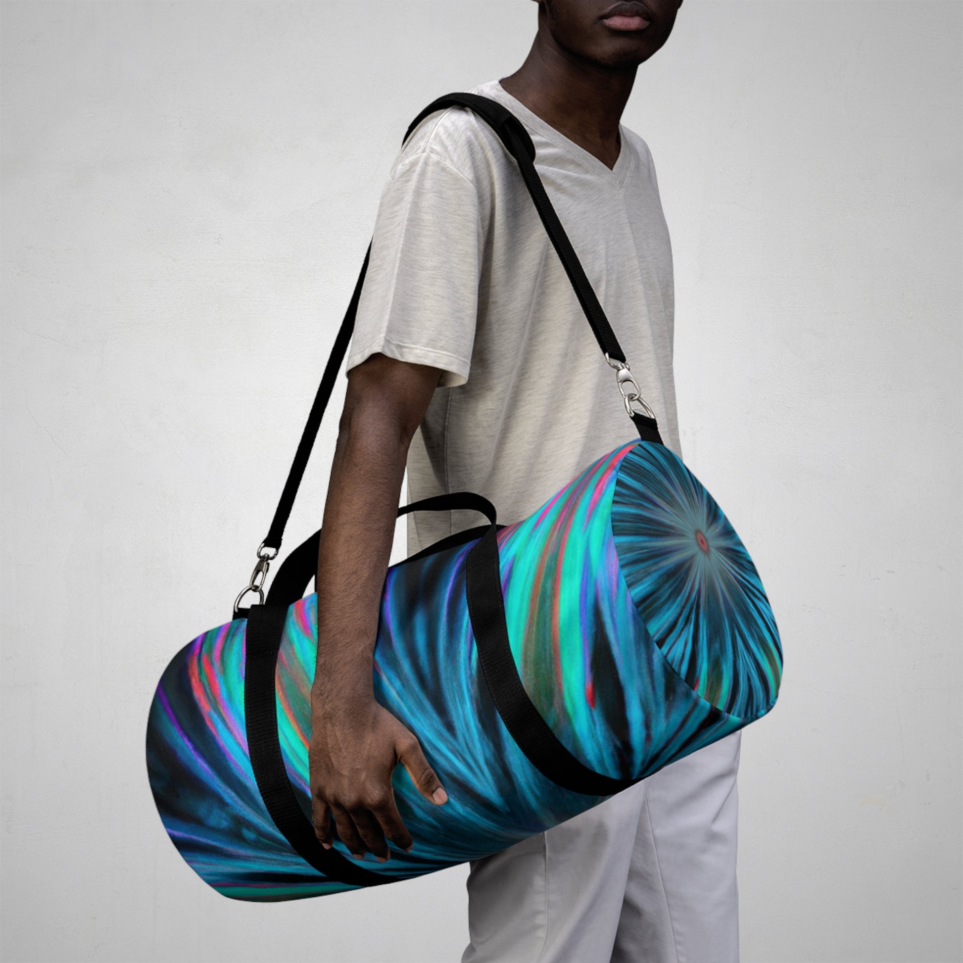 This duffle bag is the perfect mix of style and functionality! The bold Trippy Stars, kaleidoscope, abstract, digital art, vibrant colors, and 3D lines designs create an eye-catching statement. Whether you're going to the gym, the office, or just out for the day, you can be sure your bag will stand out! Plus, it's durable and lightweight enough to wear to any outing. #dufflebag #duffle #bag #stylish #onpoint #style #fashion #travel #outdoors #gym #look #streetstyle #trendy #colors #everdurable #quality #durable #bagstyle #fitness #trimandtrue #abstract #trippy #stars #3Dlines #kaleidoscope #vibrantcolors #digitalart #artsy