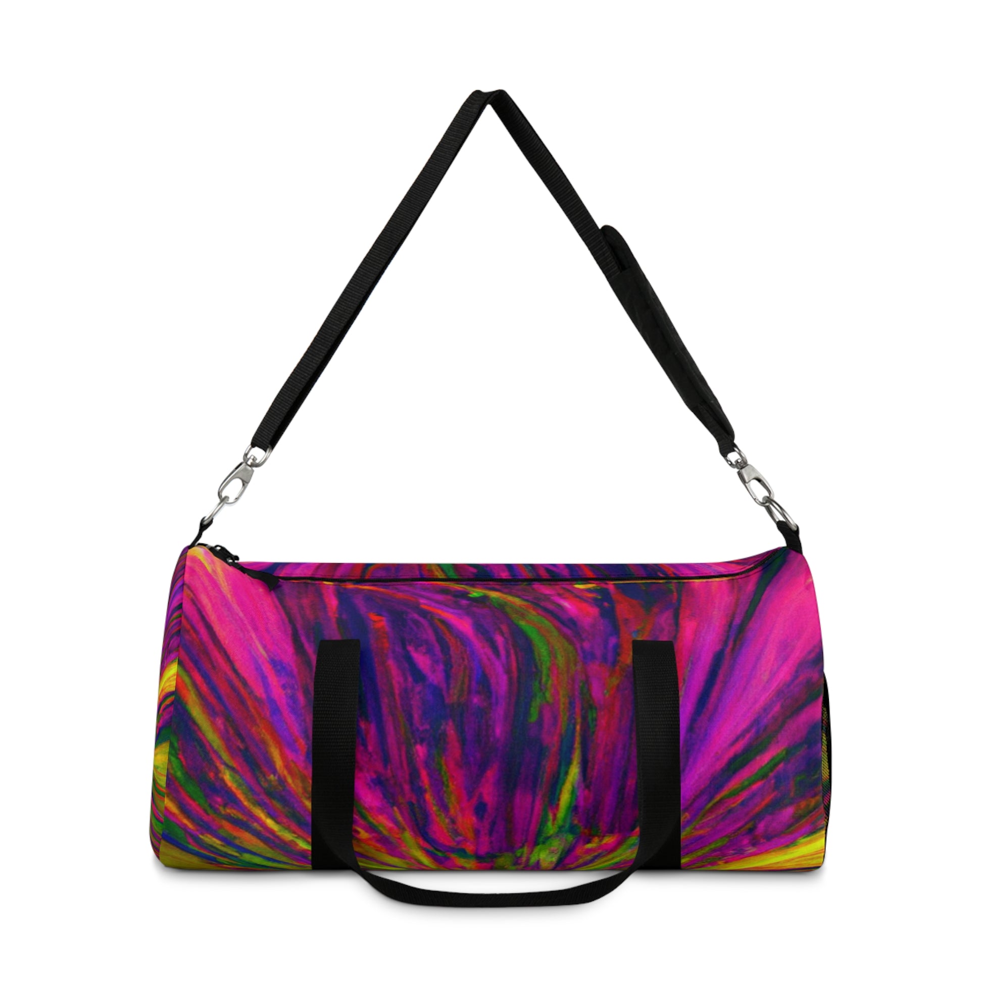 This duffle bag is the perfect blend of fashion and functionality, combining Trippy stars, kaleidoscope, abstract, digital art, vibrant colors, and 3D lines designs into one unique bag. The eye-catching design is sure to make a statement in any setting, and the spacious interior ensures you can fit all of your essentials and more. #dufflebag #trippystars #kaleidoscope #abstract #digitalart #vibrantcolors #3Dlines #travel #fashion #statement #style #travelbag #bag #versatile #functional #unique #sopractical #multiuse #tripready #highenddesign #sporty #trendy #capacity #colourful #sopretty #spacious #fashionablyfunctional #durable #boldstyle