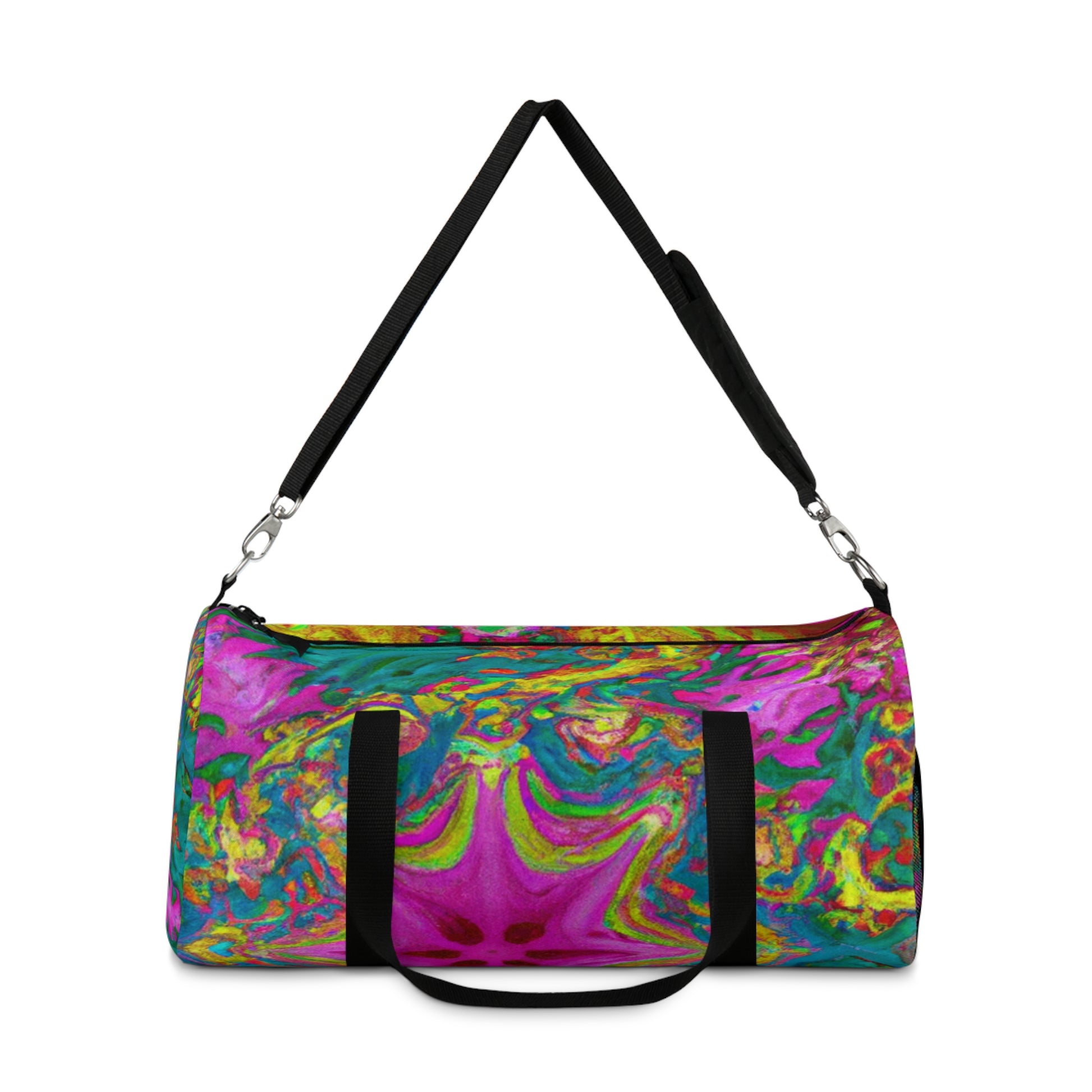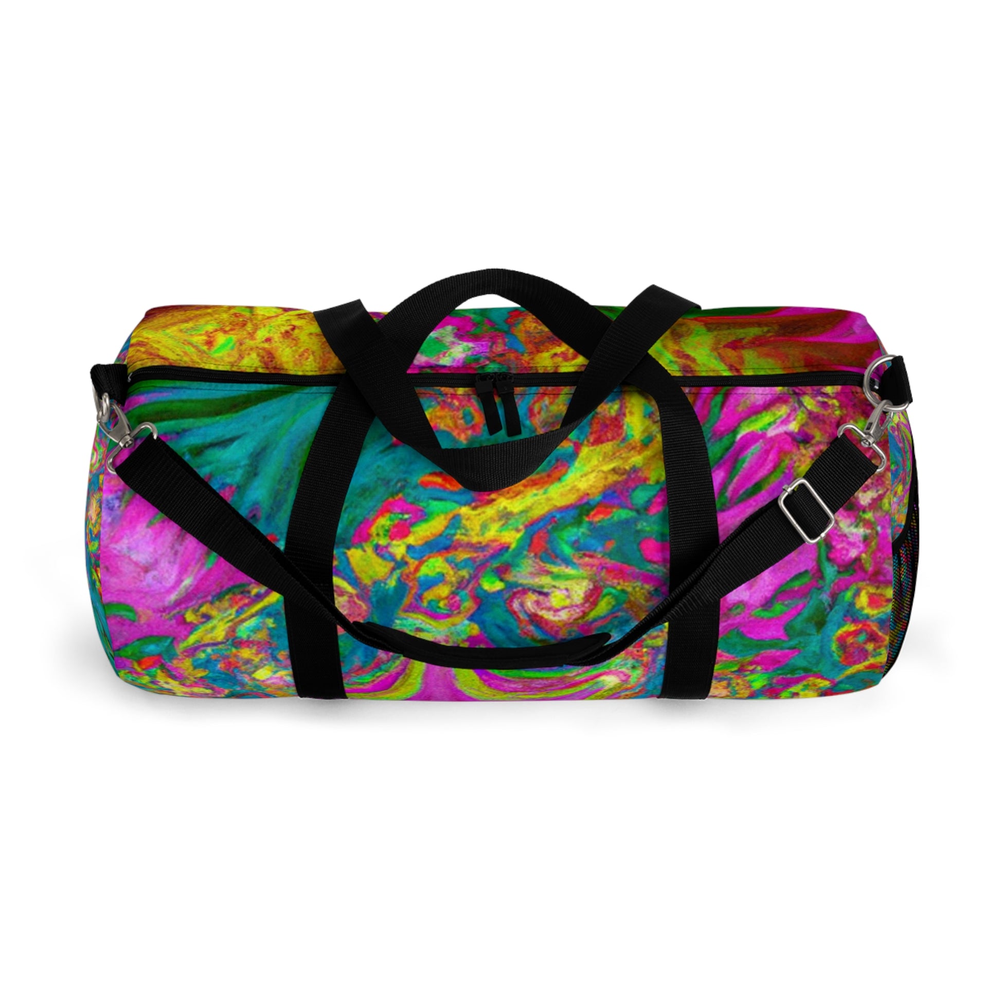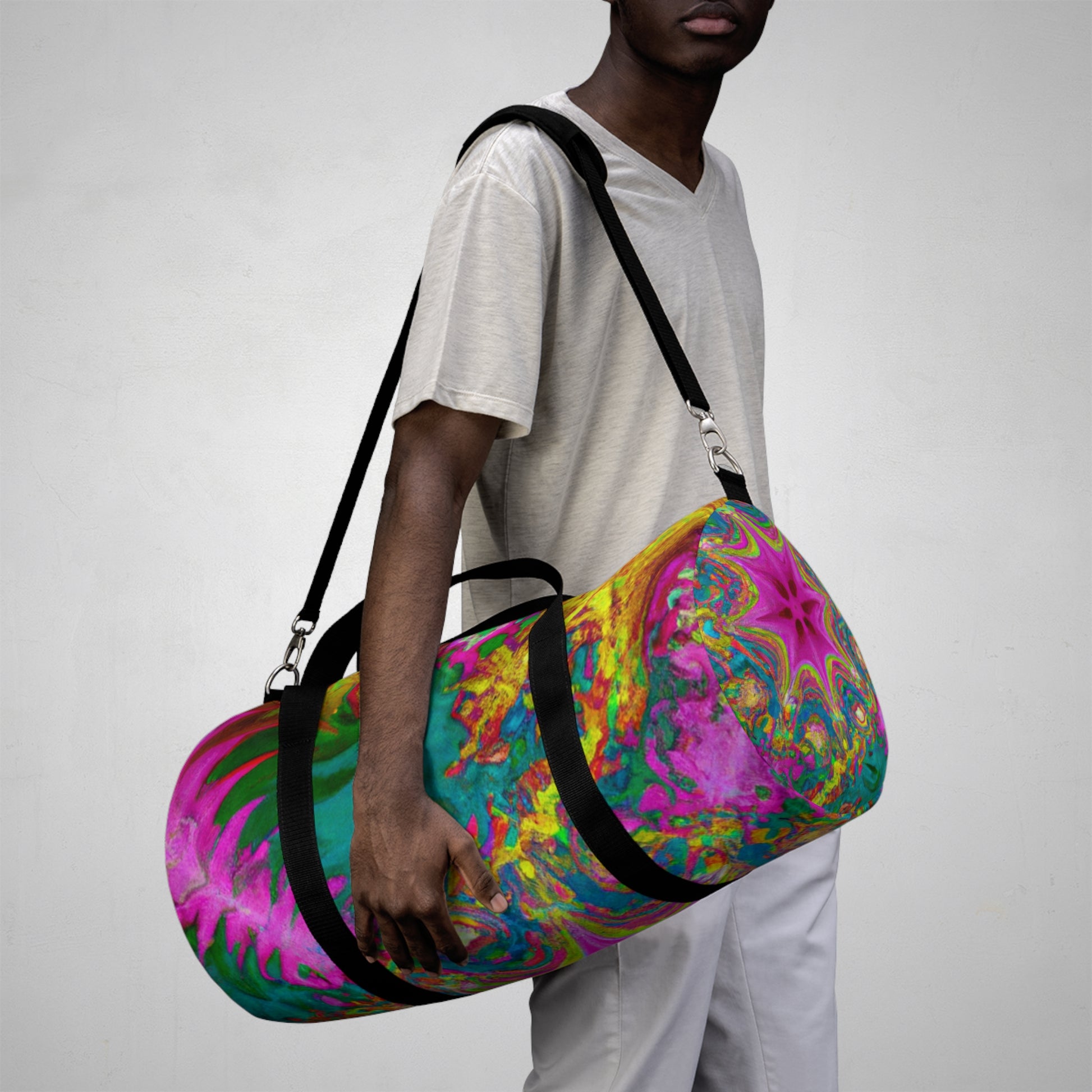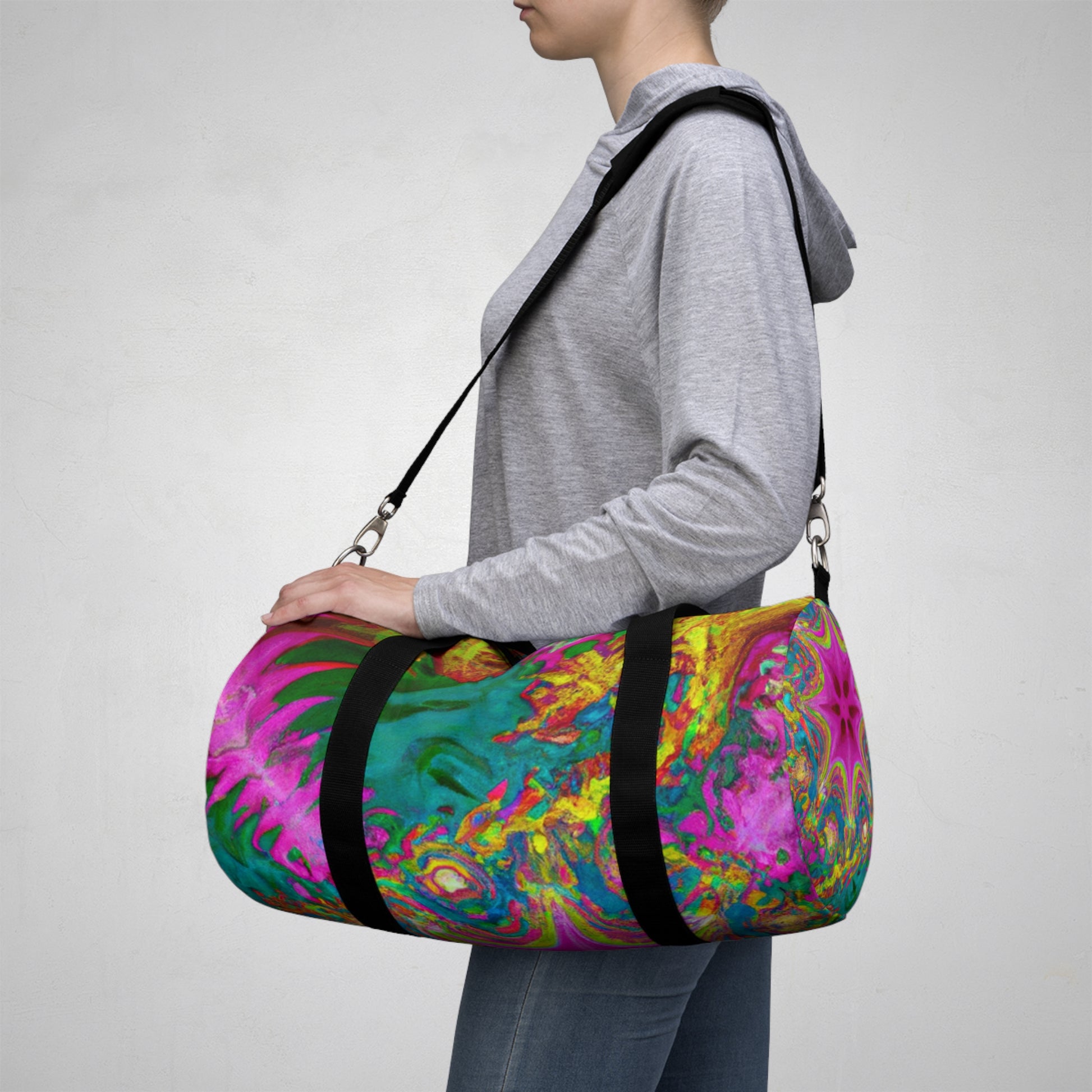 This eye-catching dufflebag features a unique, one-of-a-kind design, with vibrant colors and electric abstract digital art! With trippy stars, kaleidoscope and 3D lines, this bag is sure to be an eye-catcher. Perfect for fashionistas and modern adventurers, it'll keep all of your belongings secure and looking good! #dufflebag #fashion #abstractart #digitalart #stars #kaleidoscope #3Dlines #vibrant#colorful #modern #adventure #statementpiece #unique #trendy #bag #trippy #style #traveling #essential #unisex #extraordinary #creative #unusual #exciting # daring #original #durable #functional