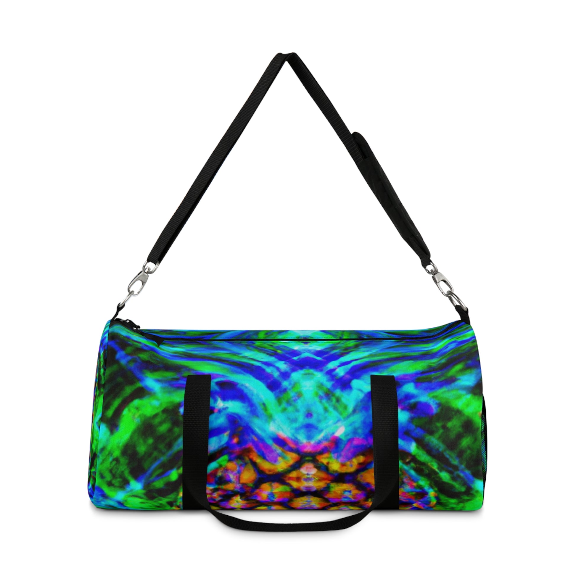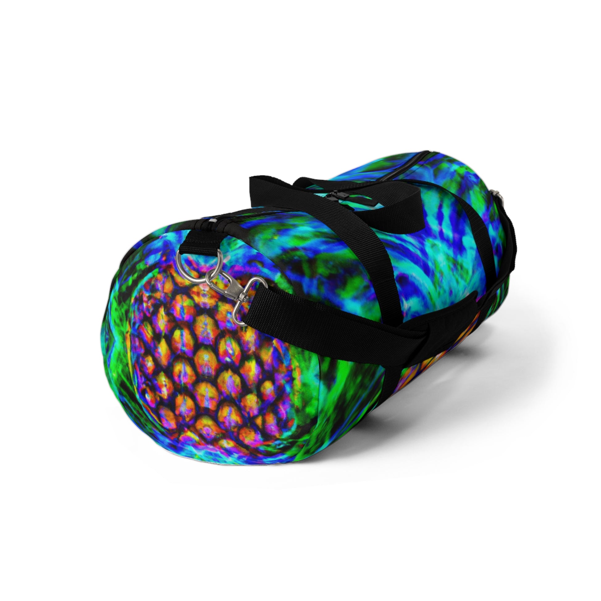 This dufflebag features an awesome kaleidoscope of abstract, trippy pineapple and digital art designs in stunning HD and neon colors. Accented with cool stitching with a unique look and feel, this bag is a surefire way to make a statement! #bag #dufflebag #style #fashion #pineapple #kaleidoscope #abstract #digitalart #neon #hd #designs #unique #trippy #statement #styleicon #accessories #travel #trends #coloredduffle #satchel #trippybag #artisticstyle #estheticbag #duffelegant #trendytravelbag #goodvibes