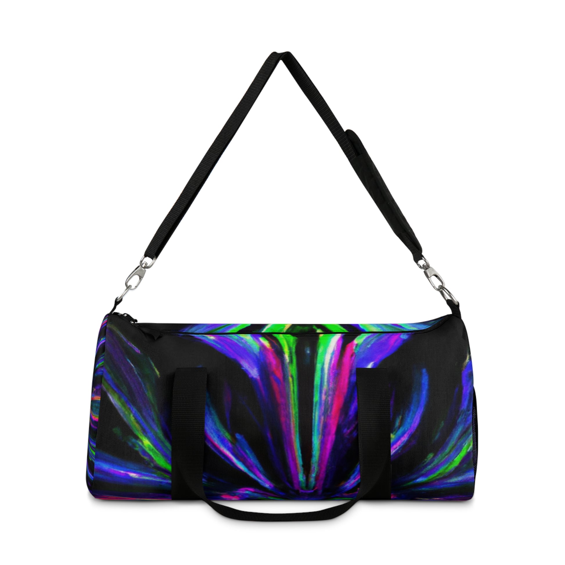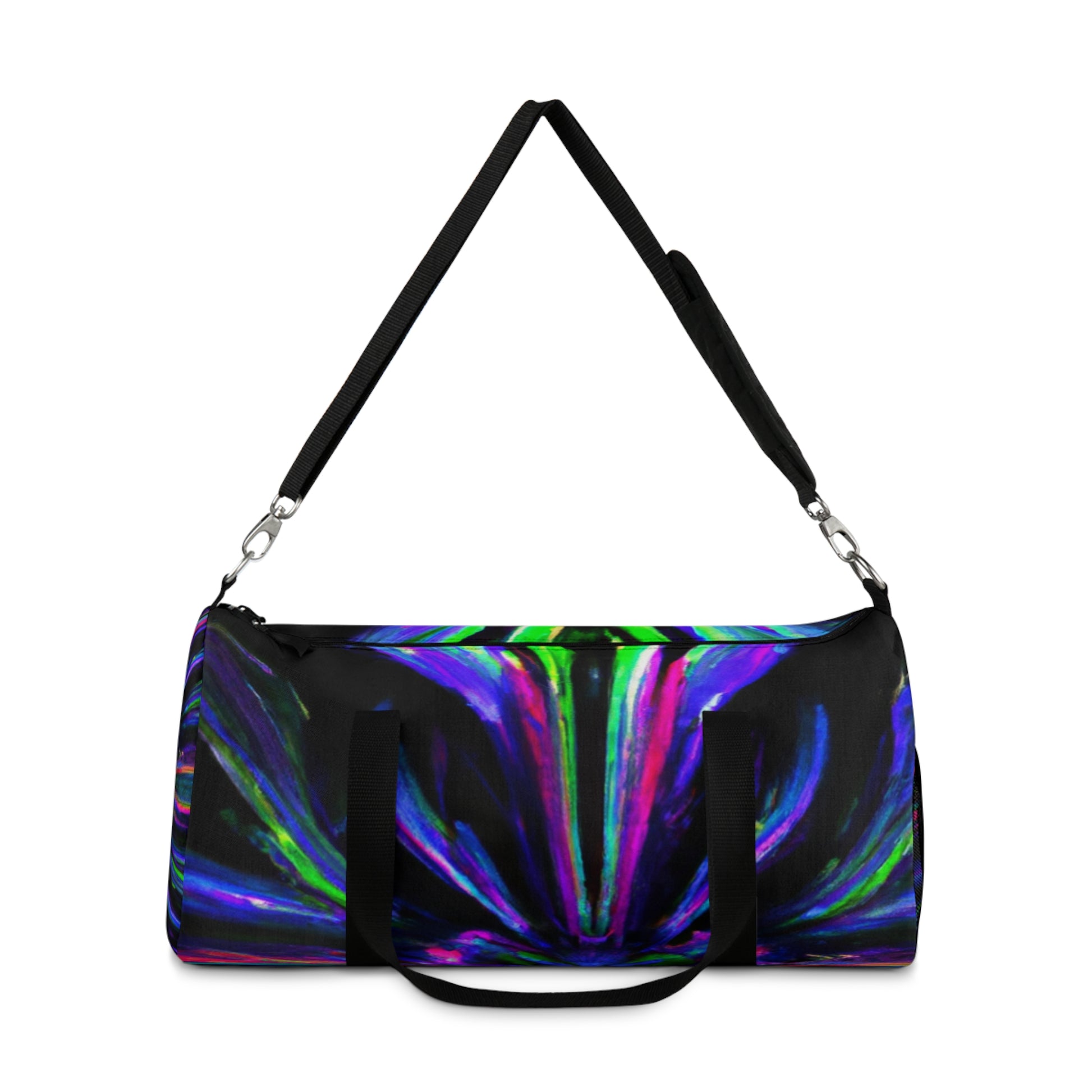 This unique, multicolored dufflebag is perfect for hitting the gym, or hitting the town. The vibrant colors and abstract, digital art designs featuring stars, kaleidoscope, 3D lines, and trippy details give it bold style sure to stand out. Its spacious size and convenient strap make it perfect for storing all your essentials while on the go. #dufflebag #bag #style #art #fashion #vibrant #trippy #kaleidoscope #stars #3D #digital #lines #unique #gym #essentials #abstract #travel #convenient #multicolored #vivid #standout #sporty #bold #design #expression #trendy #functional #graphic