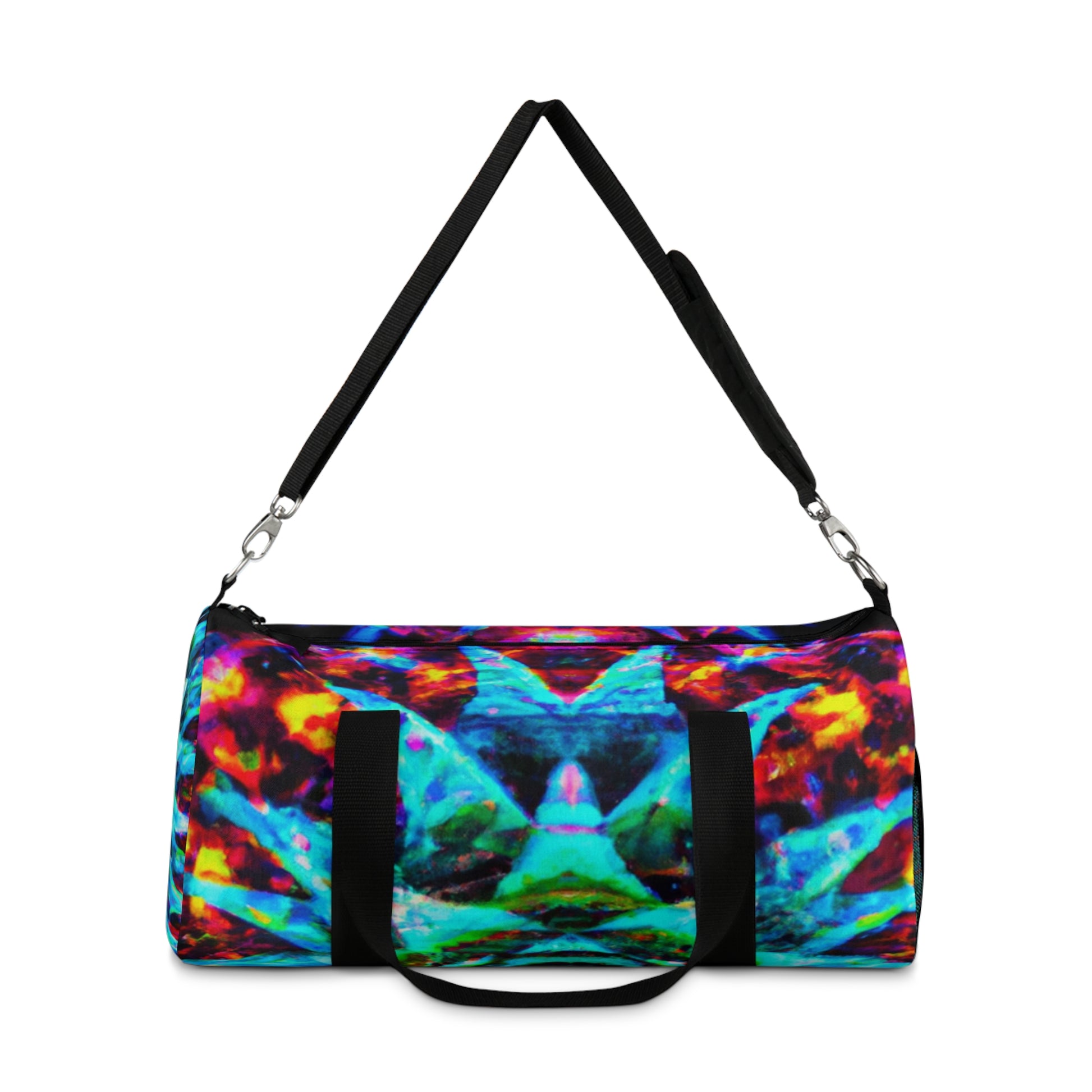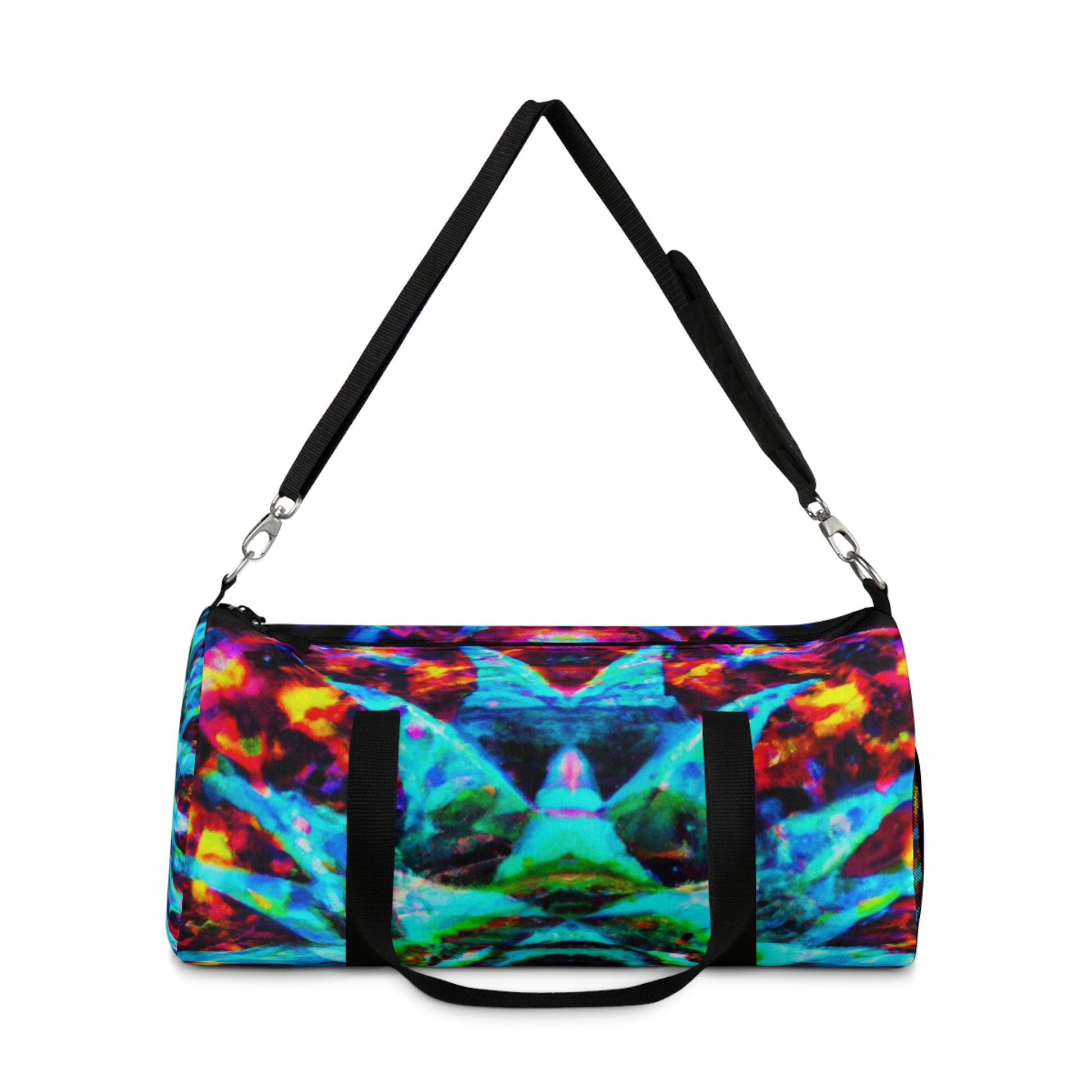 This stylish dufflebag features a unique design featuring trippy pineapple, kaleidoscope, abstract, digital art, neon colors, and HD designs. It's perfect for traveling or gym trips. Everyone will be asking you where you got it! #bag #dufflebag #style #trippy #pineapple #kaleidoscope #abstract #digitalart #neoncolors #HD #unique #designs #fashion #travel #gym #trips #styleitup #tripitup #pineapplecolor #colorkaleidoscope #abstractart #digitalneon #HDdesigner #travelingstyle #gymtrips #styleontrips #munchiesdufflebag #printwithstyle #dufflestyle