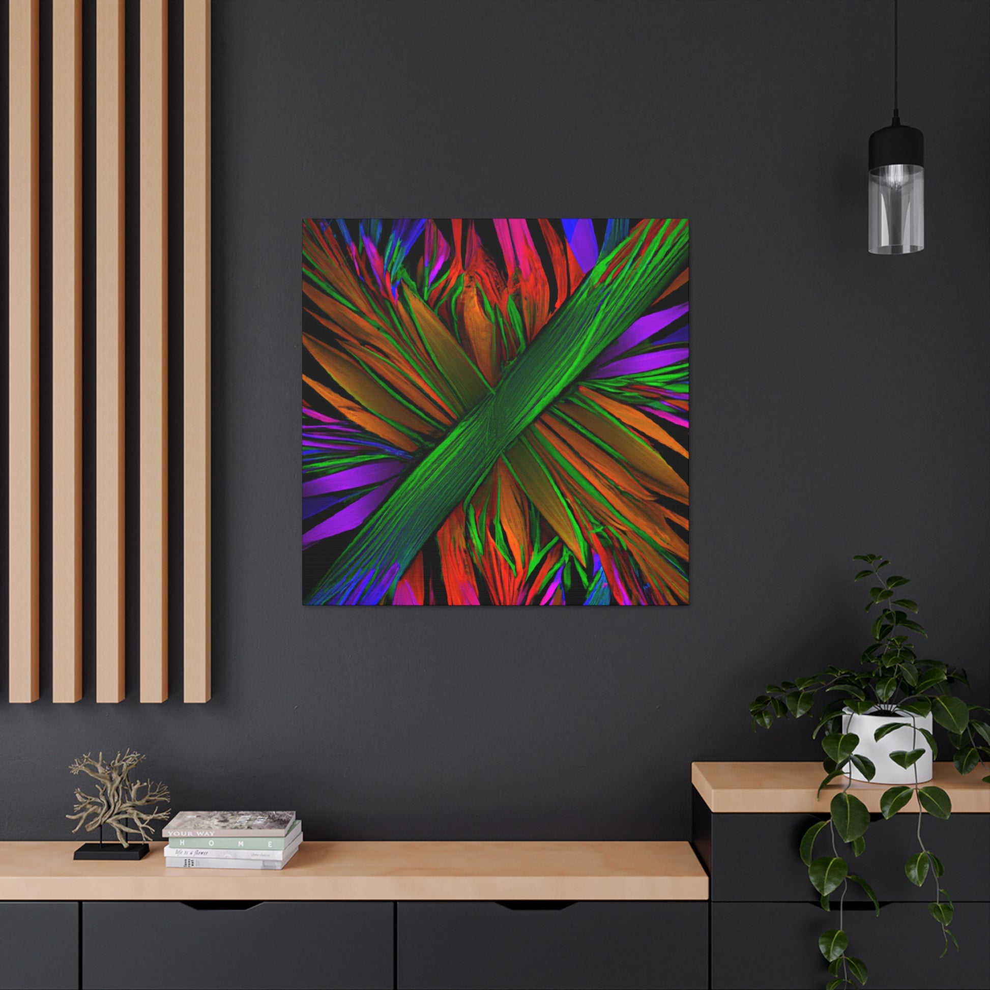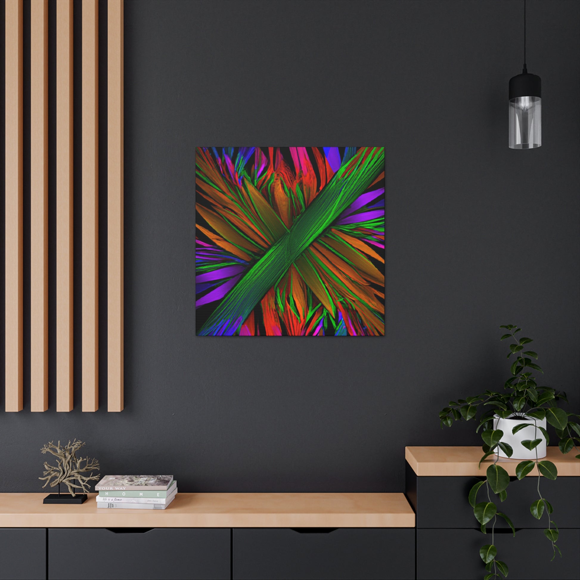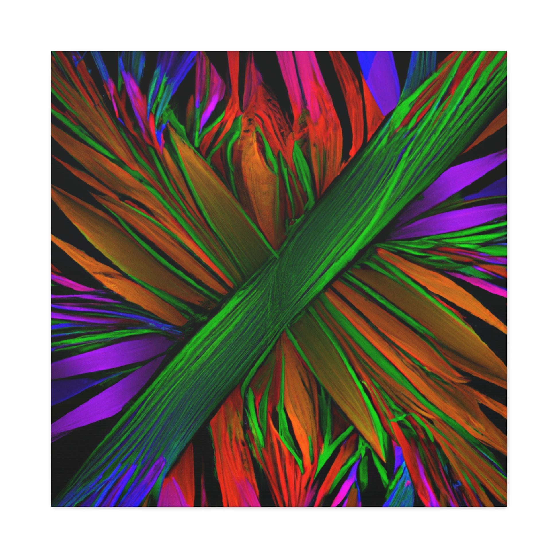 This mesmerizing digital piece of art looks like something out of a dream. A vibrant mix of colors, abstract shapes, and 3D lines come together in a perfect representation of the beauty of nature, giving life to a unique trippy kaleidoscope of geometric palm leaves. Discovering new perspectives and patterns in the fractal design is a never-ending journey. #surrealism #abstractart #canvas #digitalart #vibrantcolors #3Dlines #fractalart #kaleidoscope #palmleaves #geometricart #surreal #artanddesign #designinspiration #colorful #fineart #modernart #minimalism #creative #homedecor #inspired #homeinterior #manufacturedbeauty #uniquepieces #3Dillustration #wallart #roomdecor #boldcolors #wallhanging #statementpiece #luxurystyle