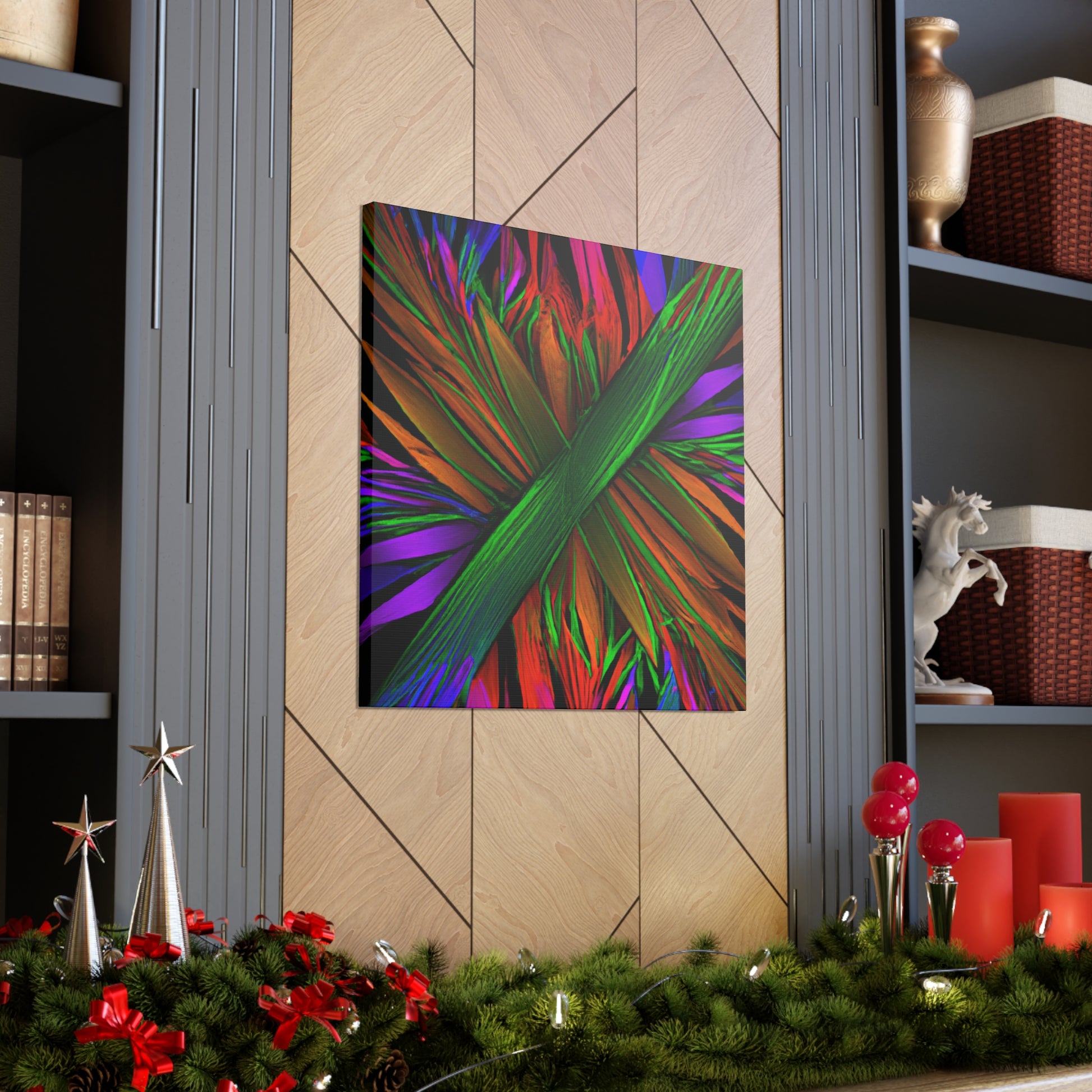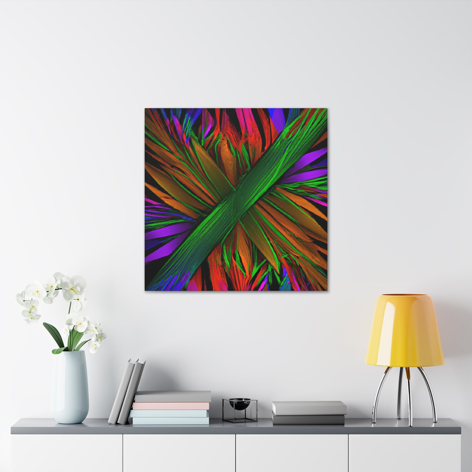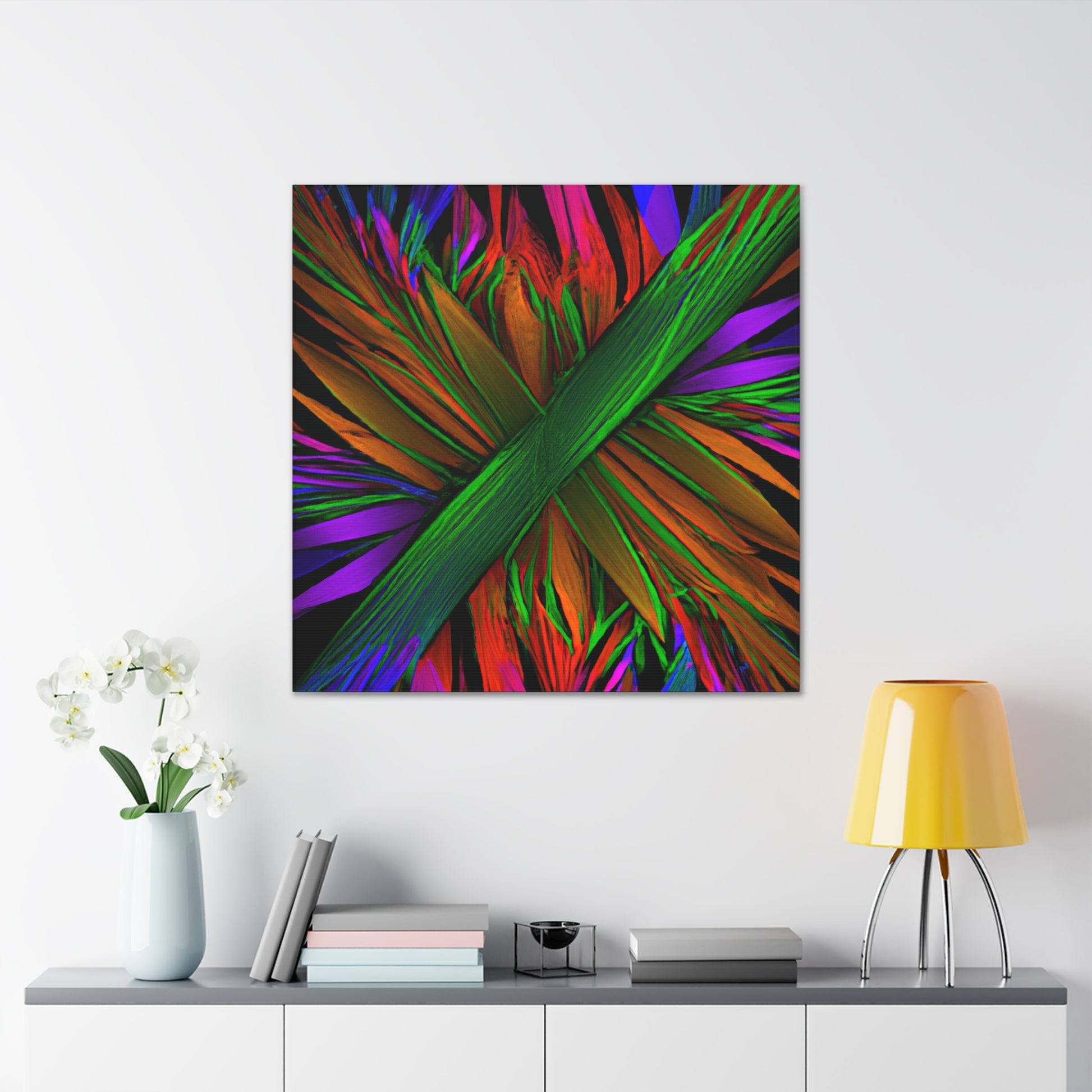 This mesmerizing digital piece of art looks like something out of a dream. A vibrant mix of colors, abstract shapes, and 3D lines come together in a perfect representation of the beauty of nature, giving life to a unique trippy kaleidoscope of geometric palm leaves. Discovering new perspectives and patterns in the fractal design is a never-ending journey. #surrealism #abstractart #canvas #digitalart #vibrantcolors #3Dlines #fractalart #kaleidoscope #palmleaves #geometricart #surreal #artanddesign #designinspiration #colorful #fineart #modernart #minimalism #creative #homedecor #inspired #homeinterior #manufacturedbeauty #uniquepieces #3Dillustration #wallart #roomdecor #boldcolors #wallhanging #statementpiece #luxurystyle